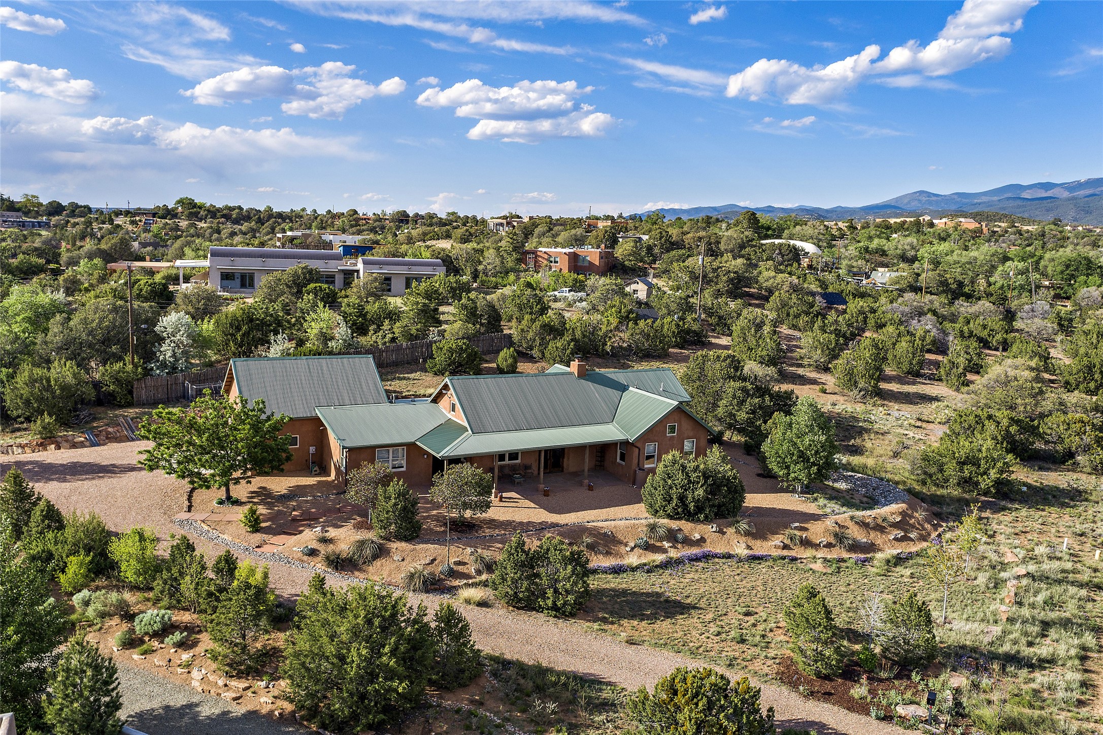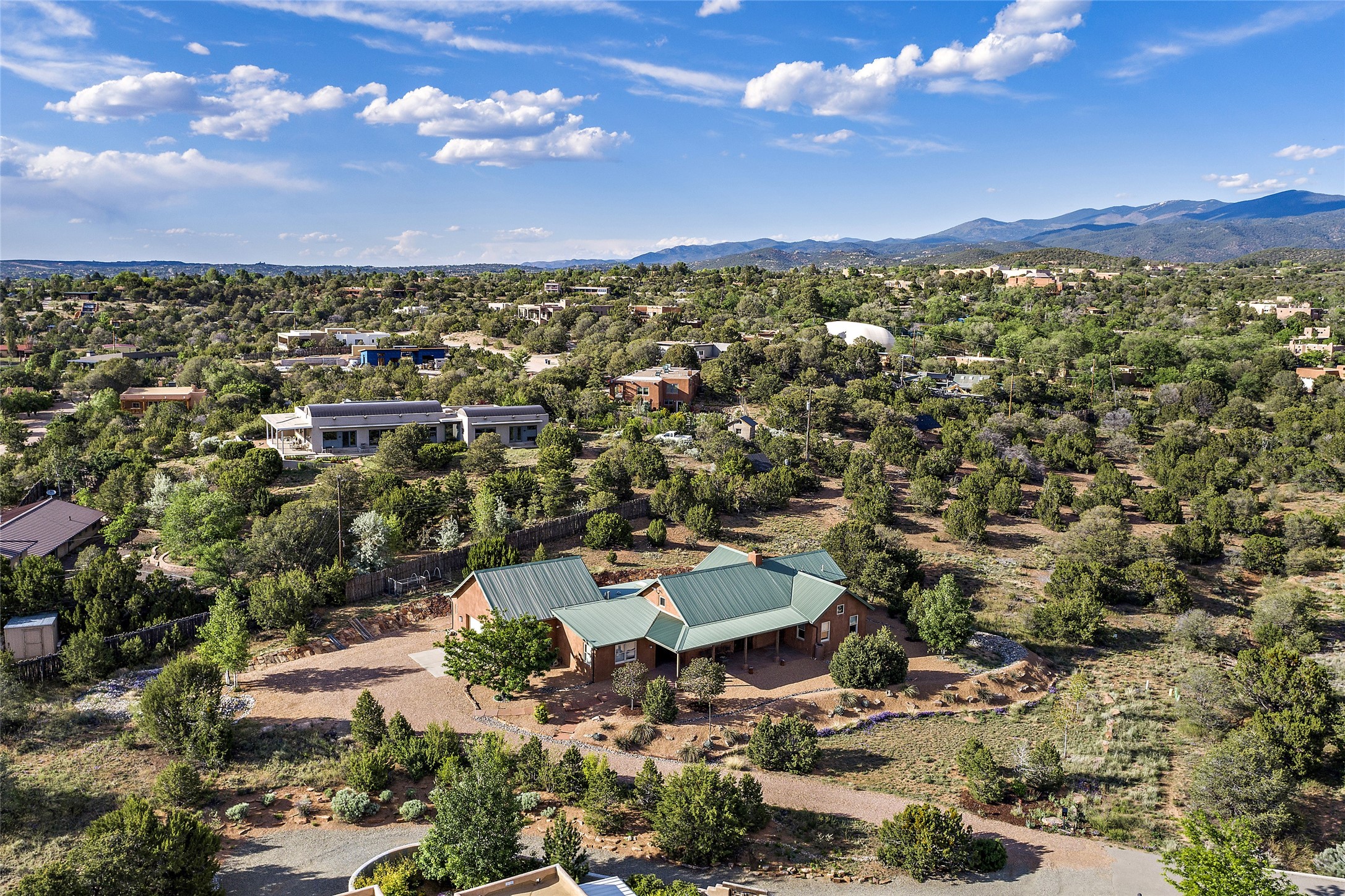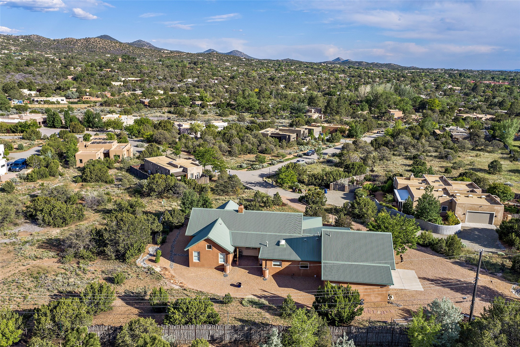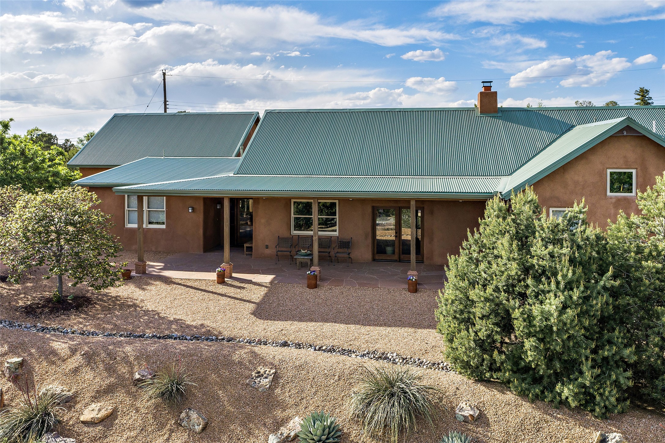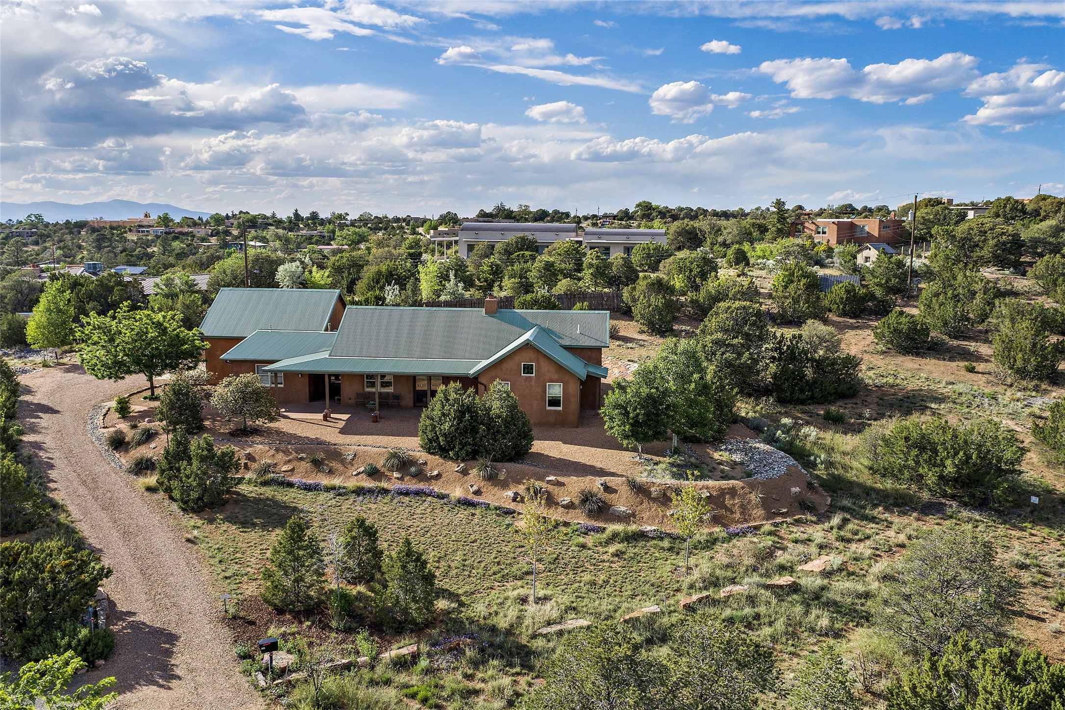 Sited on a prime larger lot in Museum Hill Estates subdivision, this custom designed newer Northern New Mexico-style home is meticulous and light-filed with stunning views of Atalaya, Sun and Moon mountains. The easy access kitchen is thoughtfully designed with plentiful custom cabinets, pantry, and island storage, under counter sink, and built in microwave. Bedroom separation is excellent with versatile use options, mountain views, and well designed closet storage. The heated 2-car garage can be directly accessed through the spacious laundry room with under counter sink and custom cabinetry. Three covered patio areas serve as delightful outdoor retreats. Numerous features include: superior insulation throughout for temperature control; seven-zone radiant floor heating; sub-slab ventilation; central vacuum system; large, finished storage attic with pull-down stairs; low-maintenance metal pitched roof, and drip system for landscaping. HOA fee of $300 per year covers maintenance of walking trail and open space areas. Wood Gormley school district.