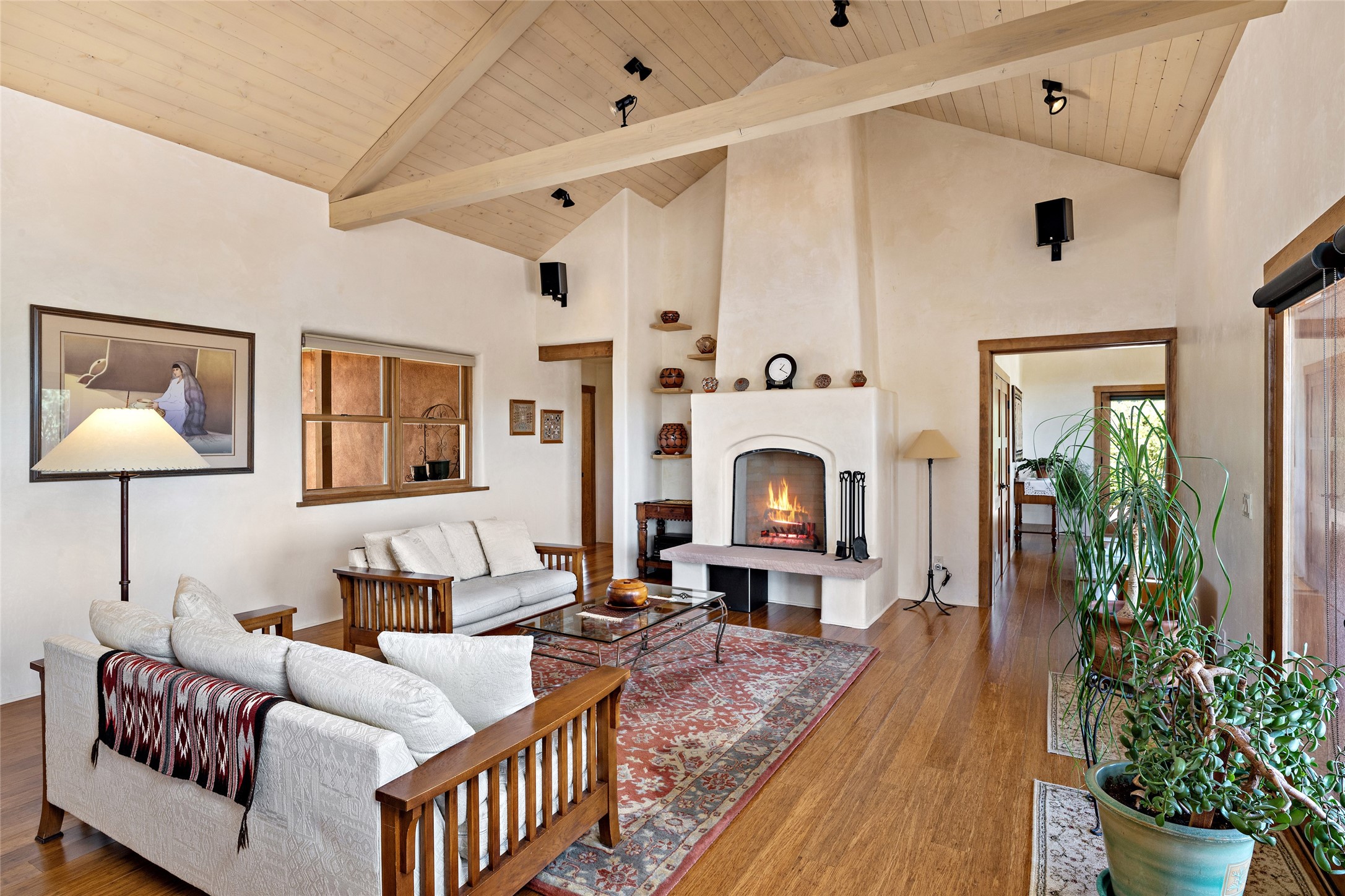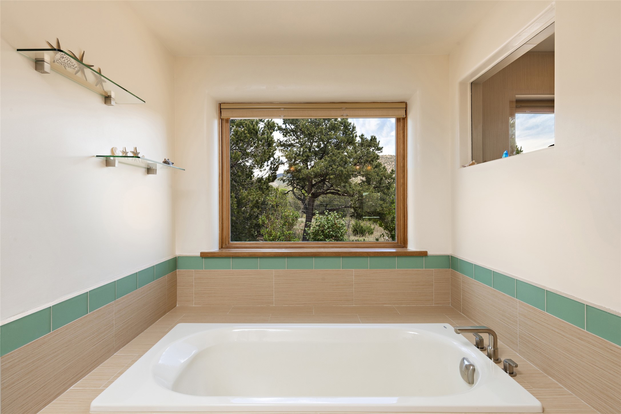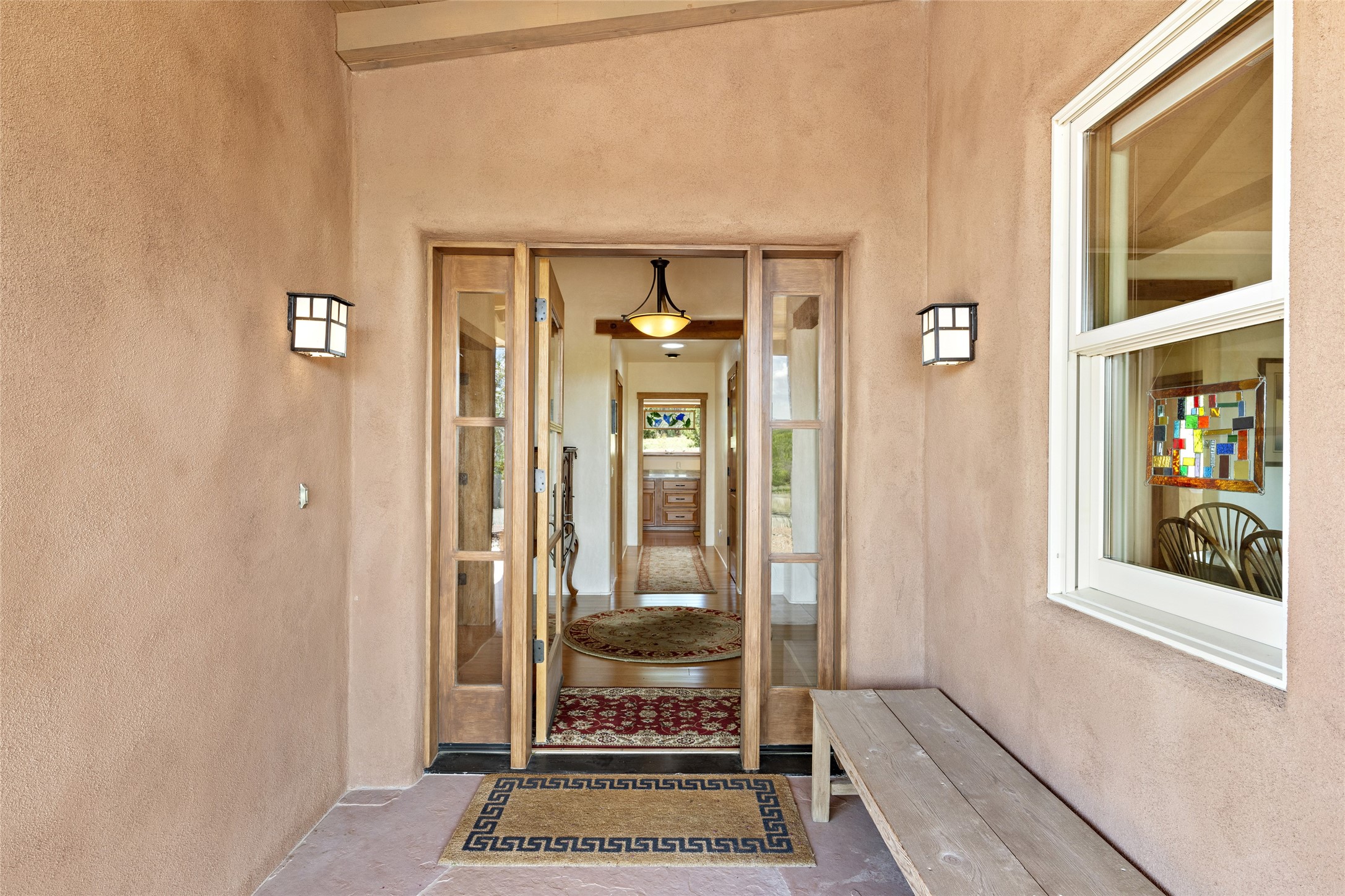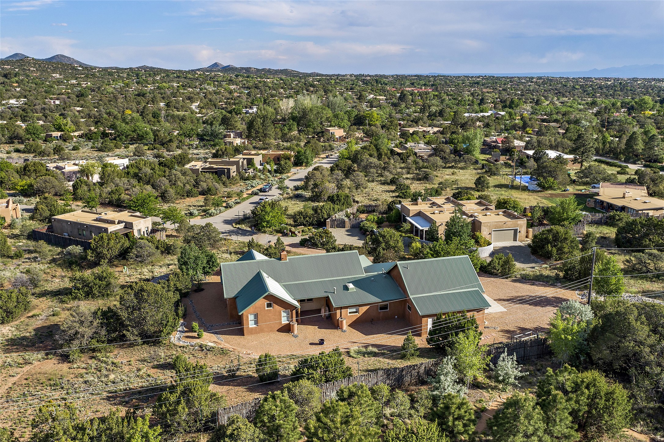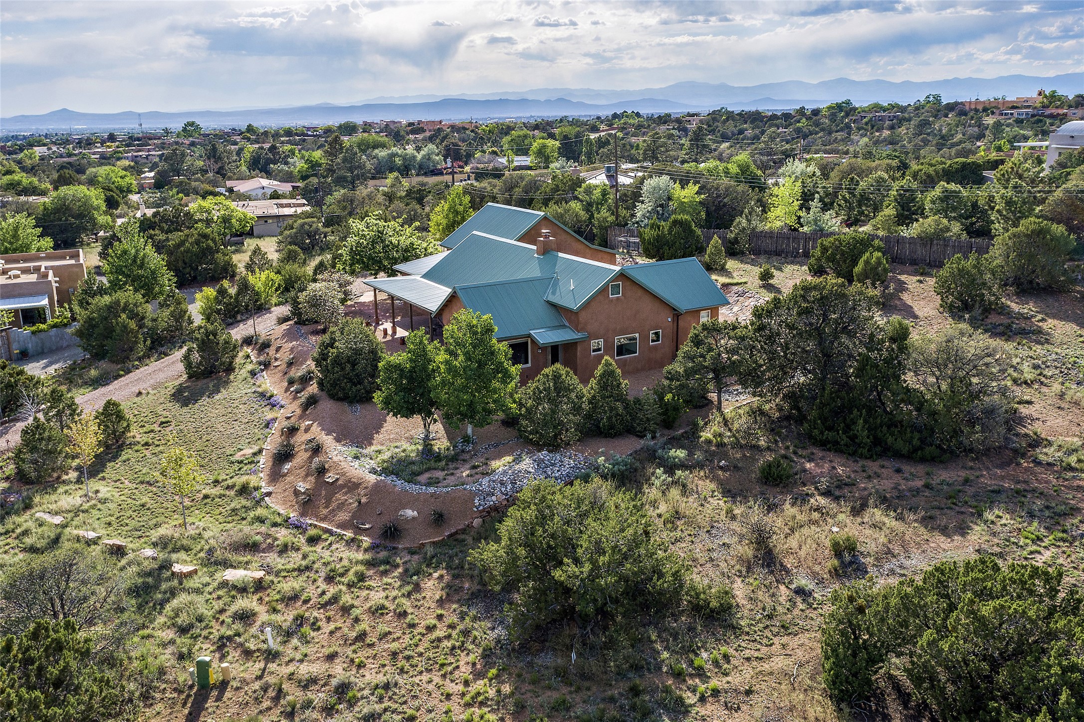 Sited on a prime larger lot in Museum Hill Estates subdivision, this custom designed newer Northern New Mexico-style home is meticulous and light-filed with stunning views of Atalaya, Sun and Moon mountains. The easy access kitchen is thoughtfully designed with plentiful custom cabinets, pantry, and island storage, under counter sink, and built in microwave. Bedroom separation is excellent with versatile use options, mountain views, and well designed closet storage. The heated 2-car garage can be directly accessed through the spacious laundry room with under counter sink and custom cabinetry. Three covered patio areas serve as delightful outdoor retreats. Numerous features include: superior insulation throughout for temperature control; seven-zone radiant floor heating; sub-slab ventilation; central vacuum system; large, finished storage attic with pull-down stairs; low-maintenance metal pitched roof, and drip system for landscaping. HOA fee of $300 per year covers maintenance of walking trail and open space areas. Wood Gormley school district.