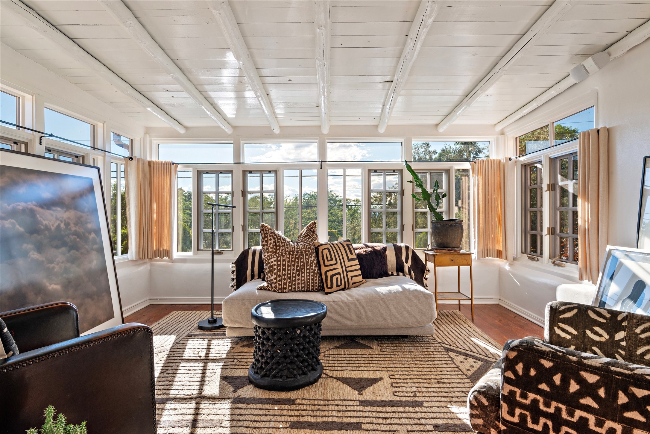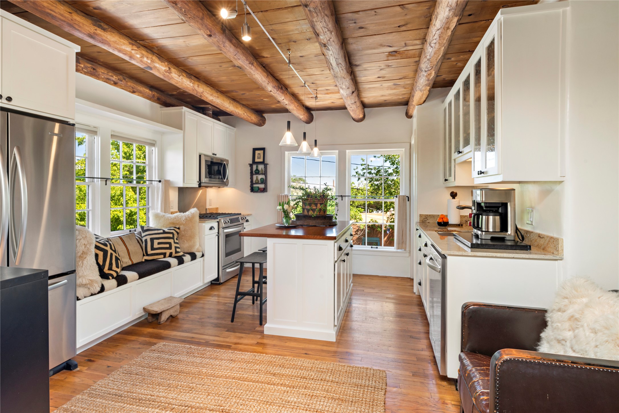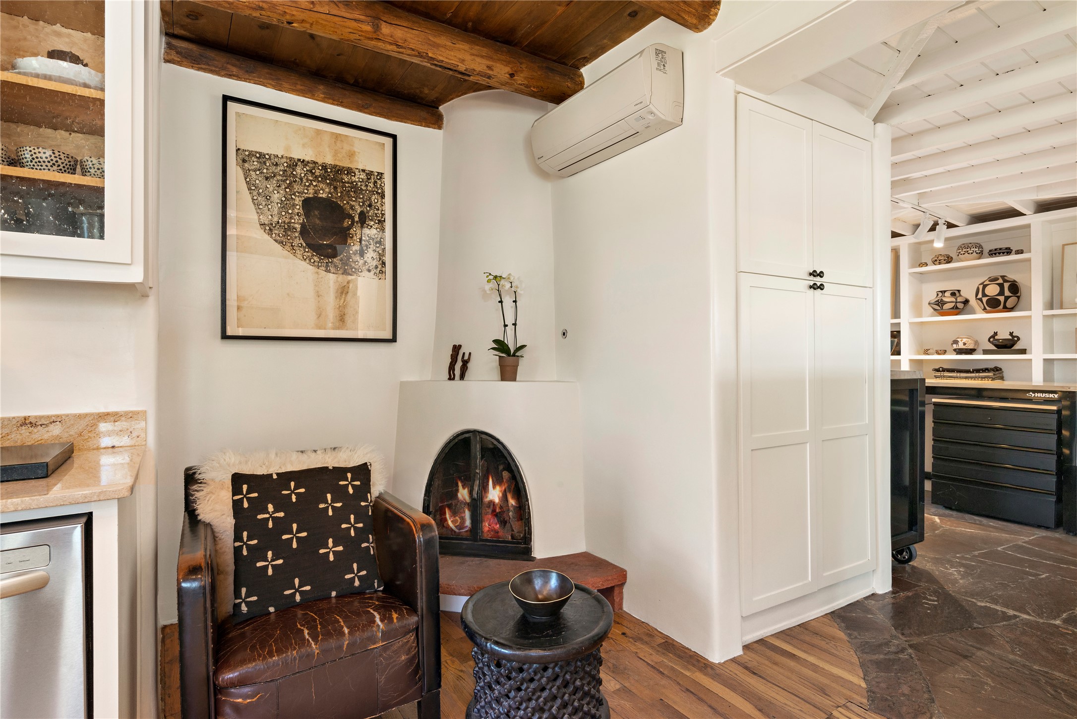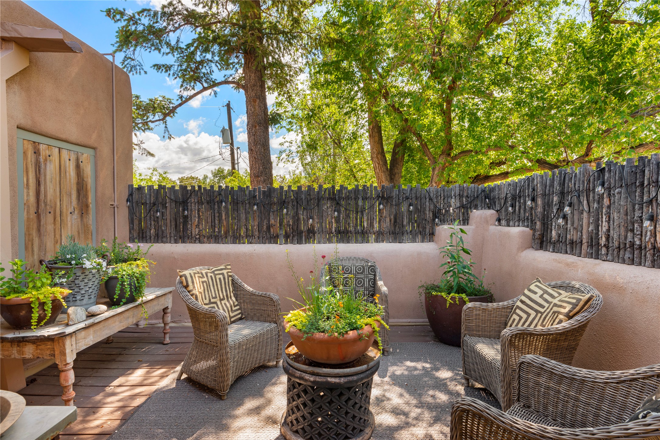 Located on a quiet lane in the Historic Eastside this condo is not to be missed. It sits above the surrounding properties giving the feeling of living in a treehouse. Sunrise and sunset skies can be enjoyed year round. Immaculately maintained with beautiful details and a short walk to Canyon Road art galleries and restaurants makes this property special. Mini splits for cooling. New roof with transferable warranty.