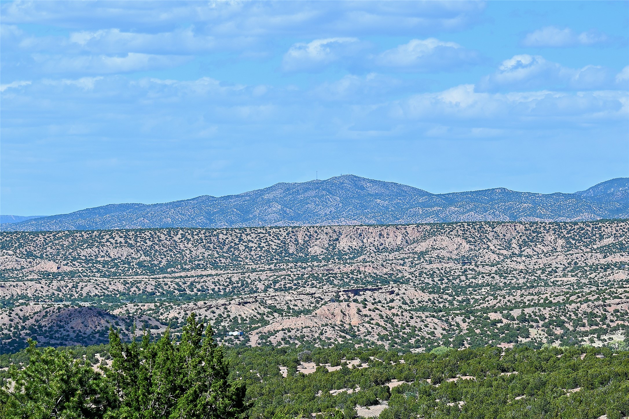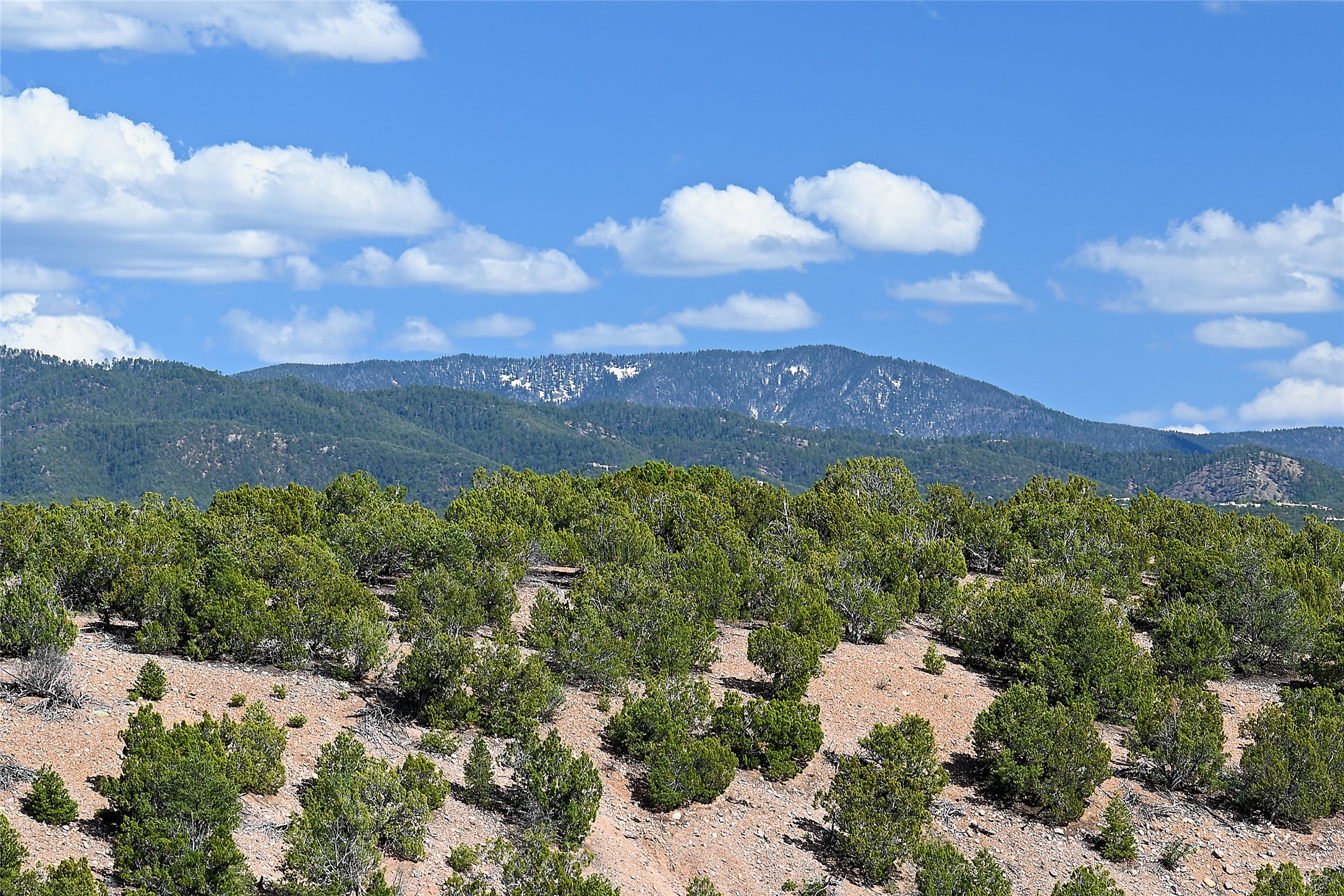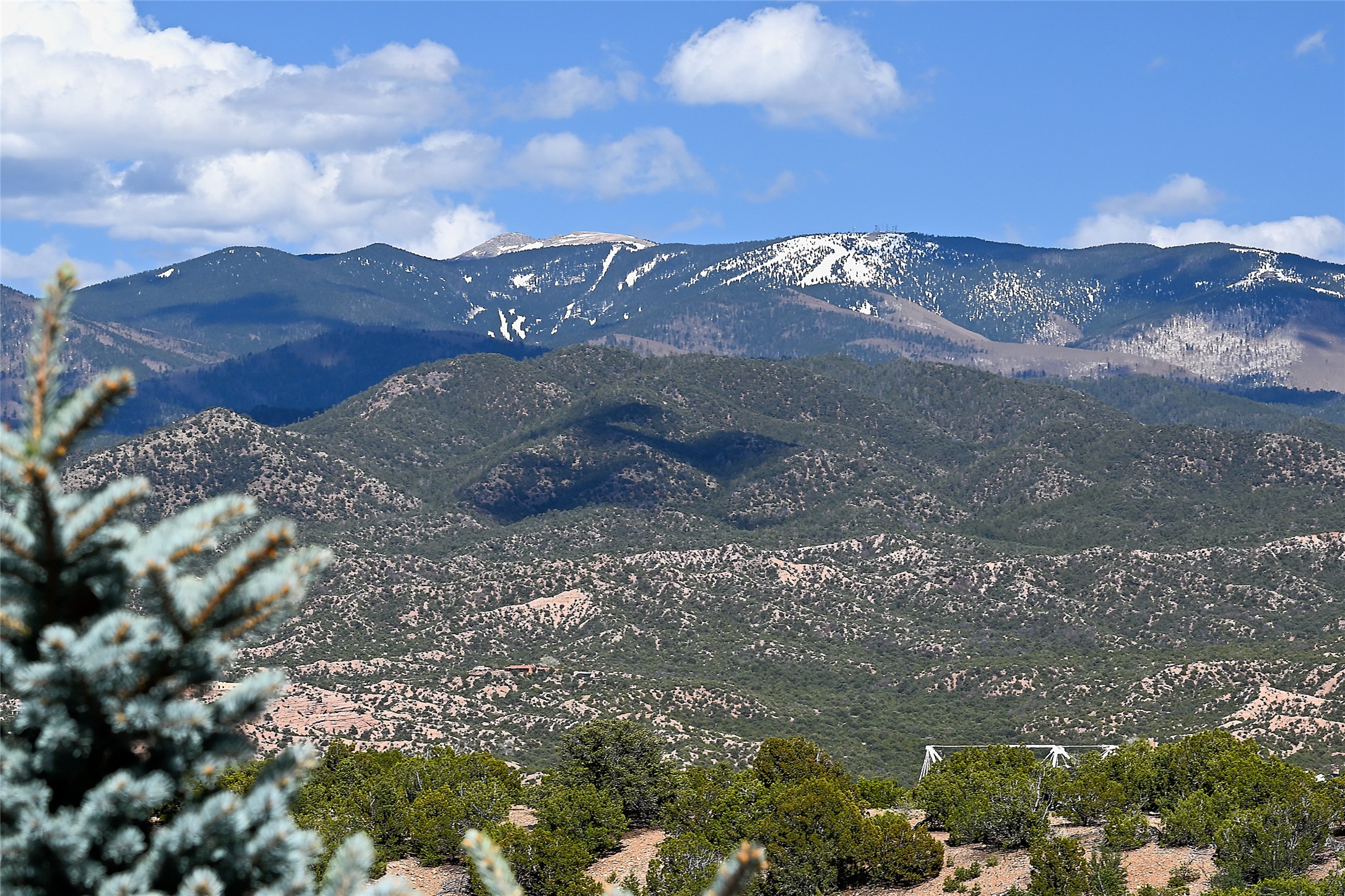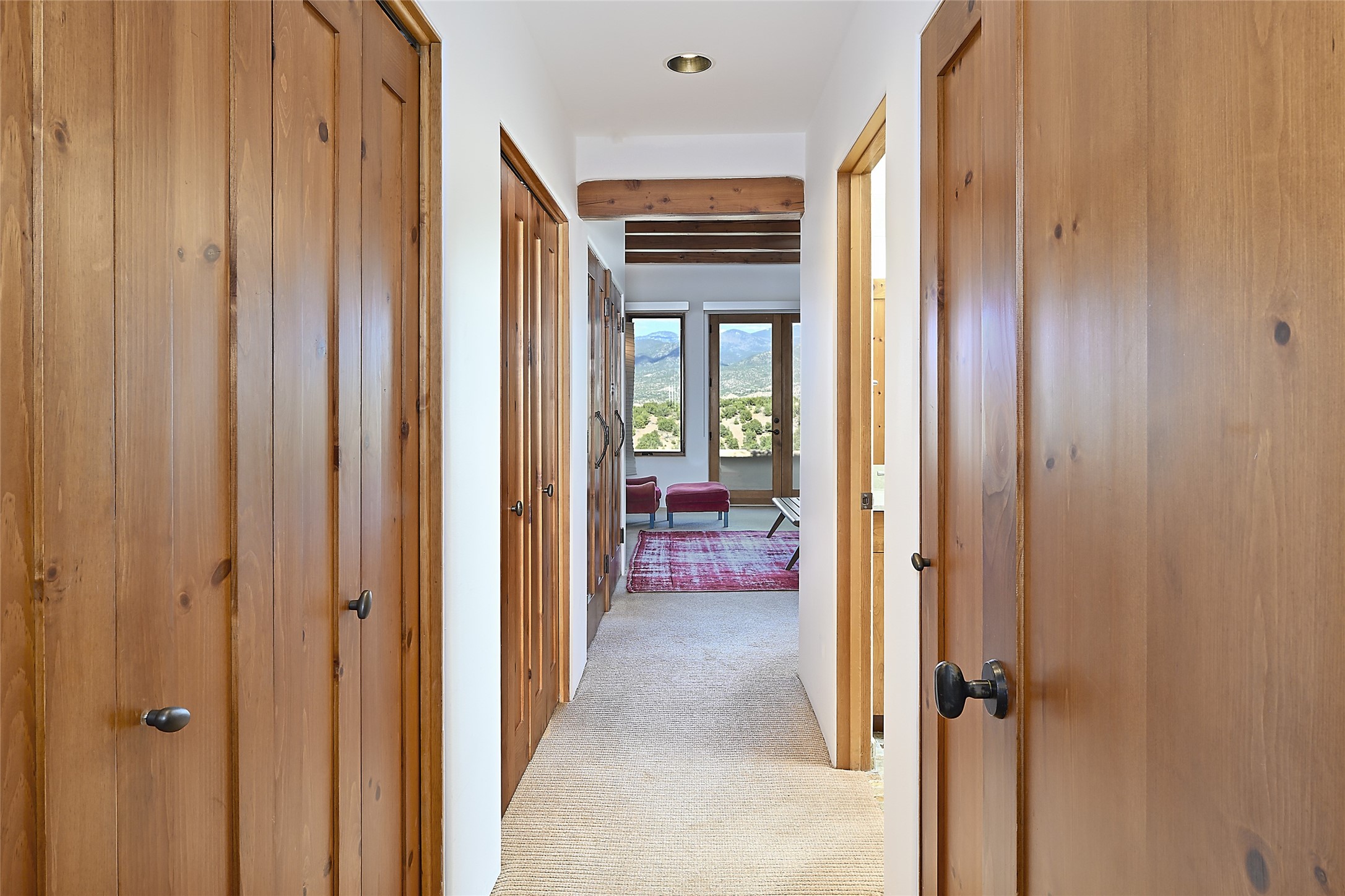 Located in the private gated community of Casas de San Juan--in the foothills adjacent to the renowned Santa Fe Opera and only minutes north of the historic Plaza, Canyon Road, and Museum Hill--this stunning four-bedroom four-bath retreat with new roof in November 2023 enjoys spectacular views from nearly every room. Robert Zachry designed the contemporary condominium, which encourages year-round indoor-outdoor living and is accompanied by a two-car garage. The open concept living, dining, and kitchen area has an easy flow and French doors opening to a brick and flagstone terrace, xeriscaped gardens, and basalt stone fountains. Transom windows and tall ceilings with vigas and beams create a bright, expansive ambience. The chef's kitchen features alder cabinets, superior appliances, and a casual breakfast bar. The gracious primary suite boasts custom closets and French doors to a terrace with panoramic views. One guest bedroom is warmed by a kiva fireplace and is adjoined by a sunroom or living area, while the third bedroom in the main house could also serve as an office, a media room, or a study. Secluded from the main residence is a one-room guest house with a kiva fireplace, a bath, and its own patio. The gated community is securely staffed. New roof in November 2023.
