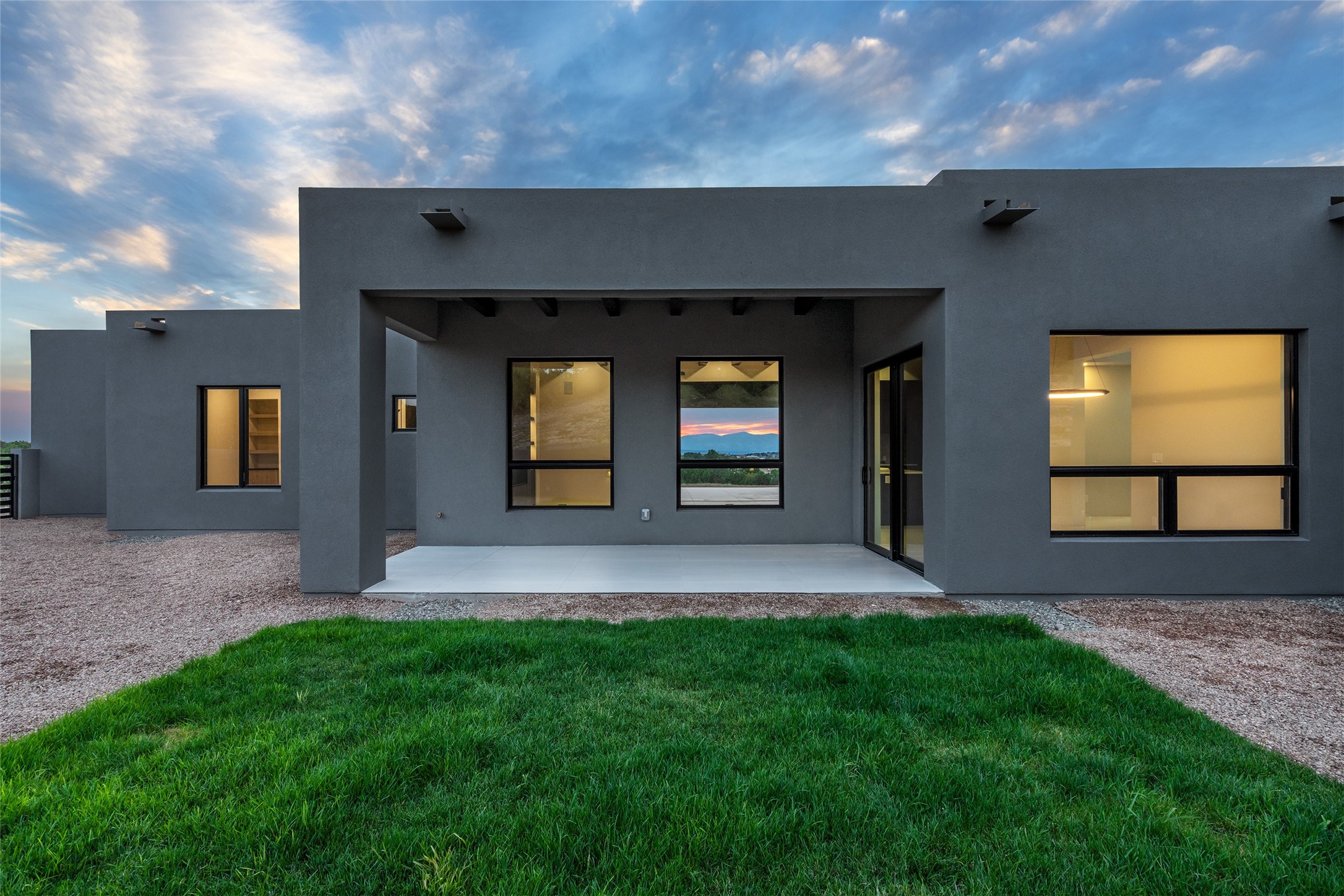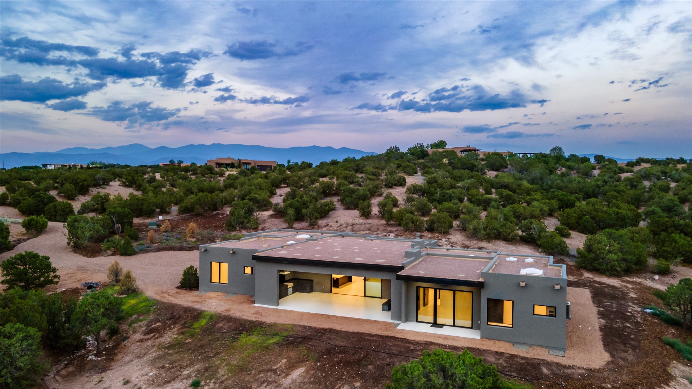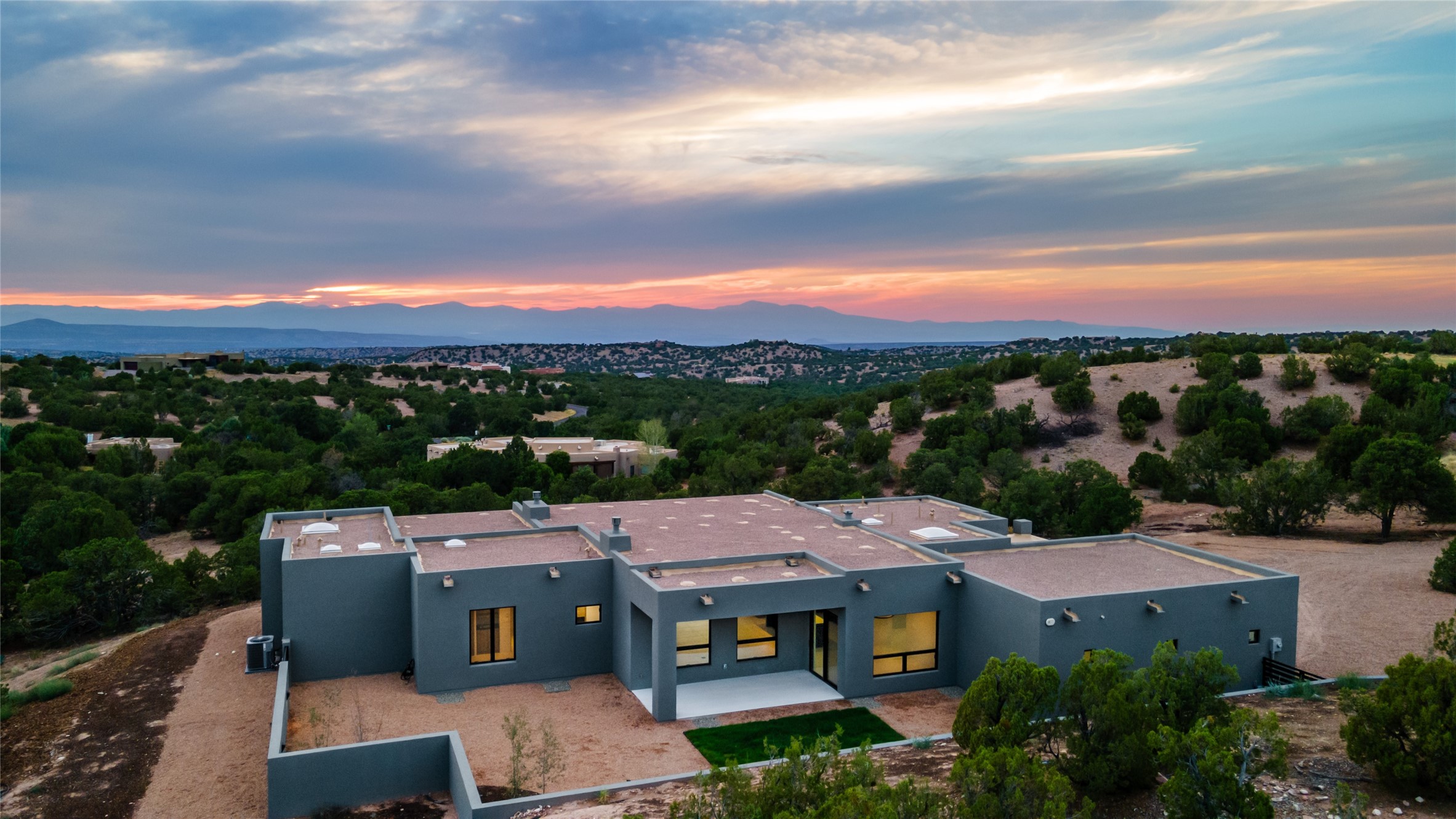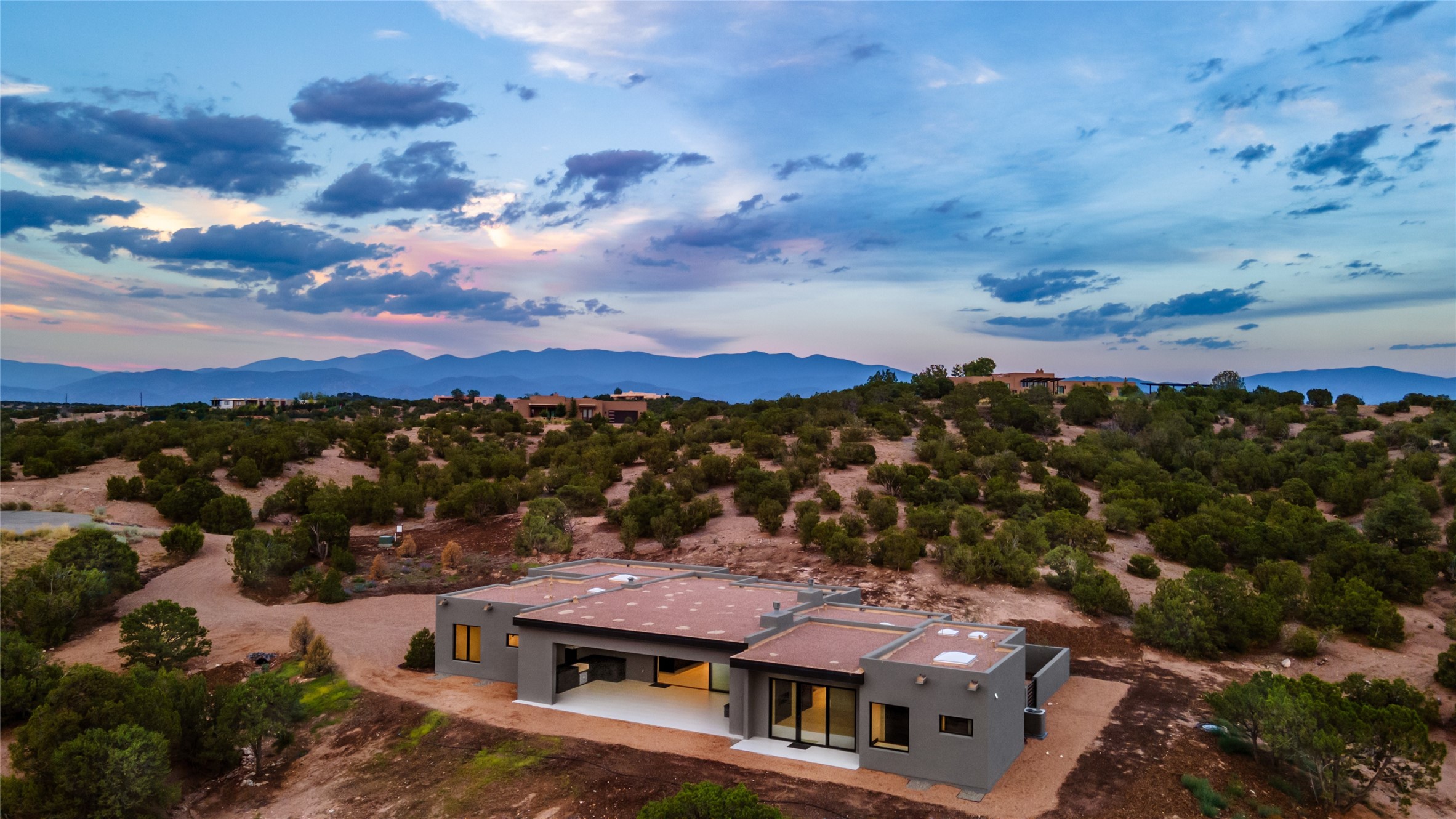 Come experience the latest custom home by Santa Fe Builders Construction, LLC. Set on one of the last remaining lots in the exclusive Sundance Ridge community. This enclave of exceptional custom homes is married to Santa Fe's most sought after land of rolling hills, unparalleled views and privacy. Your new home is at the end of a private cul-de-sac, tucked in on a ridge and overlooking the Jemez mountain range. Delivering stunning sunsets, and starry nights; it feels like you own the west. The soft pueblo contemporary features an open concept floor plan, exquisite kitchen and butler's pantry, luxurious master suite, plus two additional bedrooms, and a heated garage. Glass panel, vanishing pocket doors in the great room blur the lines between indoor and outdoor space, leading you to an expansive, view filled, covered portal with outdoor kitchen and fire pit. Enjoy instant comfort in any season with in-floor radiant heat and refrigerated air. Located just 15 minutes from downtown means quick access to everything Santa Fe while still feeling worlds away.