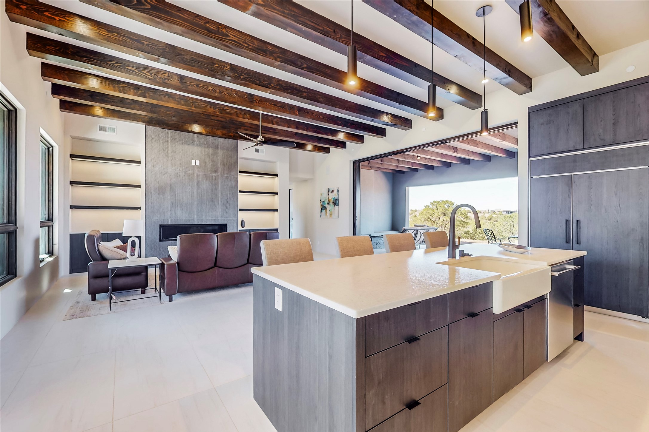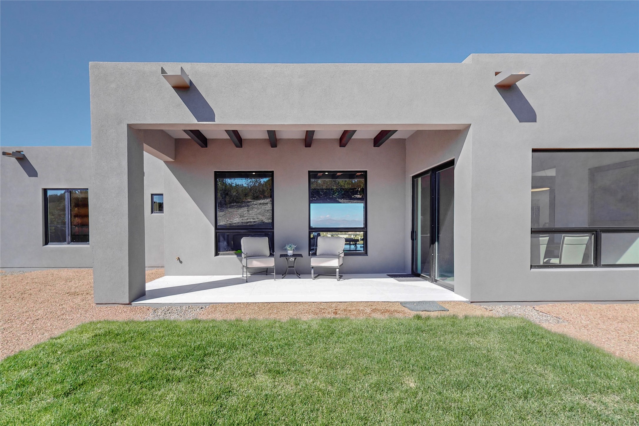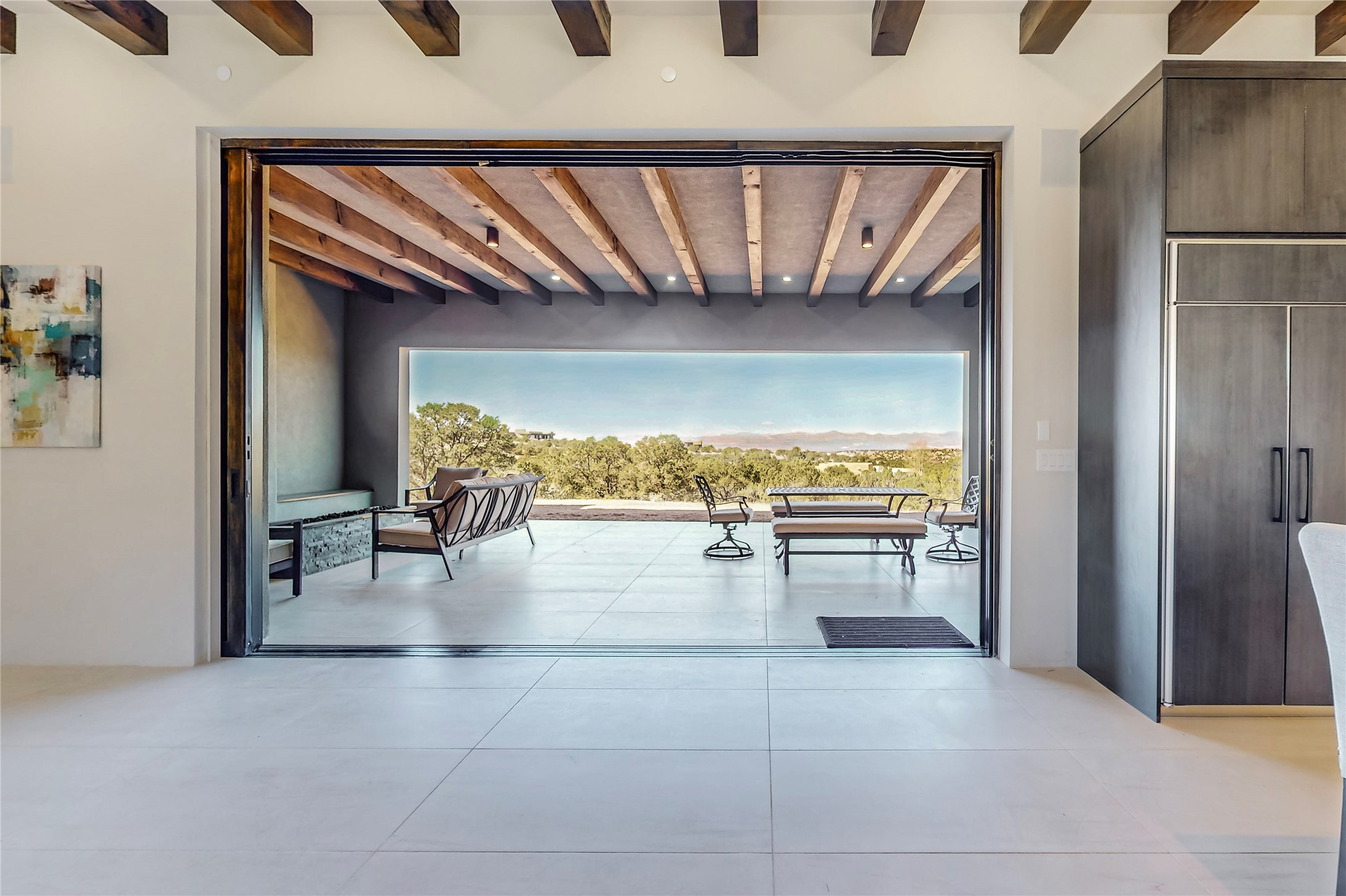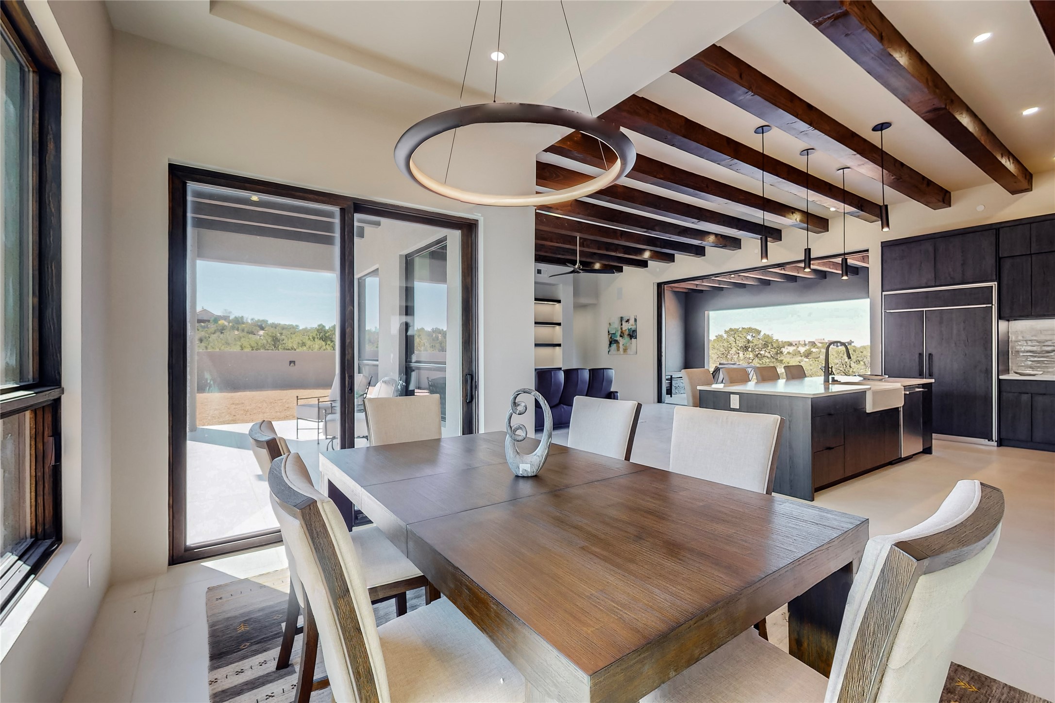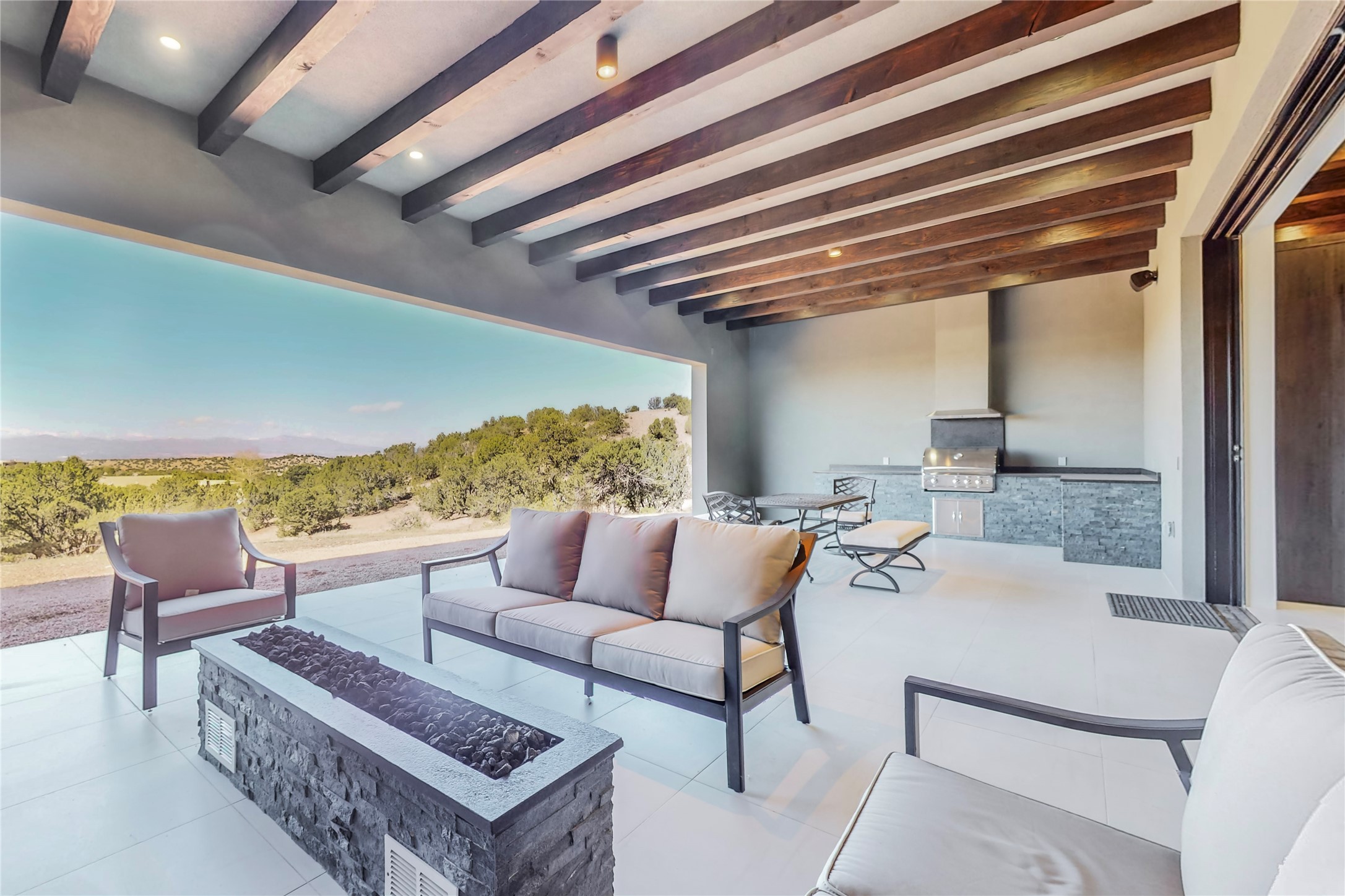 Come experience the latest custom home by Santa Fe Builders Construction, LLC. Set on one of the last remaining lots in the exclusive Sundance Ridge community. This enclave of exceptional custom homes is married to Santa Fe's most sought after land of rolling hills, unparalleled views and privacy. Your new home is at the end of a private cul-de-sac, tucked in on a ridge and overlooking the Jemez mountain range. Delivering stunning sunsets, and starry nights; it feels like you own the west. The soft pueblo contemporary features an open concept floor plan, exquisite kitchen and butler's pantry, luxurious master suite, plus two additional bedrooms, and a heated garage. Glass panel, vanishing pocket doors in the great room blur the lines between indoor and outdoor space, leading you to an expansive, view filled, covered portal with outdoor kitchen and fire pit. Enjoy instant comfort in any season with in-floor radiant heat and refrigerated air. Located just 15 minutes from downtown means quick access to everything Santa Fe while still feeling worlds away.