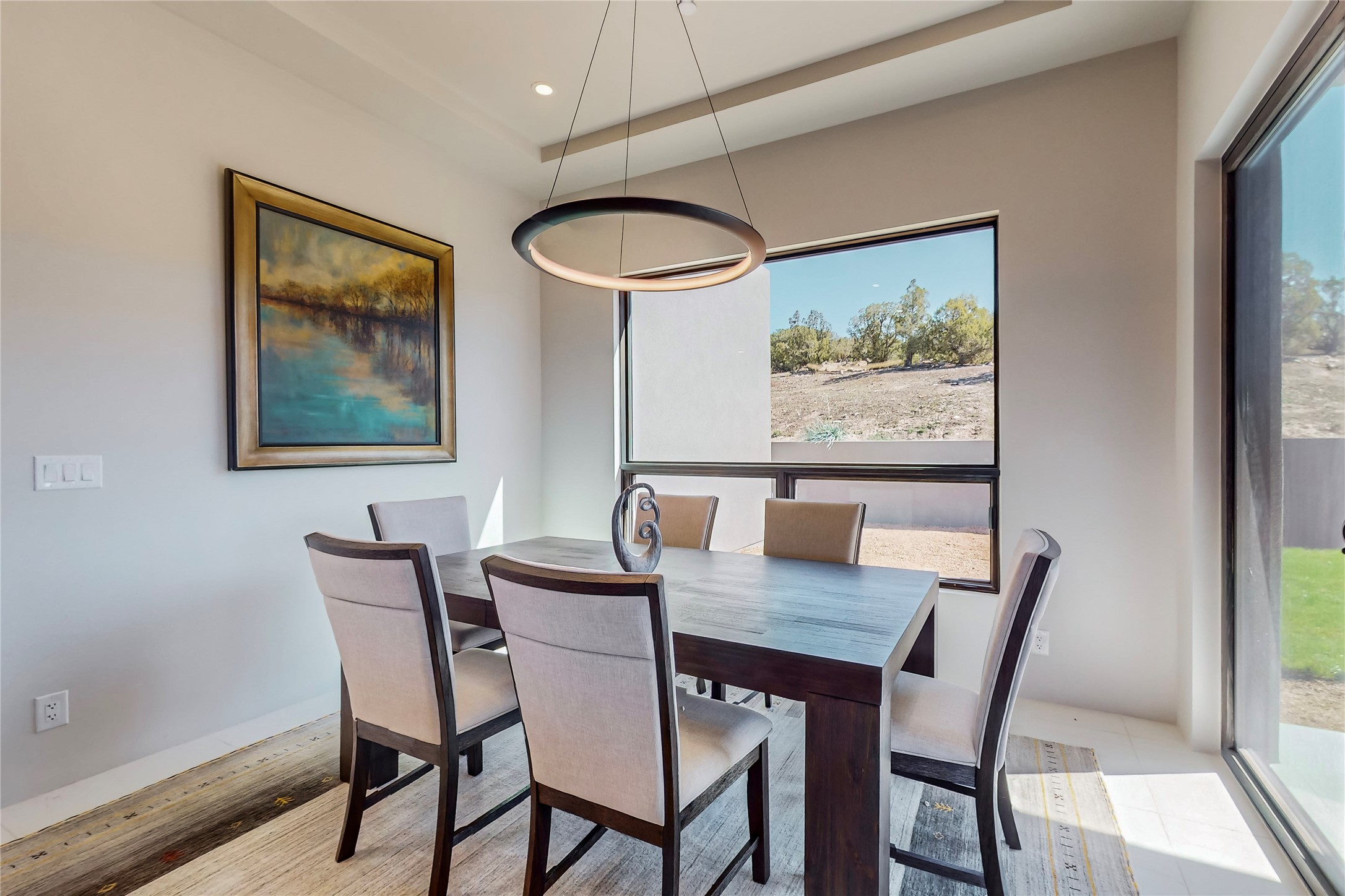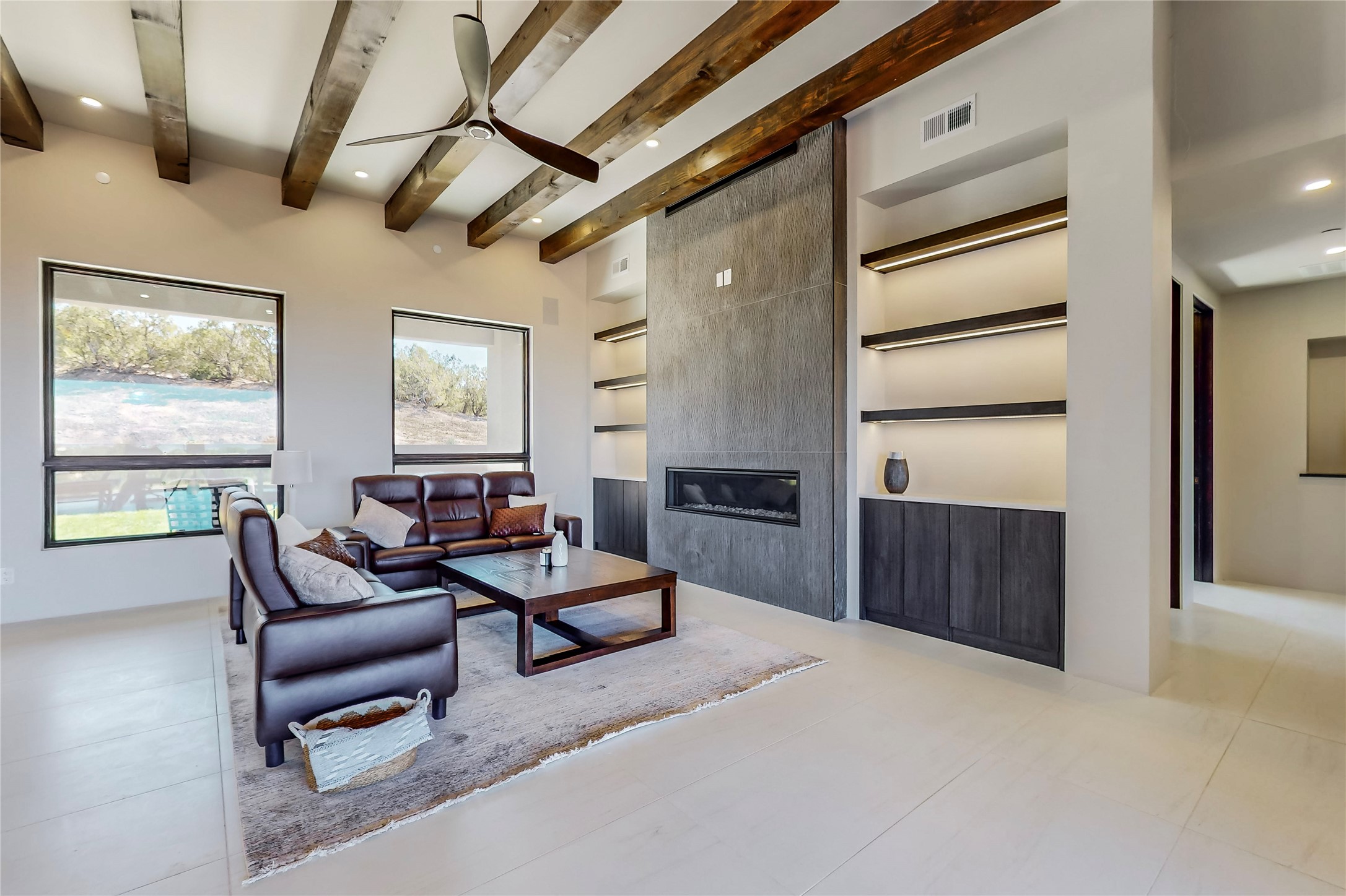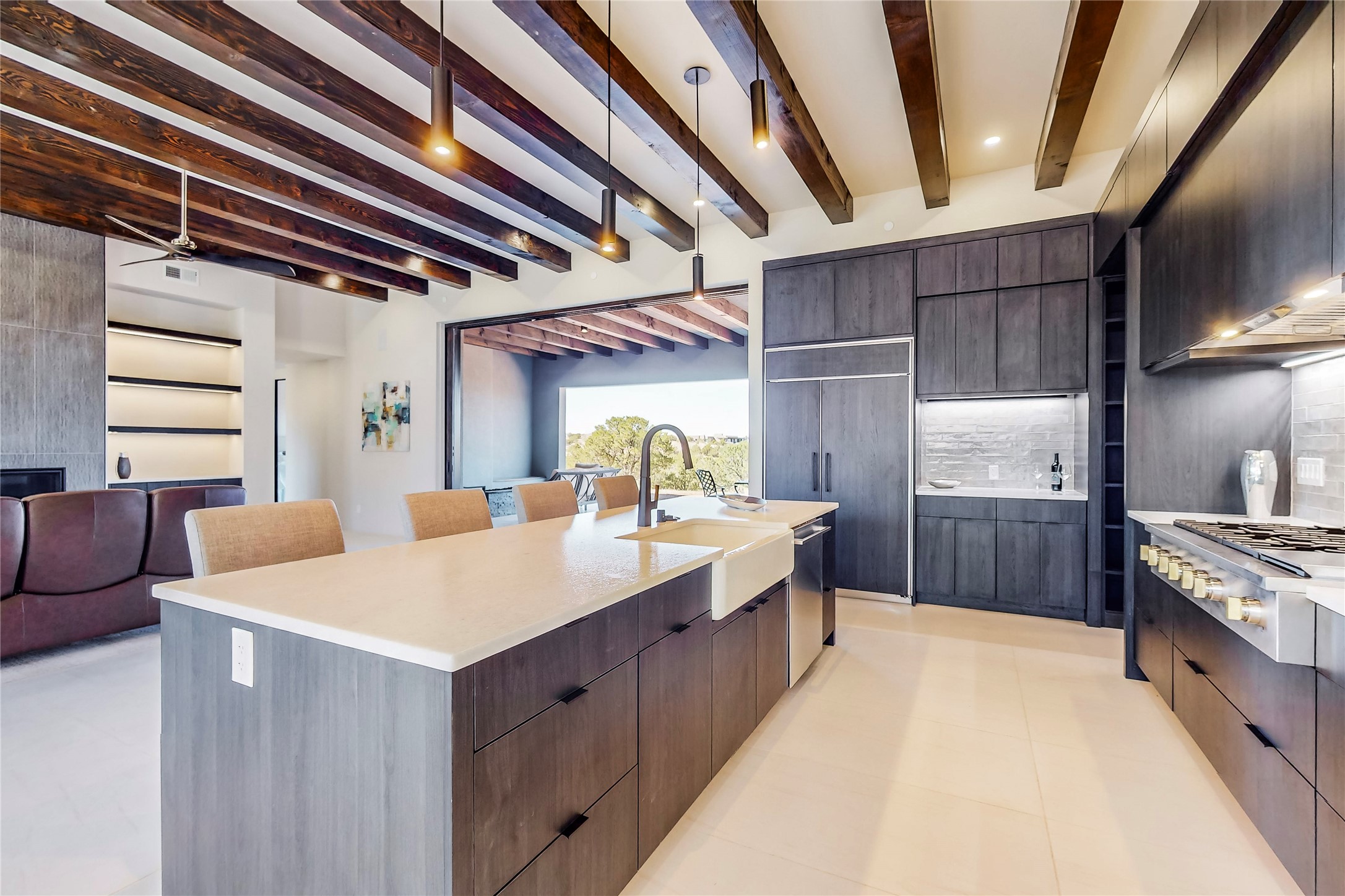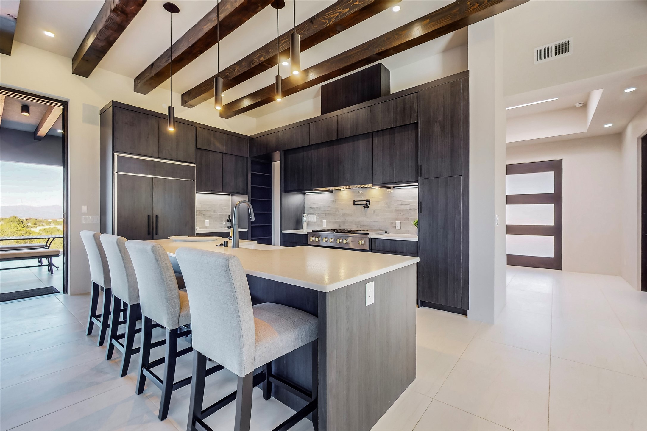 Come experience the latest custom home by Santa Fe Builders Construction, LLC. Set on one of the last remaining lots in the exclusive Sundance Ridge community. This enclave of exceptional custom homes is married to Santa Fe's most sought after land of rolling hills, unparalleled views and privacy. Your new home is at the end of a private cul-de-sac, tucked in on a ridge and overlooking the Jemez mountain range. Delivering stunning sunsets, and starry nights; it feels like you own the west. The soft pueblo contemporary features an open concept floor plan, exquisite kitchen and butler's pantry, luxurious master suite, plus two additional bedrooms, and a heated garage. Glass panel, vanishing pocket doors in the great room blur the lines between indoor and outdoor space, leading you to an expansive, view filled, covered portal with outdoor kitchen and fire pit. Enjoy instant comfort in any season with in-floor radiant heat and refrigerated air. Located just 15 minutes from downtown means quick access to everything Santa Fe while still feeling worlds away.