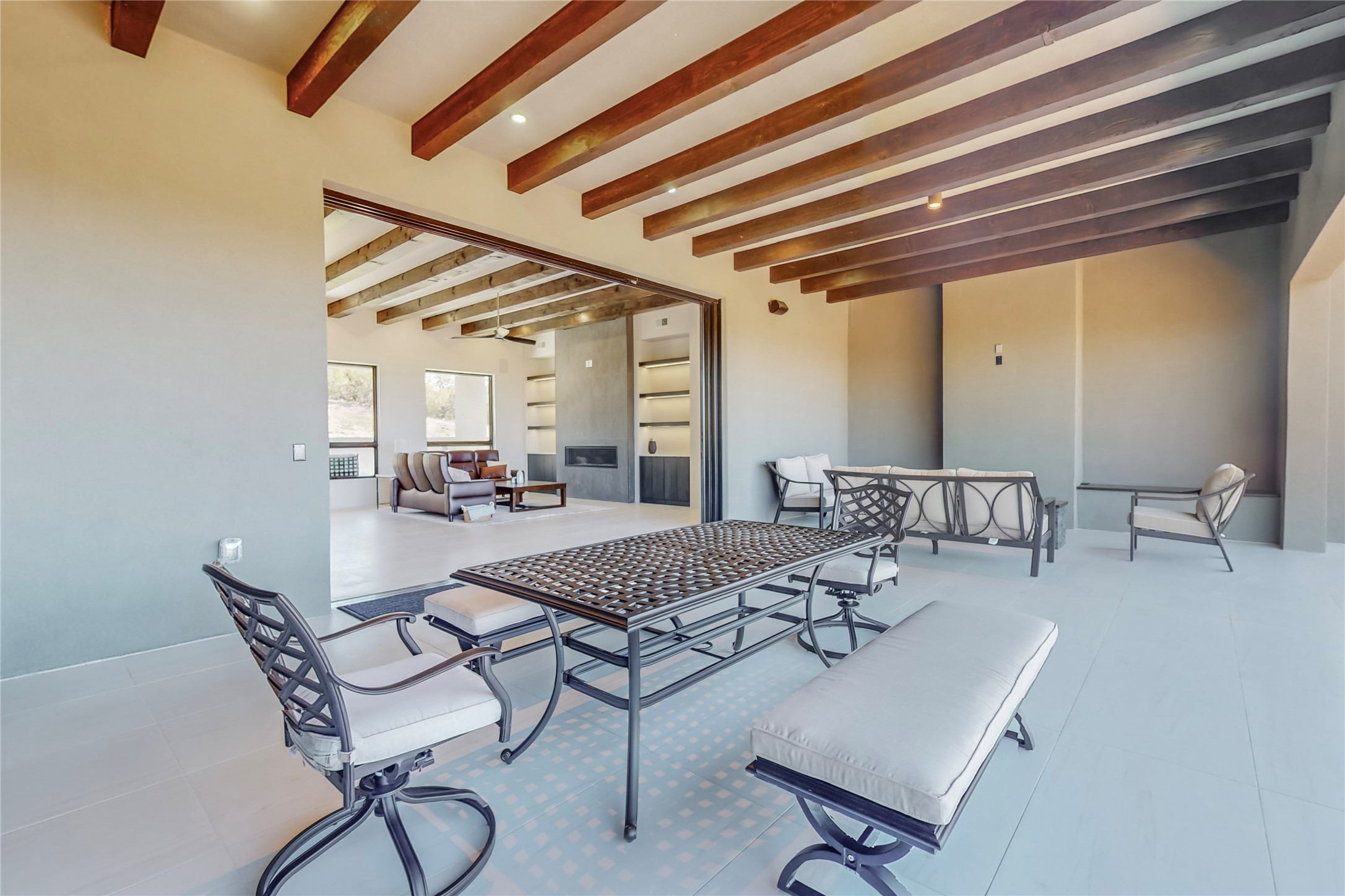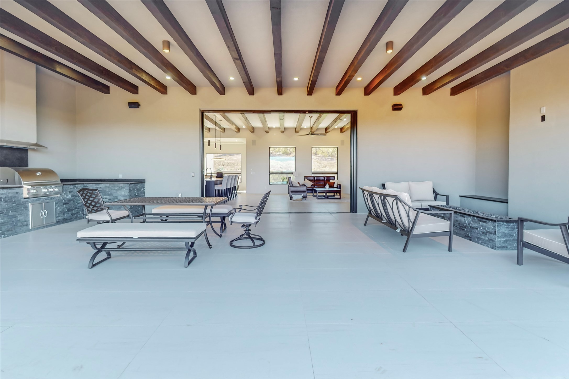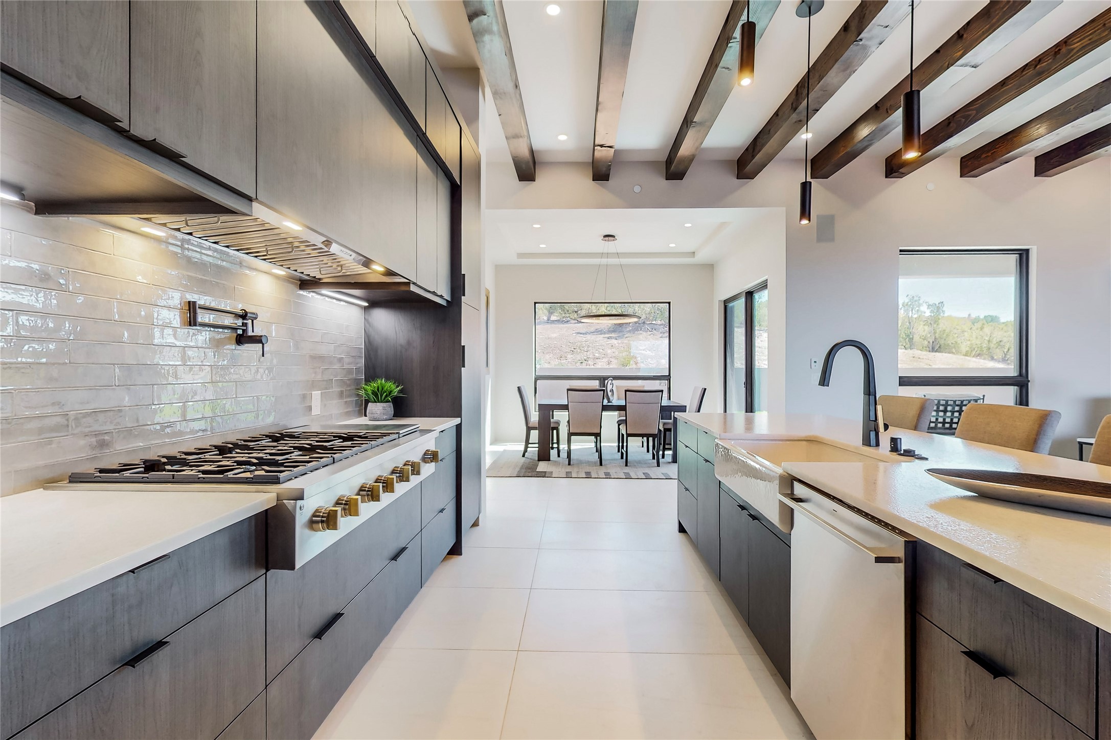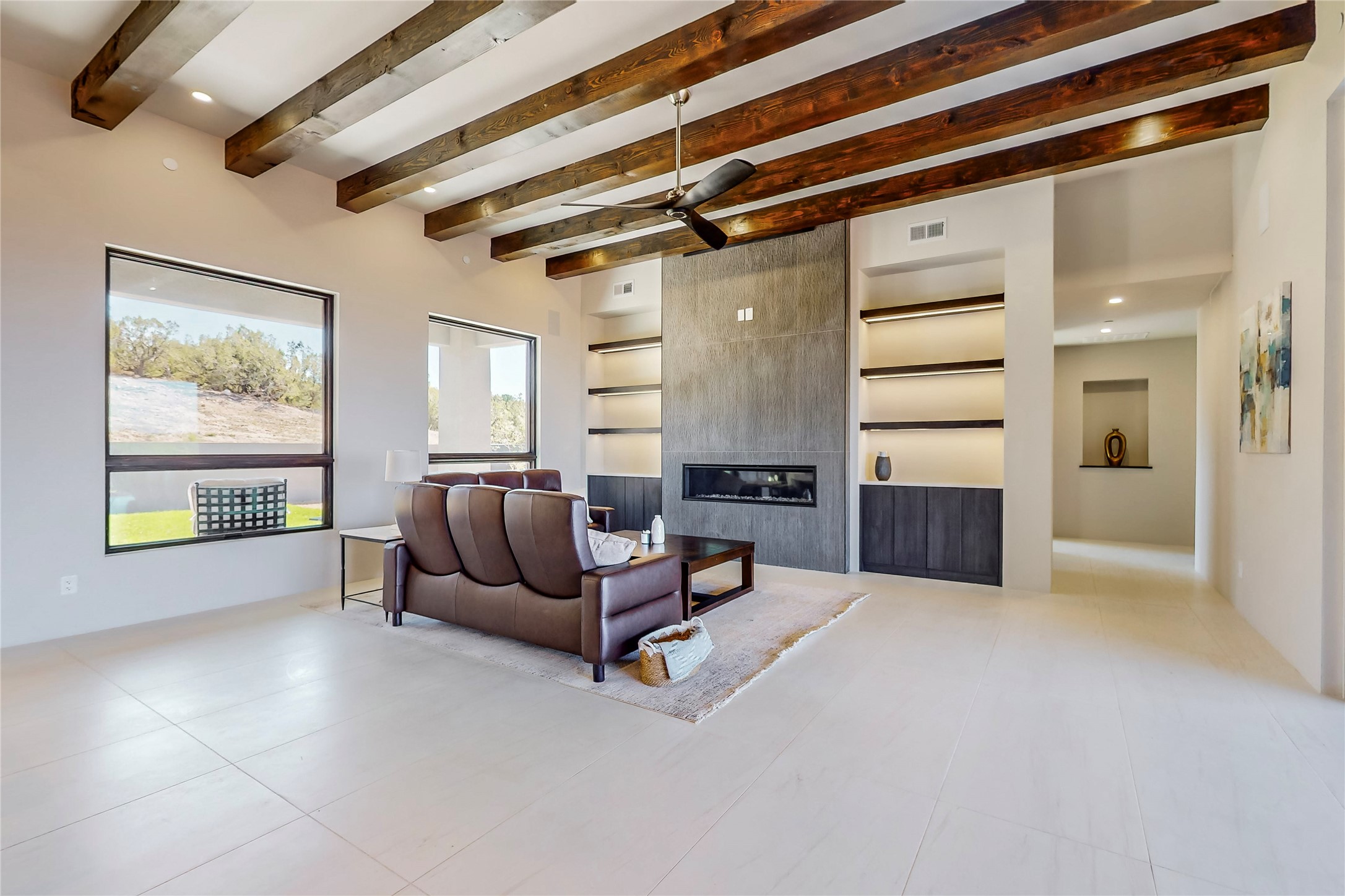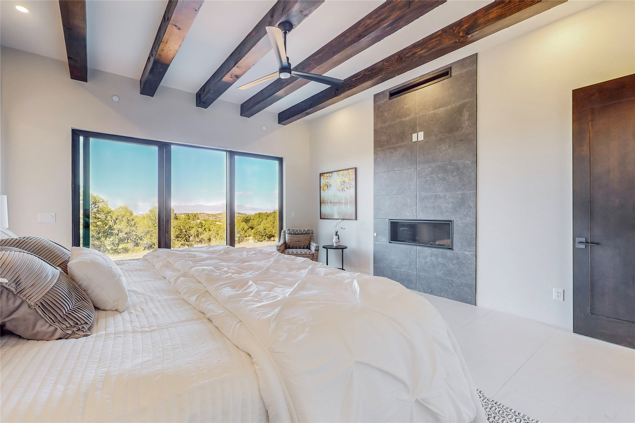 Come experience the latest custom home by Santa Fe Builders Construction, LLC. Set on one of the last remaining lots in the exclusive Sundance Ridge community. This enclave of exceptional custom homes is married to Santa Fe's most sought after land of rolling hills, unparalleled views and privacy. Your new home is at the end of a private cul-de-sac, tucked in on a ridge and overlooking the Jemez mountain range. Delivering stunning sunsets, and starry nights; it feels like you own the west. The soft pueblo contemporary features an open concept floor plan, exquisite kitchen and butler's pantry, luxurious master suite, plus two additional bedrooms, and a heated garage. Glass panel, vanishing pocket doors in the great room blur the lines between indoor and outdoor space, leading you to an expansive, view filled, covered portal with outdoor kitchen and fire pit. Enjoy instant comfort in any season with in-floor radiant heat and refrigerated air. Located just 15 minutes from downtown means quick access to everything Santa Fe while still feeling worlds away.