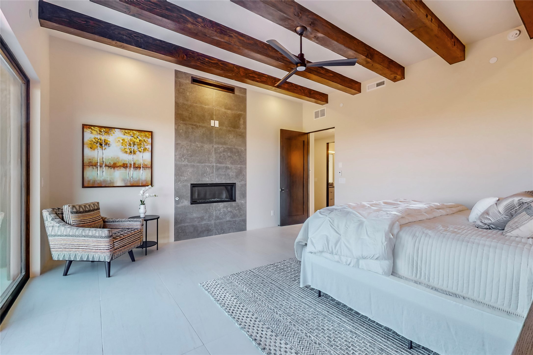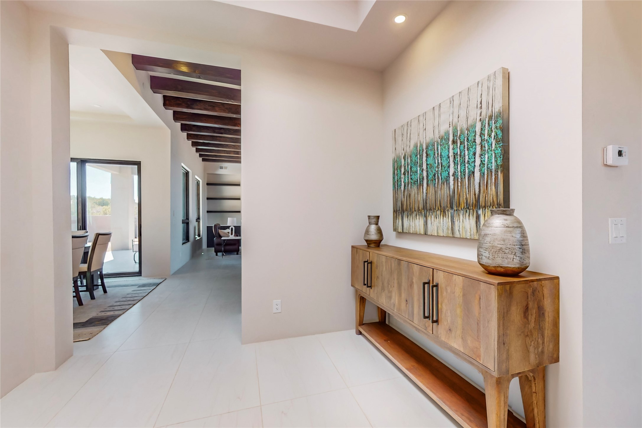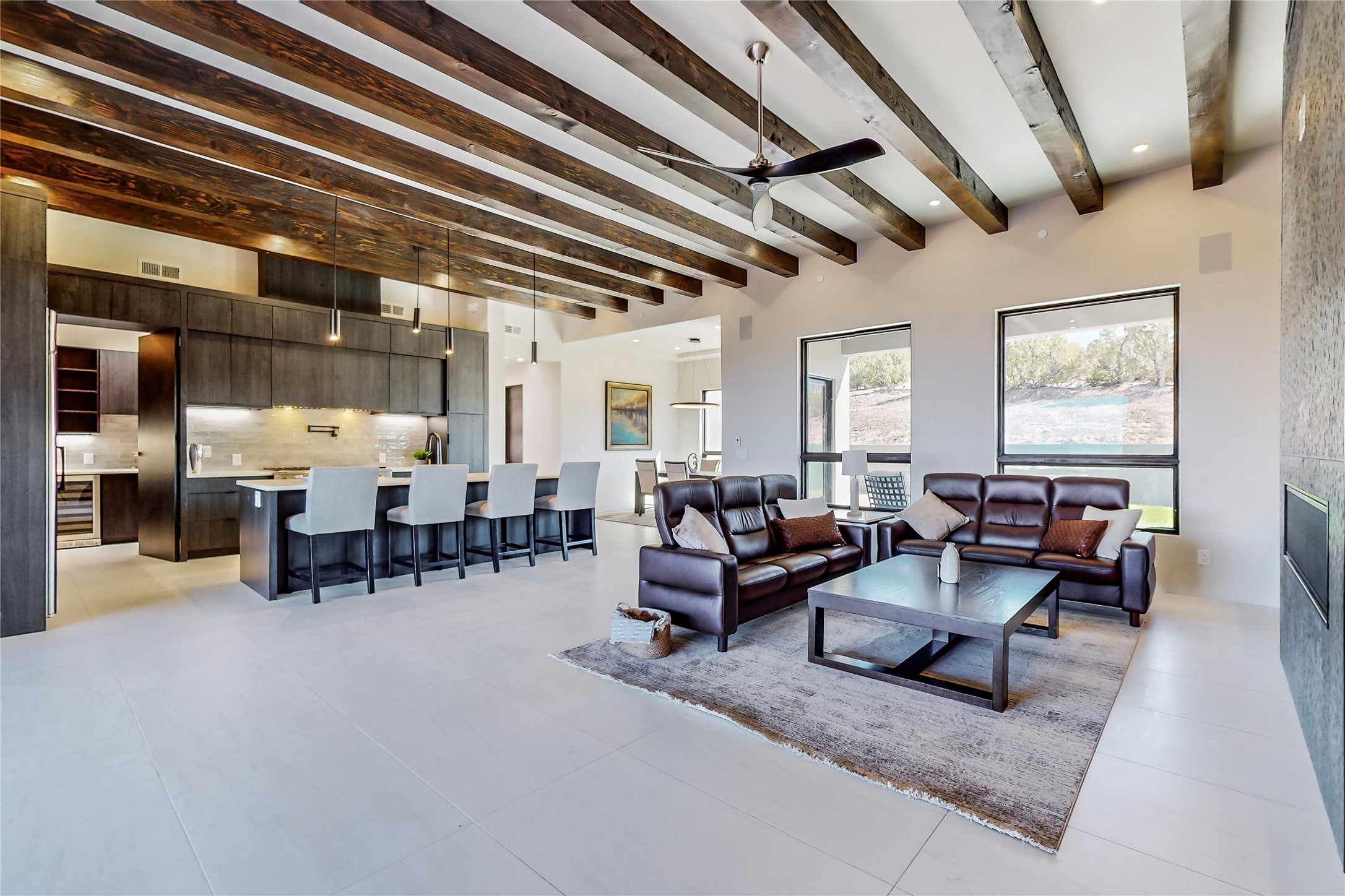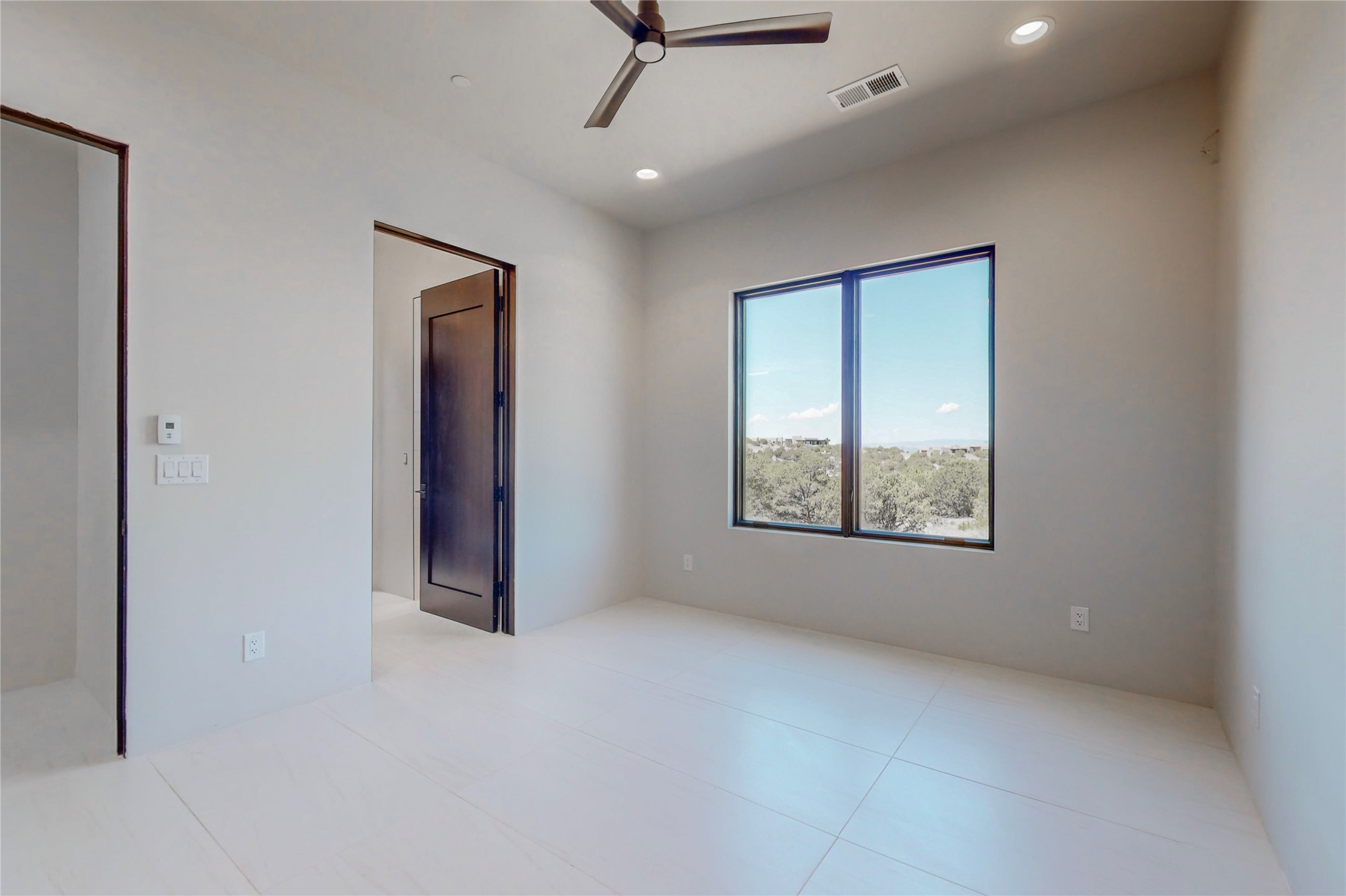 Come experience the latest custom home by Santa Fe Builders Construction, LLC. Set on one of the last remaining lots in the exclusive Sundance Ridge community. This enclave of exceptional custom homes is married to Santa Fe's most sought after land of rolling hills, unparalleled views and privacy. Your new home is at the end of a private cul-de-sac, tucked in on a ridge and overlooking the Jemez mountain range. Delivering stunning sunsets, and starry nights; it feels like you own the west. The soft pueblo contemporary features an open concept floor plan, exquisite kitchen and butler's pantry, luxurious master suite, plus two additional bedrooms, and a heated garage. Glass panel, vanishing pocket doors in the great room blur the lines between indoor and outdoor space, leading you to an expansive, view filled, covered portal with outdoor kitchen and fire pit. Enjoy instant comfort in any season with in-floor radiant heat and refrigerated air. Located just 15 minutes from downtown means quick access to everything Santa Fe while still feeling worlds away.