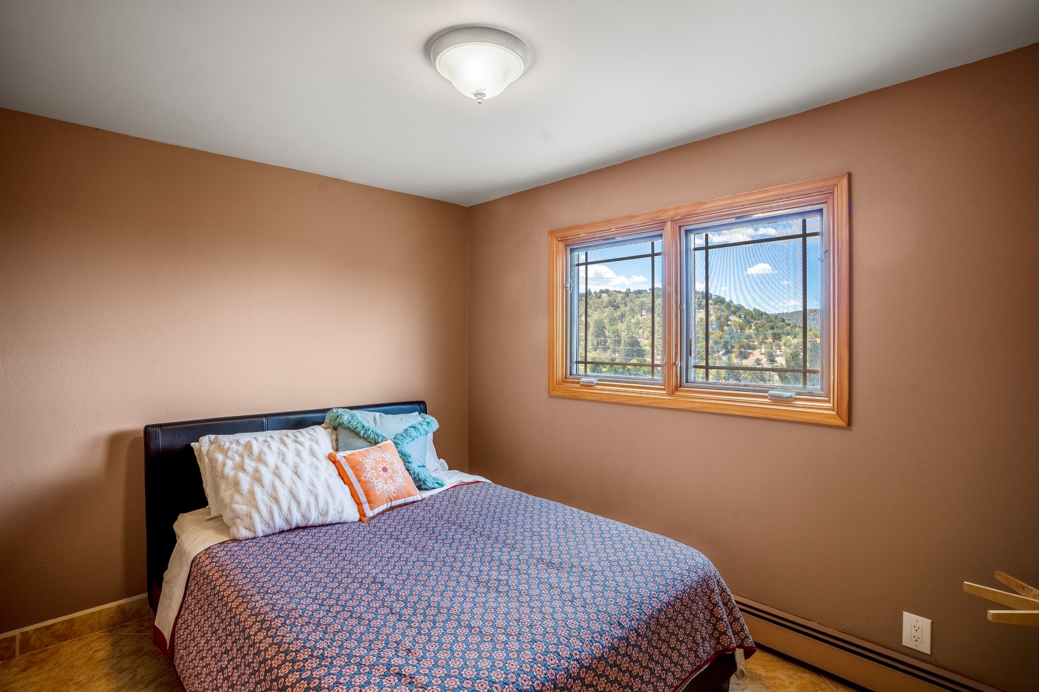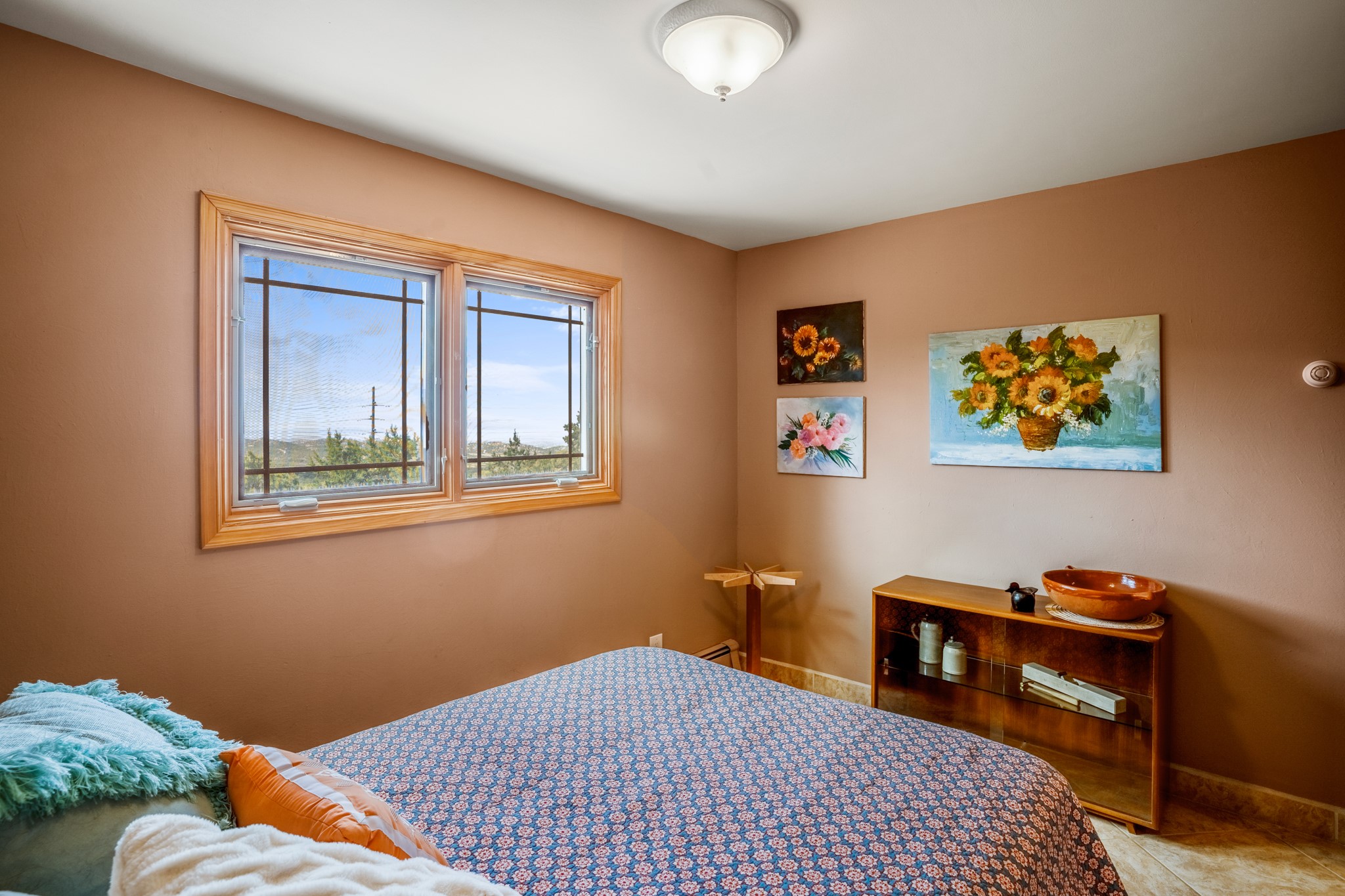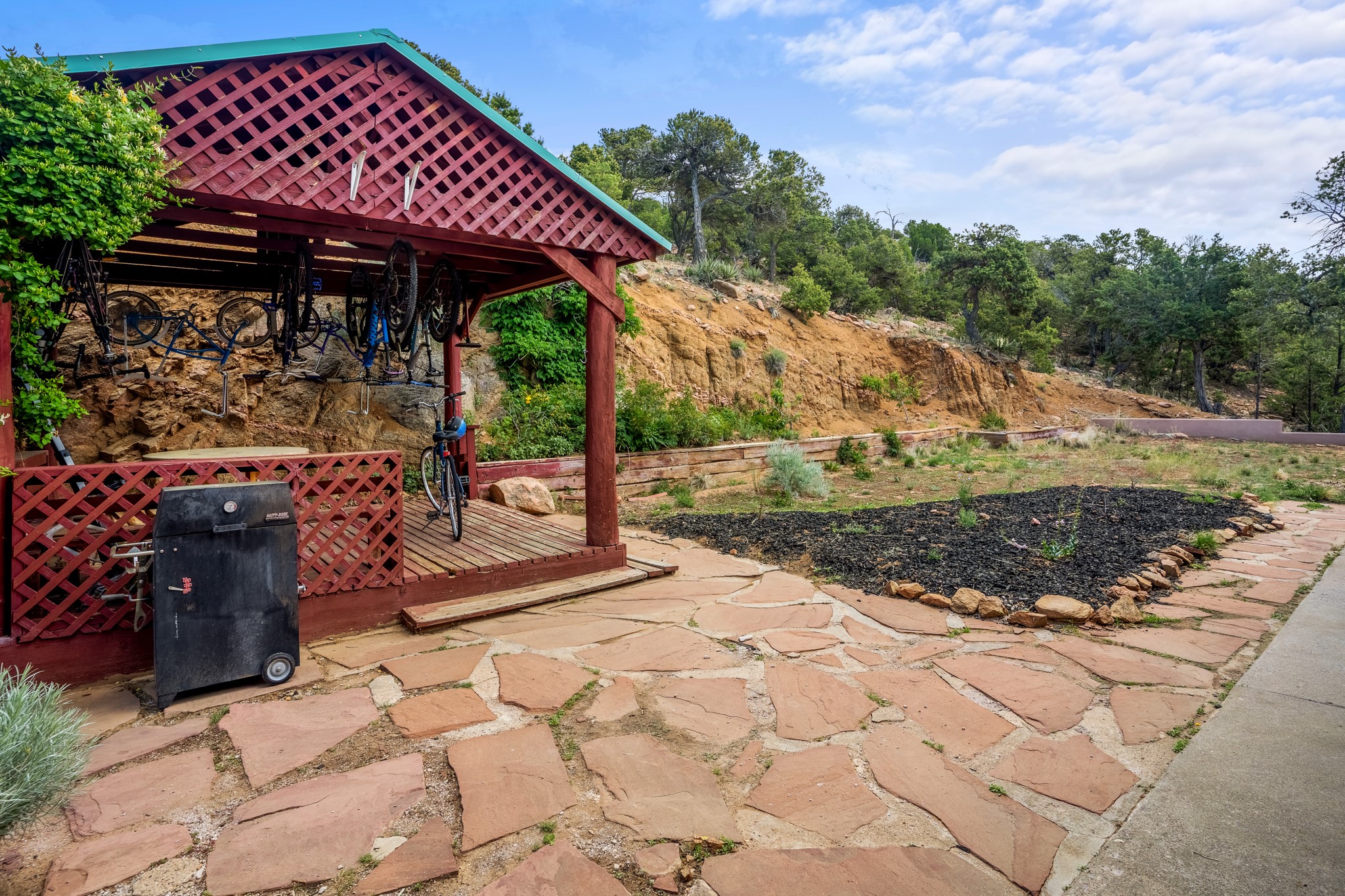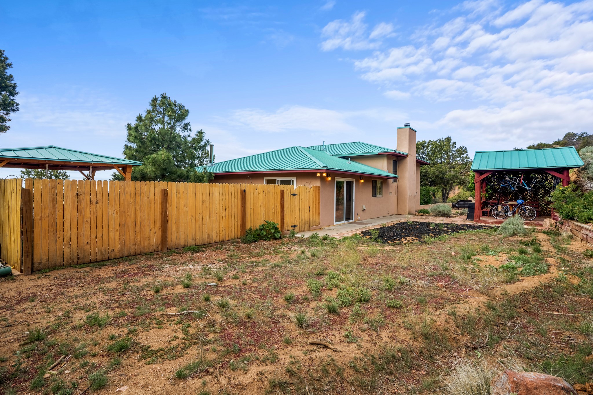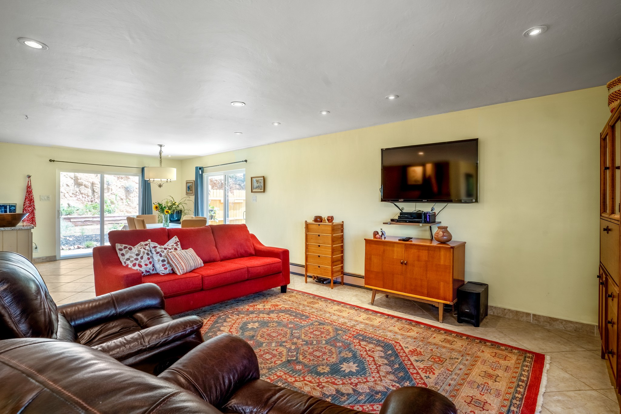 This home offers all the benefits that come along with being nestled among the pinon in the foothills ofSanta Fe. Deer are frequent visitors to the property, and a variety of other wildlife have been seen.Enjoy the view, dazzling night skies, peace and quiet while being only 15 minutes from the heart of SantaFe's plaza. The sleek and contemporary look of the home is complemented by its open floor plan, wherenatural light is plentiful in the living, dining, and kitchen areas.