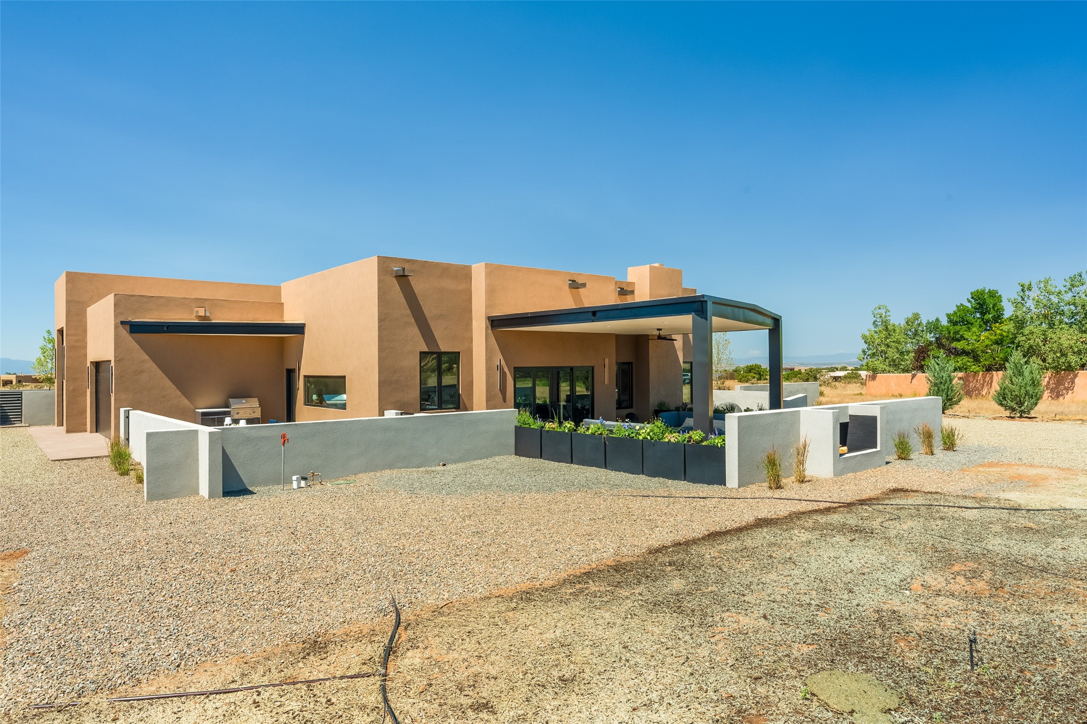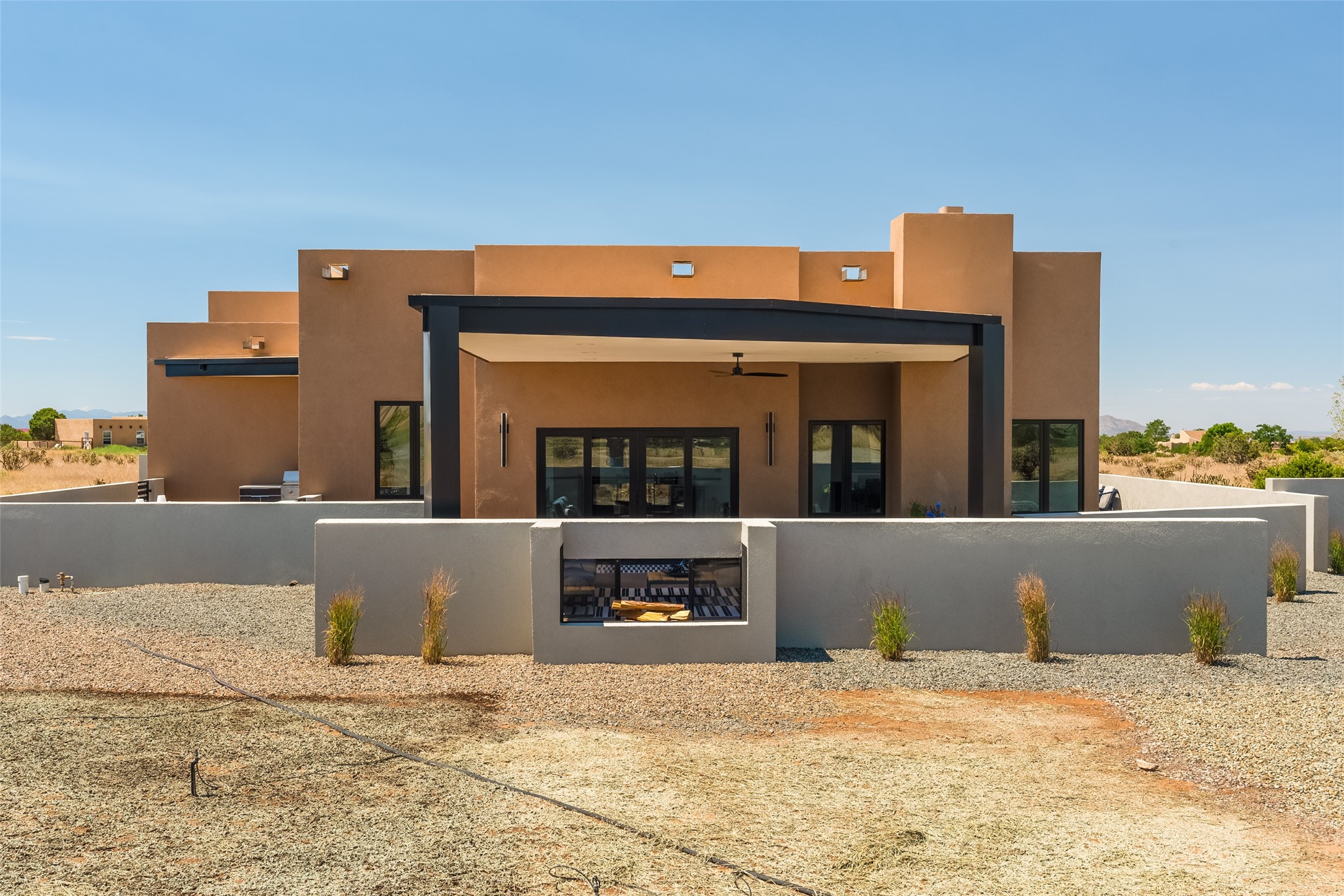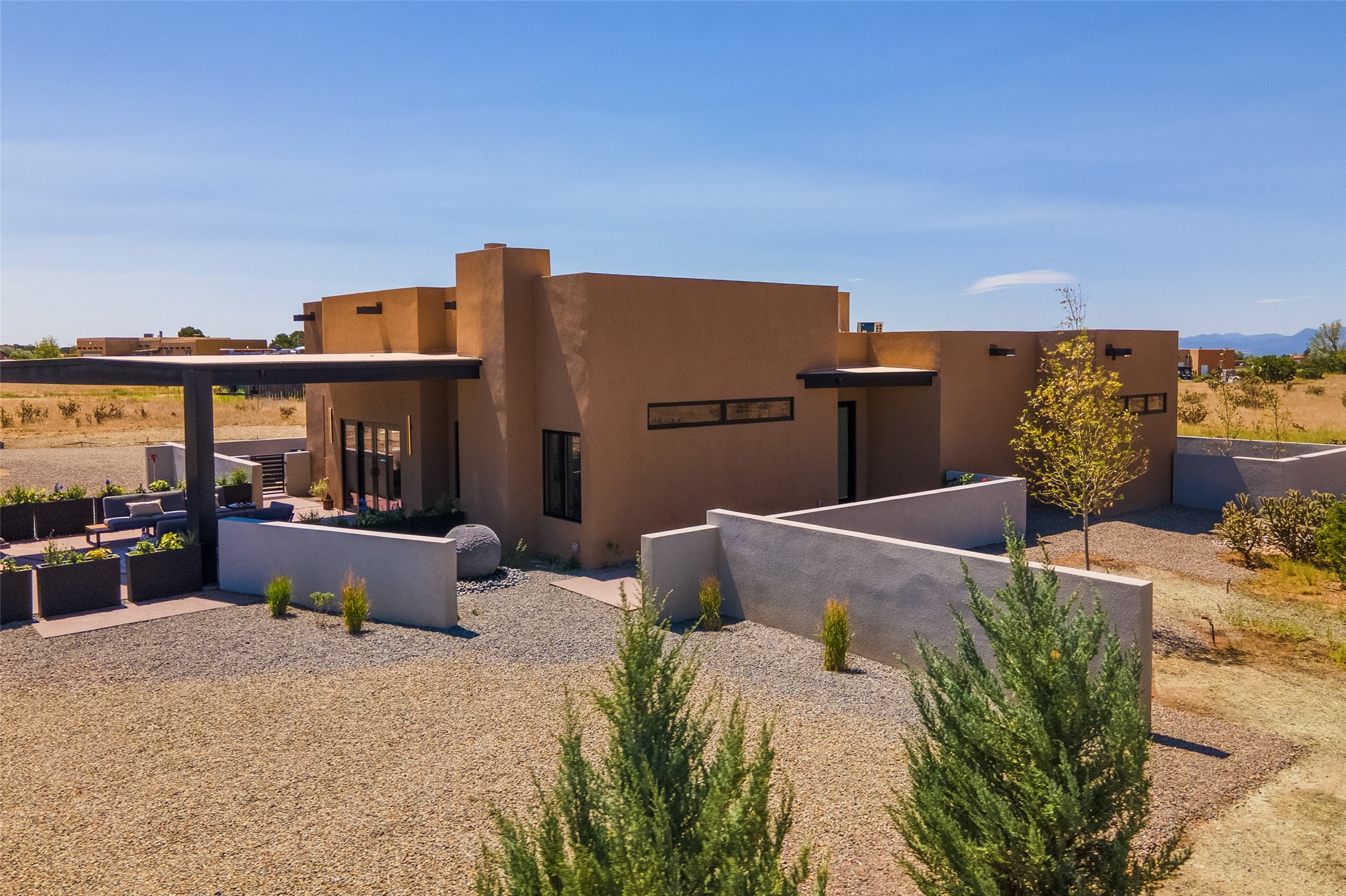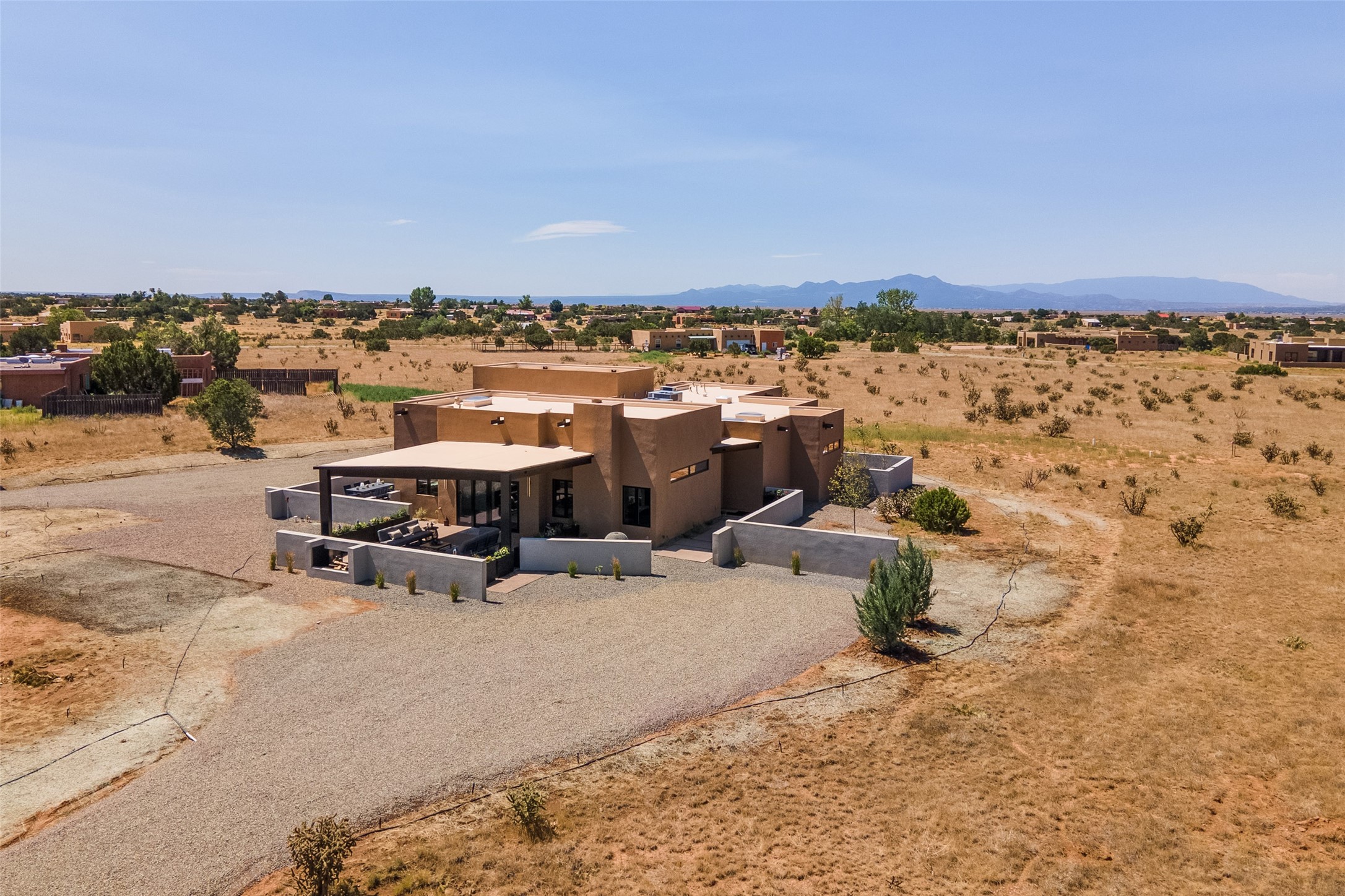 *2023 Haciendas Parade of Homes "President's Award for Excellence" WINNER* Exceptional New Construction in Eldorado! Pueblo Contemporary, recently completed (mid August 2023) by local building team, Acacia Builders. Perfectly sited to capture mountain views in every direction, this 3,050 sqft +/- residence is the ultimate example of what Acacia Builders does best: Sleek contemporary style, thoughtful details, unique concrete accents, versatile spaces, and green built amenities. Every room is bathed in natural light and polished with luxurious finishes. A bonus RV garage or studio is the "little something extra" you didn't know you were looking for. An amazing find in one of the most beautiful backdrops Santa Fe has to offer.