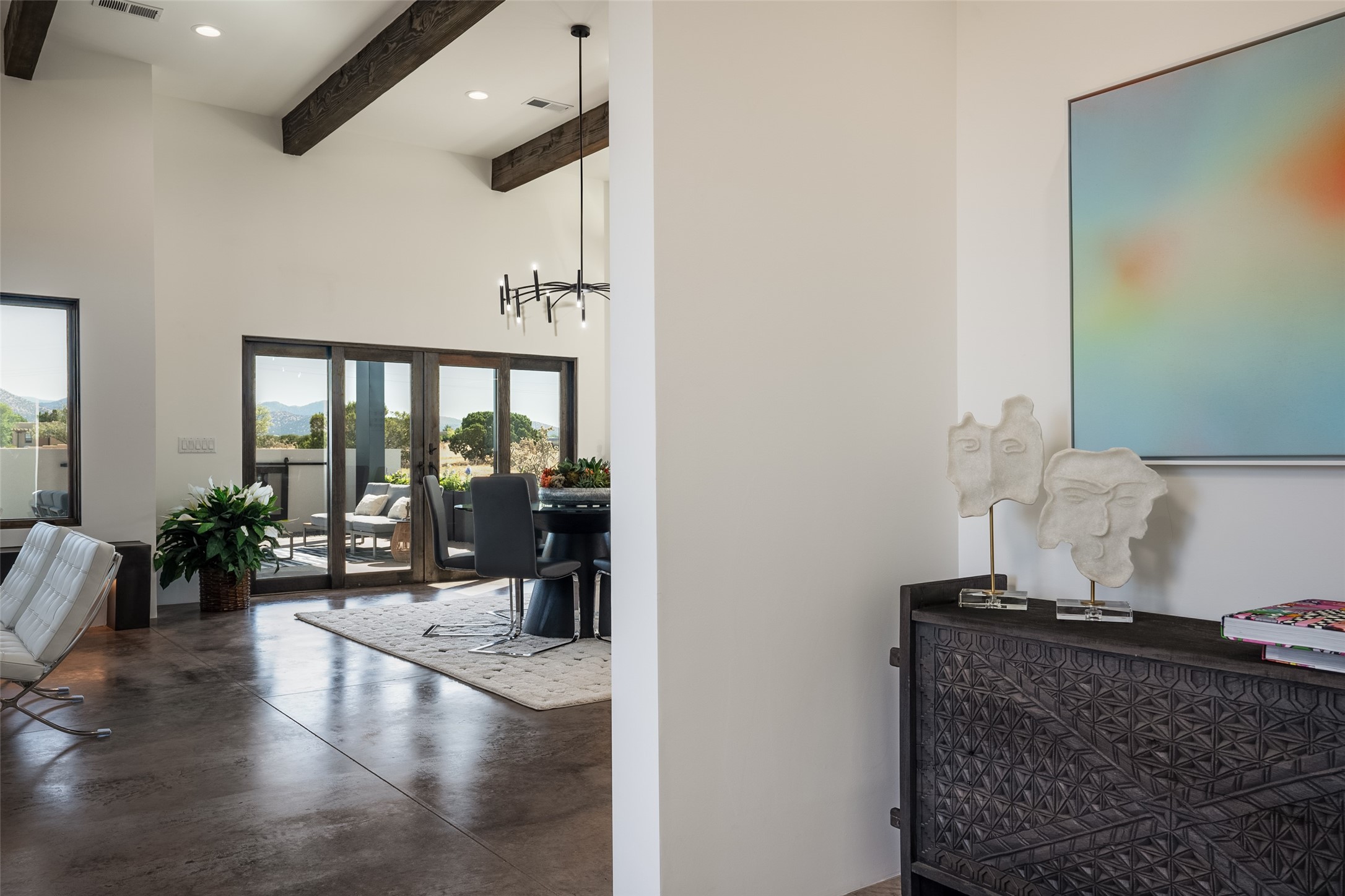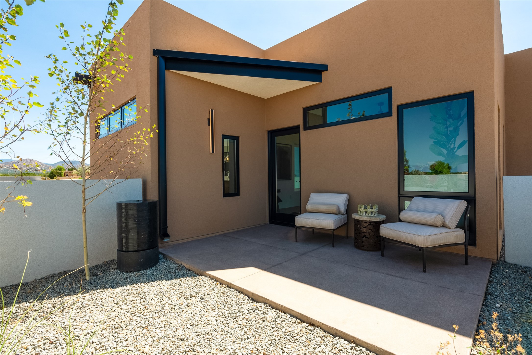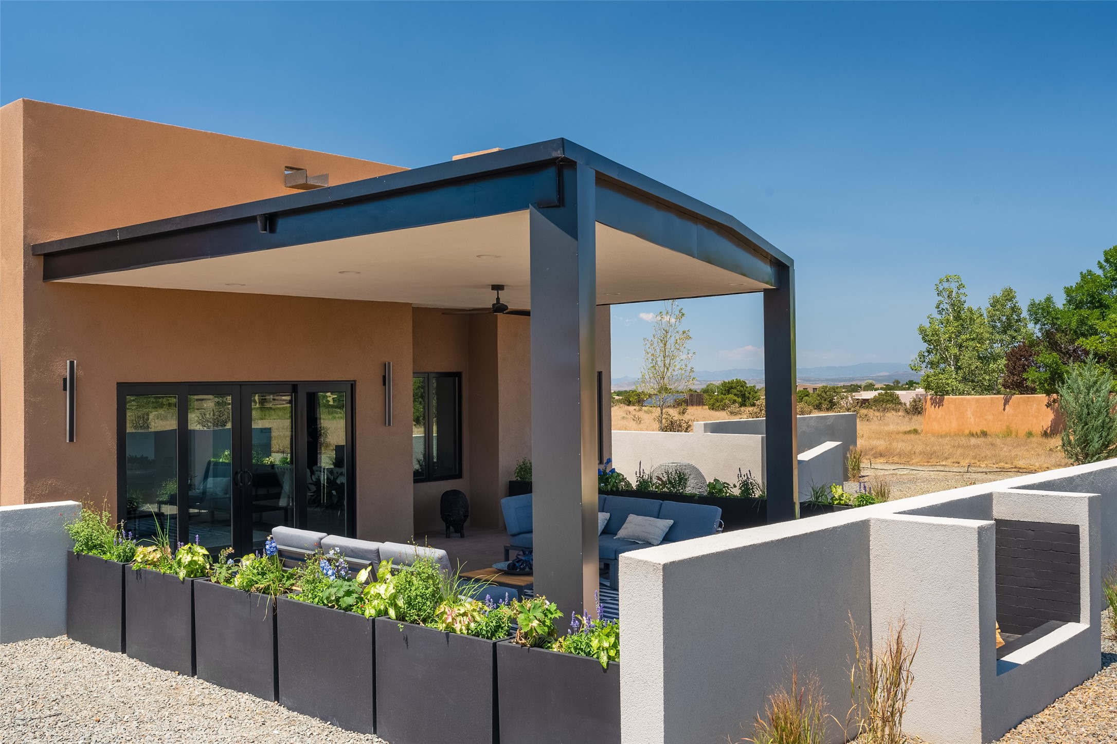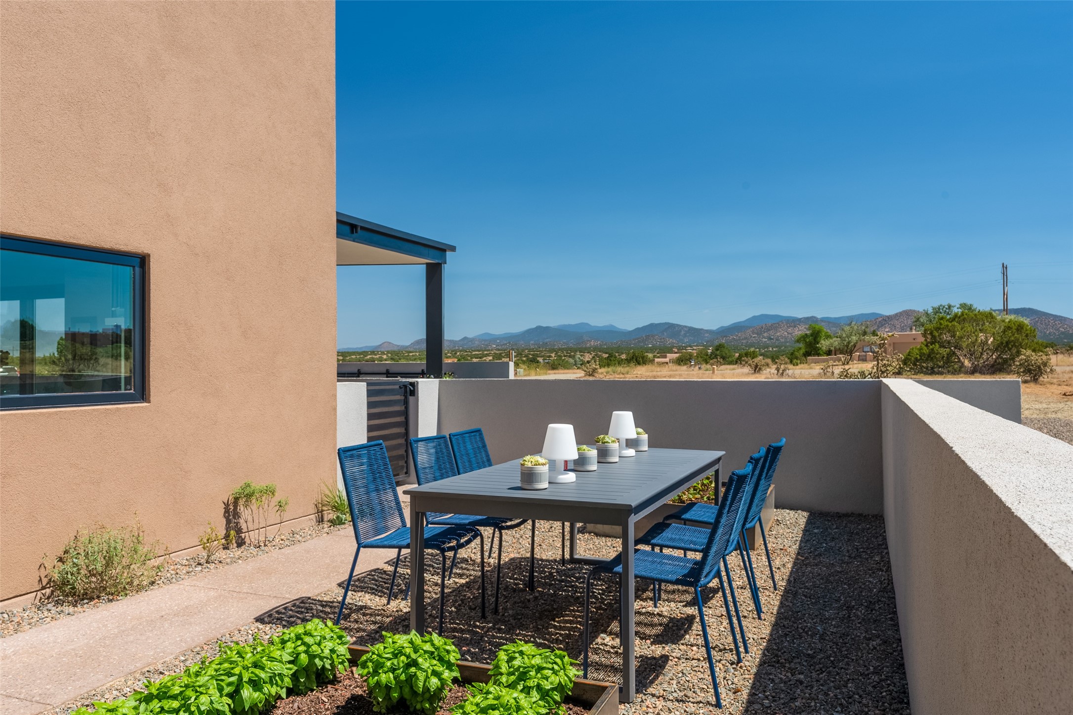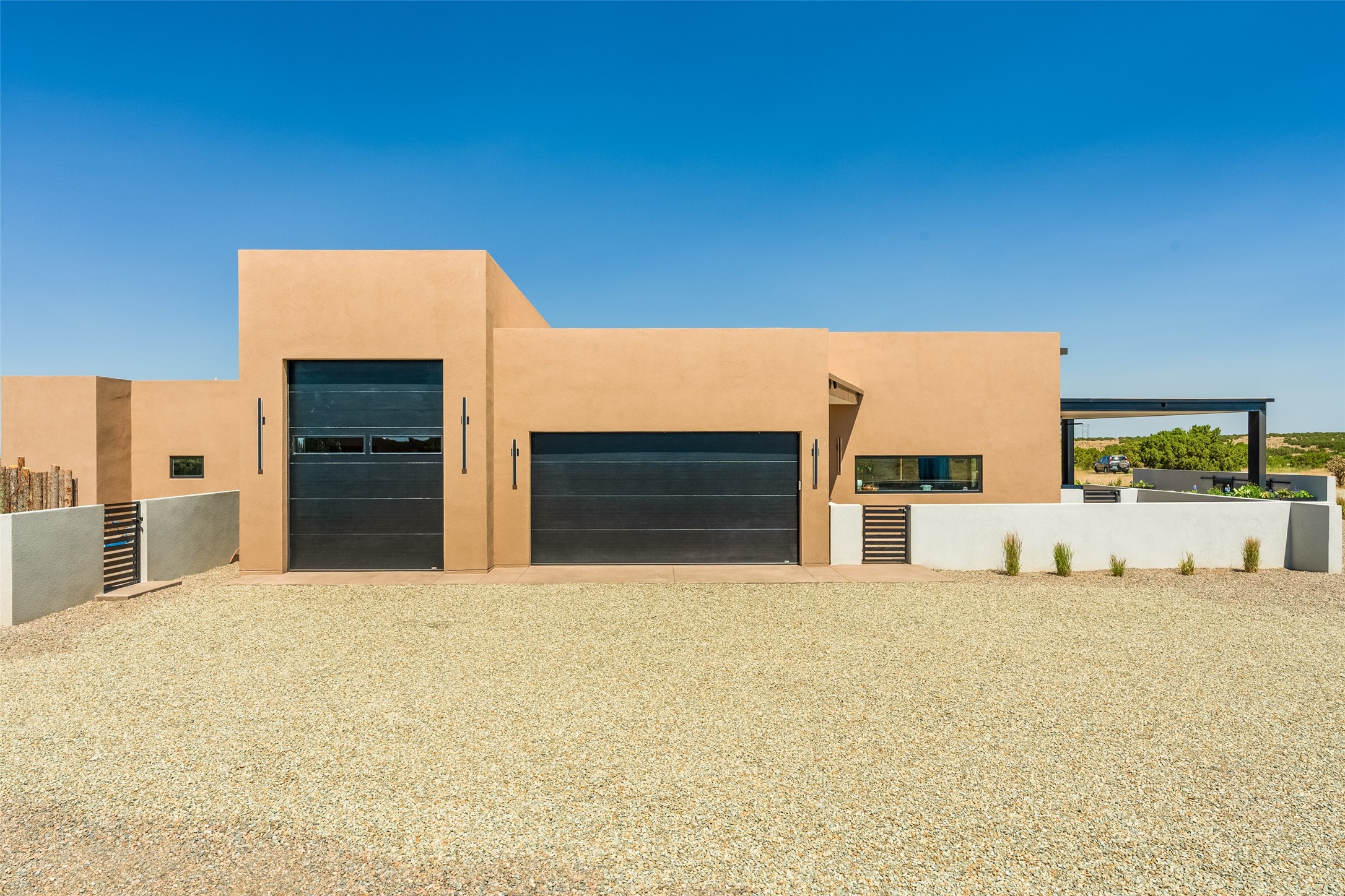 *2023 Haciendas Parade of Homes "President's Award for Excellence" WINNER* Exceptional New Construction in Eldorado! Pueblo Contemporary, recently completed (mid August 2023) by local building team, Acacia Builders. Perfectly sited to capture mountain views in every direction, this 3,050 sqft +/- residence is the ultimate example of what Acacia Builders does best: Sleek contemporary style, thoughtful details, unique concrete accents, versatile spaces, and green built amenities. Every room is bathed in natural light and polished with luxurious finishes. A bonus RV garage or studio is the "little something extra" you didn't know you were looking for. An amazing find in one of the most beautiful backdrops Santa Fe has to offer.