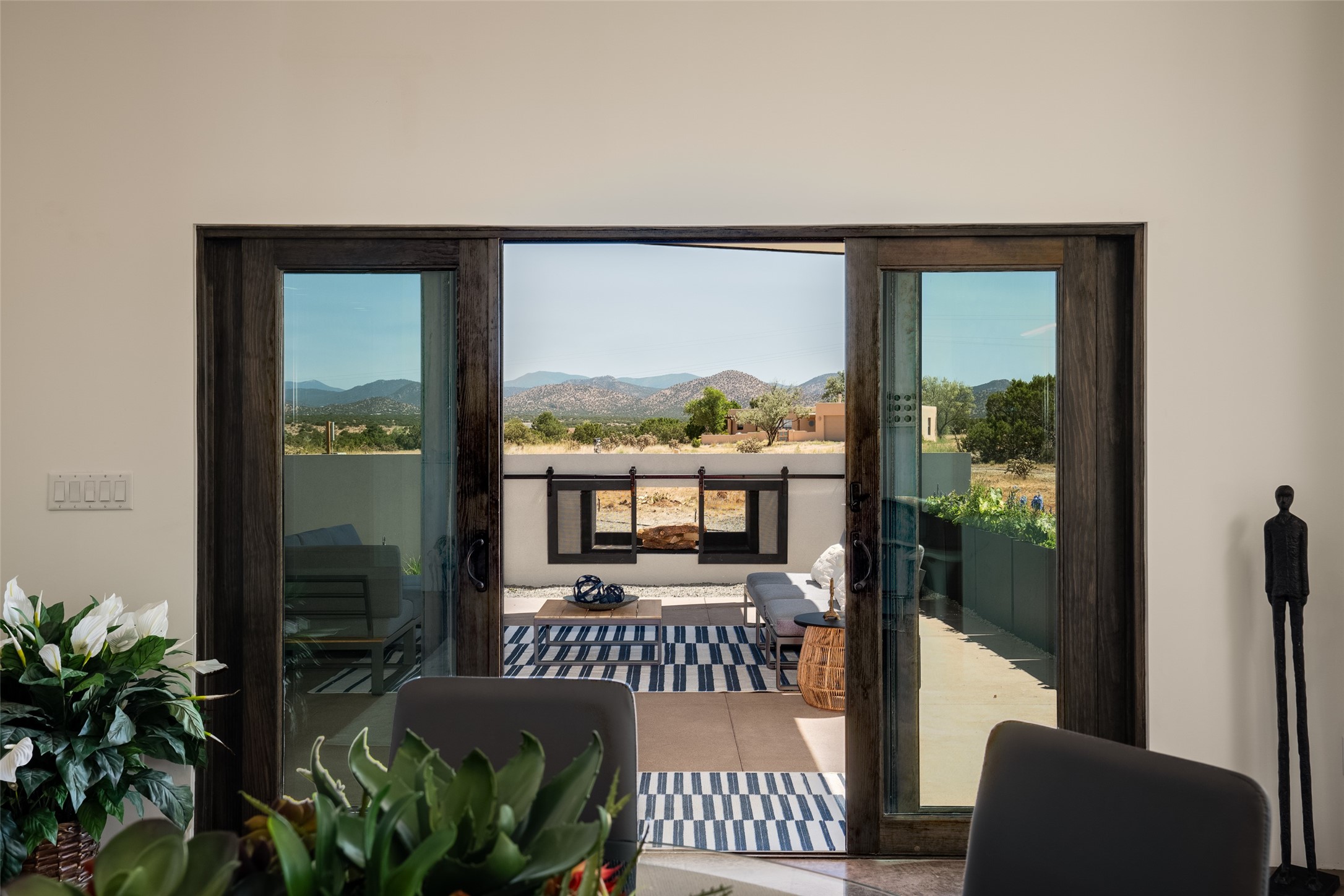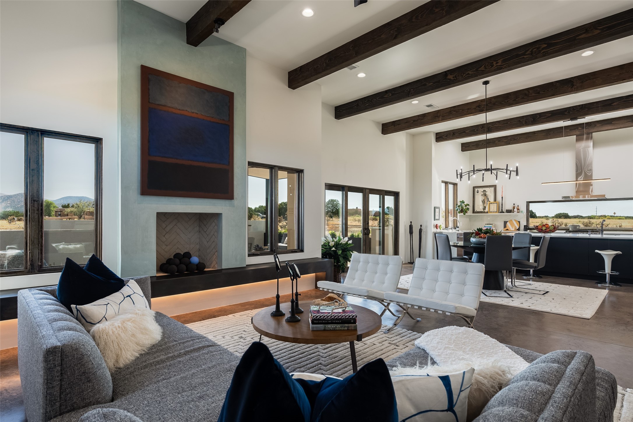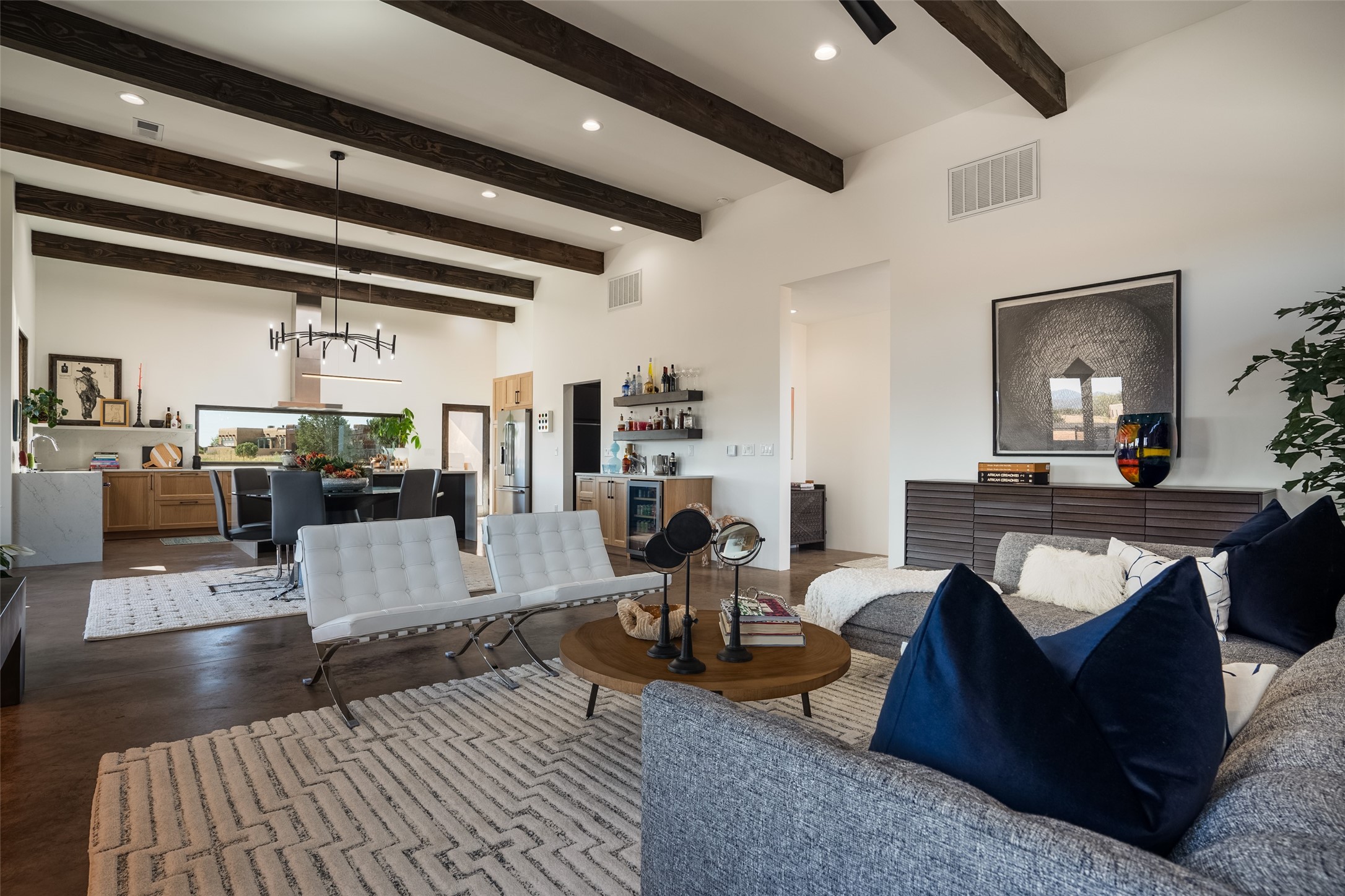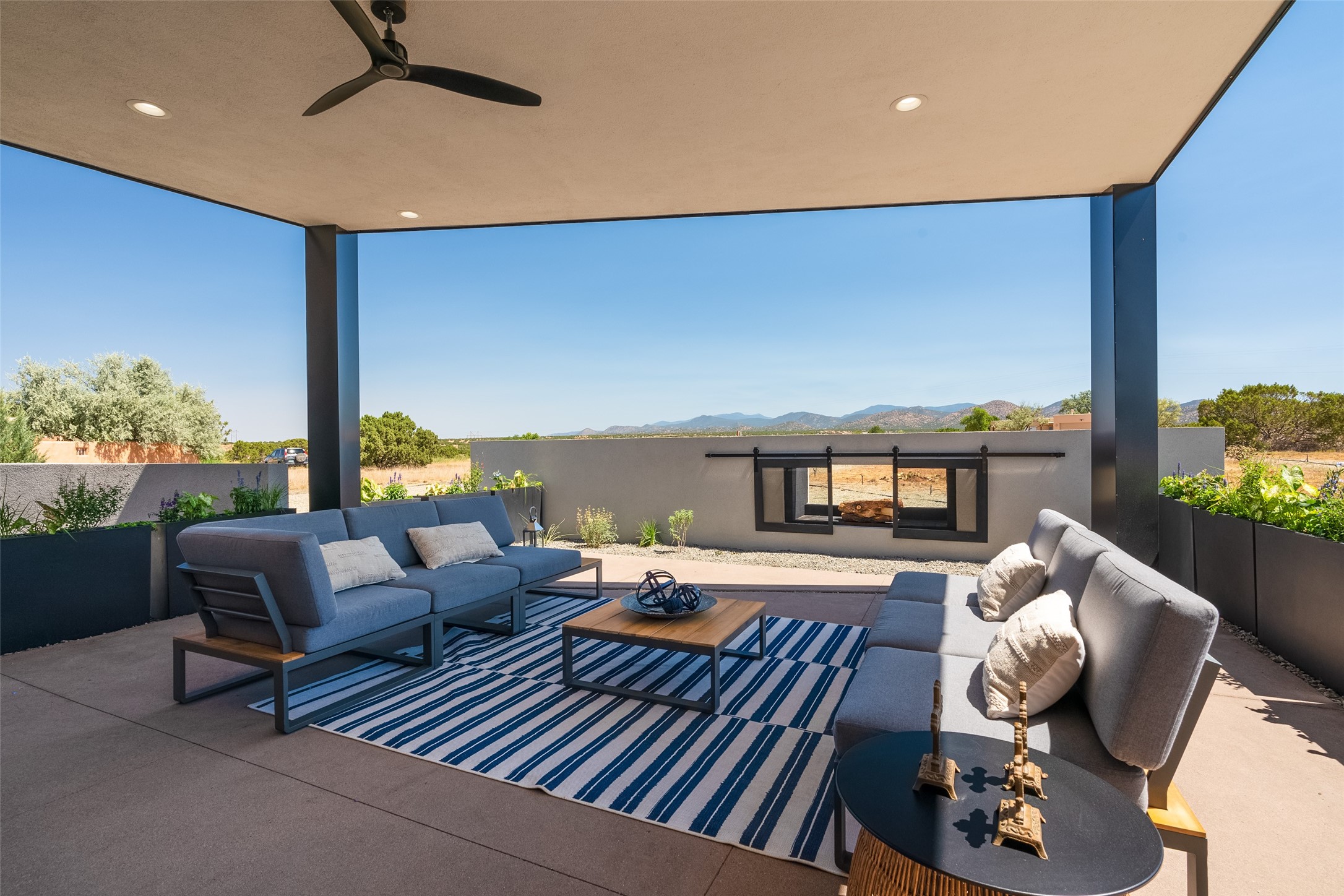 *2023 Haciendas Parade of Homes "President's Award for Excellence" WINNER* Exceptional New Construction in Eldorado! Pueblo Contemporary, recently completed (mid August 2023) by local building team, Acacia Builders. Perfectly sited to capture mountain views in every direction, this 3,050 sqft +/- residence is the ultimate example of what Acacia Builders does best: Sleek contemporary style, thoughtful details, unique concrete accents, versatile spaces, and green built amenities. Every room is bathed in natural light and polished with luxurious finishes. A bonus RV garage or studio is the "little something extra" you didn't know you were looking for. An amazing find in one of the most beautiful backdrops Santa Fe has to offer.