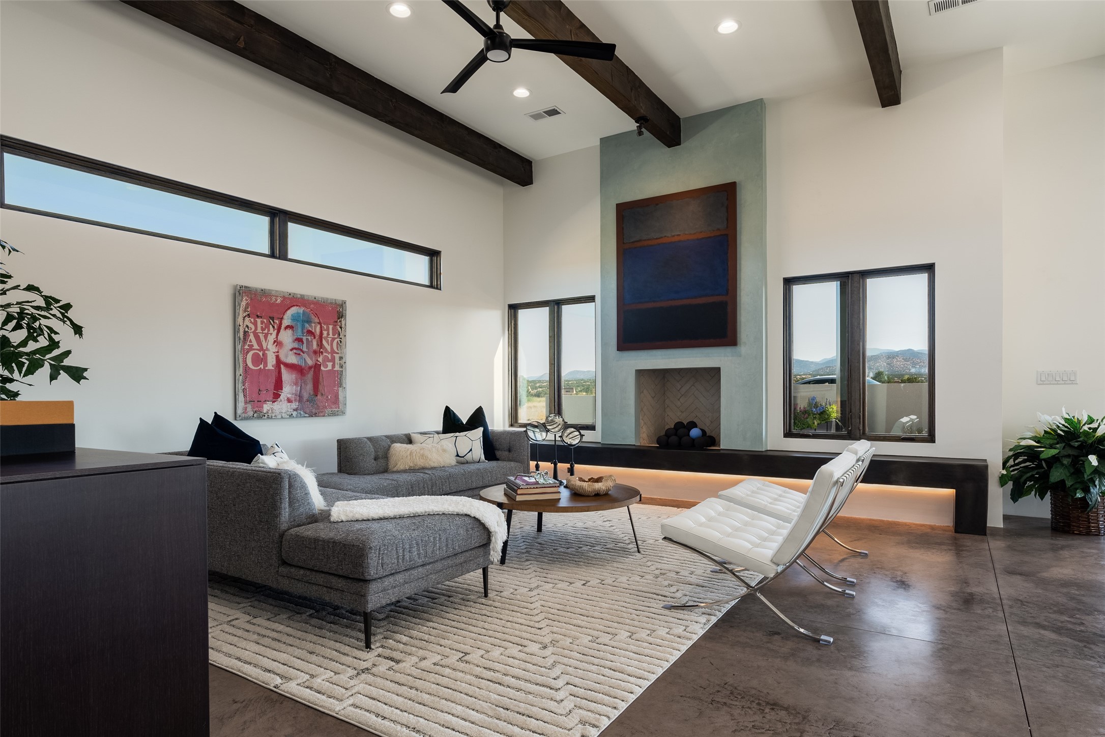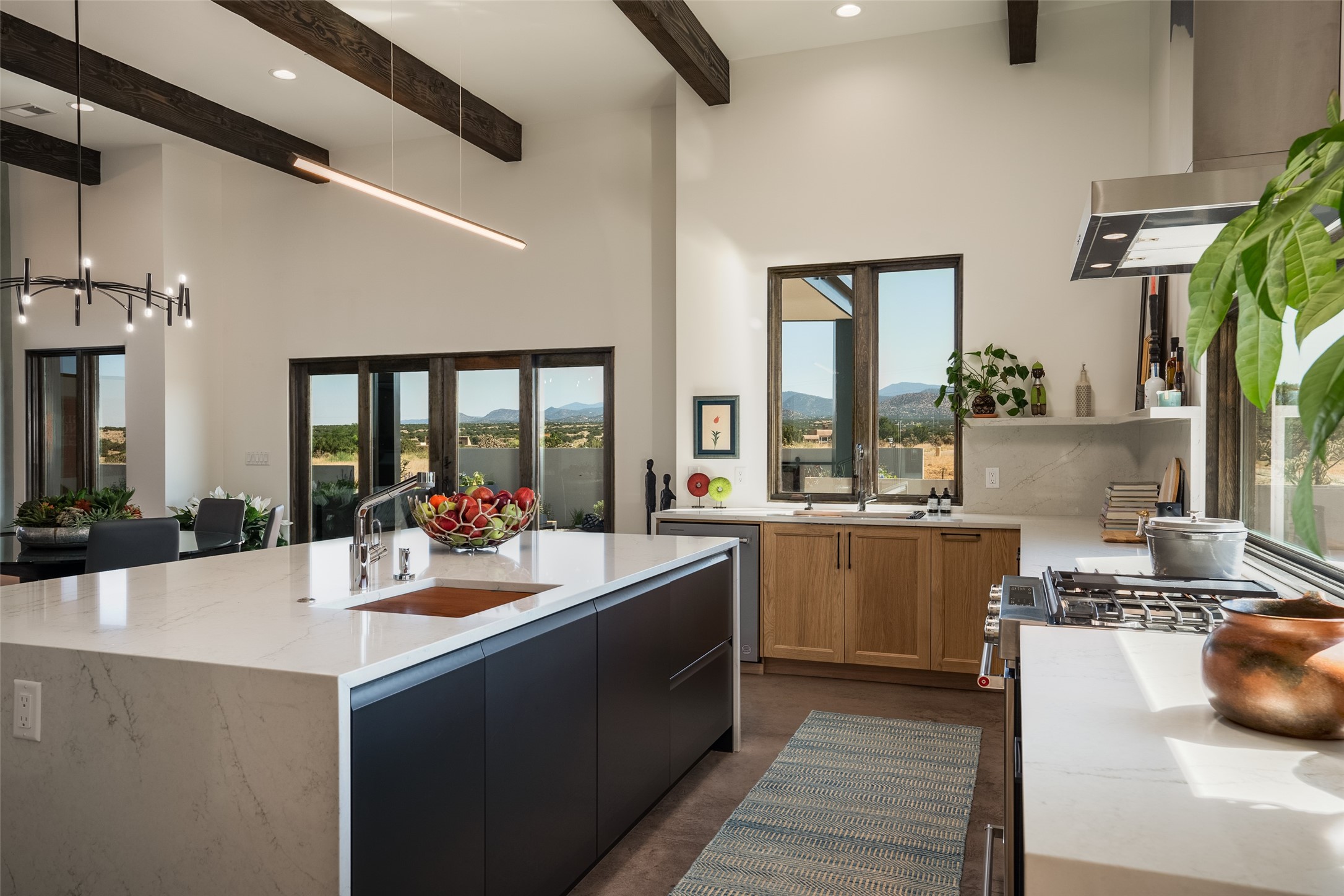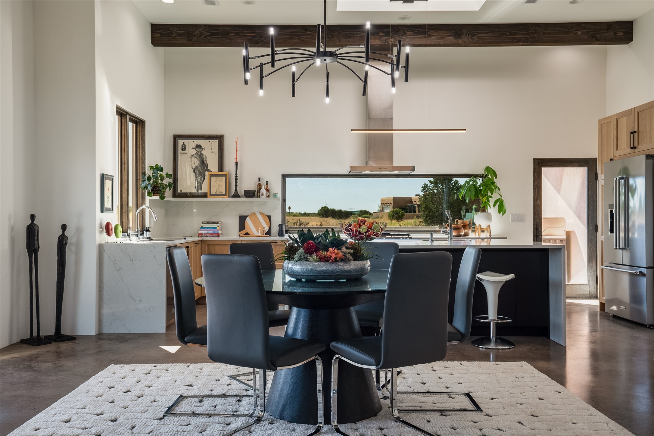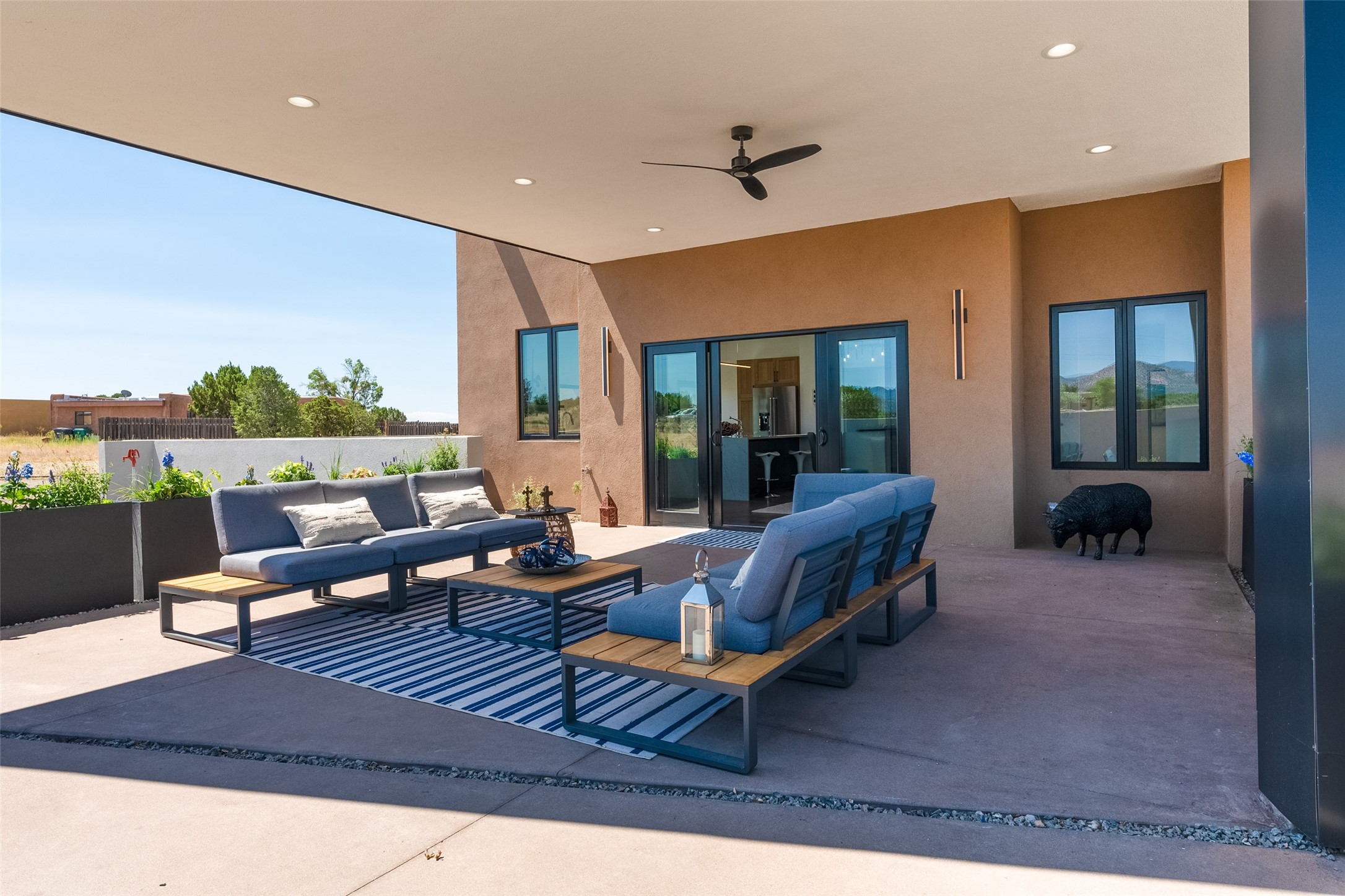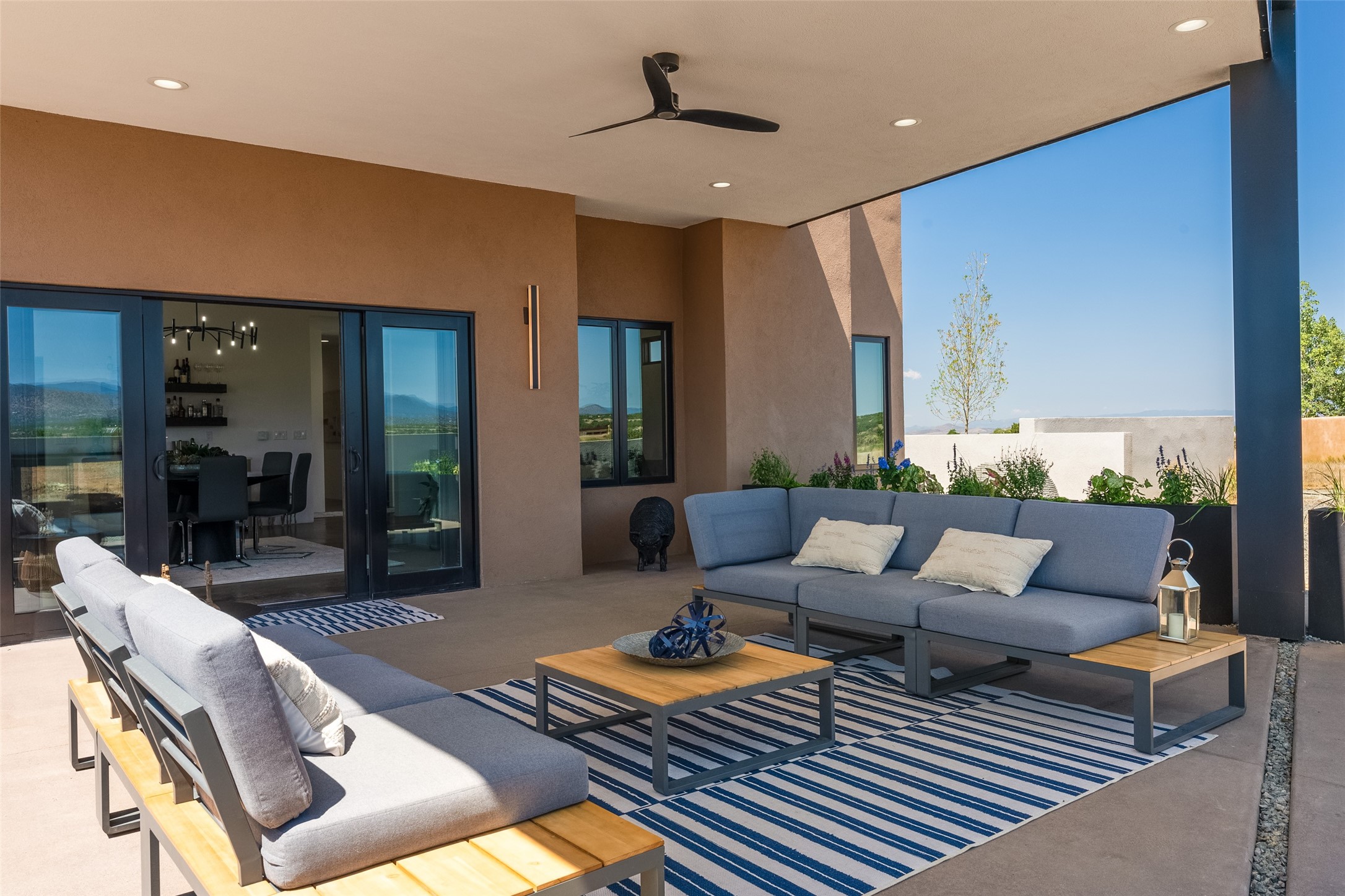 *2023 Haciendas Parade of Homes "President's Award for Excellence" WINNER* Exceptional New Construction in Eldorado! Pueblo Contemporary, recently completed (mid August 2023) by local building team, Acacia Builders. Perfectly sited to capture mountain views in every direction, this 3,050 sqft +/- residence is the ultimate example of what Acacia Builders does best: Sleek contemporary style, thoughtful details, unique concrete accents, versatile spaces, and green built amenities. Every room is bathed in natural light and polished with luxurious finishes. A bonus RV garage or studio is the "little something extra" you didn't know you were looking for. An amazing find in one of the most beautiful backdrops Santa Fe has to offer.