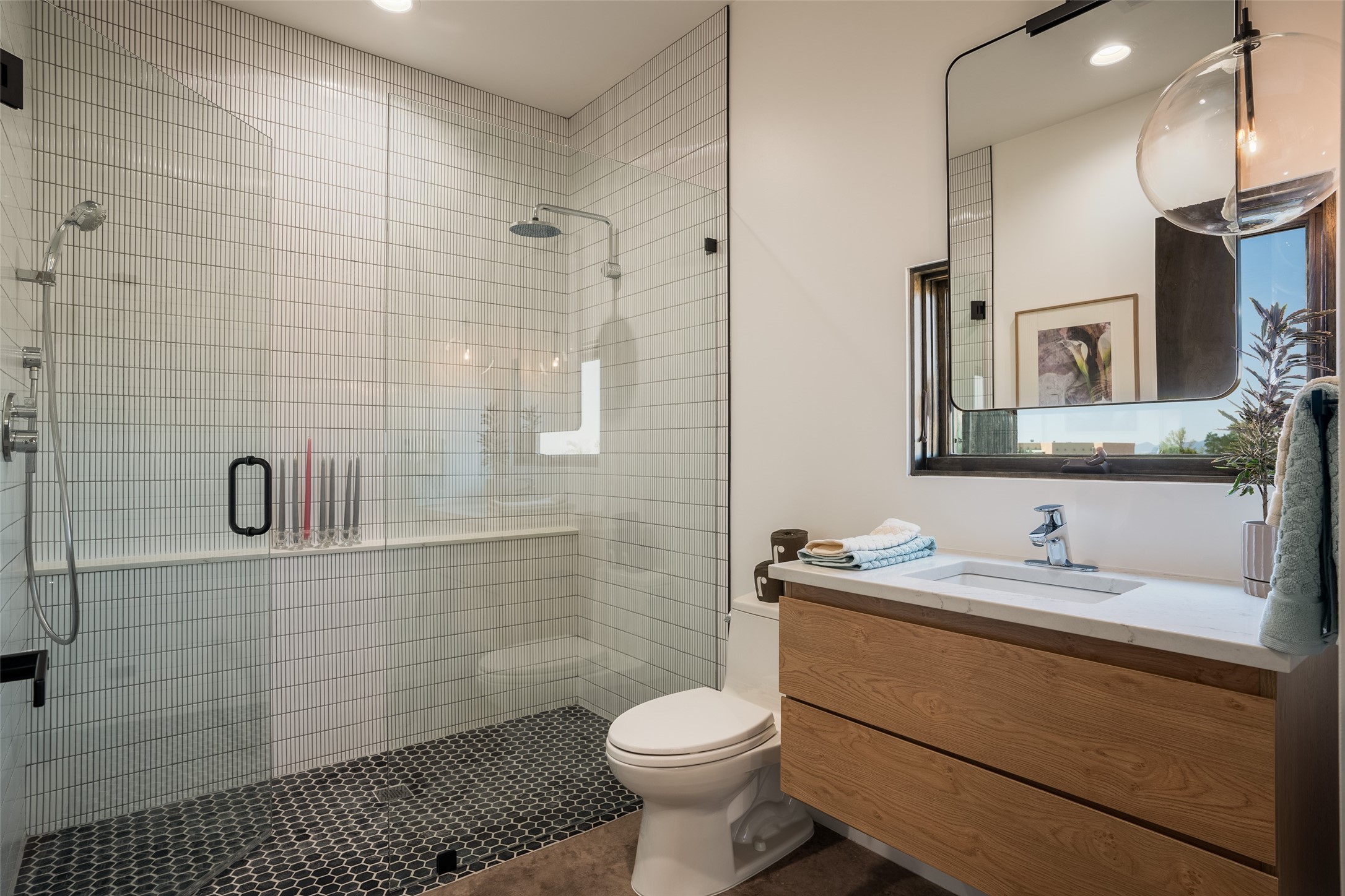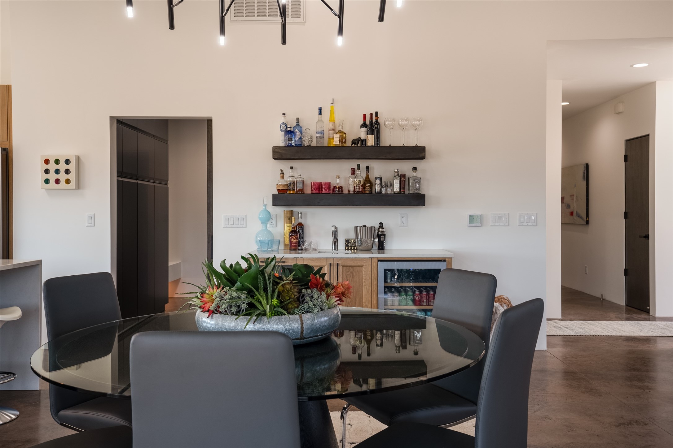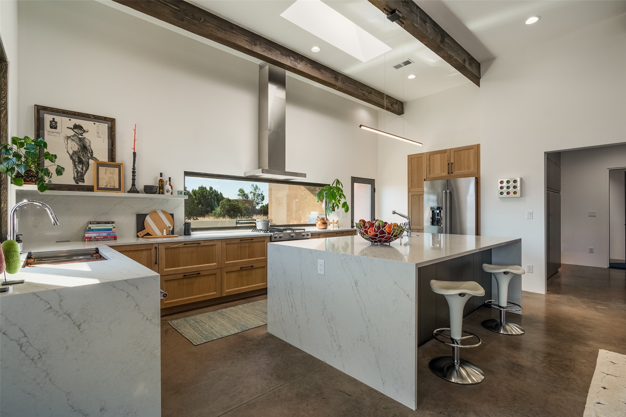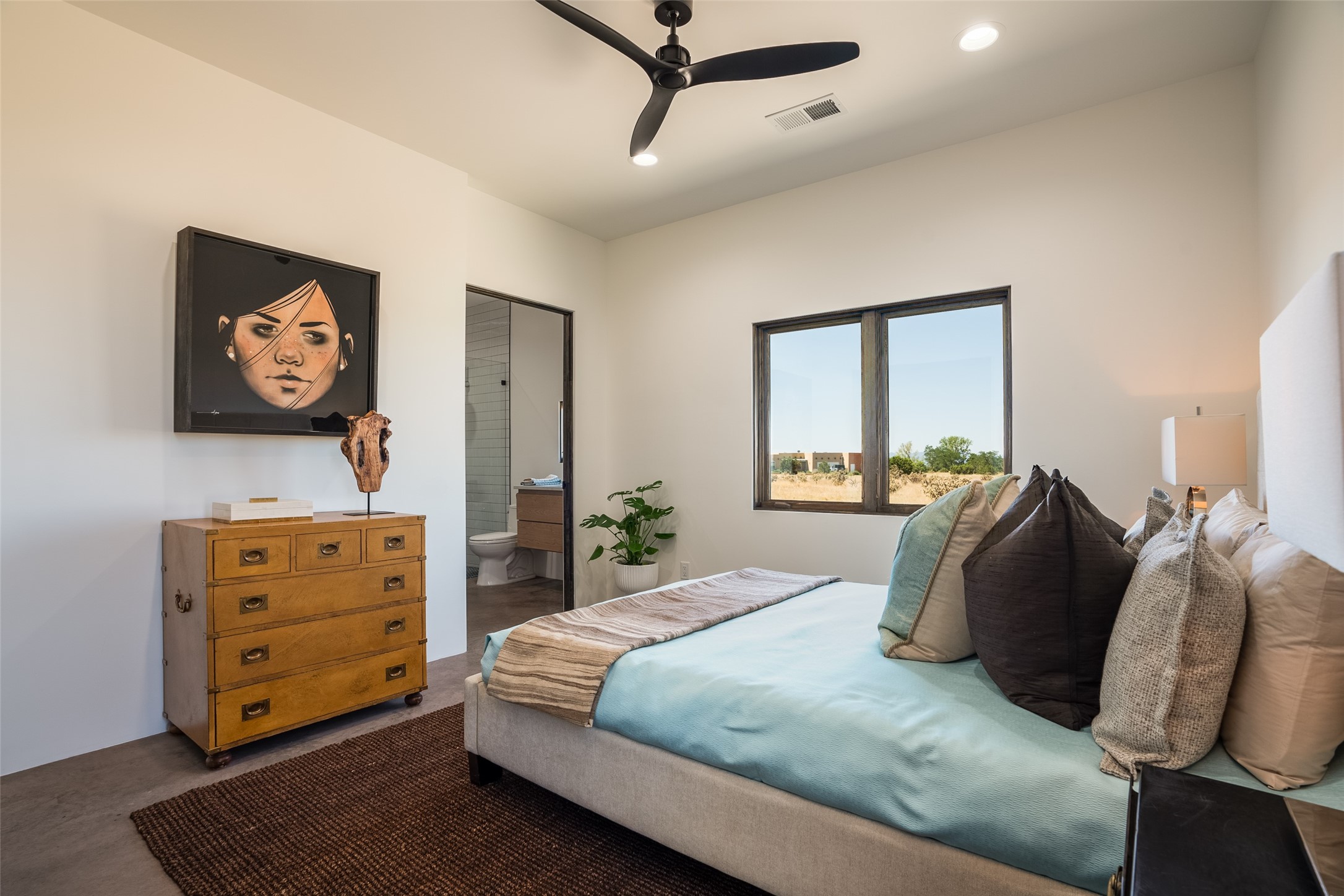 *2023 Haciendas Parade of Homes "President's Award for Excellence" WINNER* Exceptional New Construction in Eldorado! Pueblo Contemporary, recently completed (mid August 2023) by local building team, Acacia Builders. Perfectly sited to capture mountain views in every direction, this 3,050 sqft +/- residence is the ultimate example of what Acacia Builders does best: Sleek contemporary style, thoughtful details, unique concrete accents, versatile spaces, and green built amenities. Every room is bathed in natural light and polished with luxurious finishes. A bonus RV garage or studio is the "little something extra" you didn't know you were looking for. An amazing find in one of the most beautiful backdrops Santa Fe has to offer.