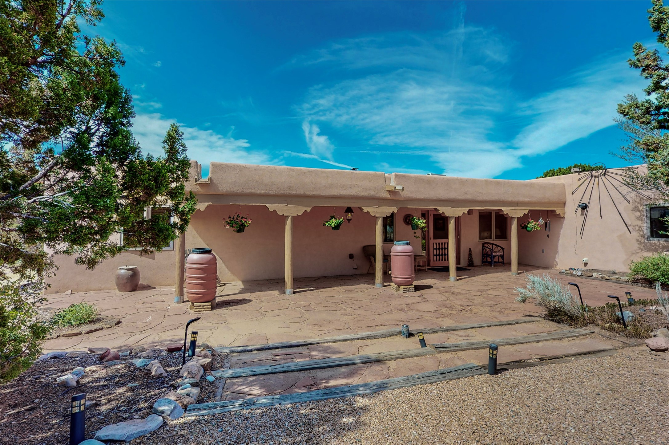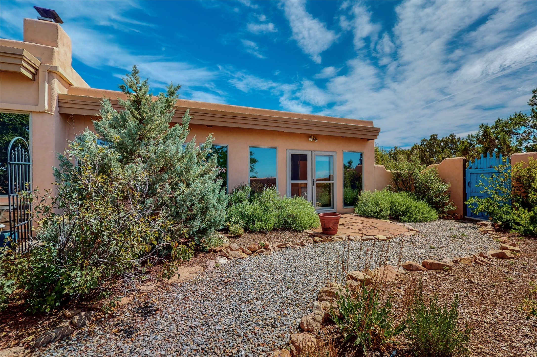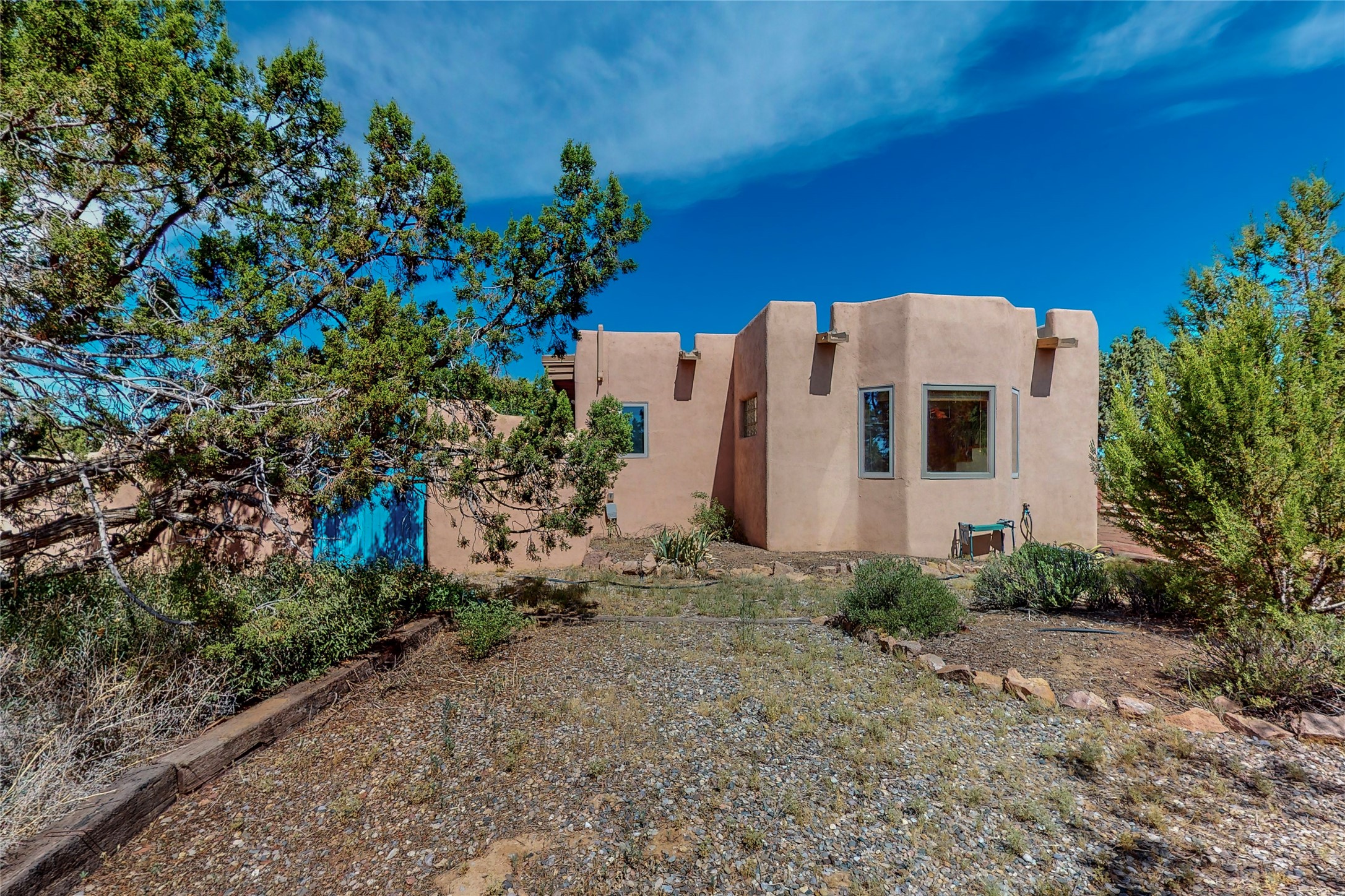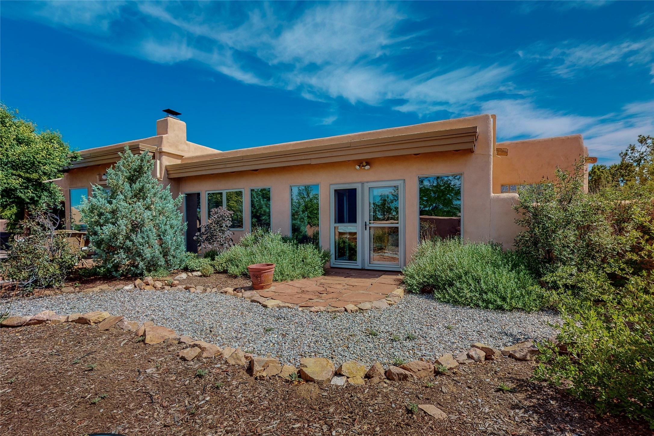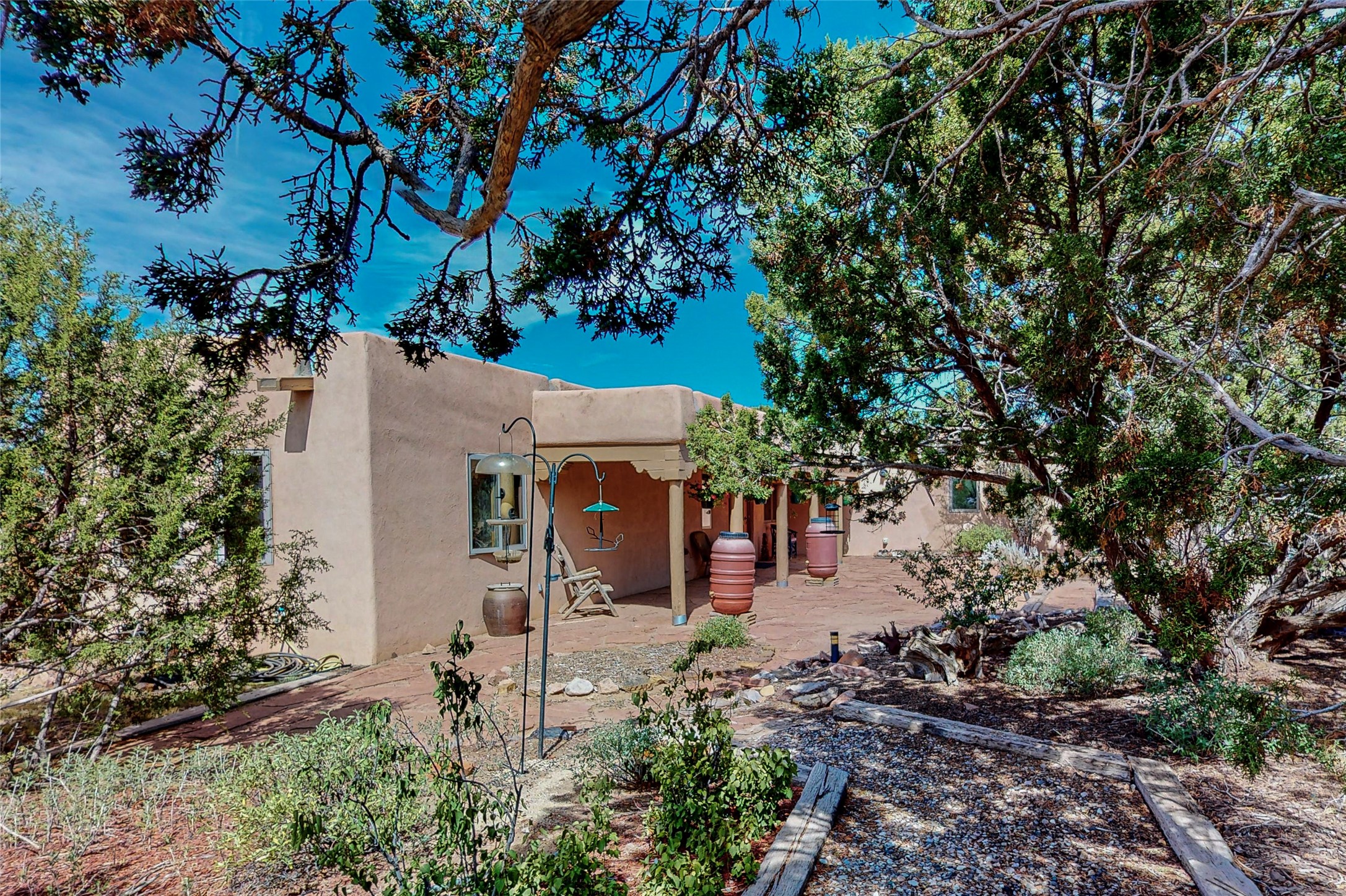 There is a lot to love about this delightful home custom built by Bowen & Picket Builders in the early 90's. Oozing with ambience and Santa Fe charm with Saltillo tile floors, viga ceilings, carved corbelled beams and kiva fireplace. A traditional pueblo design with added eco efficiency. Natural gas radiant heat, passive and active solar system, boiler and on demand hot water heater only 3 years old. A large multi purpose studio with storage room, 1 car garage, a sauna and hot tub. Fabulous privately walled gardens, water catchment cisterns and even a raised bed veggie patch. Privately located on a cul de sac with Eldorado views, access to the pool, tennis, pickleball, disc golf, parks and clubhouse activities yet only minutes into Santa Fe. This home is a must see.