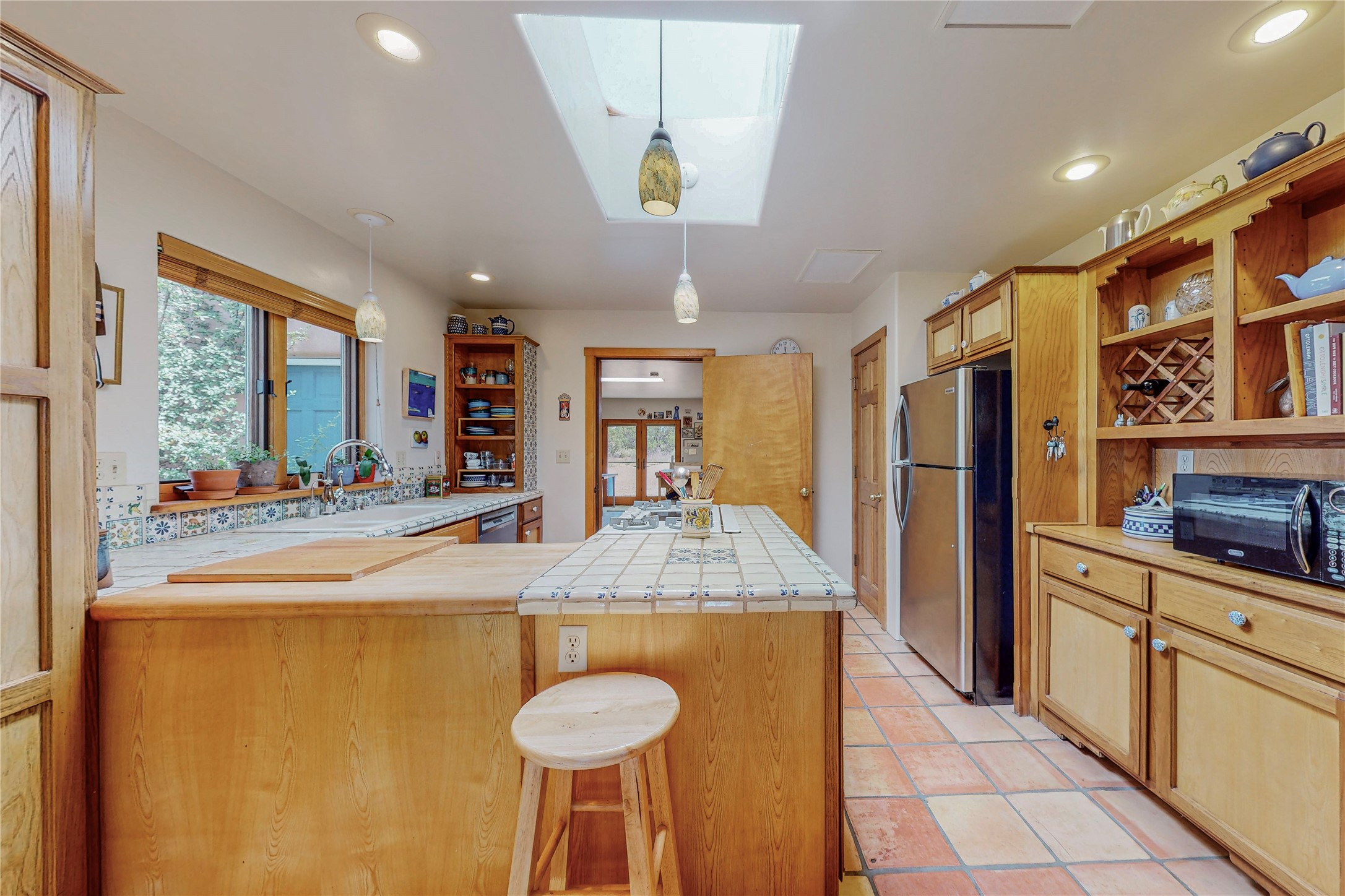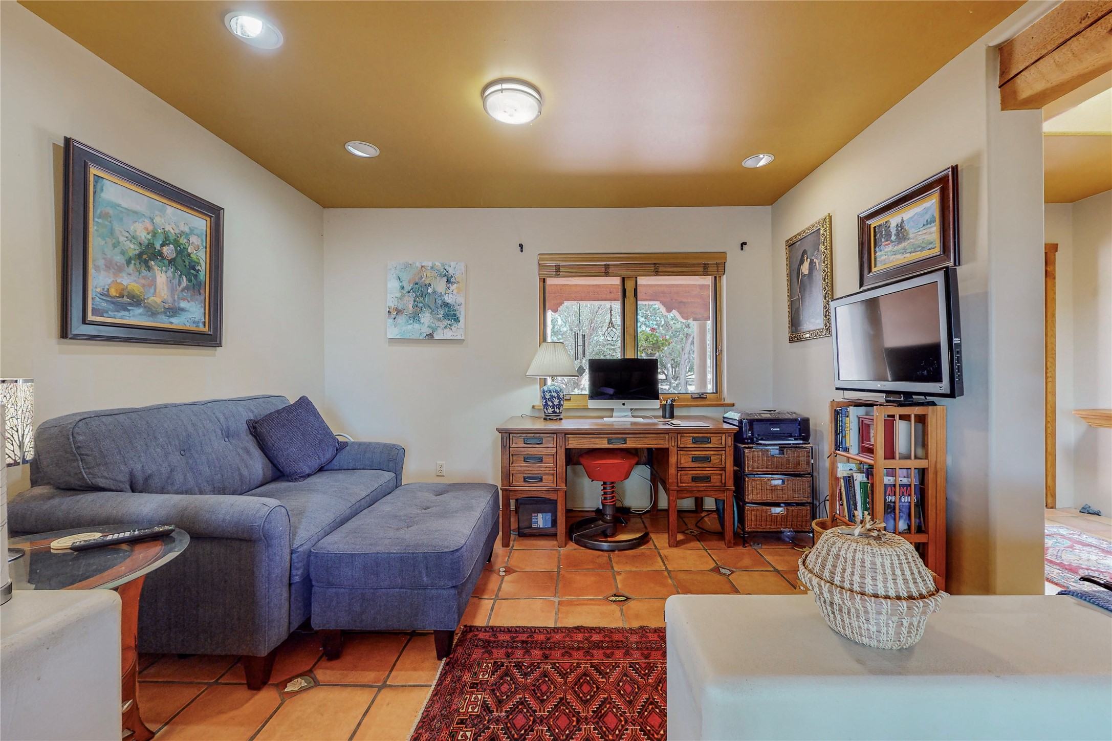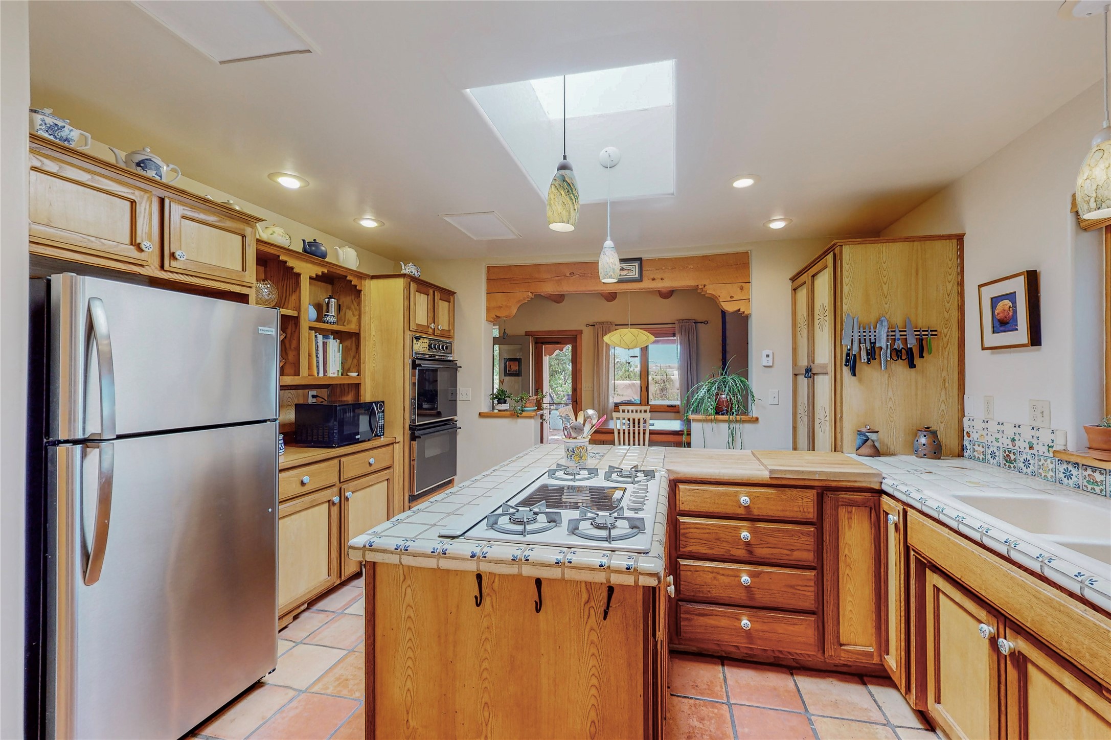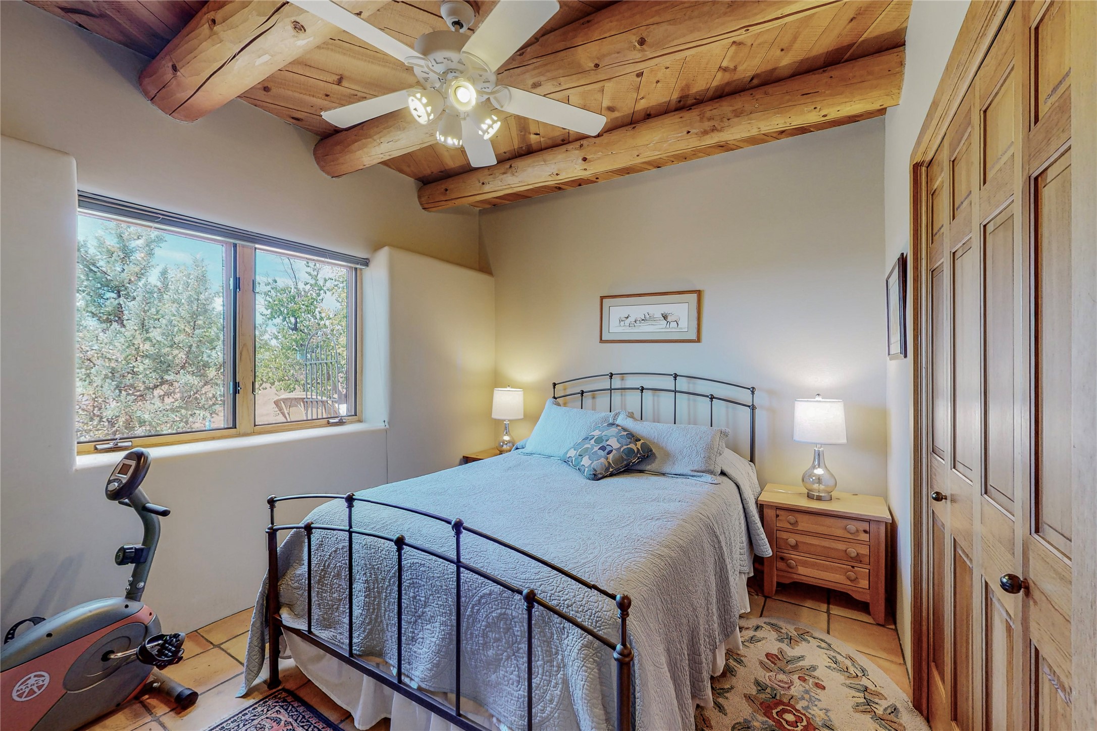 There is a lot to love about this delightful home custom built by Bowen & Picket Builders in the early 90's. Oozing with ambience and Santa Fe charm with Saltillo tile floors, viga ceilings, carved corbelled beams and kiva fireplace. A traditional pueblo design with added eco efficiency. Natural gas radiant heat, passive and active solar system, boiler and on demand hot water heater only 3 years old. A large multi purpose studio with storage room, 1 car garage, a sauna and hot tub. Fabulous privately walled gardens, water catchment cisterns and even a raised bed veggie patch. Privately located on a cul de sac with Eldorado views, access to the pool, tennis, pickleball, disc golf, parks and clubhouse activities yet only minutes into Santa Fe. This home is a must see.