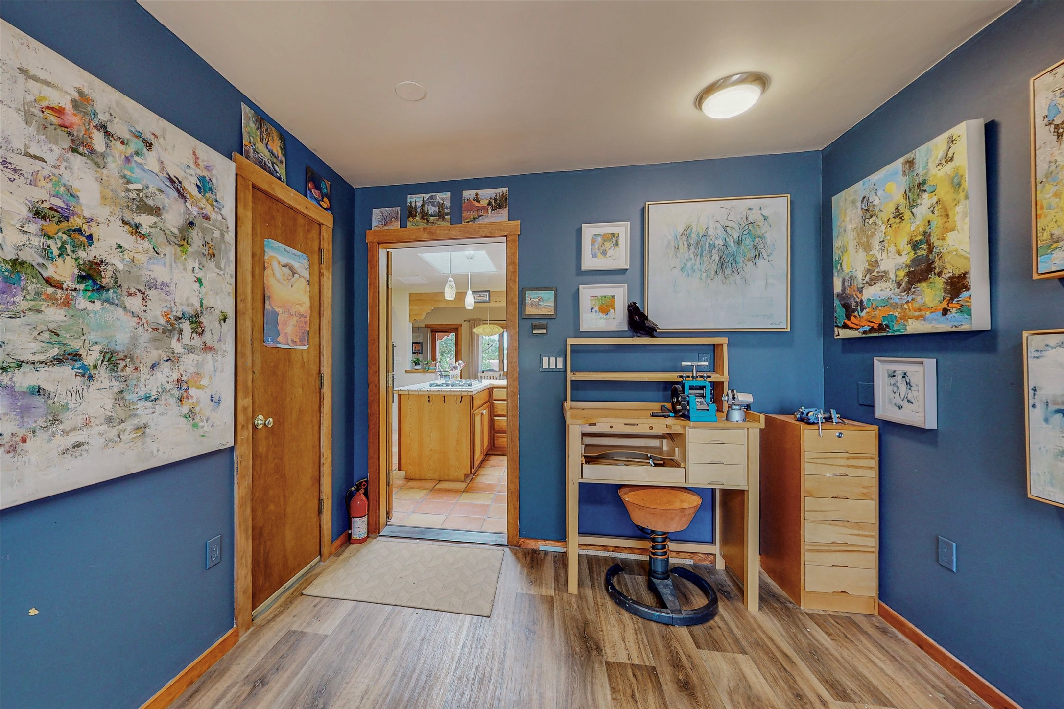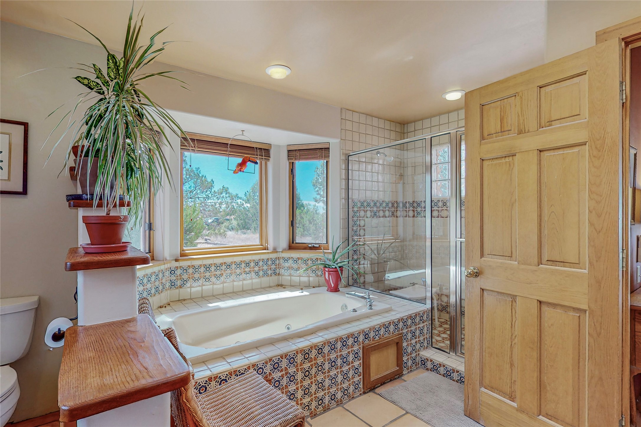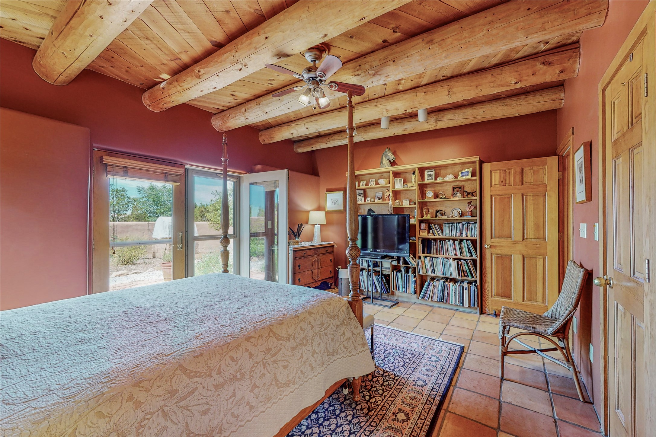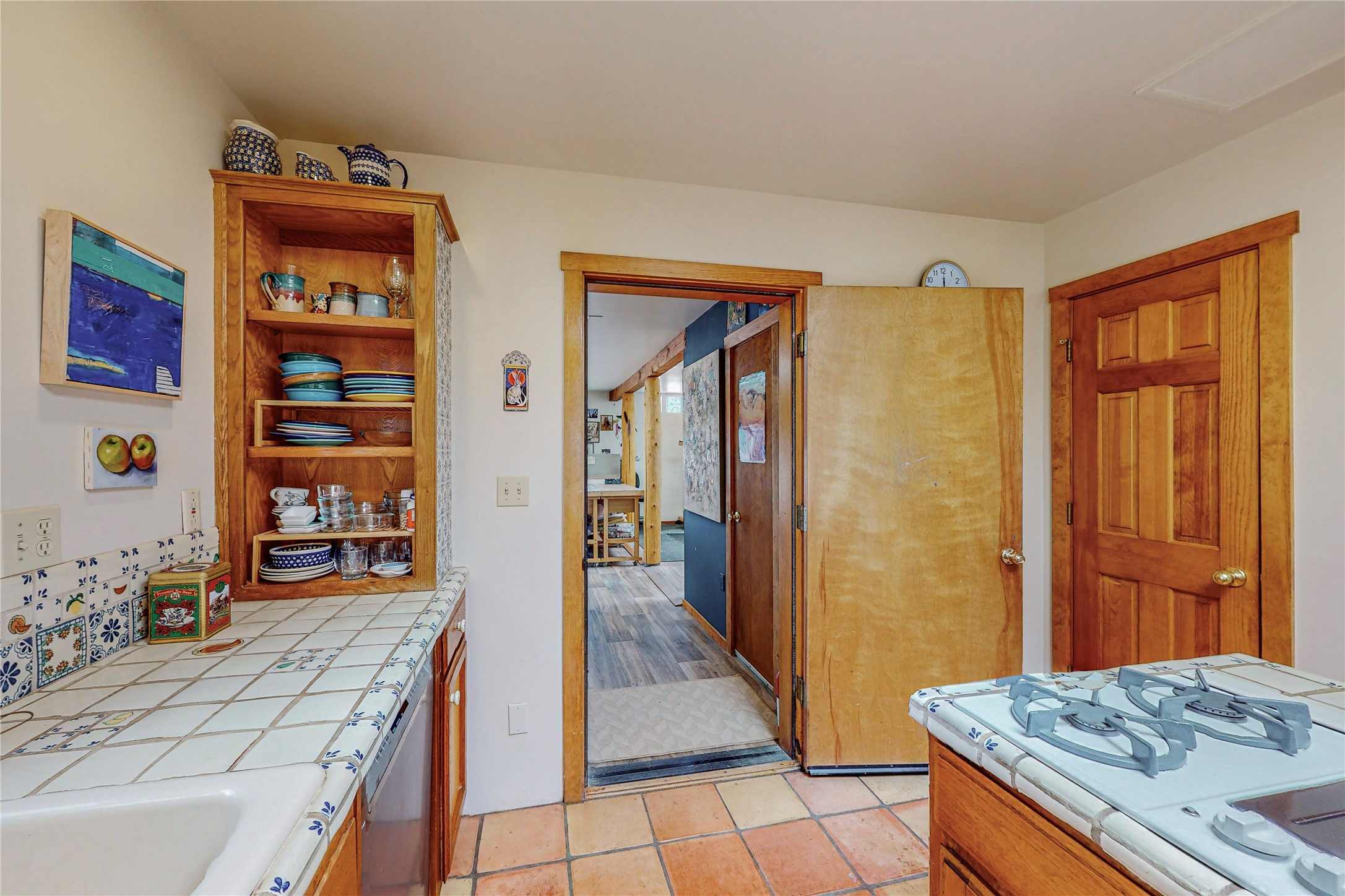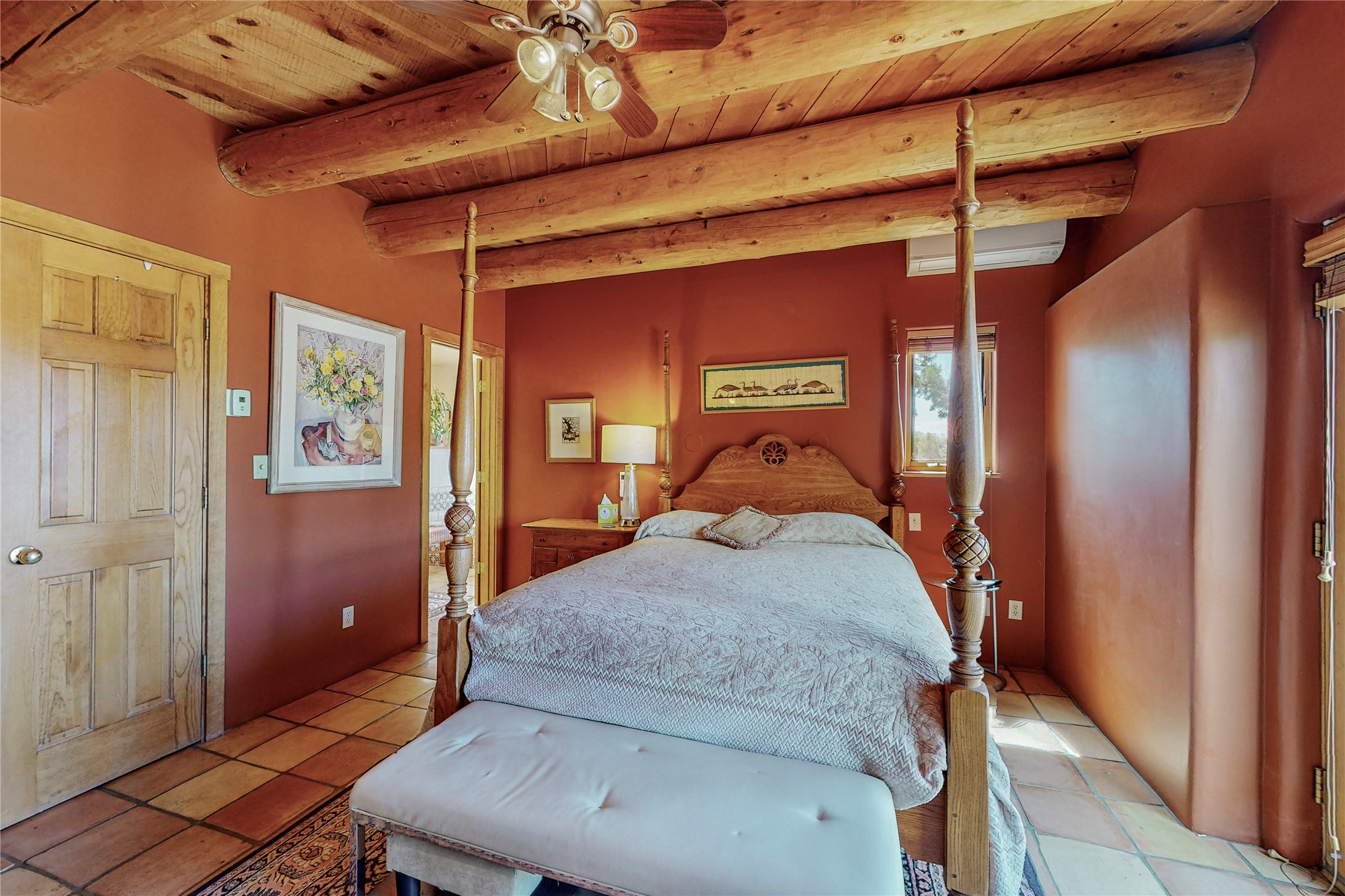 There is a lot to love about this delightful home custom built by Bowen & Picket Builders in the early 90's. Oozing with ambience and Santa Fe charm with Saltillo tile floors, viga ceilings, carved corbelled beams and kiva fireplace. A traditional pueblo design with added eco efficiency. Natural gas radiant heat, passive and active solar system, boiler and on demand hot water heater only 3 years old. A large multi purpose studio with storage room, 1 car garage, a sauna and hot tub. Fabulous privately walled gardens, water catchment cisterns and even a raised bed veggie patch. Privately located on a cul de sac with Eldorado views, access to the pool, tennis, pickleball, disc golf, parks and clubhouse activities yet only minutes into Santa Fe. This home is a must see.