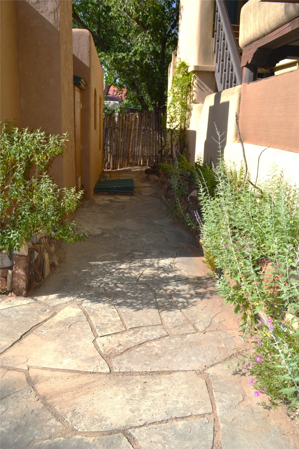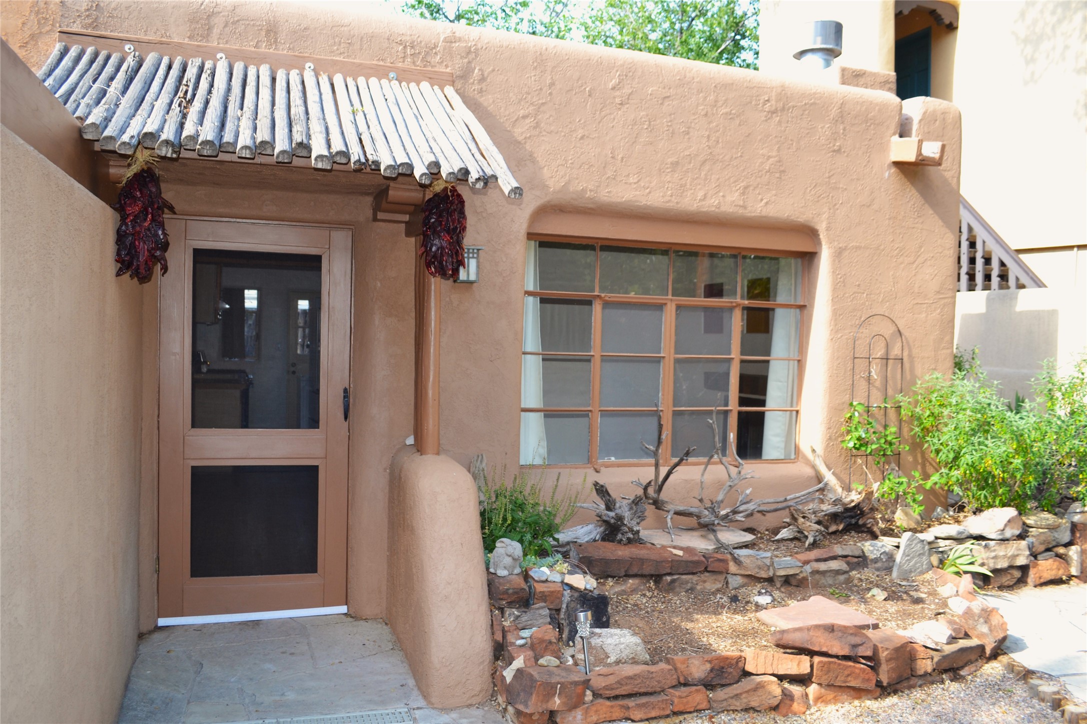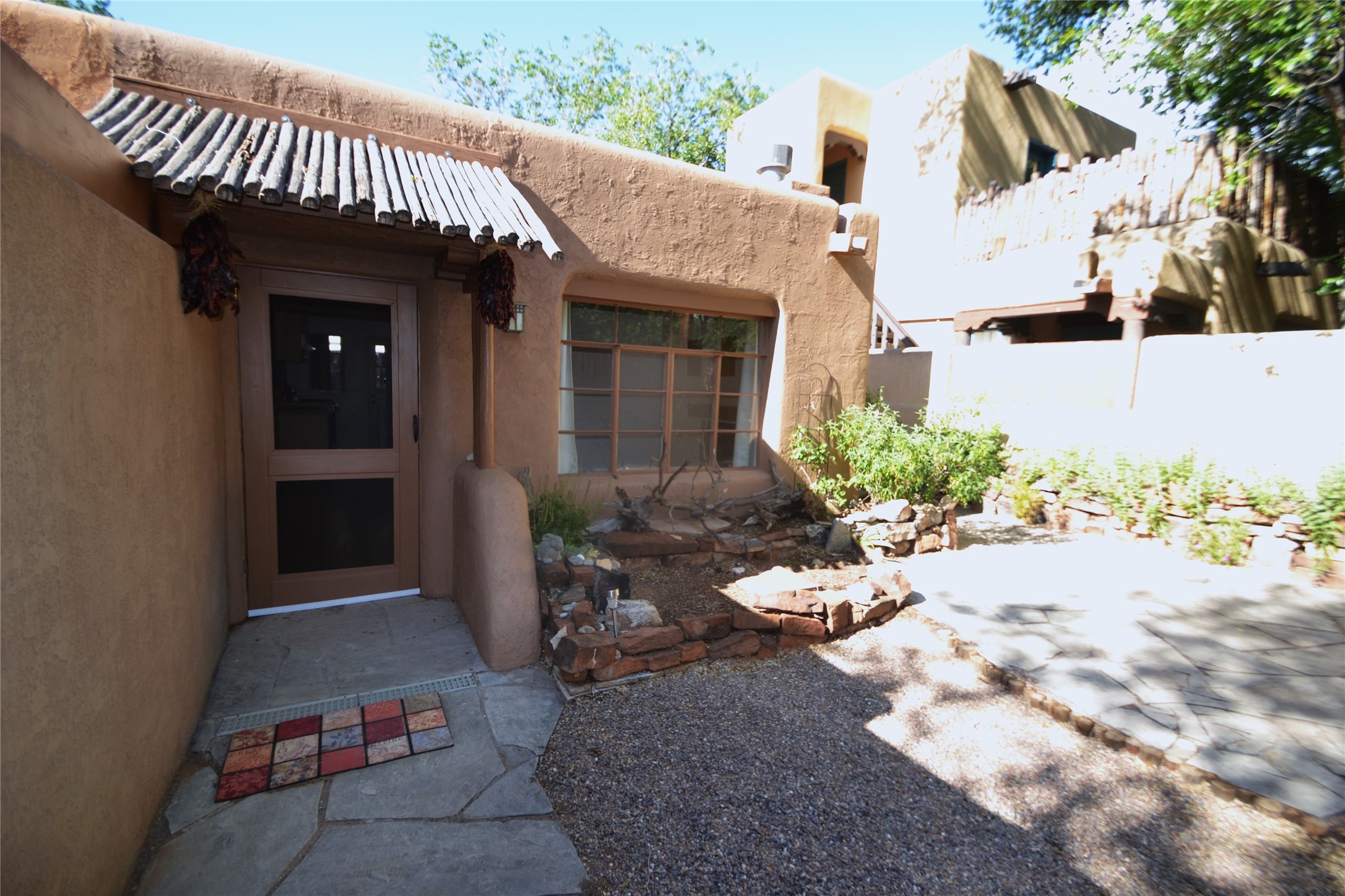 Listed $5K below appraisal on 10-6-23, Walk-to-the Plaza South Capital one bed/one bath single level 473 sqf condo, .013 acres in 14-unit quiet professional compound. Walled private courtyard ideal for entertaining and expanded living space. Single space reserved off-street parking. Santa Fe charm with vigas throughout. Wood burning fireplace complements 2 zoned, hot water baseboard heating. New stainless steel gas range, and refrigerator. Stackable washer and dryer. Hardwood floors with tile in kitchen and full bath accessible from hallway with jetted tub. Water meter shared with 4 units (averages $25/mo), gas and electric on separate meters. Exterior boiler and hot water heater; single shared wall. Outside storage closet and crawl space. The low $76.45/mo HOA fee covers ground maintenance, insurance, and the compounds private outdoor furnished pergola. Wood Gormley School District. Subject to Historical Society guidelines. No short-term rental. Move in ready! Platinum Care Select Home Warranty policy provided by seller