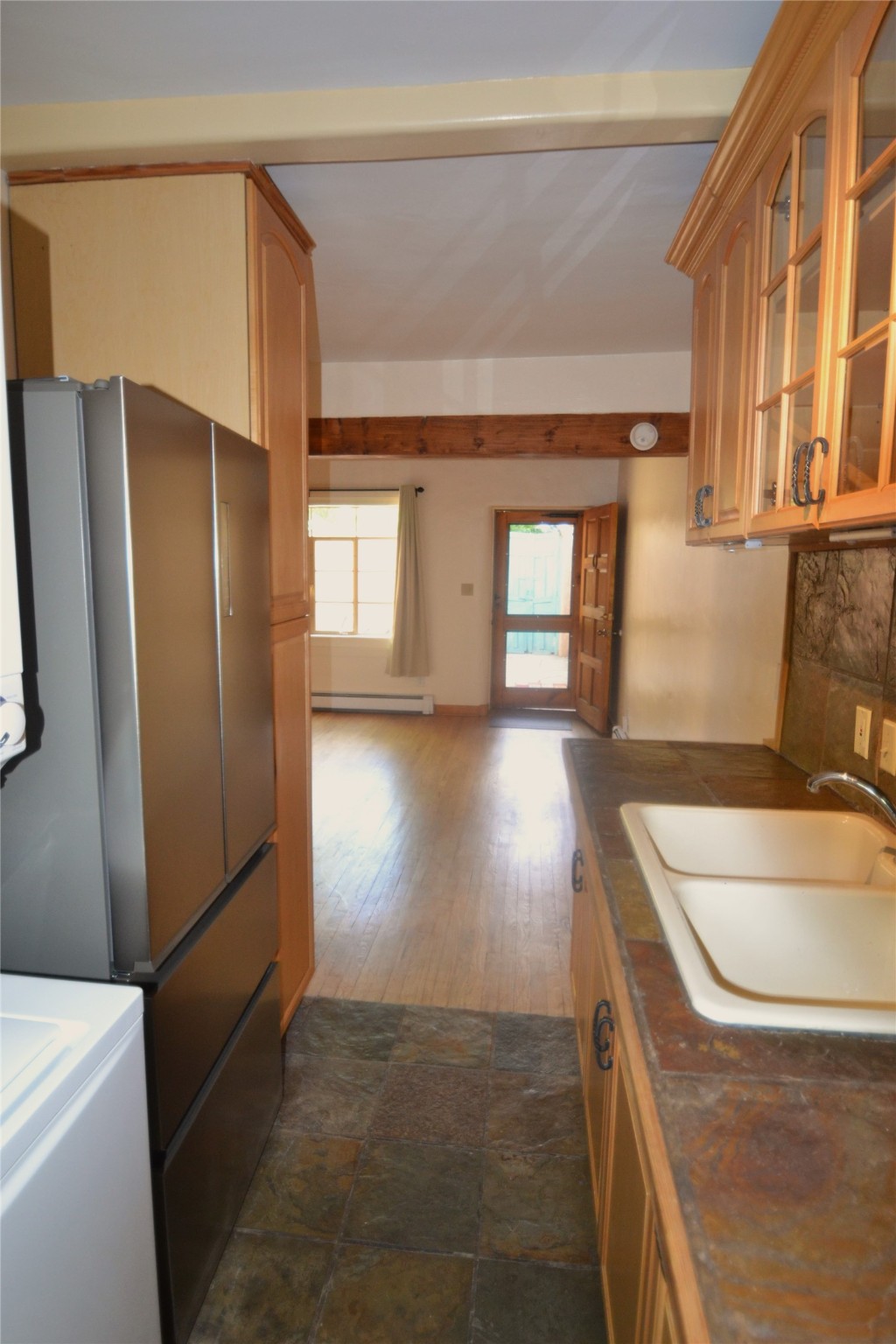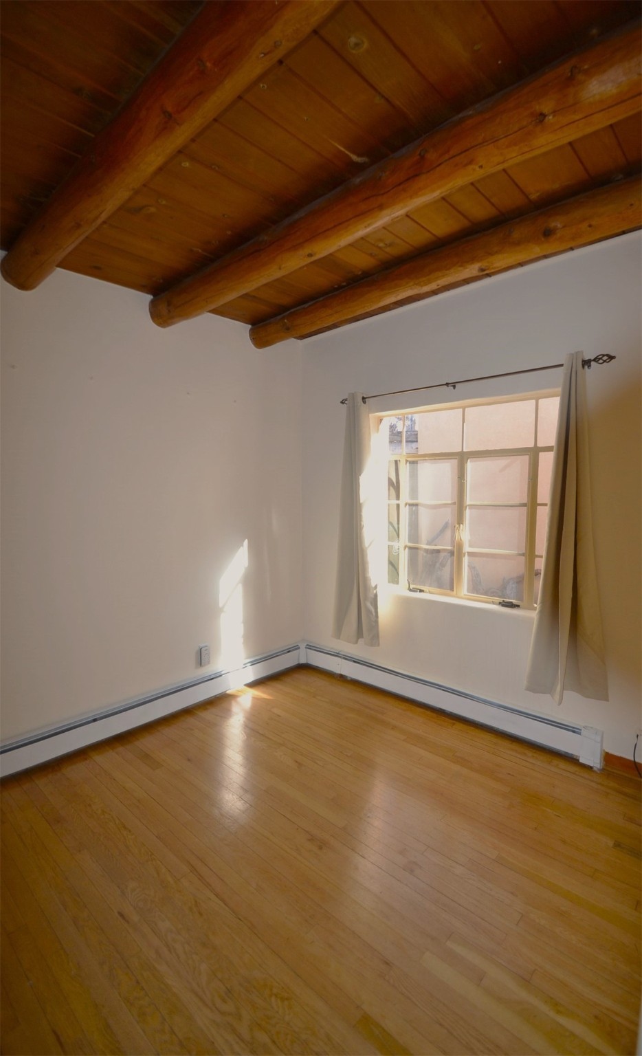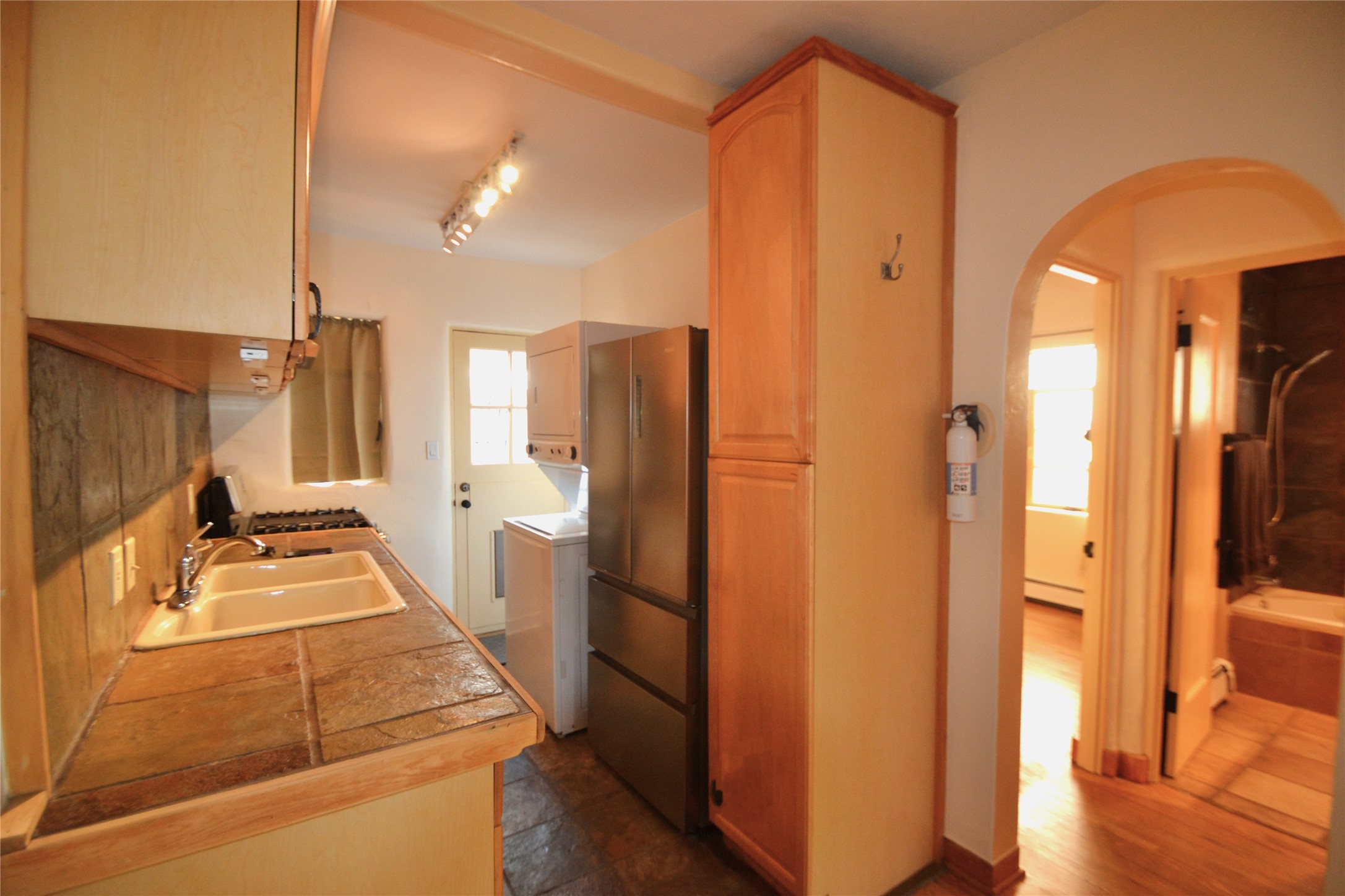 Listed $5K below appraisal on 10-6-23, Walk-to-the Plaza South Capital one bed/one bath single level 473 sqf condo, .013 acres in 14-unit quiet professional compound. Walled private courtyard ideal for entertaining and expanded living space. Single space reserved off-street parking. Santa Fe charm with vigas throughout. Wood burning fireplace complements 2 zoned, hot water baseboard heating. New stainless steel gas range, and refrigerator. Stackable washer and dryer. Hardwood floors with tile in kitchen and full bath accessible from hallway with jetted tub. Water meter shared with 4 units (averages $25/mo), gas and electric on separate meters. Exterior boiler and hot water heater; single shared wall. Outside storage closet and crawl space. The low $76.45/mo HOA fee covers ground maintenance, insurance, and the compounds private outdoor furnished pergola. Wood Gormley School District. Subject to Historical Society guidelines. No short-term rental. Move in ready! Platinum Care Select Home Warranty policy provided by seller