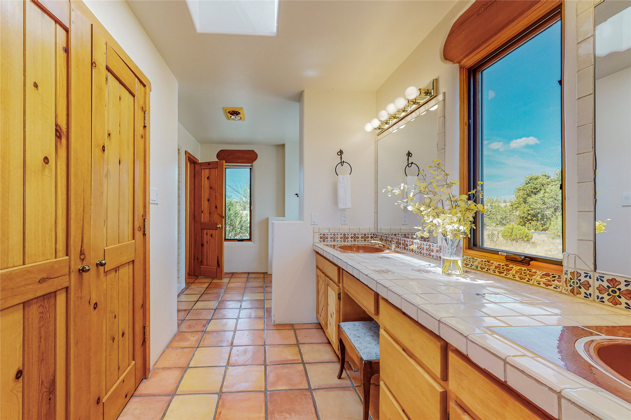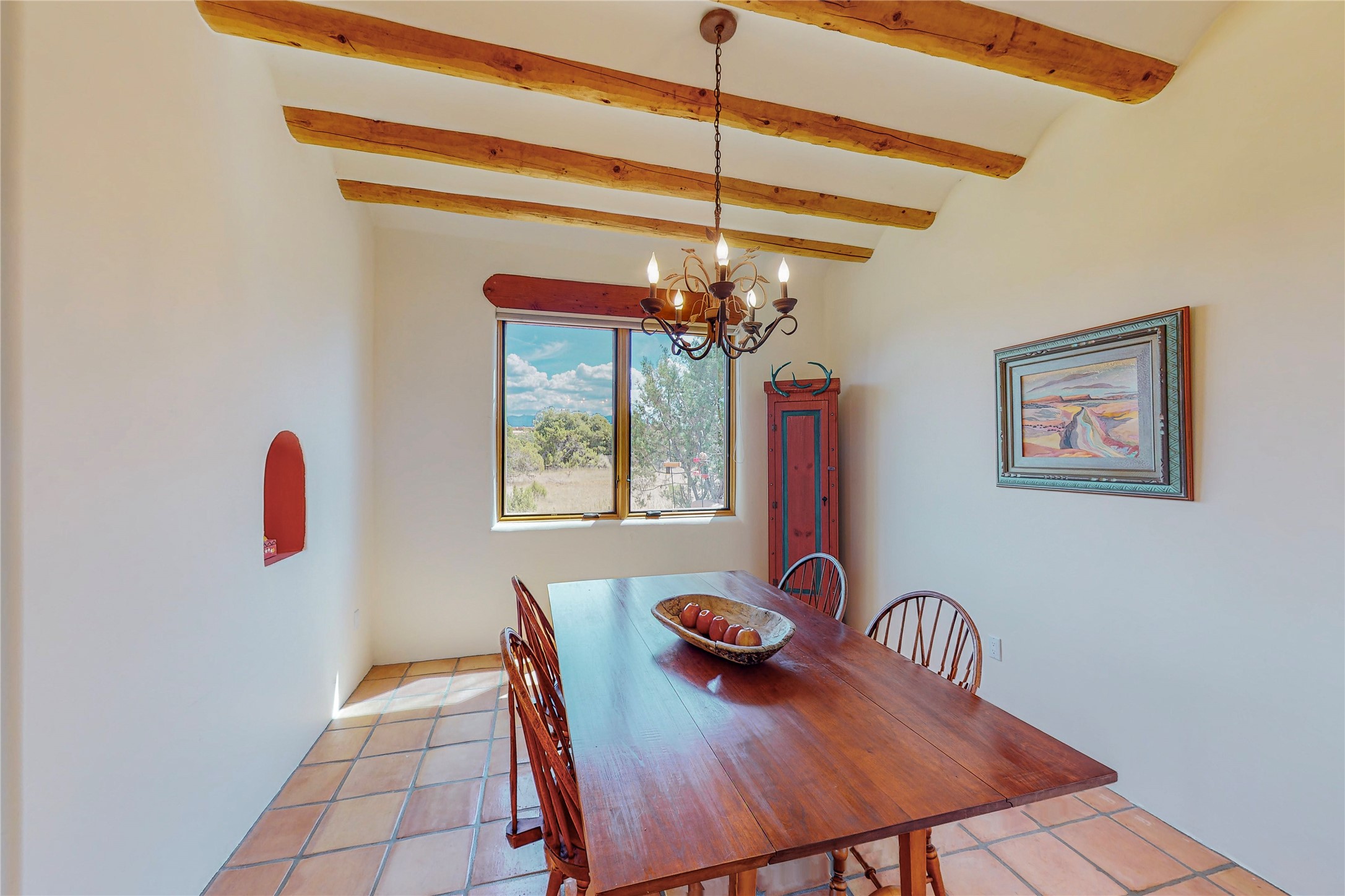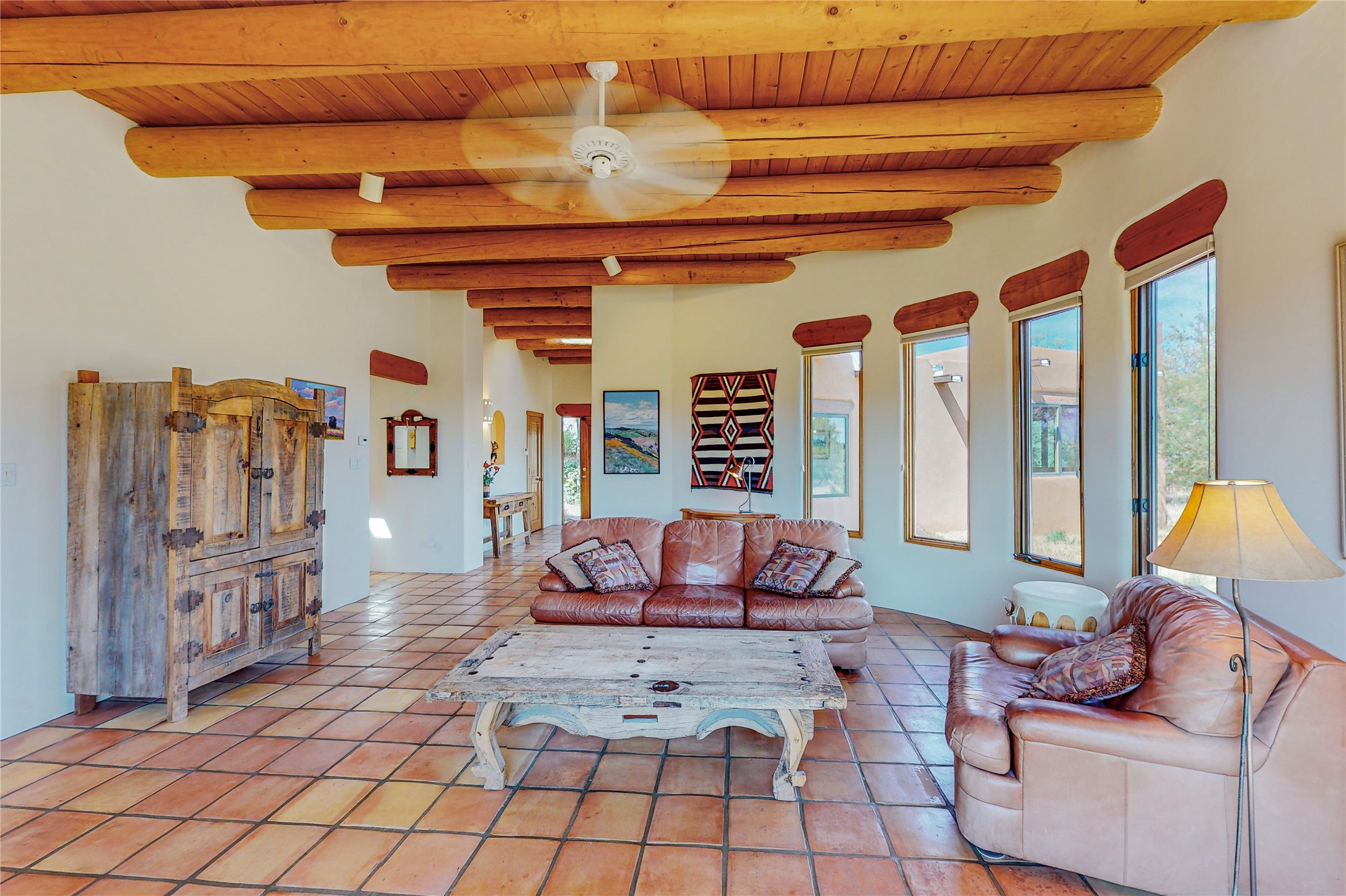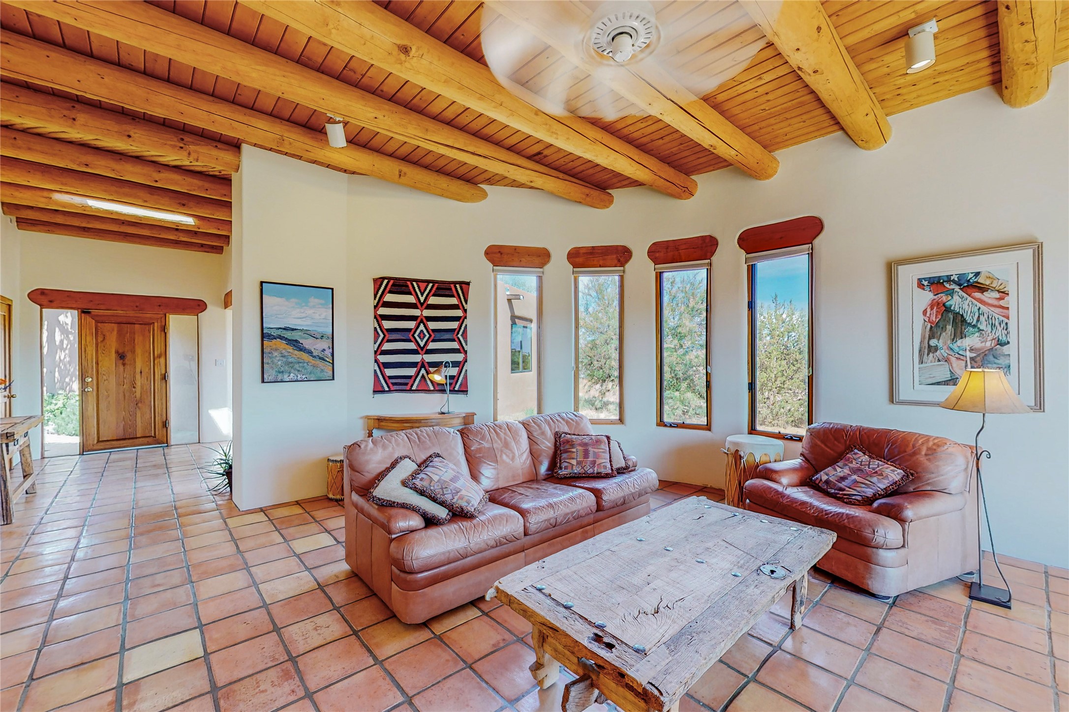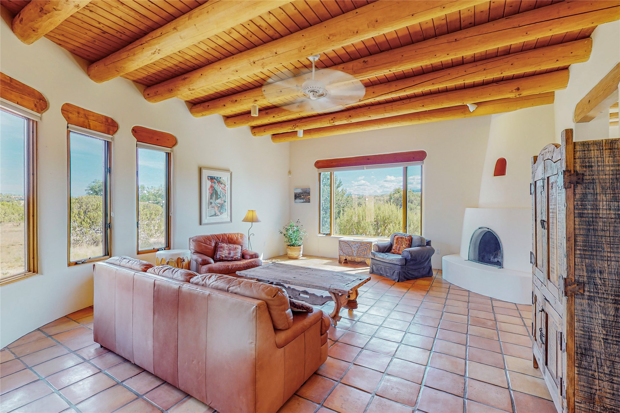 Take a closer look at this property----Newly priced!!! Newly staged!! This home is located in the private and gated Salva Tierra subdivision, just a short distance from the plaza. It has impressive views of the Sangres.This traditional Santa Fe style home is in original condition and waiting for your new-fashioned touch! Flexible floor plan. Large master suite with kiva fireplace and massive walk-in closet. Lots of closets and storage space in this home. Full-view doors off the kitchen and dining room open to the spacious patio for a great entertaining flow. Sweet breakfast room with kiva fireplace. Meadow-like surroundings and private outdoor spaces. Plenty of walking and hiking trails just outside your door. Great HOAs include trash, recycle, gate maintenance, roads and common areas. 2742 square feet. 3 bedrooms, 2 1/2 baths. Two car garage, all on 1.5 acres. Pre-inspected and ready to go.