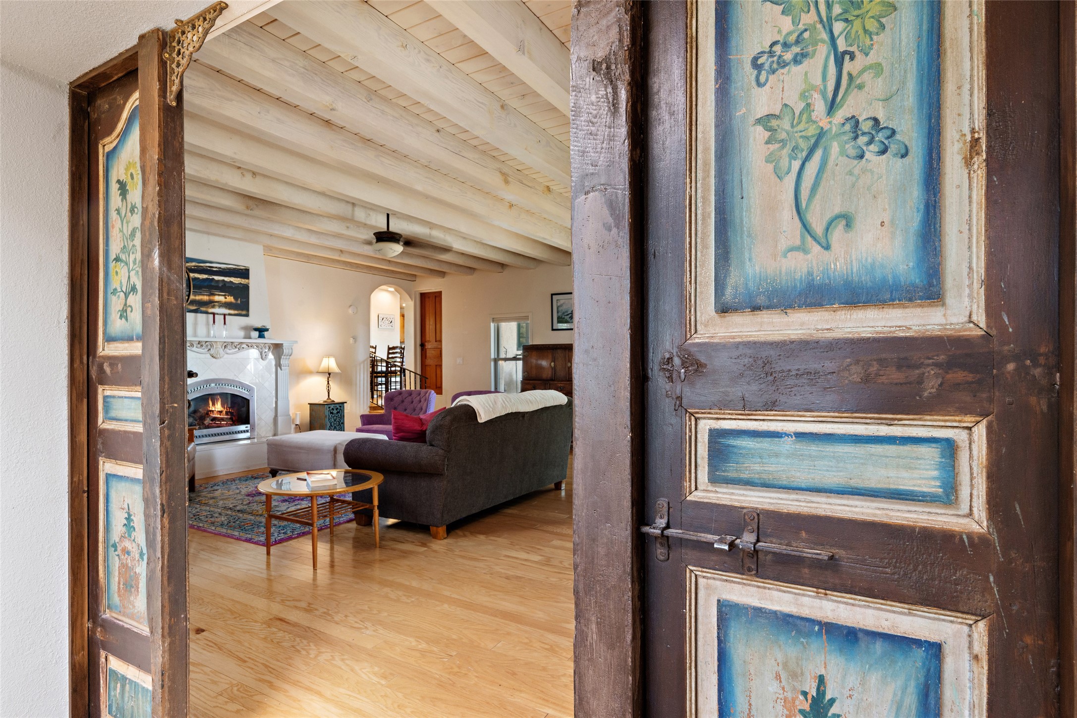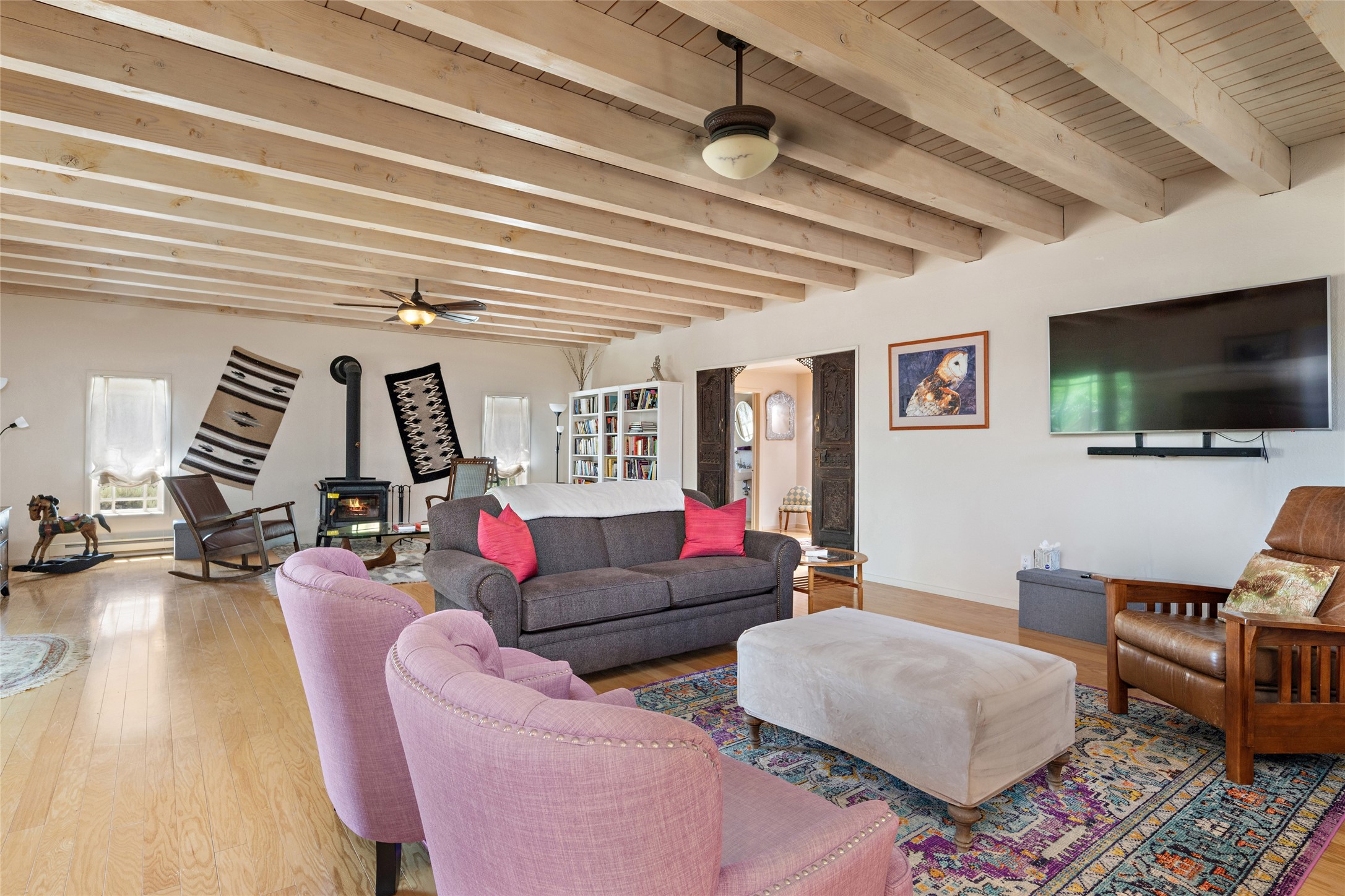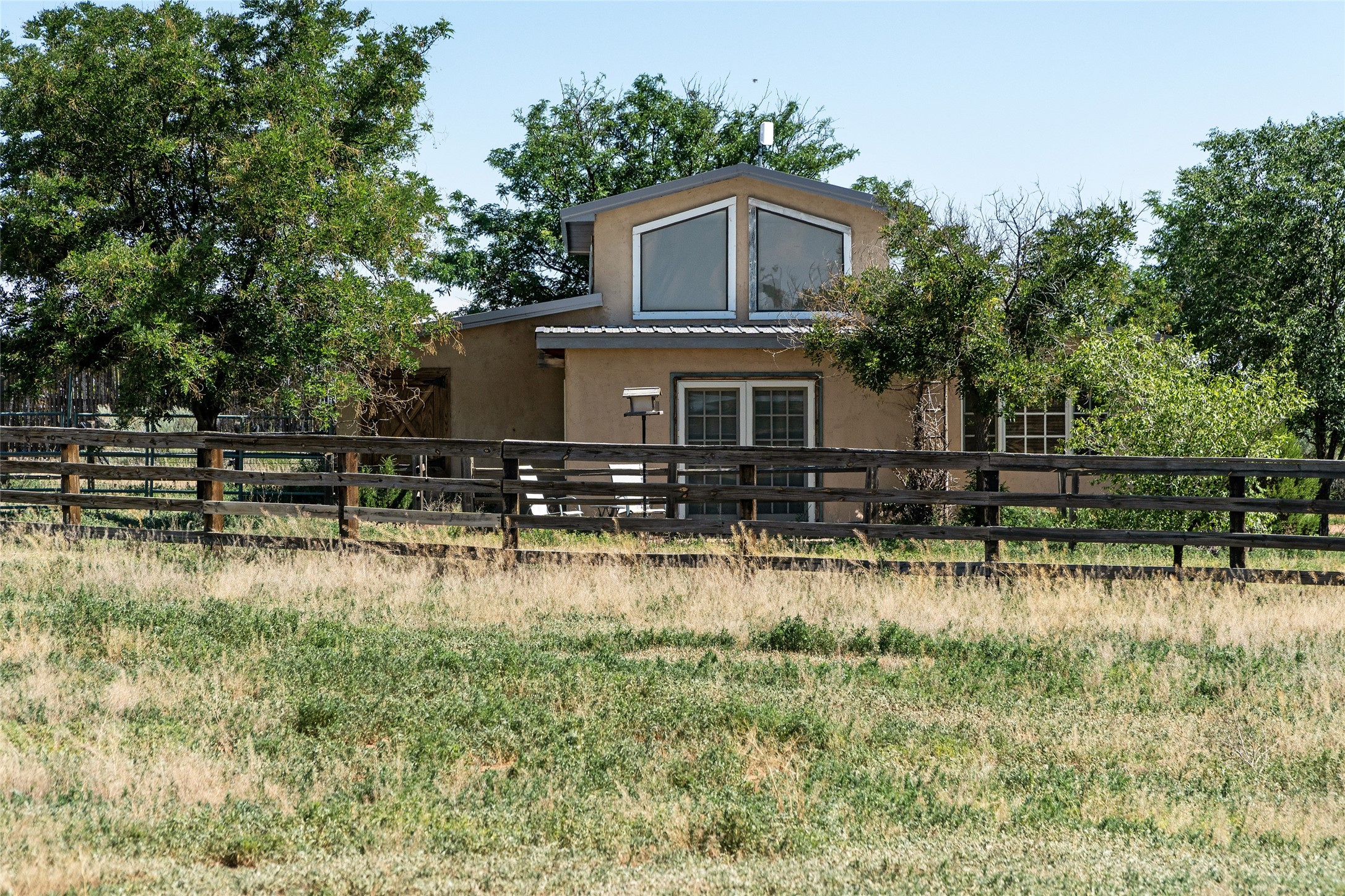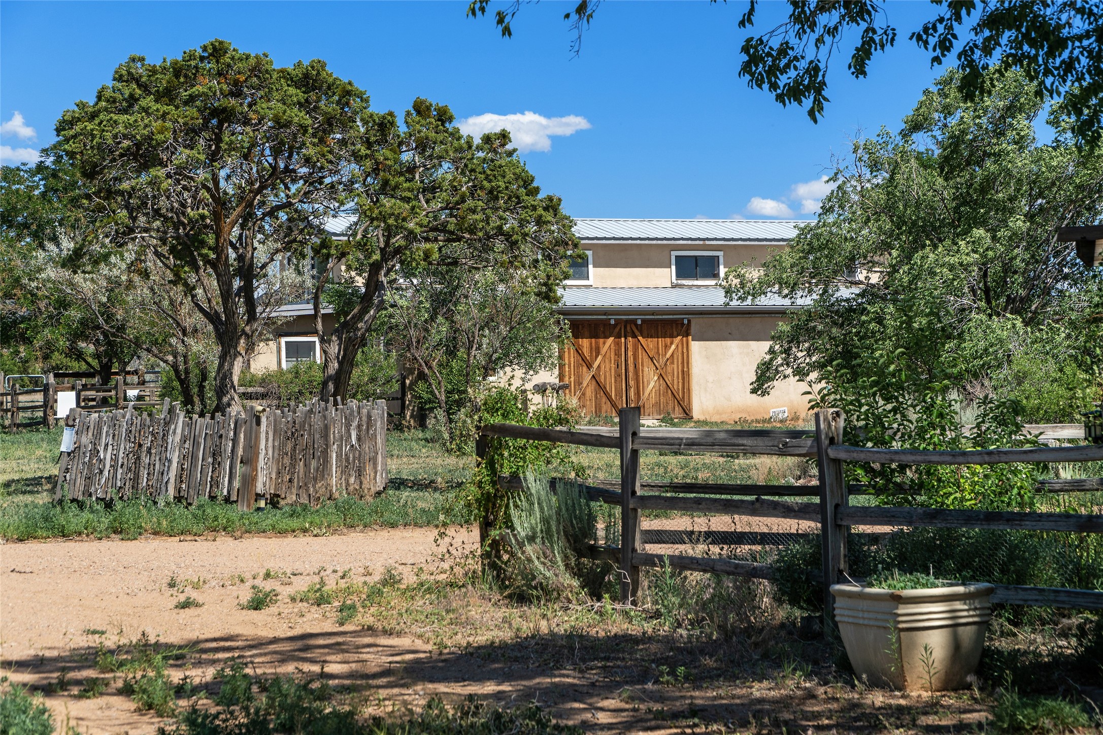 This well-maintained home offering a total of 5 bedrooms and 7 bathrooms is sited on over 12 fenced acres with mountain views in every direction and a pastoral, tranquil setting. This property is well equipped for the discerning equestrian or anyone seeking the peace of rural life - all while being less than 9 miles from the historic Santa Fe Plaza! While the main house is over 100 years old on paper, it was thoroughly updated by the prior owner with double pane windows, state of the art kitchens, new flooring and luxurious bathrooms in addition to newer mechanical systems for heating and hot water. The private well is permitted to provide 3-acre feet of water per year and the well mechanicals have been updated in the last few years, providing reliable and clean water to the property - plenty for your homestead, gardens and livestock! The guest house is situated on the south side of the barn/stable structure and is perfect for a caretaker's quarters or could be used to generate some excellent passive income while the studio space with soft, north light is situated on the north end of the barn/stables and would make for a fantastic workspace for any artist. The expansive Arroyo Hondo trail system is easily accessed from this parcel, providing miles and miles of walking, biking and horse trails. Don't miss your opportunity to own this special property that has so much to offer!