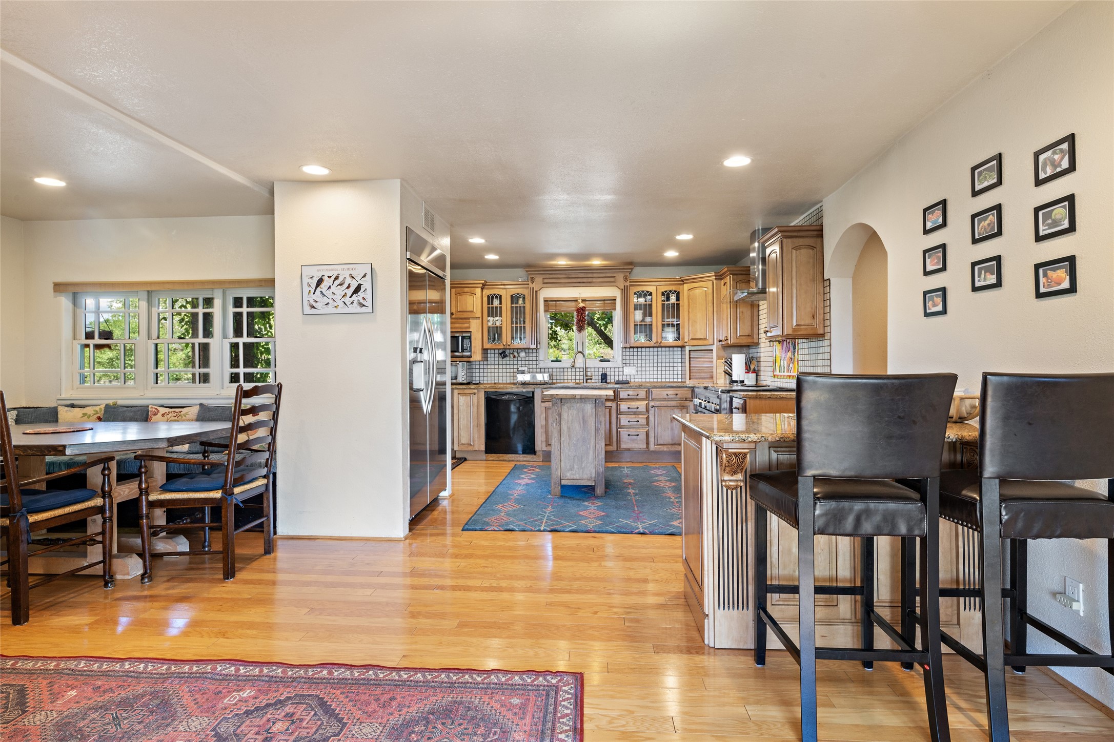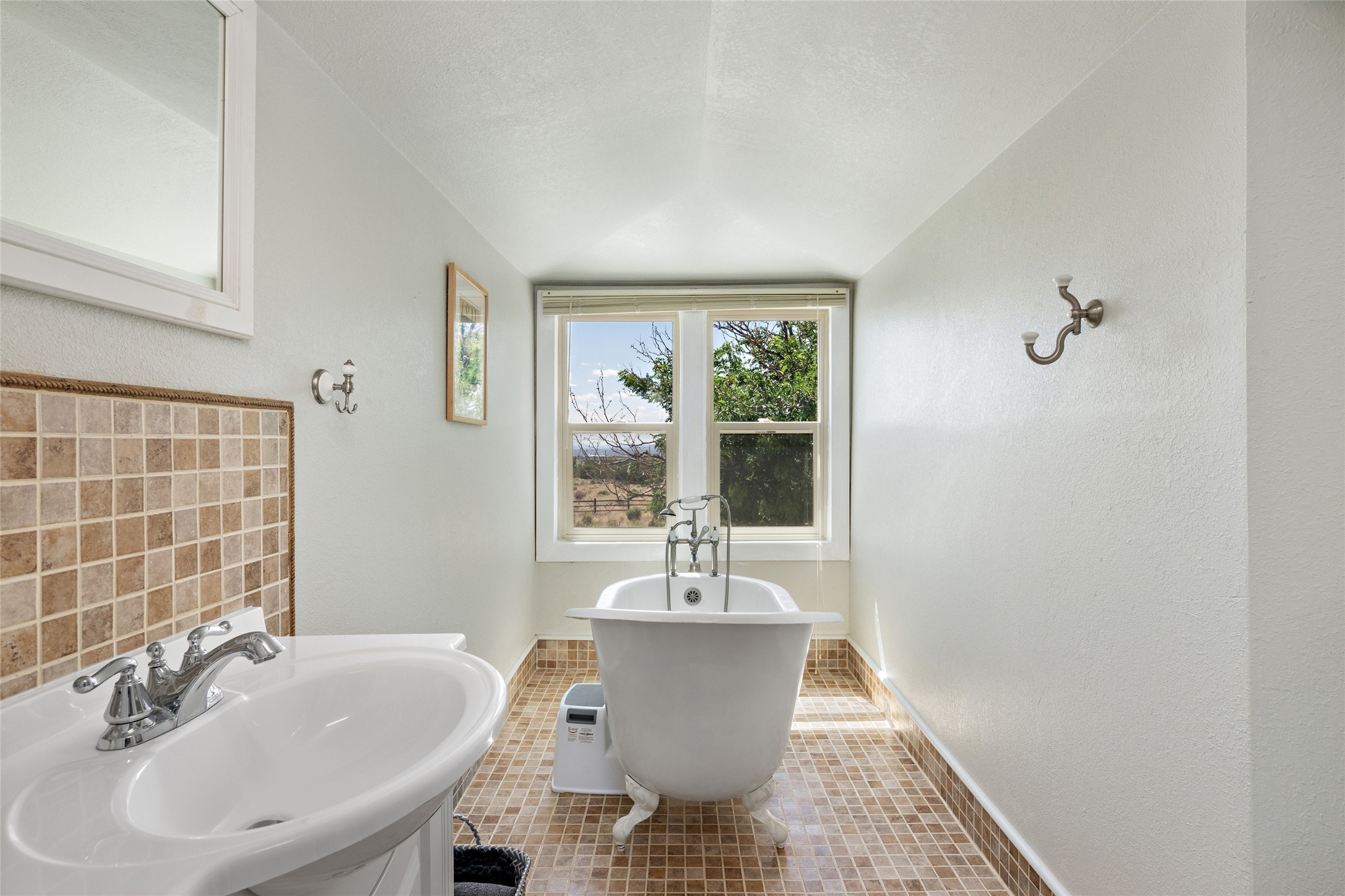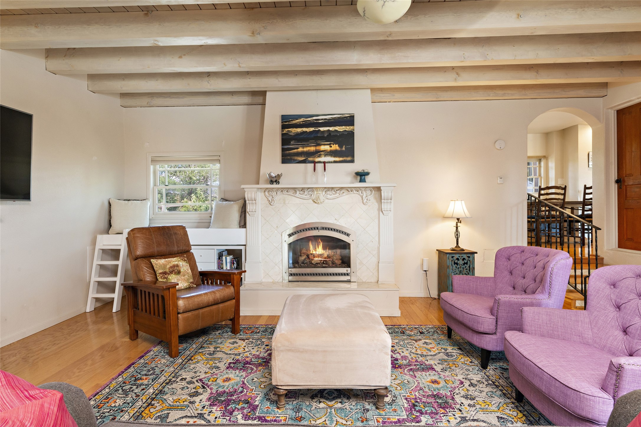 This well-maintained home offering a total of 5 bedrooms and 7 bathrooms is sited on over 12 fenced acres with mountain views in every direction and a pastoral, tranquil setting. This property is well equipped for the discerning equestrian or anyone seeking the peace of rural life - all while being less than 9 miles from the historic Santa Fe Plaza! While the main house is over 100 years old on paper, it was thoroughly updated by the prior owner with double pane windows, state of the art kitchens, new flooring and luxurious bathrooms in addition to newer mechanical systems for heating and hot water. The private well is permitted to provide 3-acre feet of water per year and the well mechanicals have been updated in the last few years, providing reliable and clean water to the property - plenty for your homestead, gardens and livestock! The guest house is situated on the south side of the barn/stable structure and is perfect for a caretaker's quarters or could be used to generate some excellent passive income while the studio space with soft, north light is situated on the north end of the barn/stables and would make for a fantastic workspace for any artist. The expansive Arroyo Hondo trail system is easily accessed from this parcel, providing miles and miles of walking, biking and horse trails. Don't miss your opportunity to own this special property that has so much to offer!