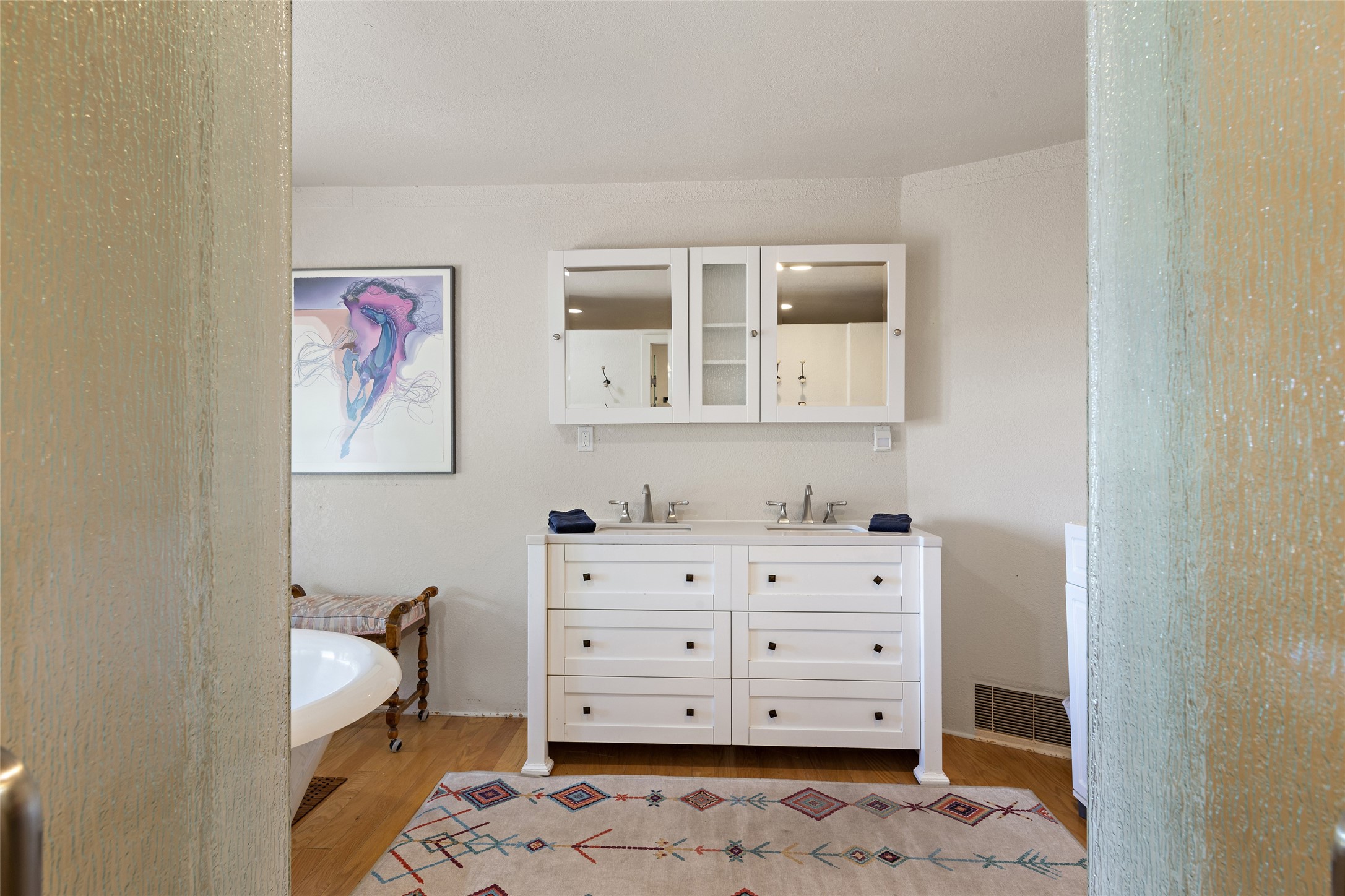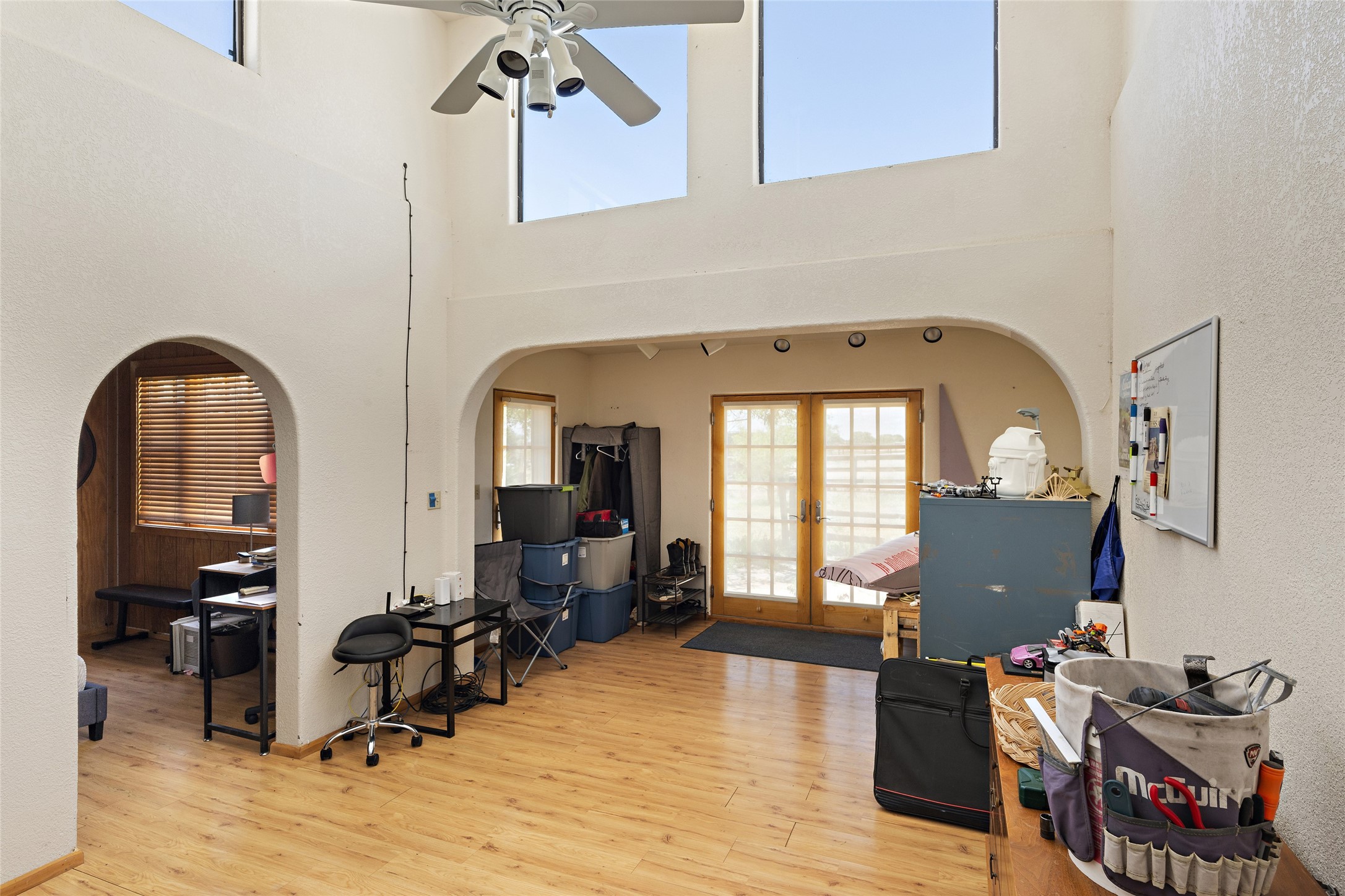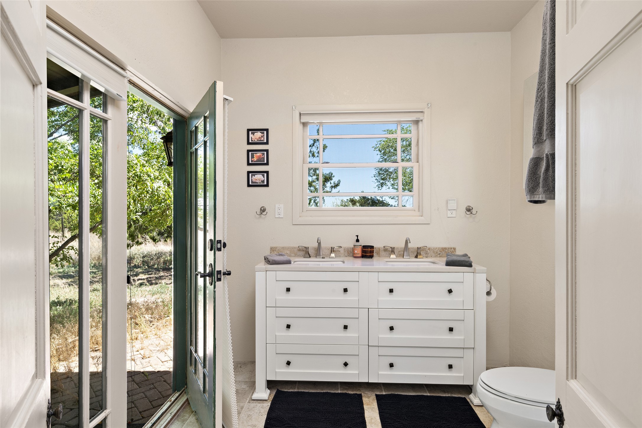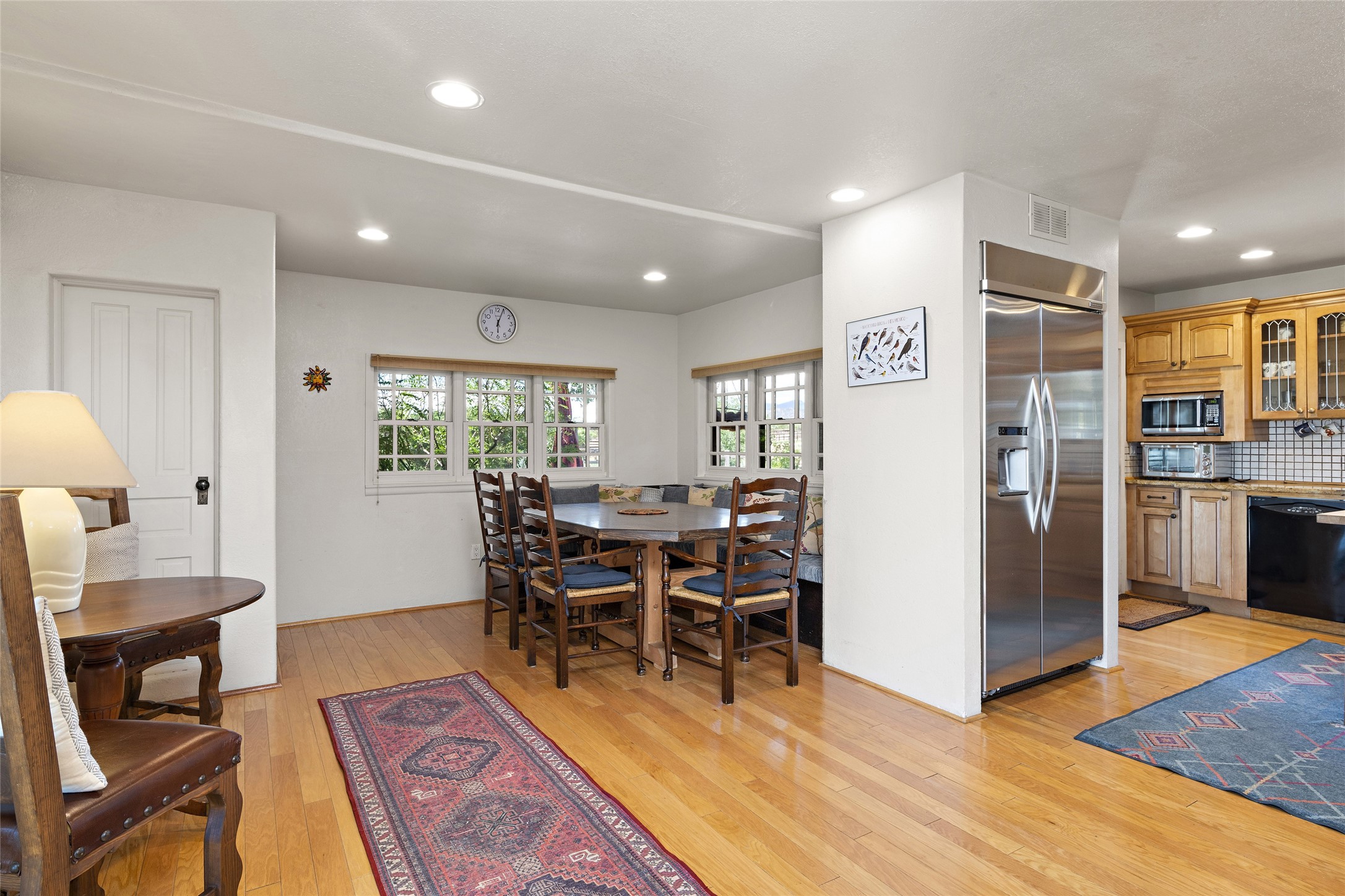 This well-maintained home offering a total of 5 bedrooms and 7 bathrooms is sited on over 12 fenced acres with mountain views in every direction and a pastoral, tranquil setting. This property is well equipped for the discerning equestrian or anyone seeking the peace of rural life - all while being less than 9 miles from the historic Santa Fe Plaza! While the main house is over 100 years old on paper, it was thoroughly updated by the prior owner with double pane windows, state of the art kitchens, new flooring and luxurious bathrooms in addition to newer mechanical systems for heating and hot water. The private well is permitted to provide 3-acre feet of water per year and the well mechanicals have been updated in the last few years, providing reliable and clean water to the property - plenty for your homestead, gardens and livestock! The guest house is situated on the south side of the barn/stable structure and is perfect for a caretaker's quarters or could be used to generate some excellent passive income while the studio space with soft, north light is situated on the north end of the barn/stables and would make for a fantastic workspace for any artist. The expansive Arroyo Hondo trail system is easily accessed from this parcel, providing miles and miles of walking, biking and horse trails. Don't miss your opportunity to own this special property that has so much to offer!