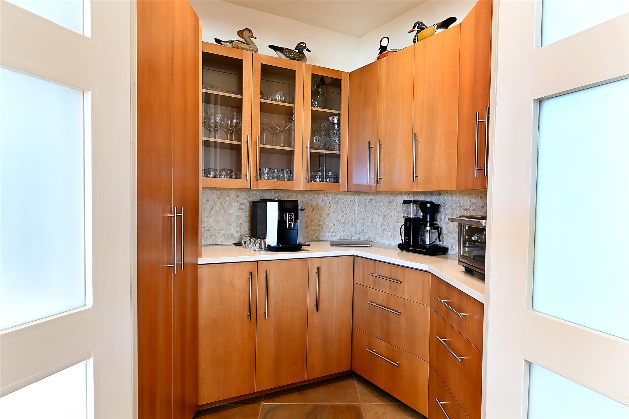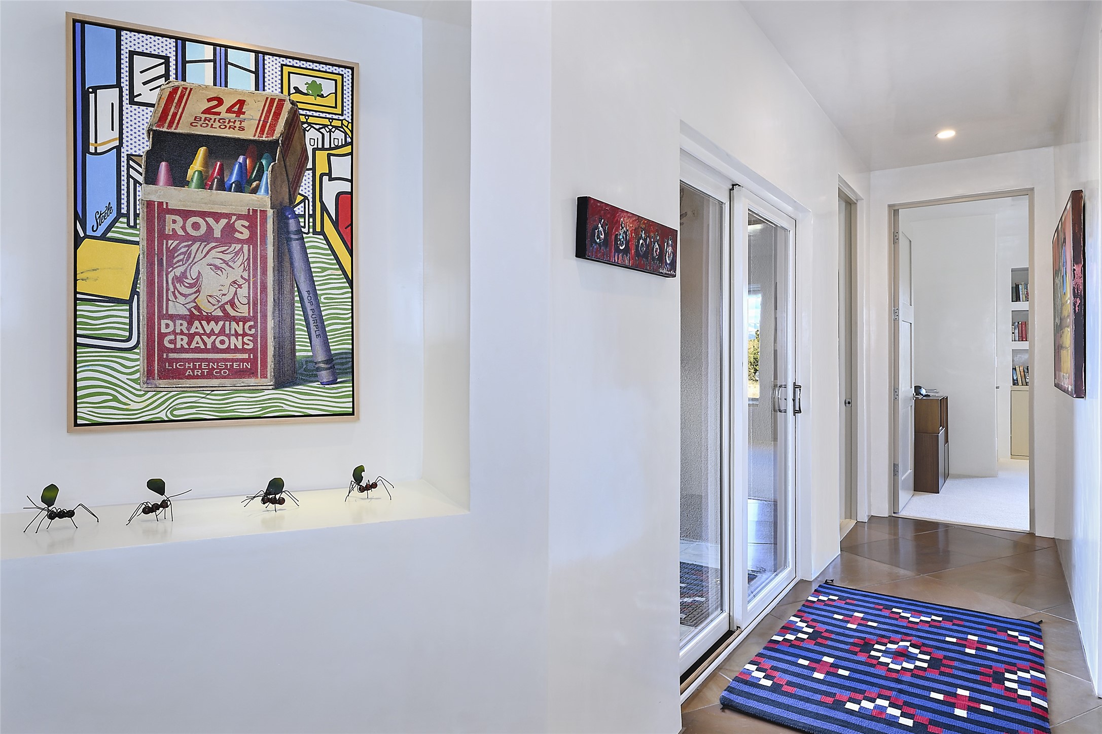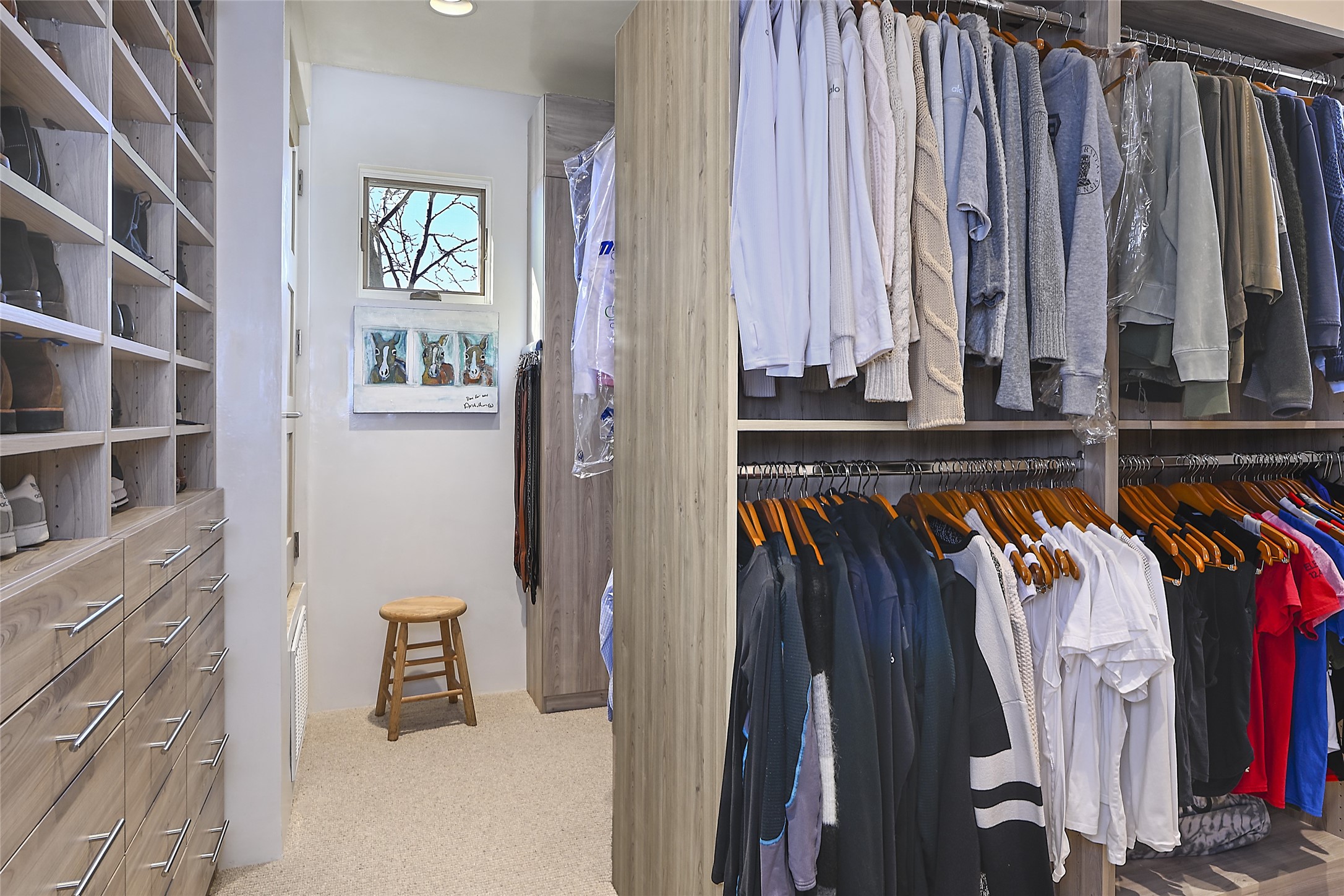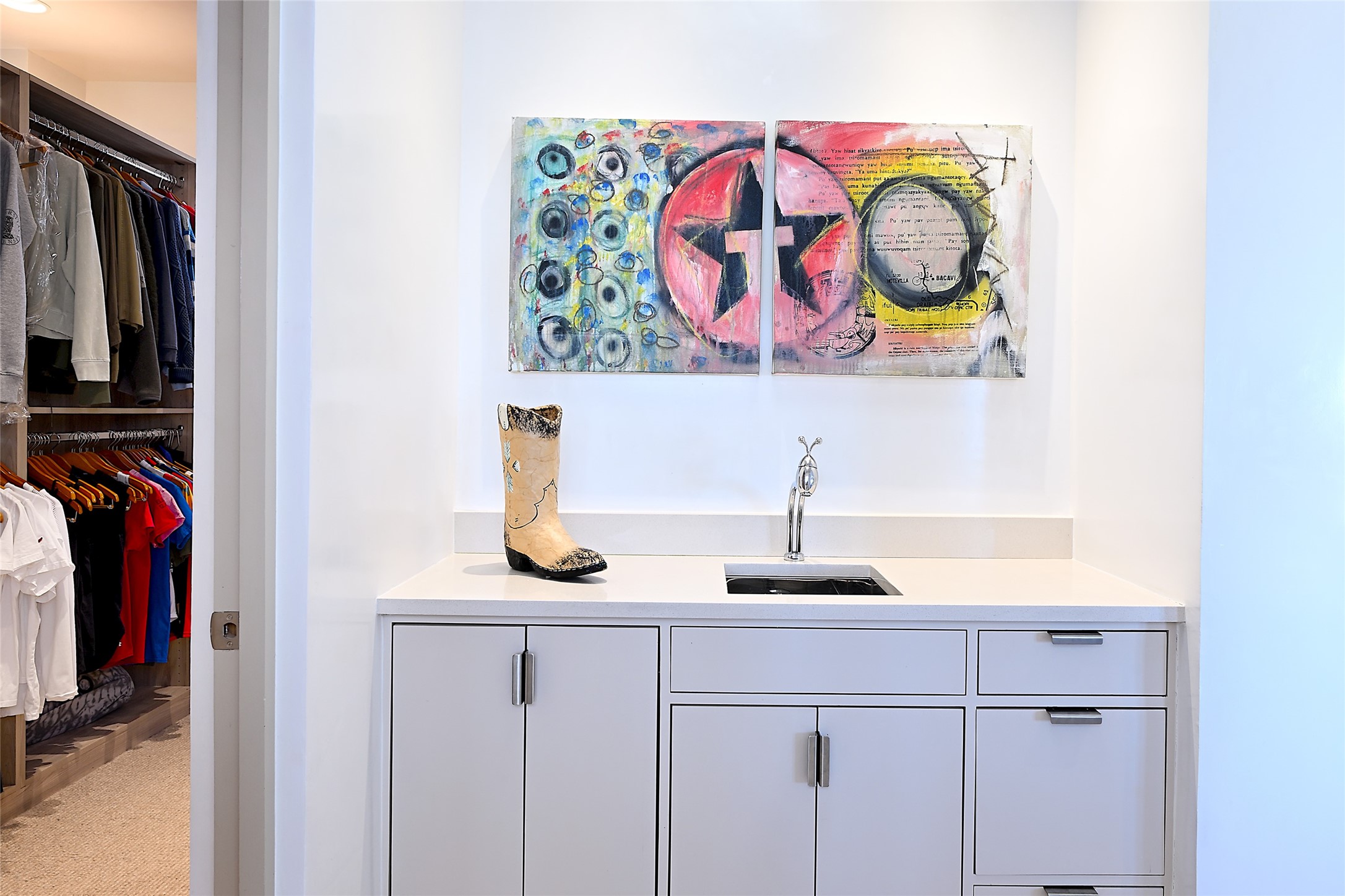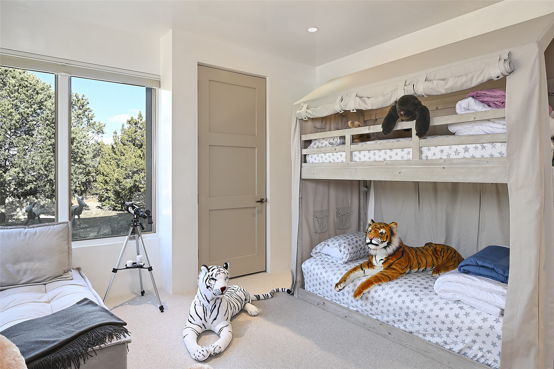 One-of-a kind chic 3 bed 3.5 bath custom contemporary home with a Southwest aesthetic on 1.6 + acres in Las Campanas. This single level home was specifically sited to capture the sweeping vistas of the Sangre de Cristo, Ortiz, and Sandia mountains. Ideal home for art collectors with high ceilings and generous wall spaces throughout. Open floor plan seamlessly merges interior spaces with outdoor areas creating an easy flow for everyday living and entertaining. Grand great room with 14' ceiling, rusted steel beams, long skylight, bronzed metal-clad fireplace, and sleek custom cabinetry. Gourmet kitchen is appointed with high end appliances (2 new 2020 Bosch dishwashers and Bosch microwave), pot filler, wine cooler, oversized center island with prep sink, and walk-in fitted pantry. The luxurious owner's suite has its own fireplace, wet bar, fitted walk-in closet redone by California Closets (2020), and spa-like bath with Stone Forest limestone soaking tub and glass tile shower. Study/media room with bleached oak floors, double desks, and fireplace provides flex space and privacy for work or artistic pursuits. Separate guest wing with two guest rooms with ensuite baths. New wool carpets were installed in bedrooms in 2020. Ample utility room with new (2022) LG washer/dryer, built-in hamper, ironing board, and cedar closet. Other highlights include diamond plaster walls, built in speakers, 3 car heated garage with wall system, xeriscaping and a rainwater harvesting system.