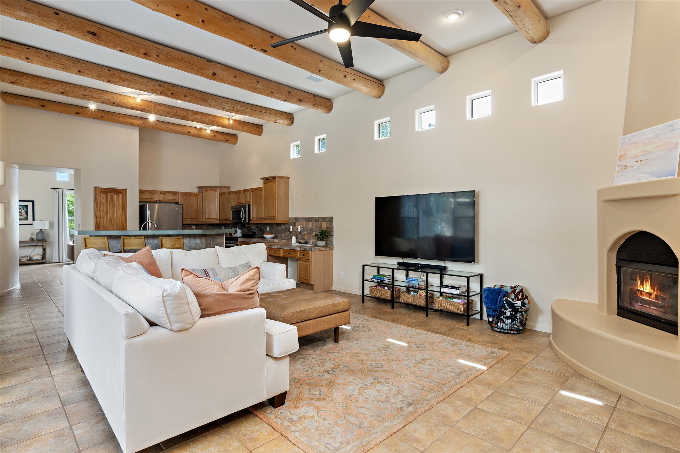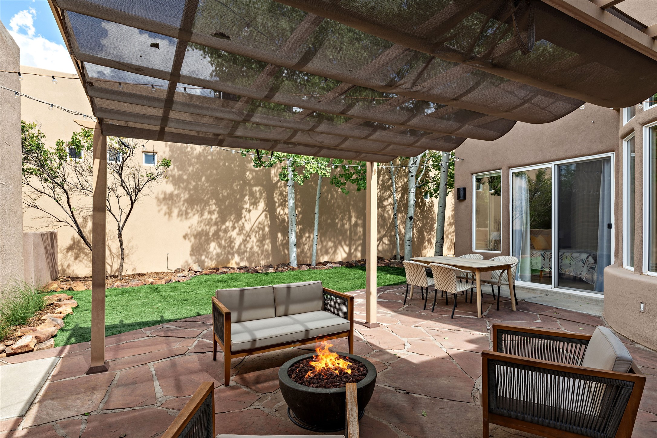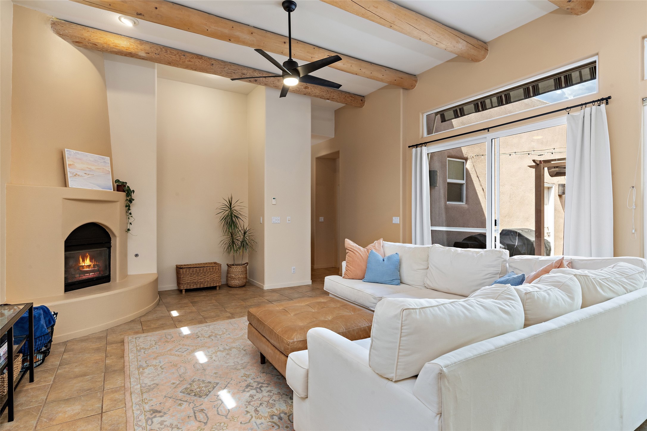 This lovely, well maintained Luminaria floor plan Rancho Viejo home offers 3 bedrooms, 2 bathrooms and approximately 2,260 sq. ft. of living space with a beautiful central patio and low maintenance landscaping. You'll be greeted upon entering the home by high ceilings with vigas and easy to clean tile floors throughout as well as solid wood doors and some nice upgrades to the kitchen appointments. The open concept kitchen and den make for a fantastic space to entertain or stay cozy in front of the gas fireplace on a winter evening while the ample master bedroom suite has fantastic separation from the guest bedrooms There is wonderful privacy from neighbors in the enclosed central yard which can be accessed from the den/kitchen, the master bedroom or the 2-car garage. Don't miss your opportunity to own this lovely home!