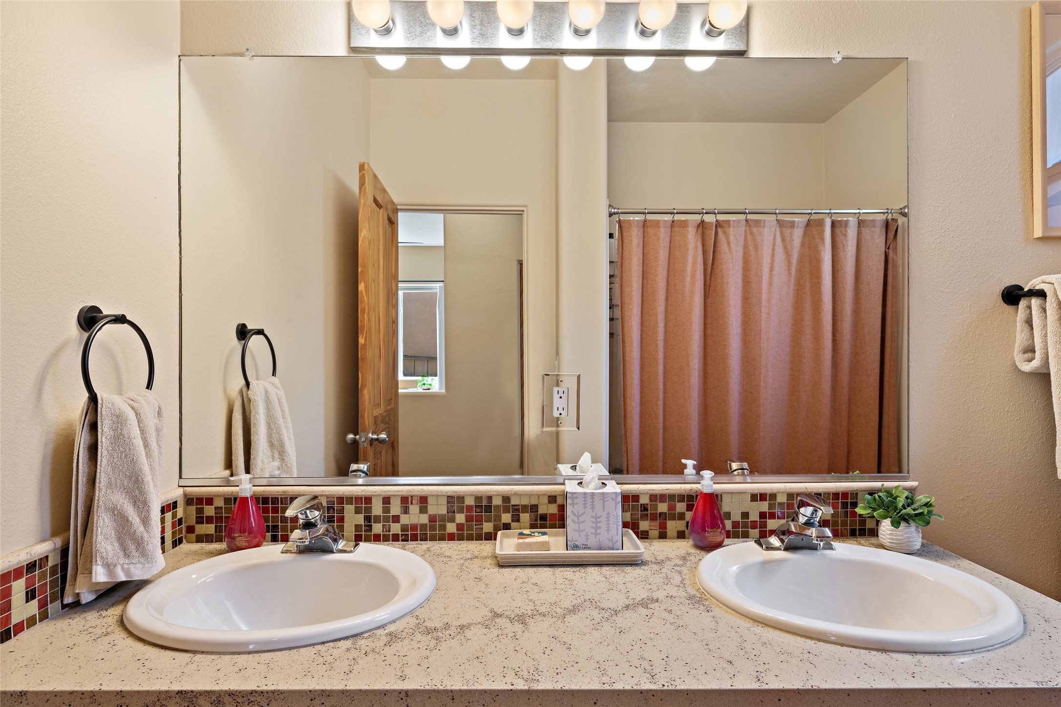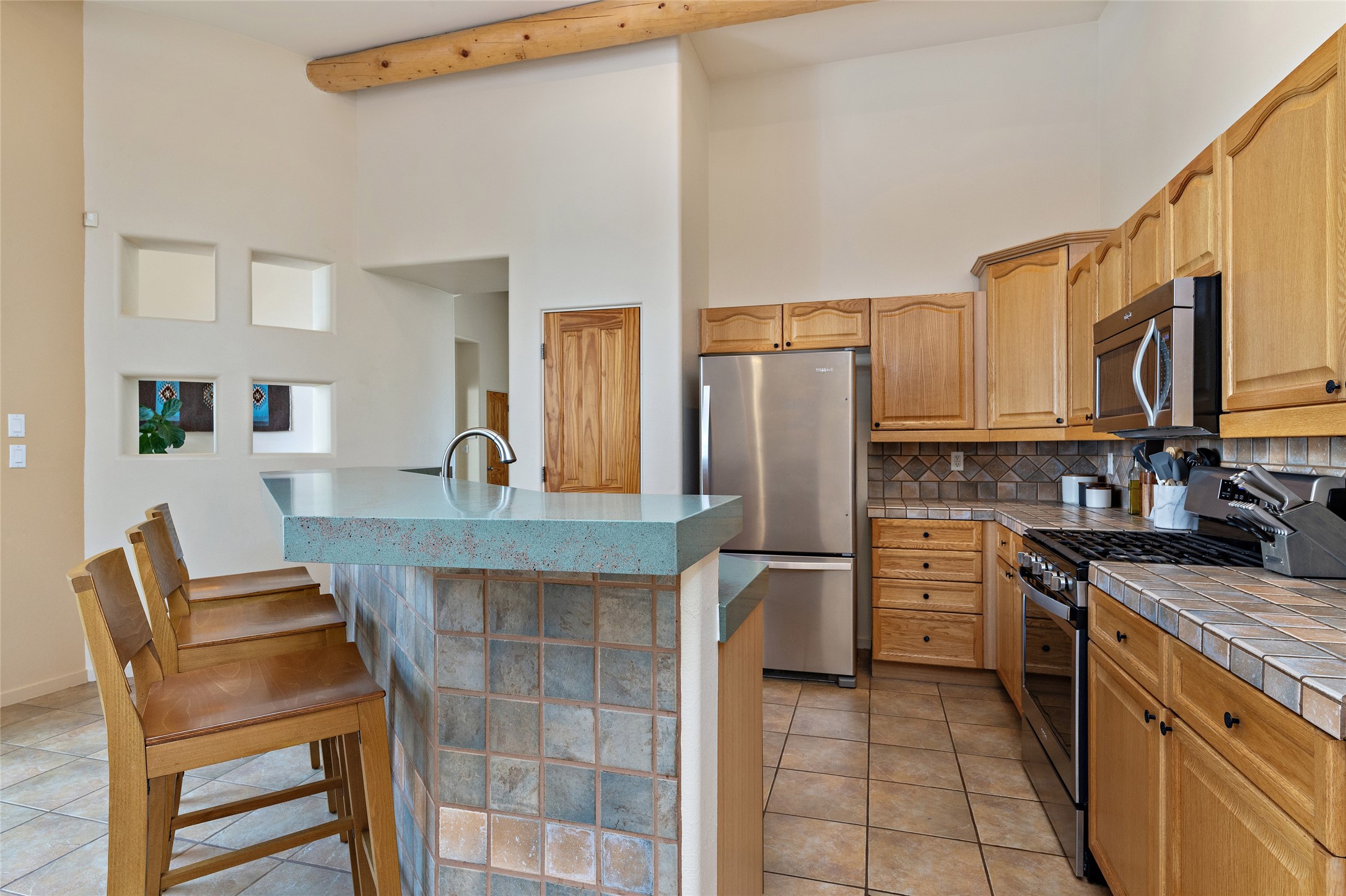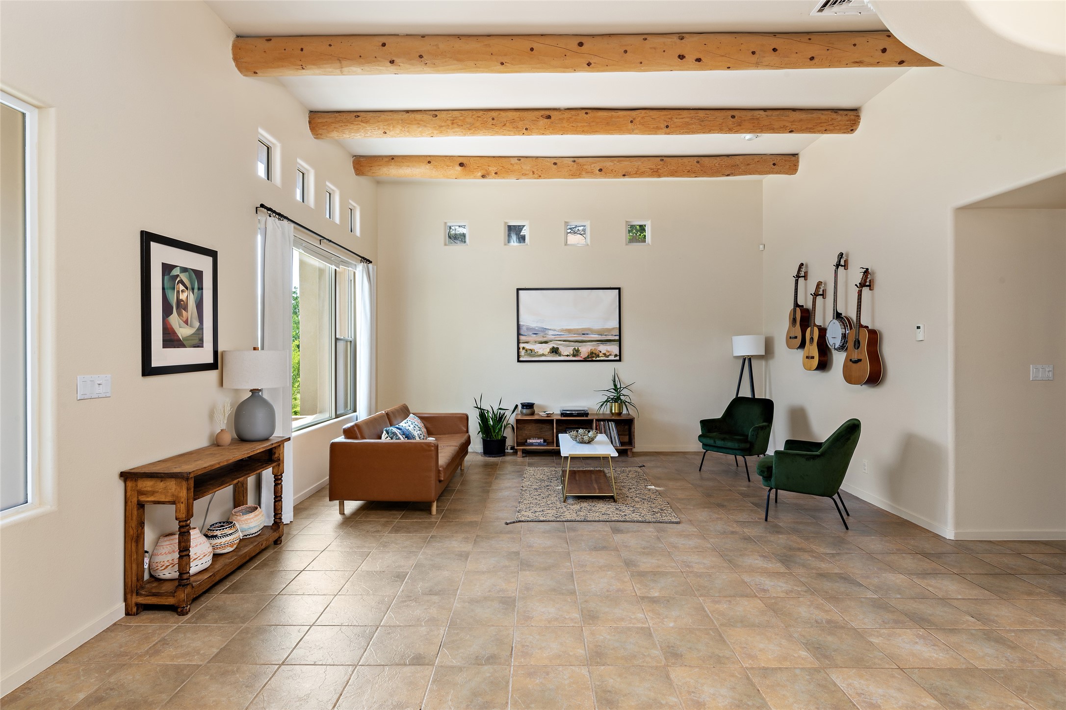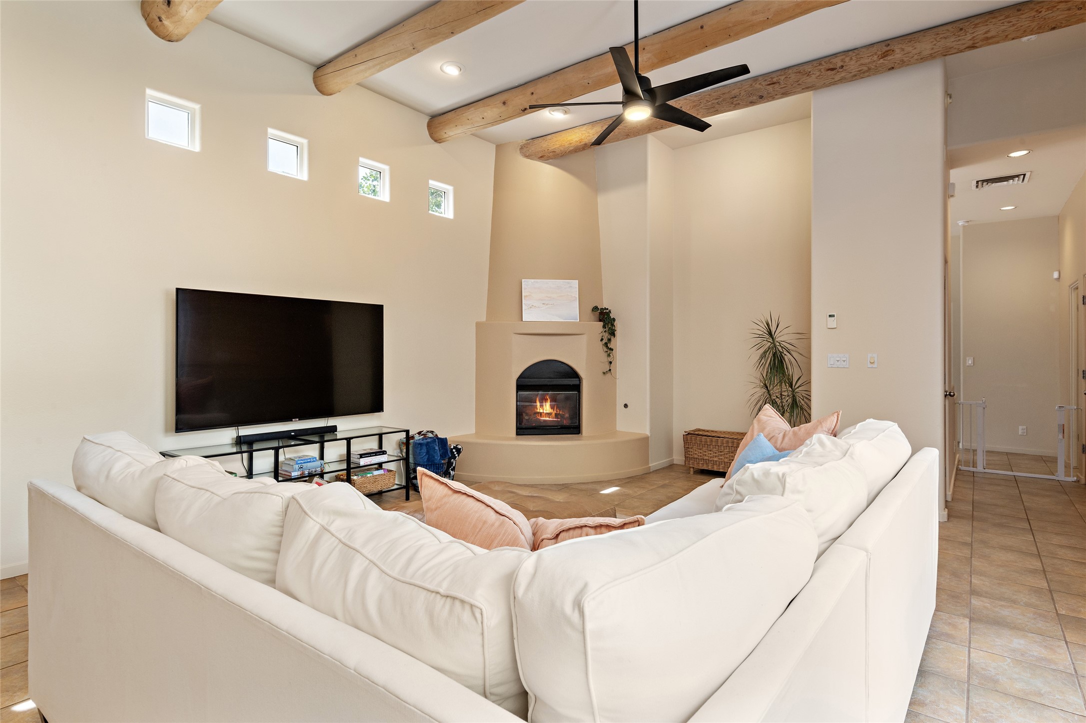 This lovely, well maintained Luminaria floor plan Rancho Viejo home offers 3 bedrooms, 2 bathrooms and approximately 2,260 sq. ft. of living space with a beautiful central patio and low maintenance landscaping. You'll be greeted upon entering the home by high ceilings with vigas and easy to clean tile floors throughout as well as solid wood doors and some nice upgrades to the kitchen appointments. The open concept kitchen and den make for a fantastic space to entertain or stay cozy in front of the gas fireplace on a winter evening while the ample master bedroom suite has fantastic separation from the guest bedrooms There is wonderful privacy from neighbors in the enclosed central yard which can be accessed from the den/kitchen, the master bedroom or the 2-car garage. Don't miss your opportunity to own this lovely home!