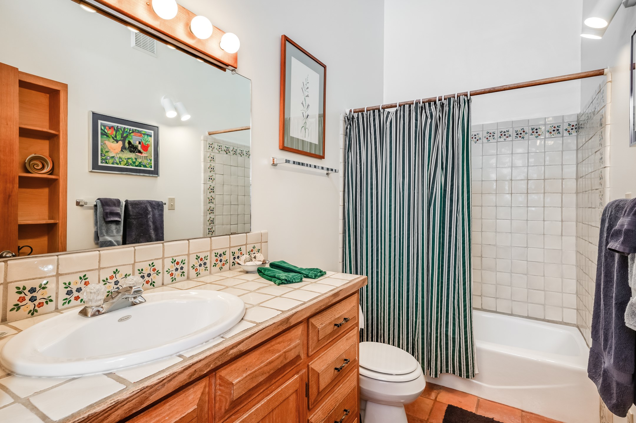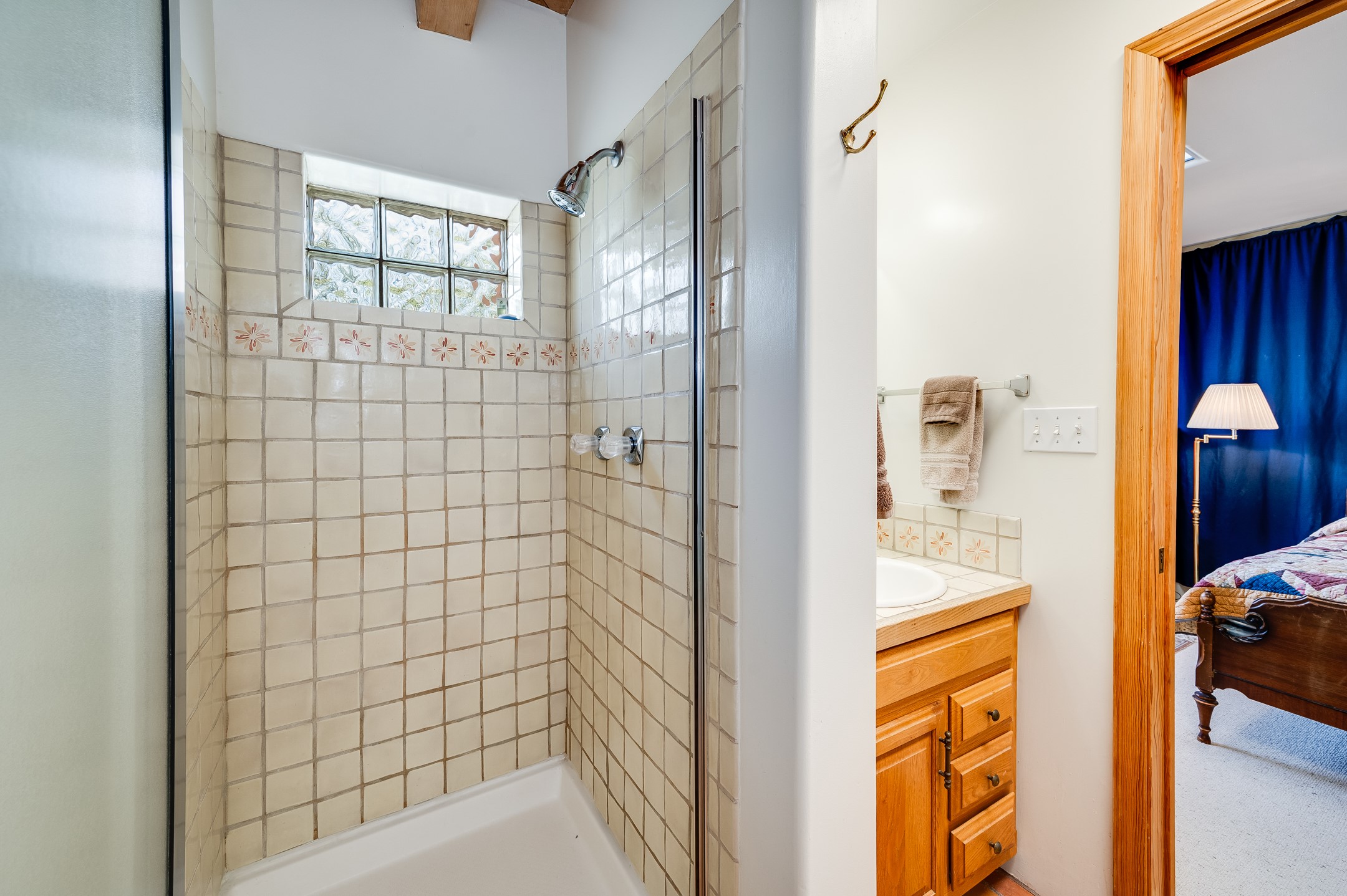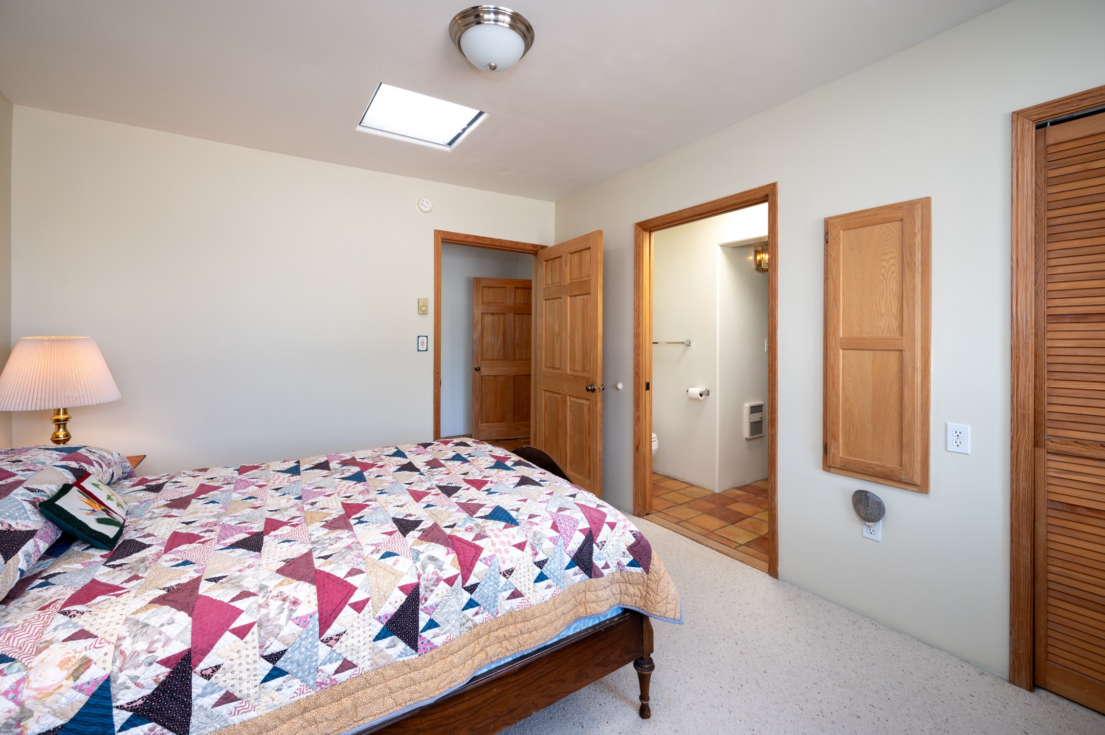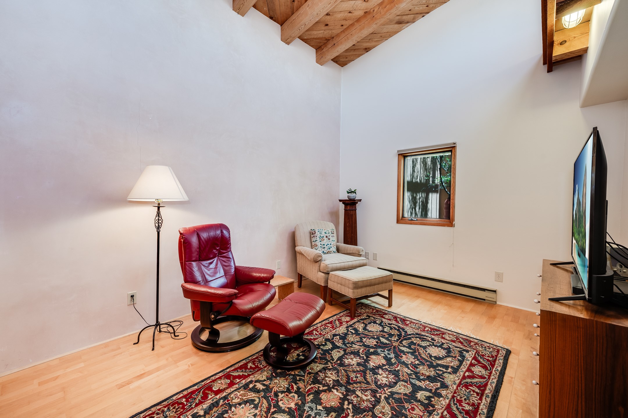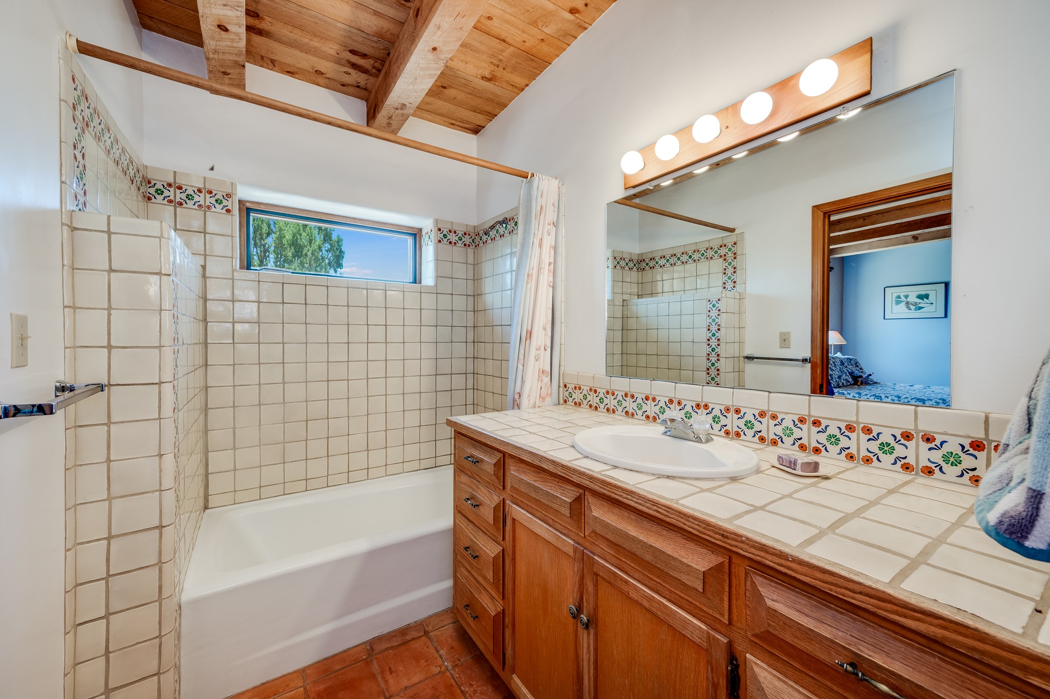 True pride of ownership is reflected in every inch of this wonderfully maintained Eldorado classic. This charming pueblo style home with clerestory windows and Trombe walls was built with passive solar gain in mind, and now with the addition of a solar panel system you can comfortably say goodbye to those pesky high electric bills and enjoy year-round comfort in this all-electric home with heat pumps for AC and heat. Upon entering this lovely home, you will instantly feel the timelessness of the traditional Santa Fe style including beautiful Saltillo tile floors, warm tinted plaster walls, kiva fireplace, and gorgeous wood ceilings and beams. This, along with the very flexible floorplan, allows you to create your perfect living spaces to suit your lifestyle. Currently this 4-bedroom 3 bath home is set up as a 3-bedroom with a media room and a generously sized office off the primary bedroom. Outside, you get glorious western sunsets and mountain views off your wood deck with a walled yard for your four-legged friends, and a delightful private area with the best chicken facilities in Eldorado. Also includes an attached oversized 2-car garage with shop area and lots of storage space. The Eldorado community offers miles of trails and paved bike paths, a public library, a fantastic community center with pool, tennis, pickleball, volleyball, disc golf, athletic fields, dog park and more. It also has The Agora Shopping center with grocery store, and so much more! Did I mention the community preserve and the starry night skies?