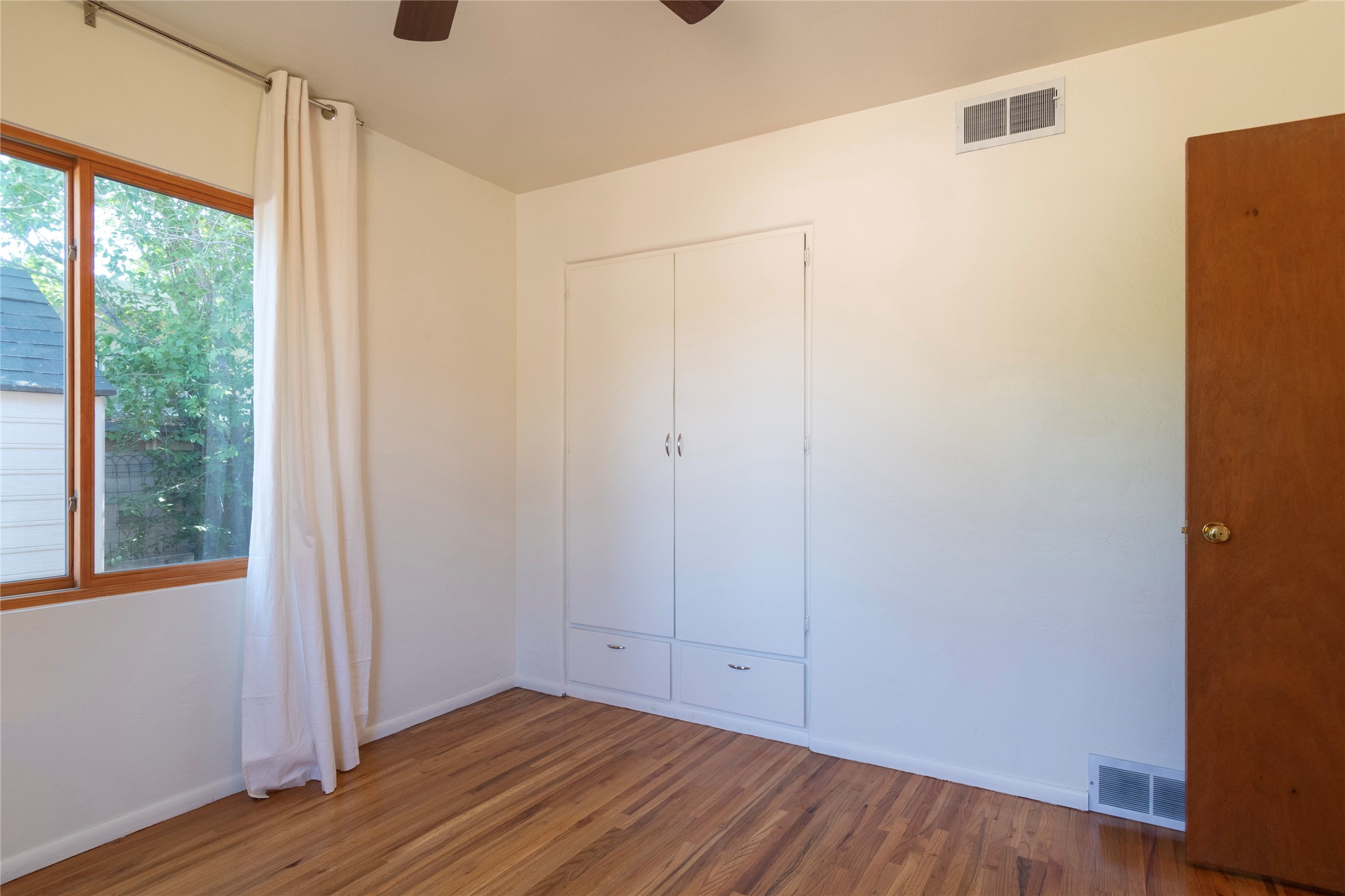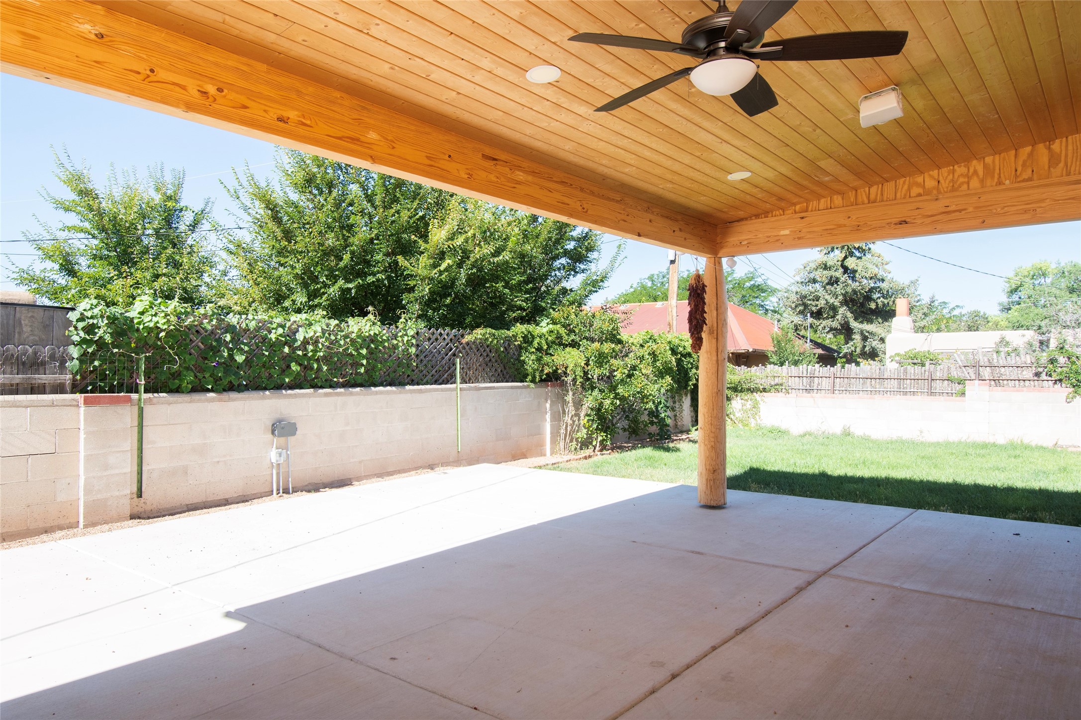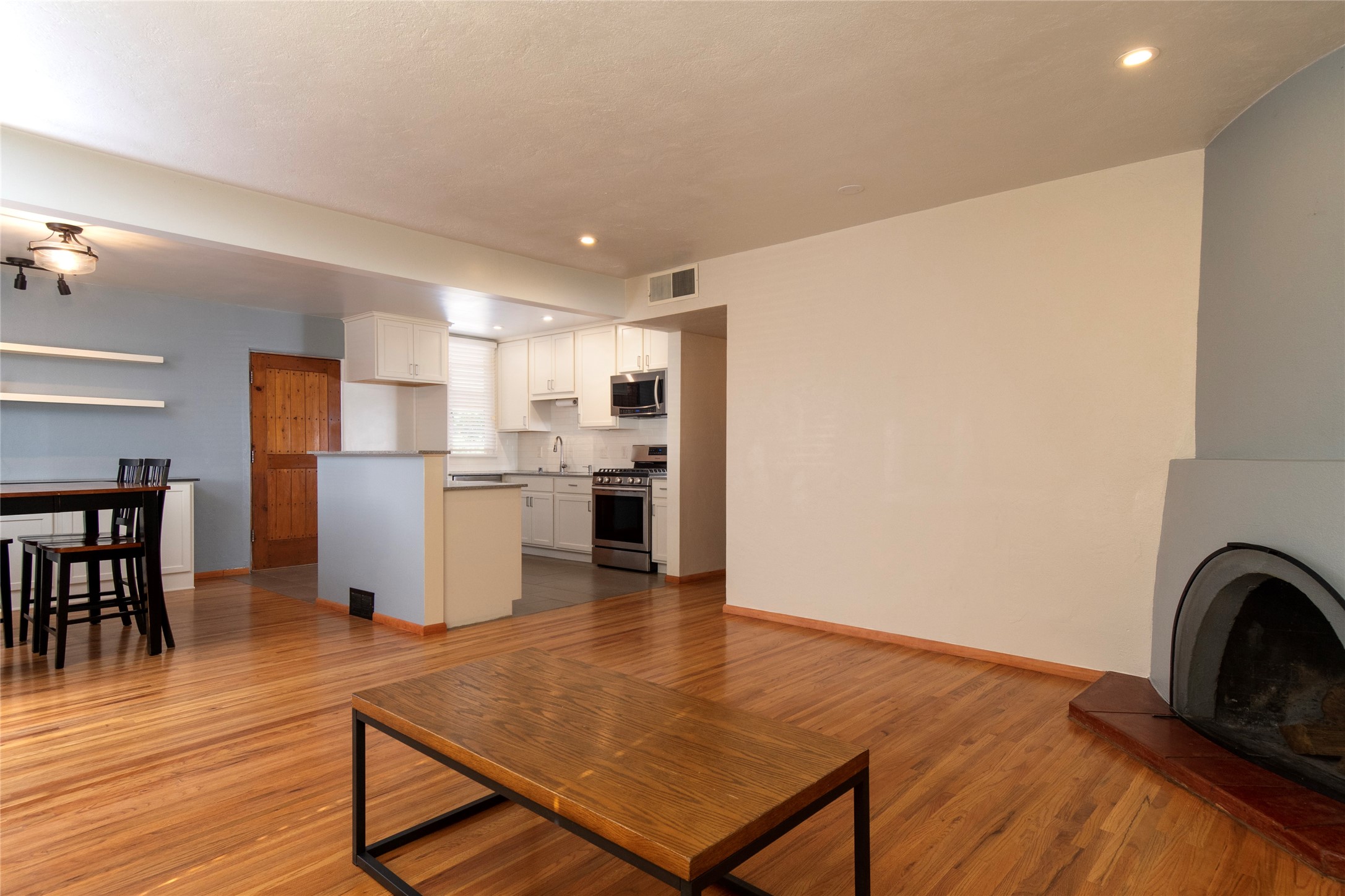 This sweet Allen Stamm home is located in desirable Casa Solana in the Northwest region of Santa Fe. Offering an ideal location for anyone looking for quick access to downtown, the area is an established neighborhood with a community pool, local businesses, and access to Frank Ortiz dog park. Beautiful wooden floors, an open floor plan, and a great room with an oversized kiva fireplace create a warm and inviting environment. The dining area, updated kitchen, and island offer plenty of cabinet space and top appliances. A good-sized covered portal and an open patio are just off the kitchen and are perfect for enjoying our Northern New Mexico seasons. The master suite has a 3/4 bath, walk-in closet, and access to the portal. Adjacent to the master suite are two bedrooms and a full bath. Simple, but charming, this home is just waiting for its new owners to make it their own.