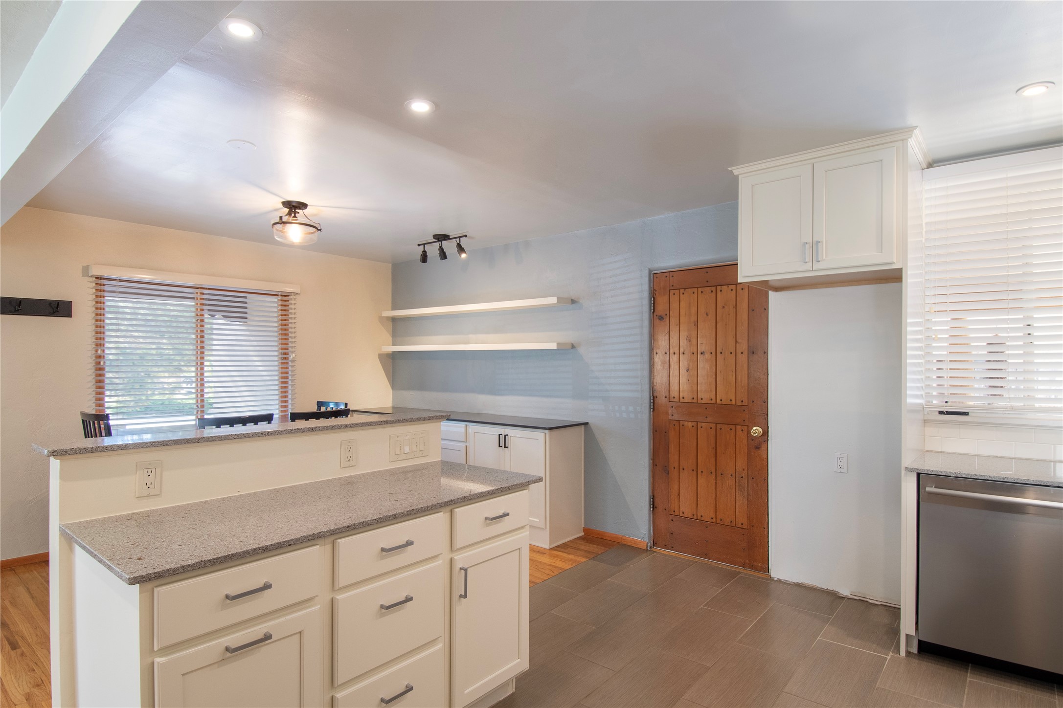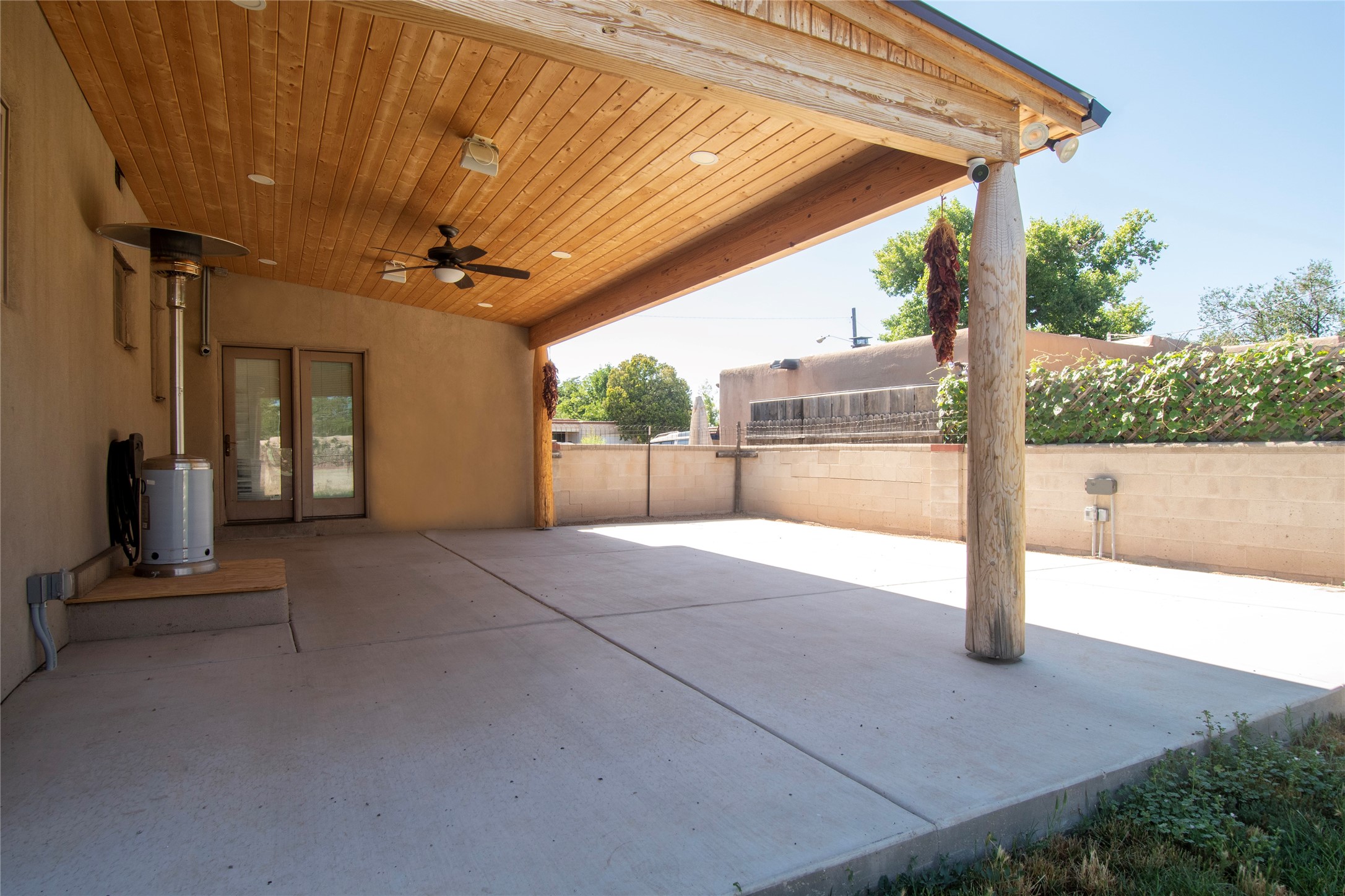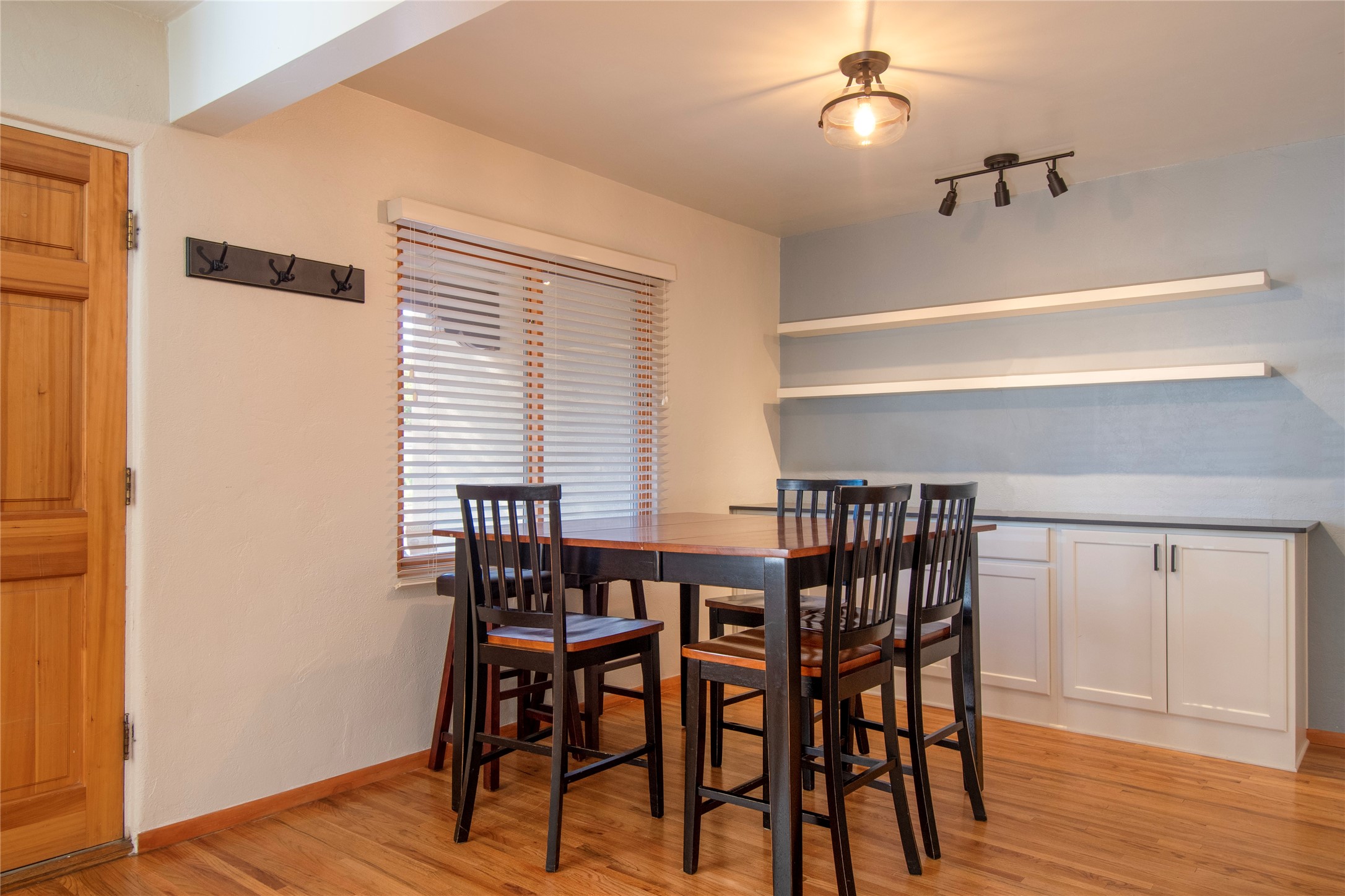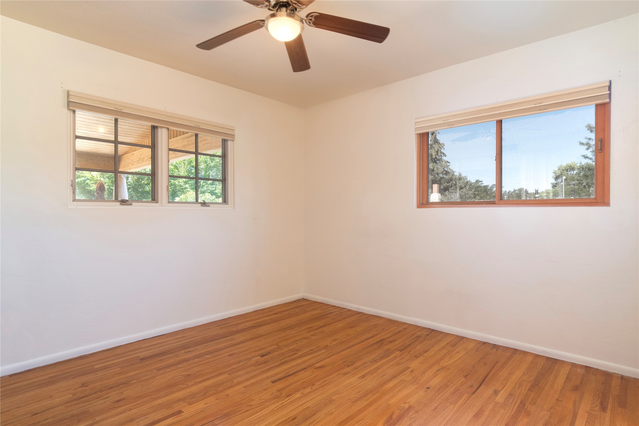 This sweet Allen Stamm home is located in desirable Casa Solana in the Northwest region of Santa Fe. Offering an ideal location for anyone looking for quick access to downtown, the area is an established neighborhood with a community pool, local businesses, and access to Frank Ortiz dog park. Beautiful wooden floors, an open floor plan, and a great room with an oversized kiva fireplace create a warm and inviting environment. The dining area, updated kitchen, and island offer plenty of cabinet space and top appliances. A good-sized covered portal and an open patio are just off the kitchen and are perfect for enjoying our Northern New Mexico seasons. The master suite has a 3/4 bath, walk-in closet, and access to the portal. Adjacent to the master suite are two bedrooms and a full bath. Simple, but charming, this home is just waiting for its new owners to make it their own.