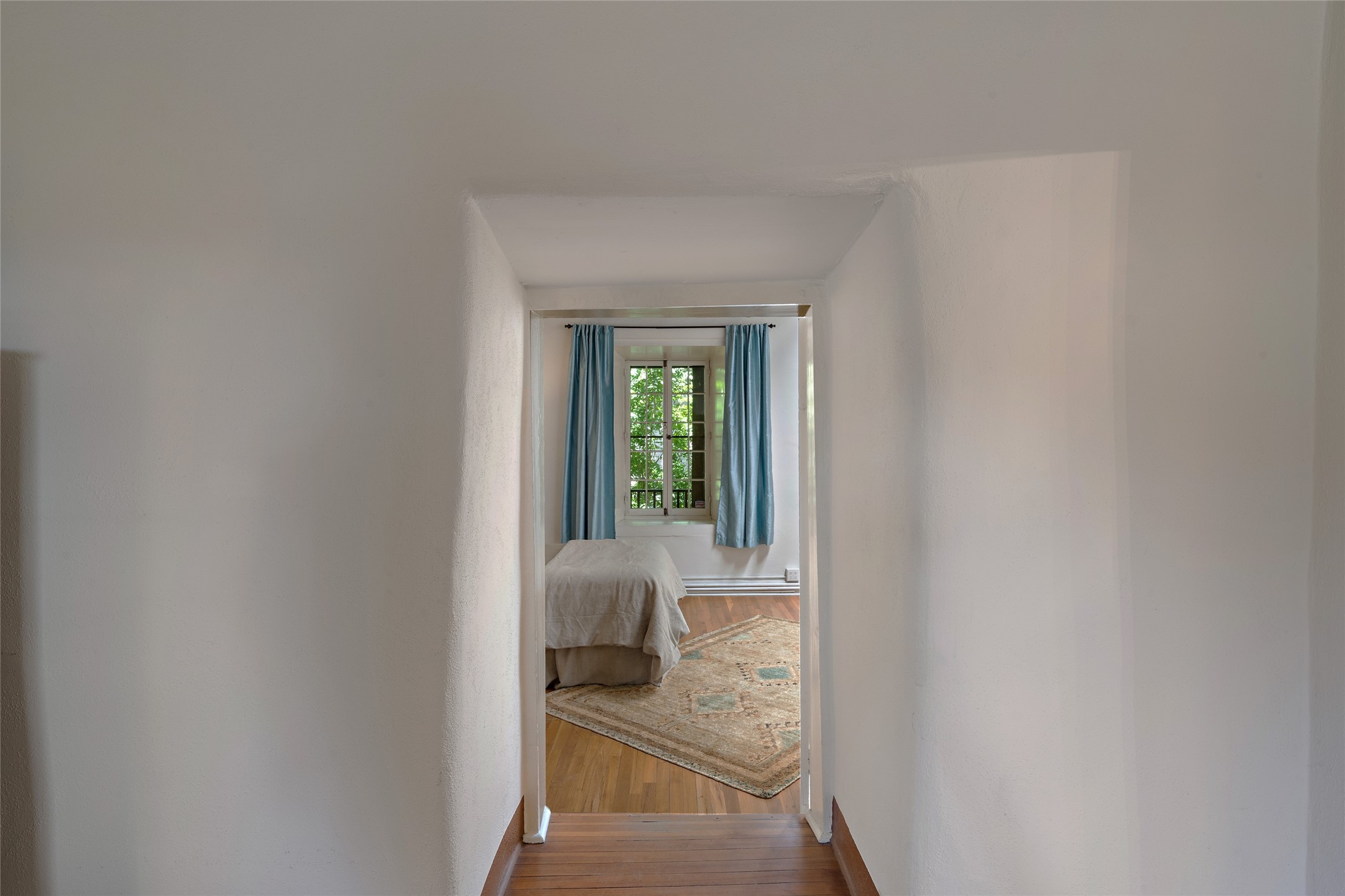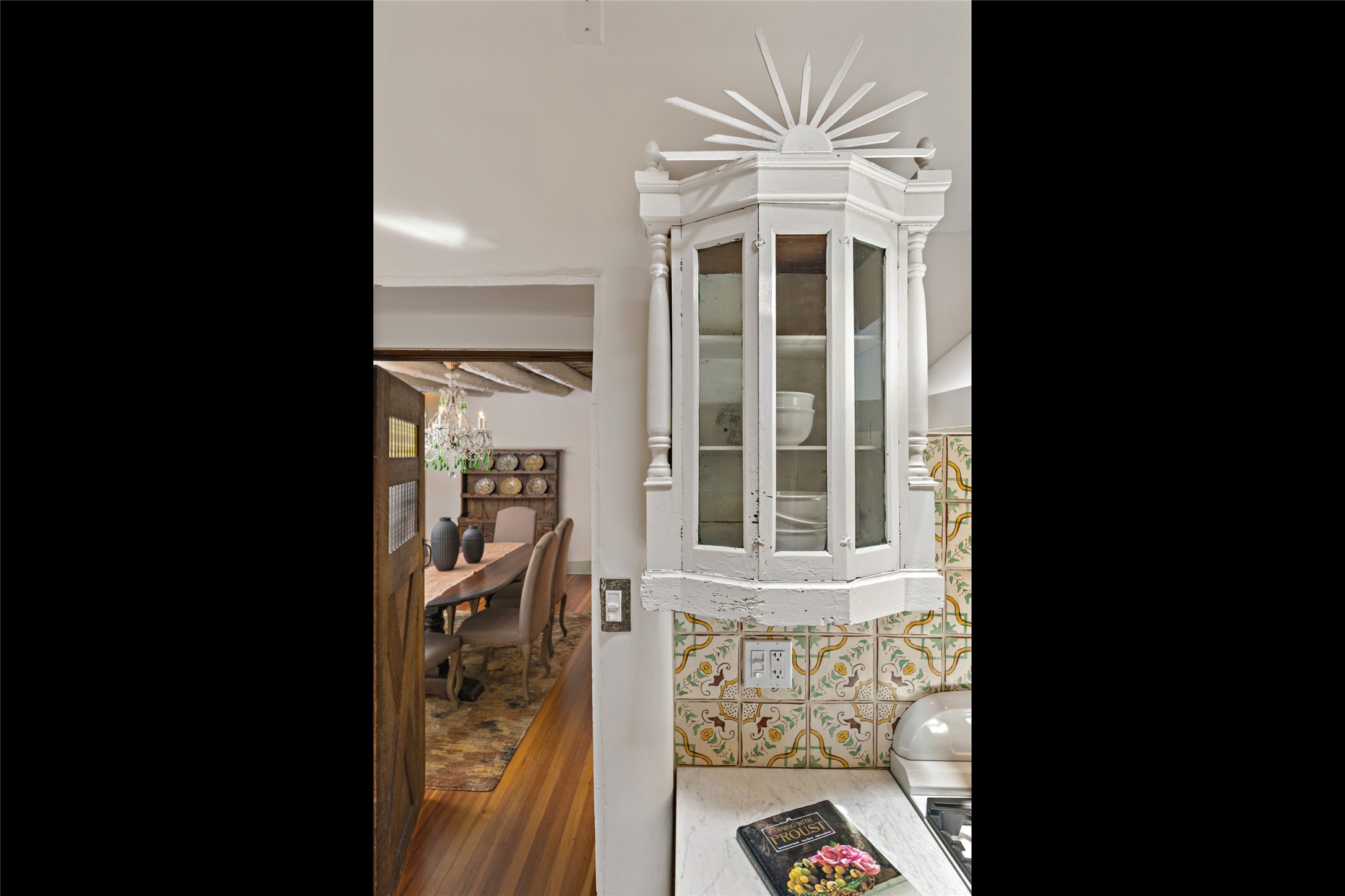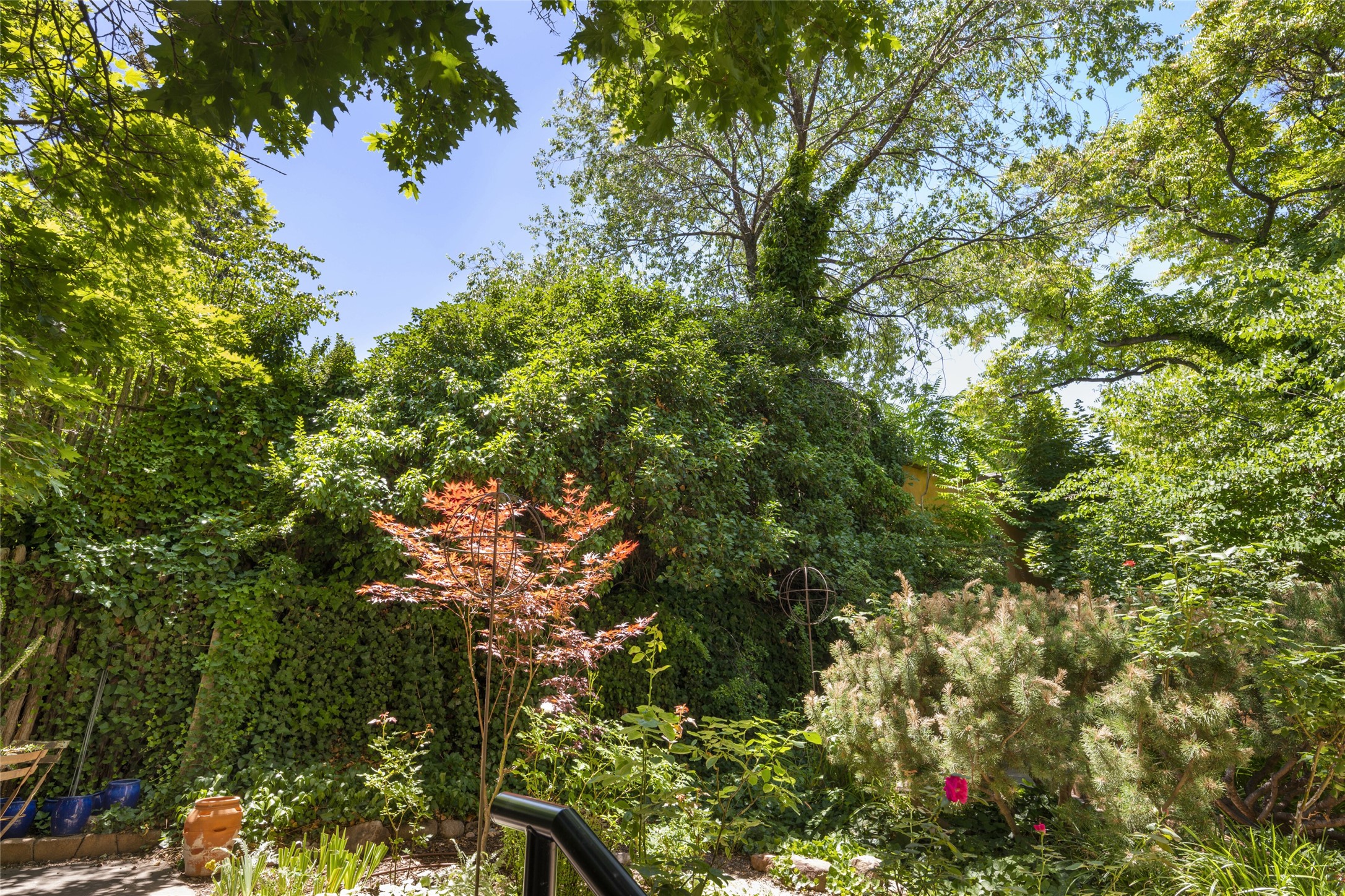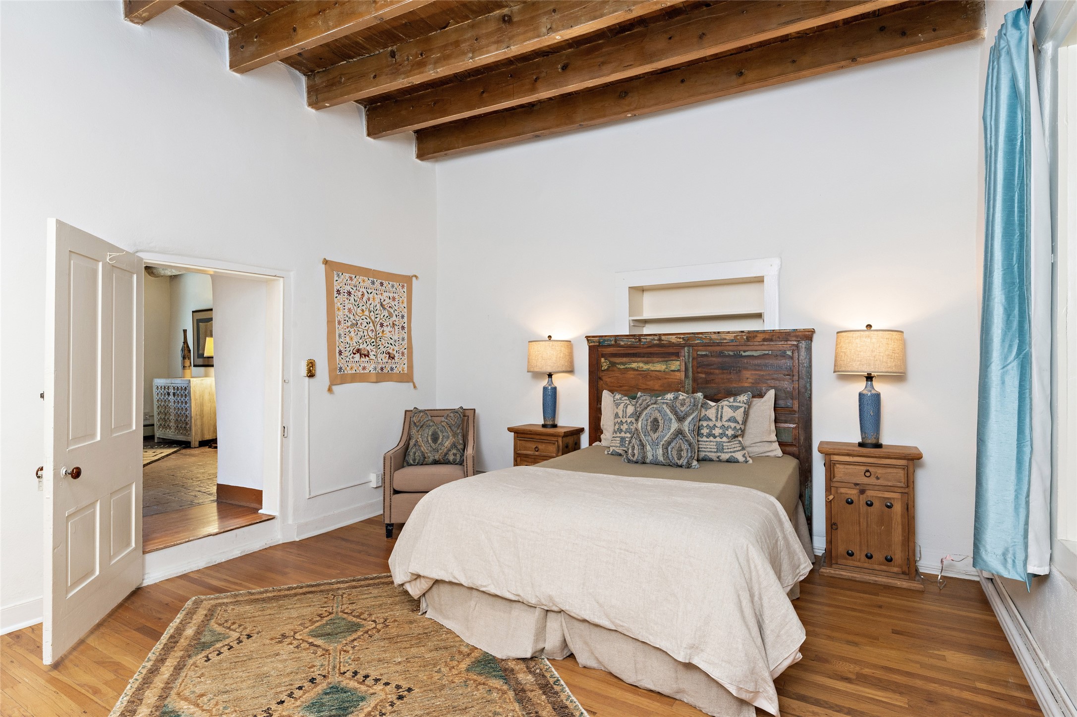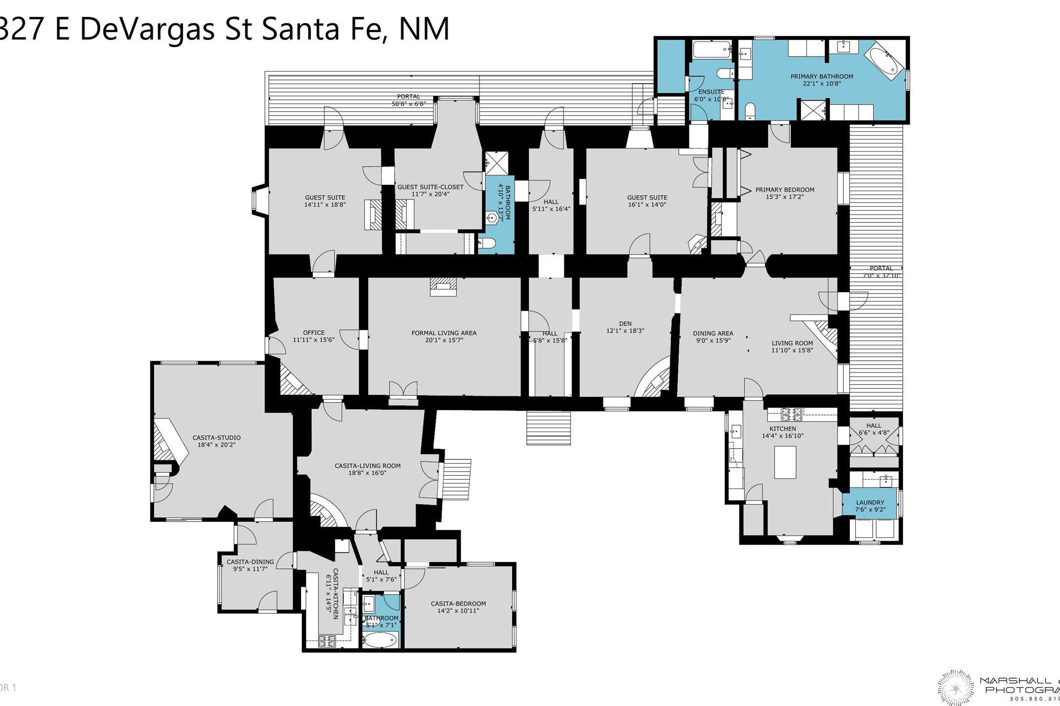 The Historically Significant "Boyle House", listed on the National Register of Historic Places as part of the Barrio de Analco historic district, appears on the earliest known map of Santa Fe, the Urrutia Map of 1767. Its charm features three foot thick adobe walls, hand peeled vigas dating to the 1720's covered with split cedar rajas and hand planed territorial style vigas, all carefully preserved over the centuries. The property is a quick walk to the Plaza, Canyon Road, and the Railyard. A private well provides irrigation for lush outdoor landscaping and patio areas, including fruit trees. The main house features two portals, three bedrooms, each with en-suite bathrooms, a spacious living room, an updated "farm kitchen" with new appliances, laundry room, and a garage. Included is an attached 2-bedroom, 1 bath apartment with garage and an additional two story, 1 bedroom, 1 bath studio. BCD zoning and separate metering of all three units allows for greater flexibility. The current owners were given an award for historic stewardship by the Historic Santa Fe Foundation in 2019. New research suggests the house belonged to Bernadino Sena, a renowned blacksmith, landowner, and fundraiser for San Miguel church in the 1700's. Based upon archeological findings, some portions of the house may possibly date before the Pueblo Revolt of 1680. For the historical purist this is a unique opportunity to become a steward of an early part of Santa Fe's history, and to sustain and preserve this historic house now and into the future..
