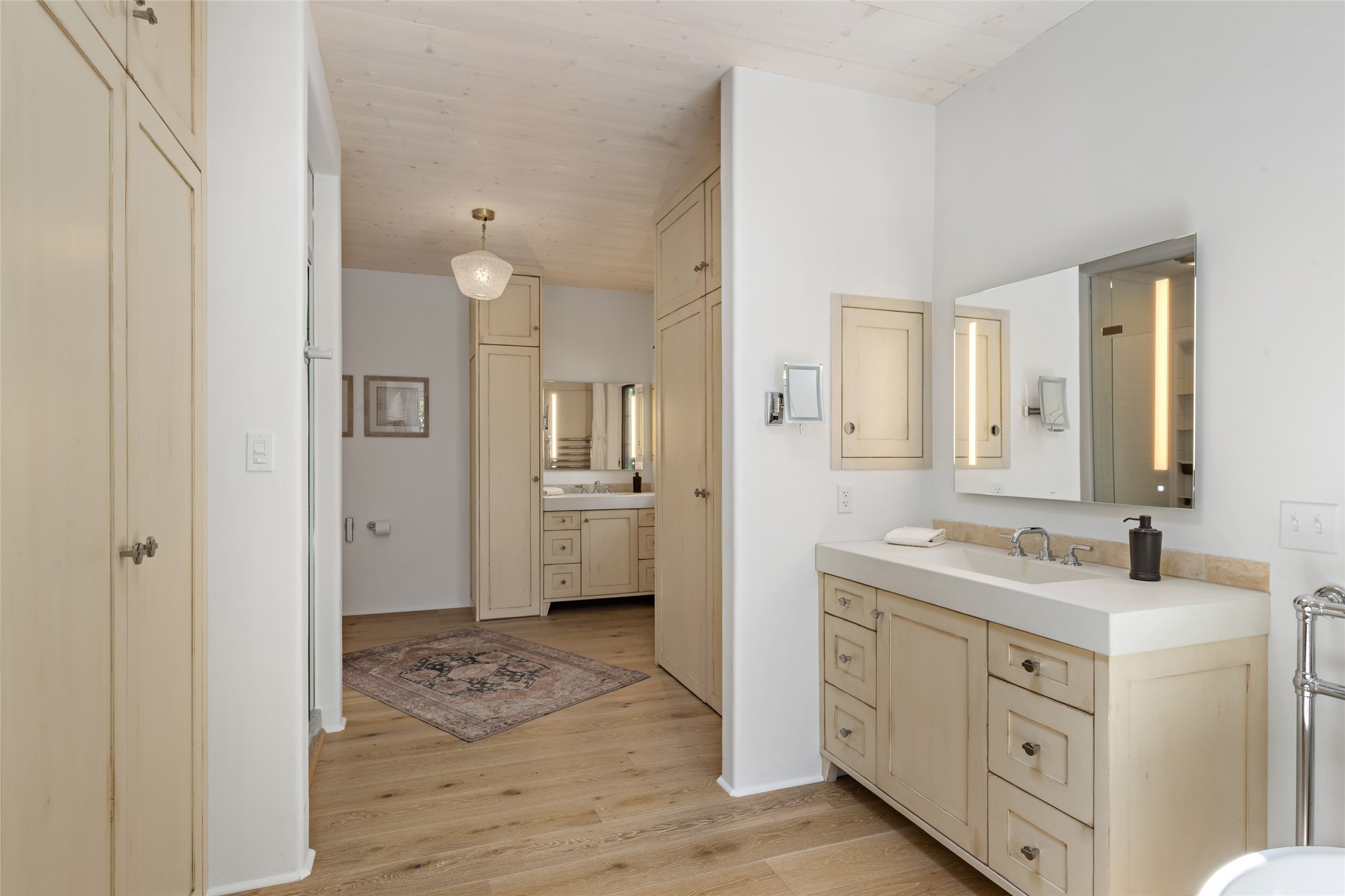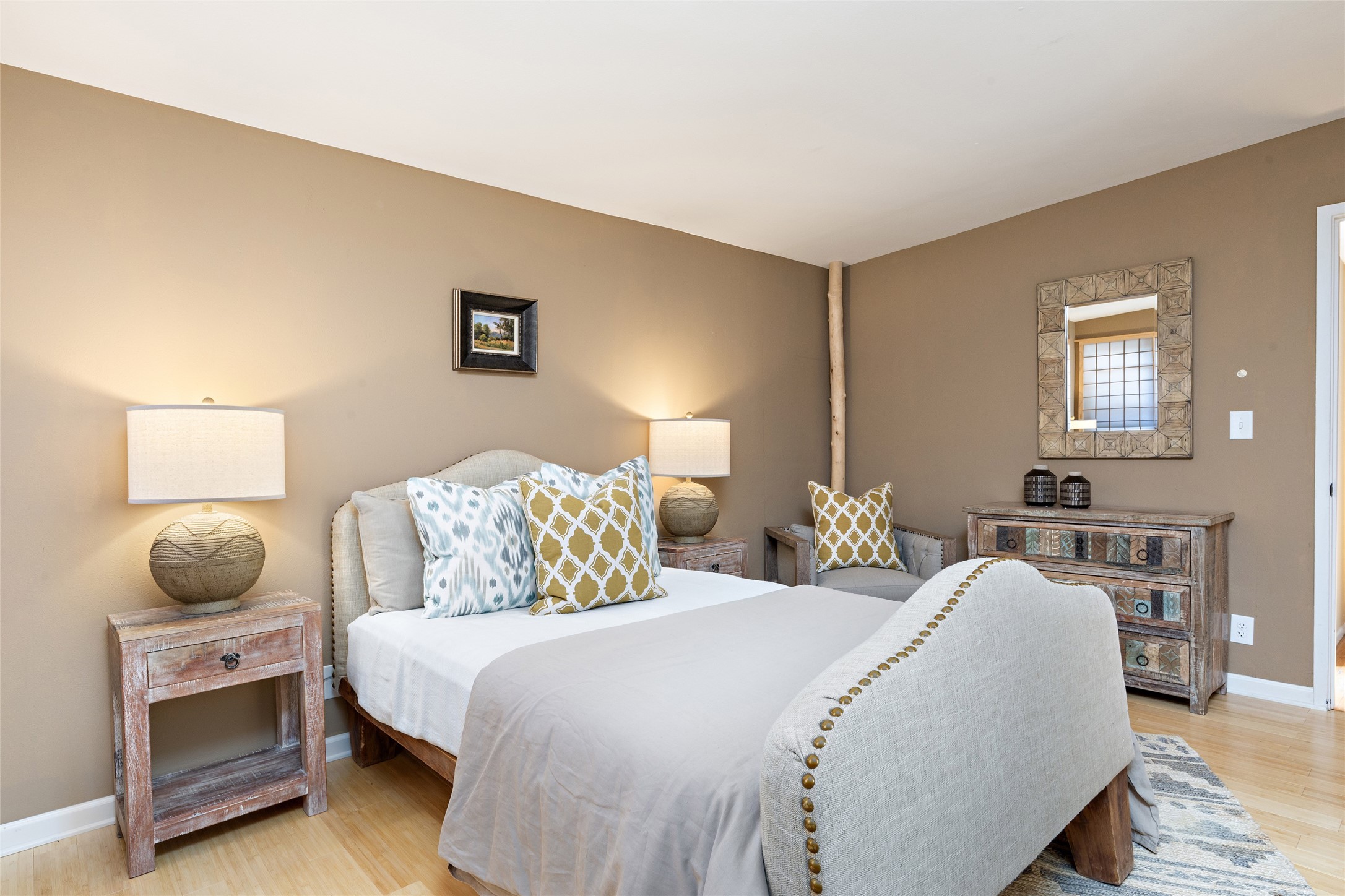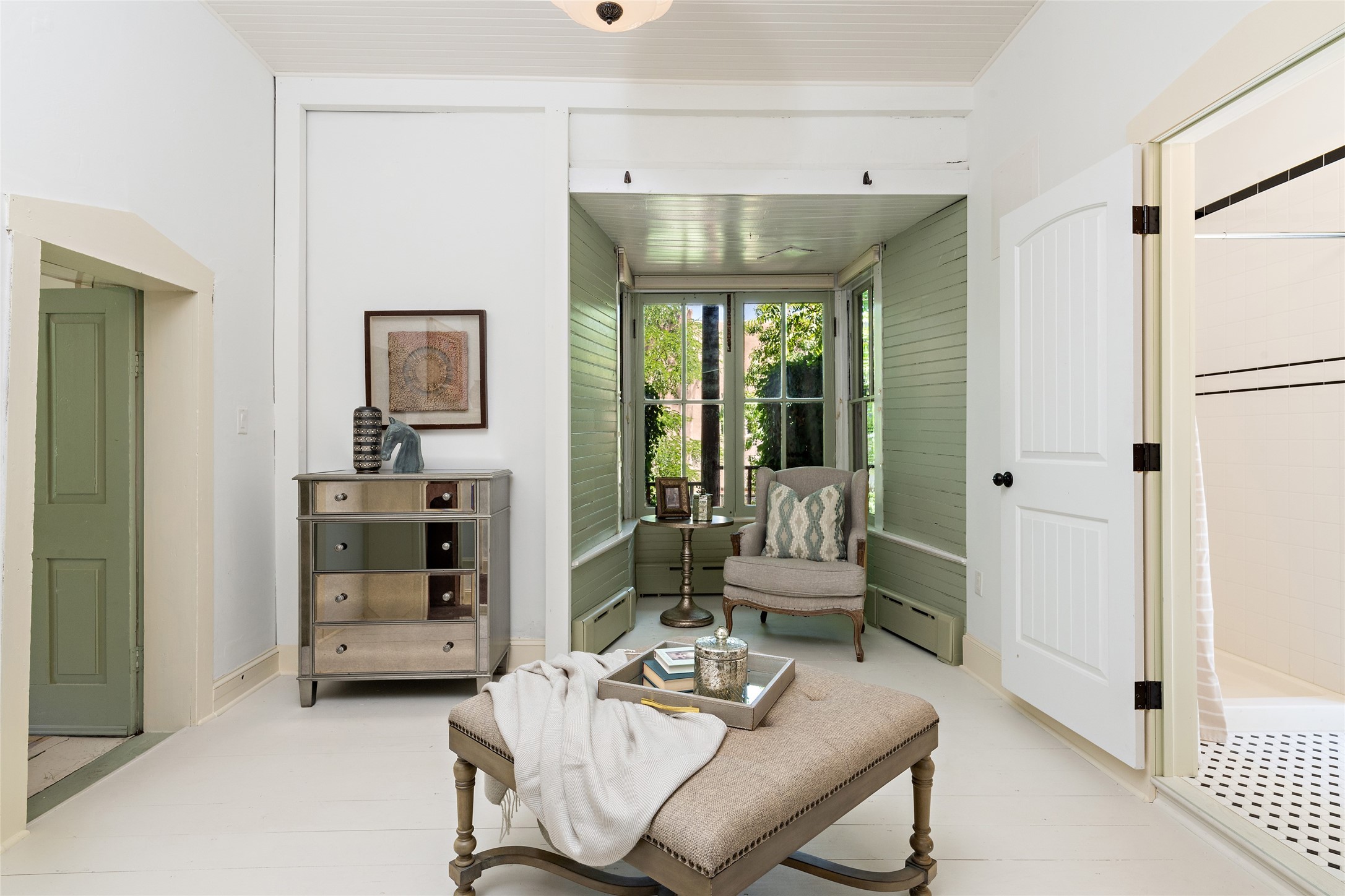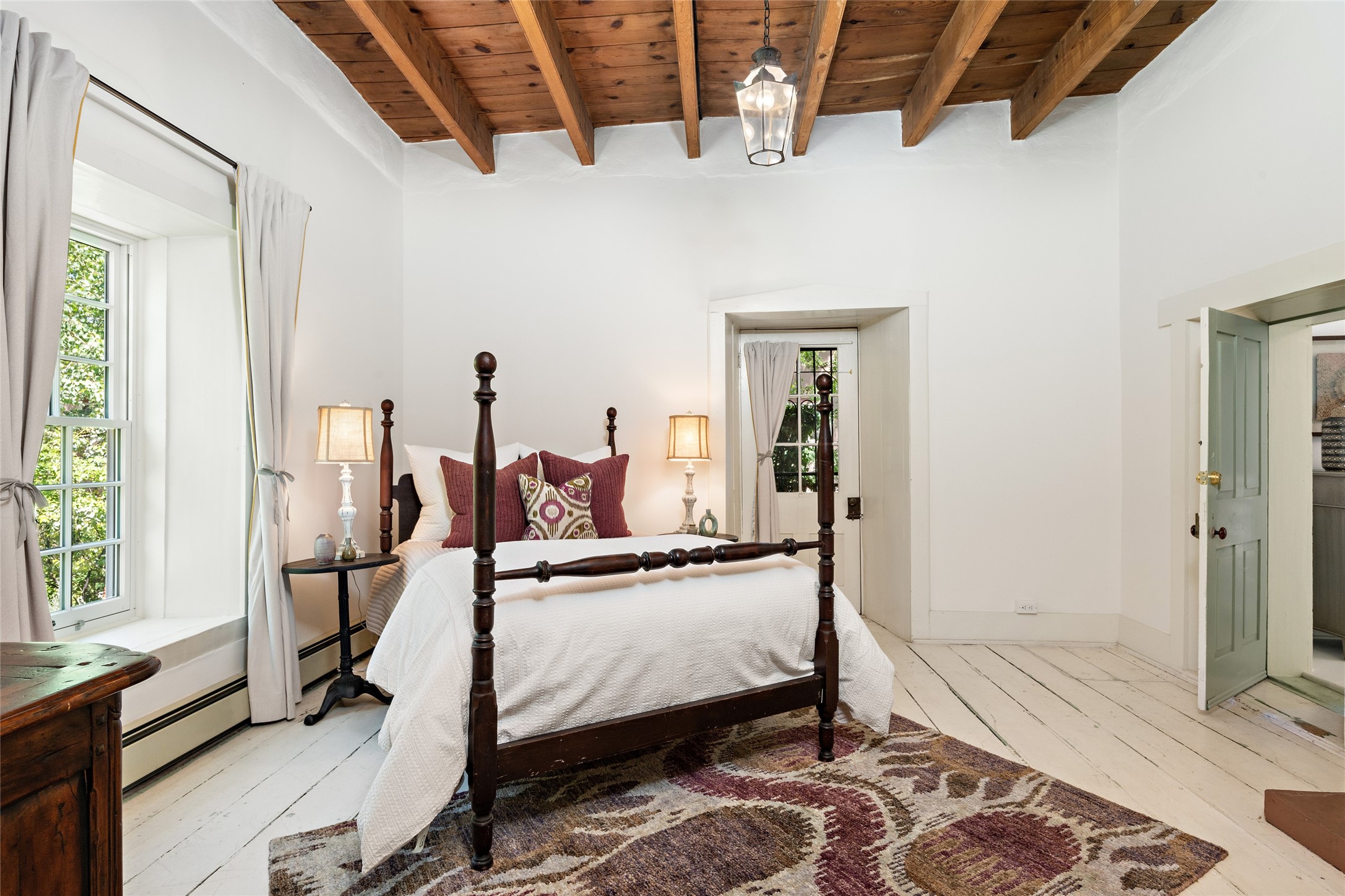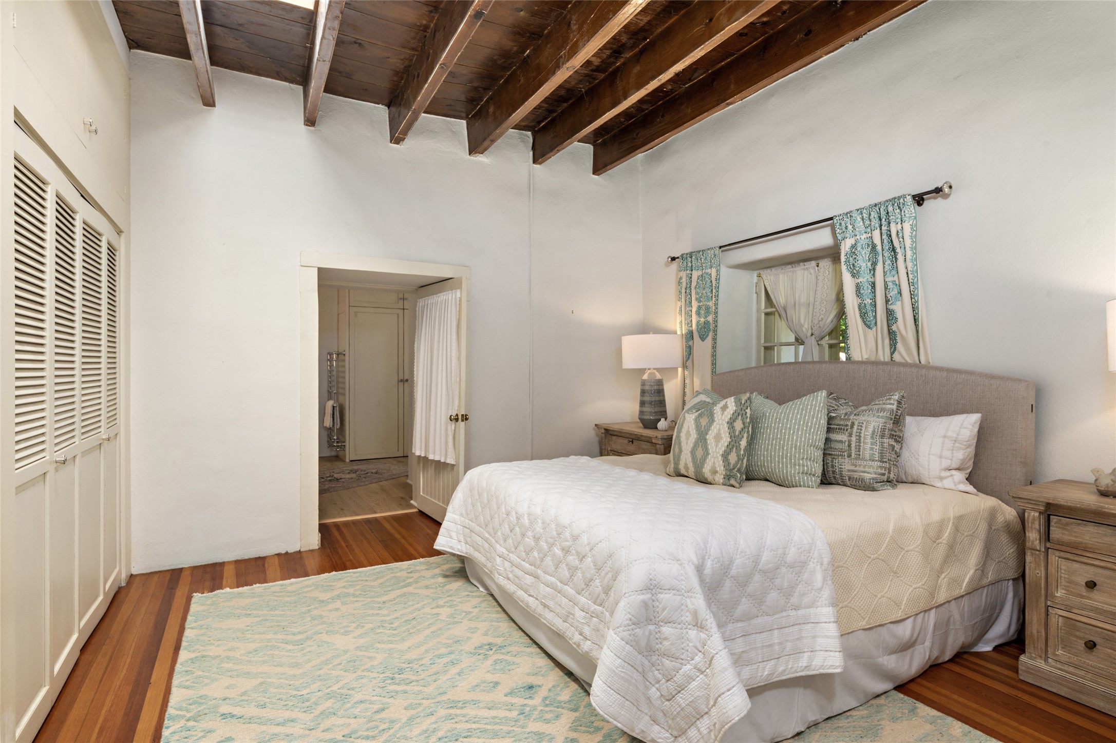 The Historically Significant "Boyle House", listed on the National Register of Historic Places as part of the Barrio de Analco historic district, appears on the earliest known map of Santa Fe, the Urrutia Map of 1767. Its charm features three foot thick adobe walls, hand peeled vigas dating to the 1720's covered with split cedar rajas and hand planed territorial style vigas, all carefully preserved over the centuries. The property is a quick walk to the Plaza, Canyon Road, and the Railyard. A private well provides irrigation for lush outdoor landscaping and patio areas, including fruit trees. The main house features two portals, three bedrooms, each with en-suite bathrooms, a spacious living room, an updated "farm kitchen" with new appliances, laundry room, and a garage. Included is an attached 2-bedroom, 1 bath apartment with garage and an additional two story, 1 bedroom, 1 bath studio. BCD zoning and separate metering of all three units allows for greater flexibility. The current owners were given an award for historic stewardship by the Historic Santa Fe Foundation in 2019. New research suggests the house belonged to Bernadino Sena, a renowned blacksmith, landowner, and fundraiser for San Miguel church in the 1700's. Based upon archeological findings, some portions of the house may possibly date before the Pueblo Revolt of 1680. For the historical purist this is a unique opportunity to become a steward of an early part of Santa Fe's history, and to sustain and preserve this historic house now and into the future..