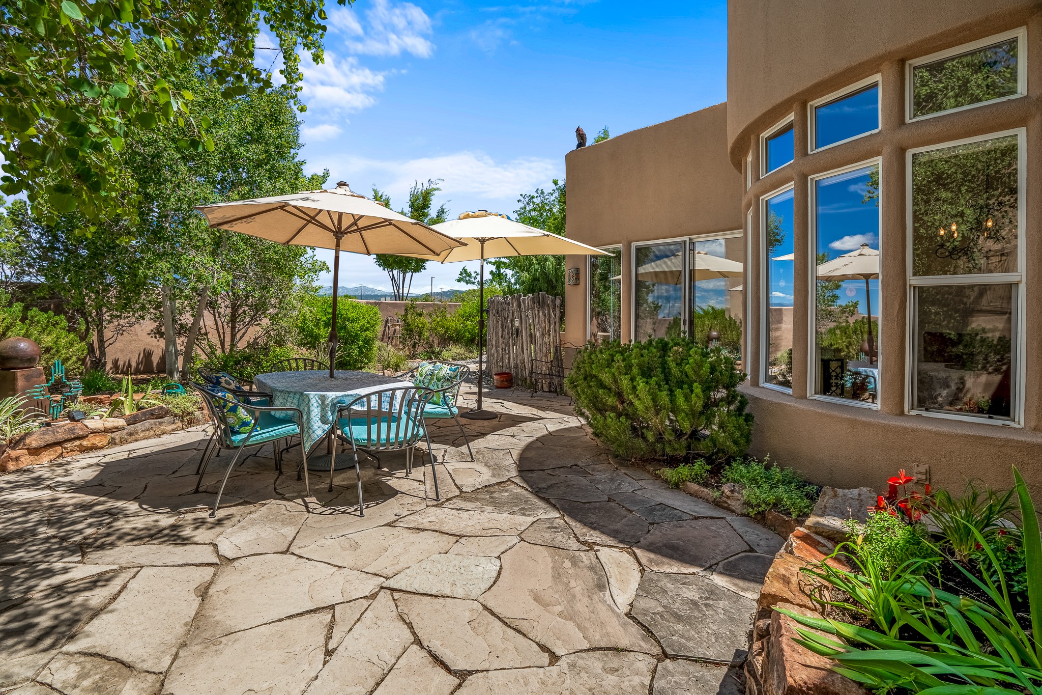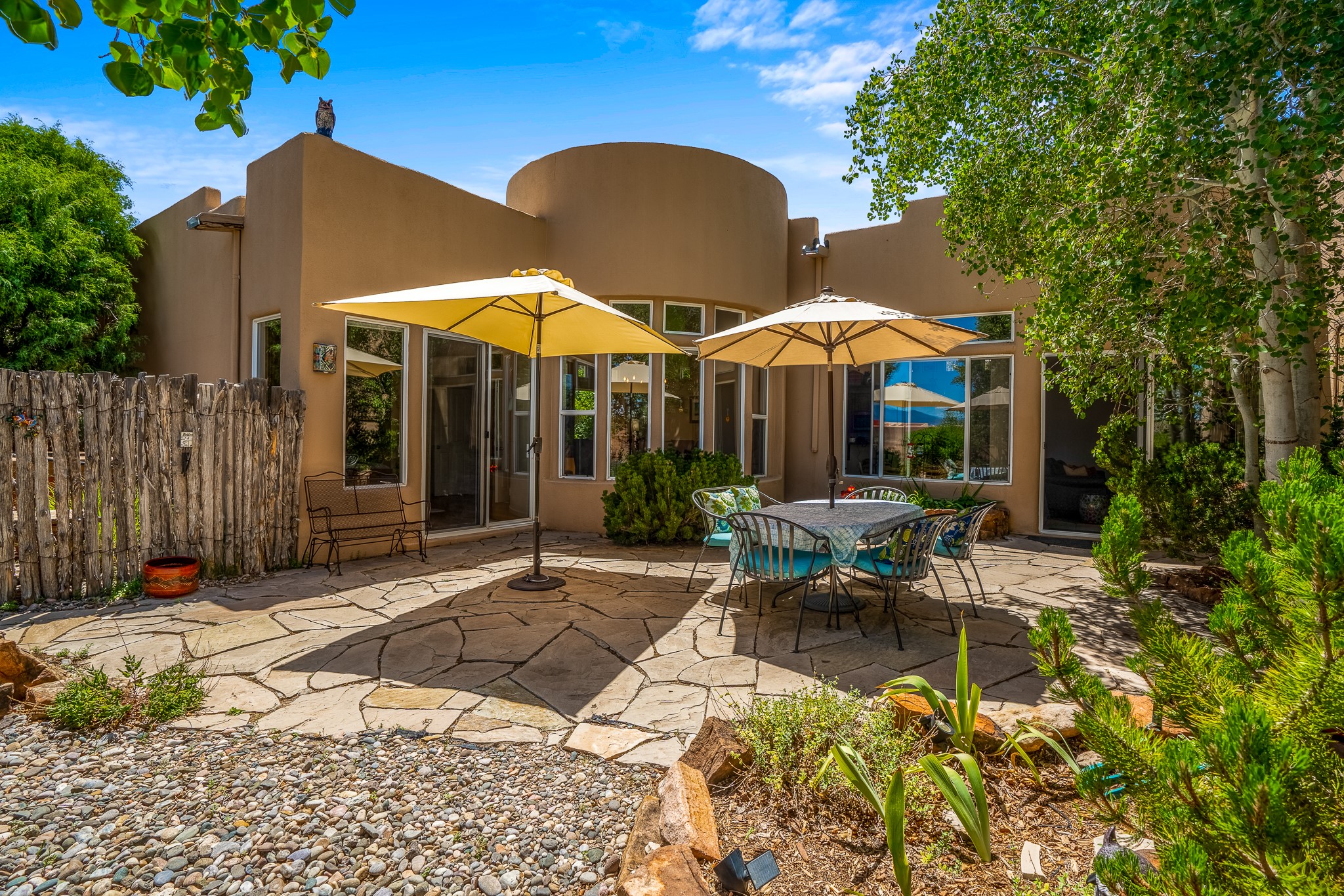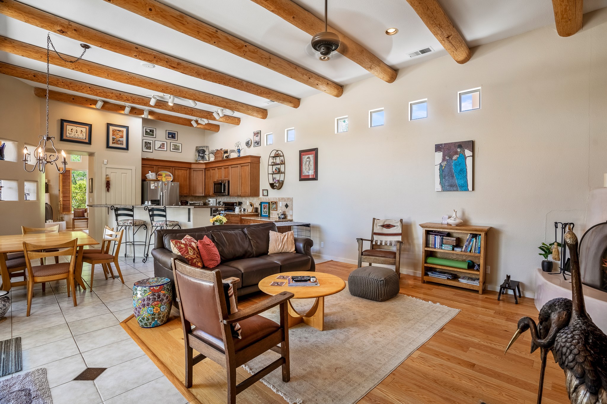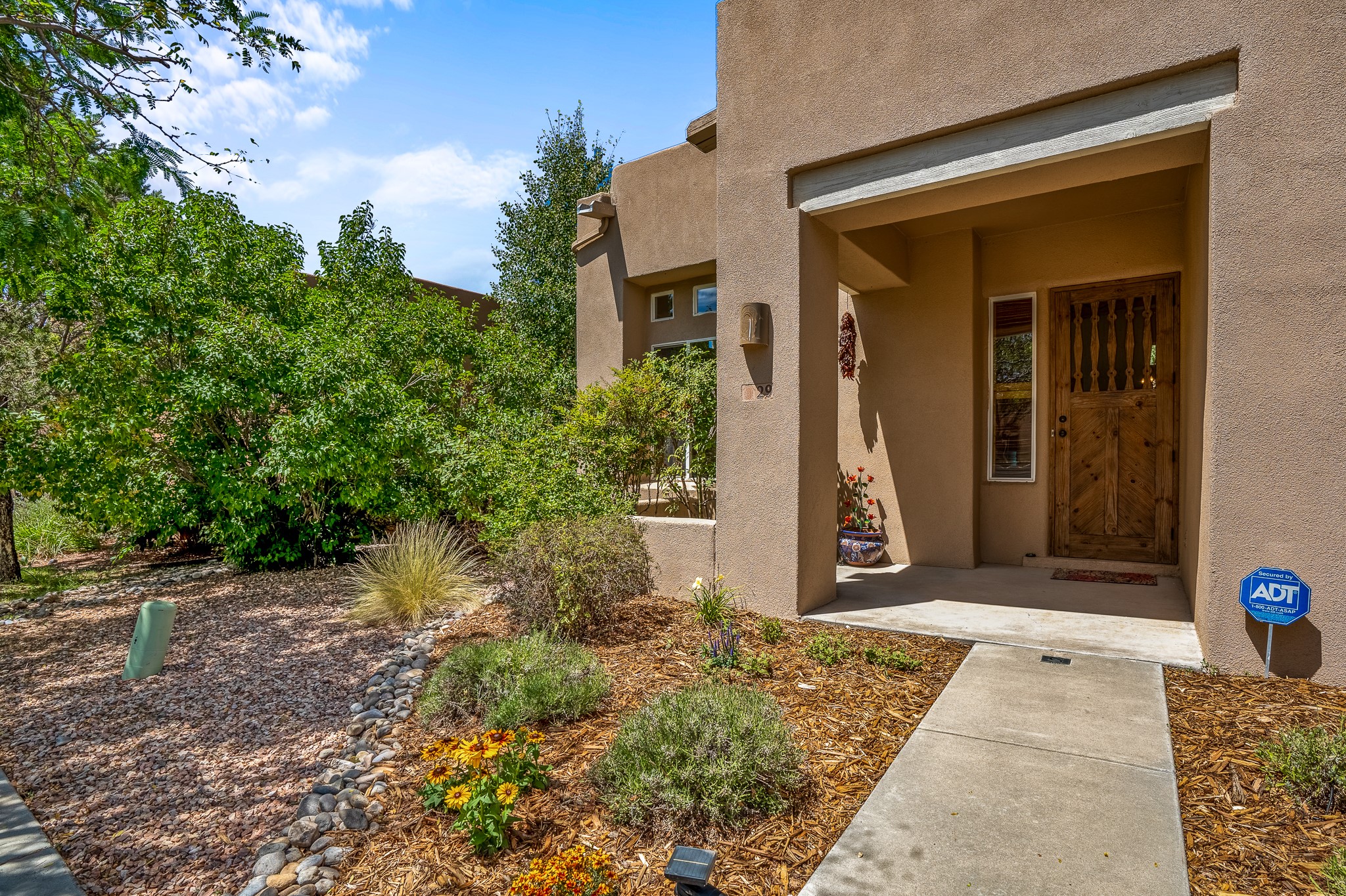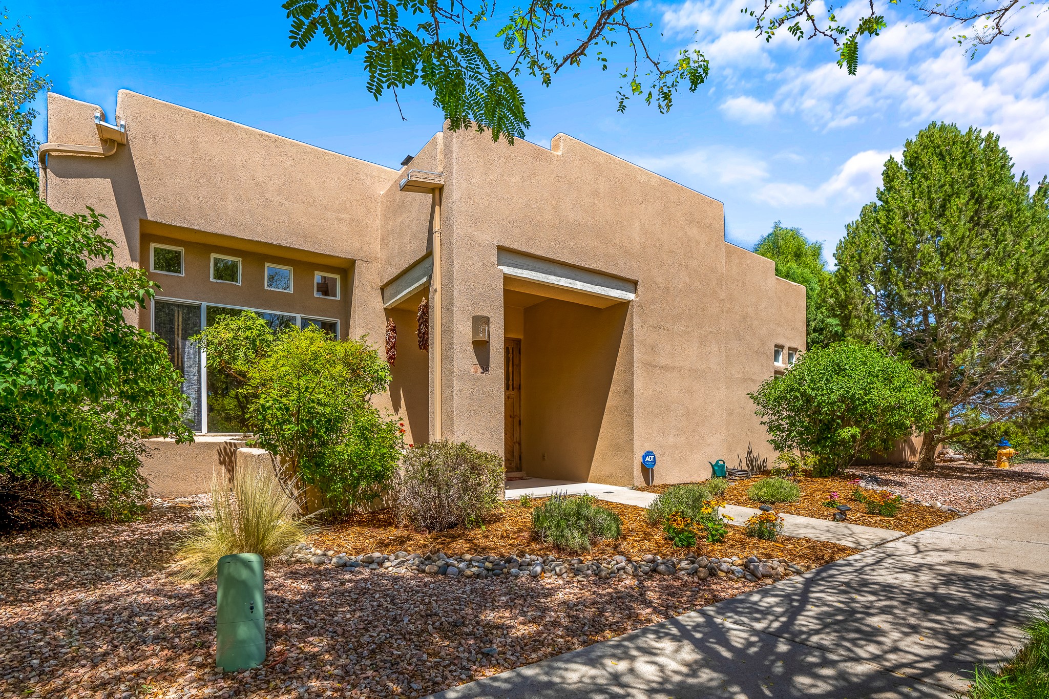 Sited in the highly sought after Rancho Viejo, this home is a gem in a great neighborhood. 3 bedrooms with 2 full bathrooms and an office area. Radiant heat with 2 Master Cool evaporative coolers. Laminate wood floors and tile. Light and bright with big windows. Willow wood shutters, new custom gates, and a 1800s Mexican barn door in the Primary Bedroom. The Primary bedroom has a large bathroom with separate bath tub and shower. Great views of the Jemez and Sangre de Cristo Mountain ranges. Dreamy sunsets from the Primary Bedroom. The enclosed backyard is landscaped with a private hot tub. This house is at the end of the of the street and is set in a very private part of the neighborhood. There is easy access to all of Santa Fe, I-25, 599 to get to Los Alamos, or to State Rd 14. Great schools are nearby with healthcare close too. Shopping, restaurants, and anything else you may want or need is minutes away. This is a great home priced to sell in a very hot market. Don't wait to schedule to see this one.