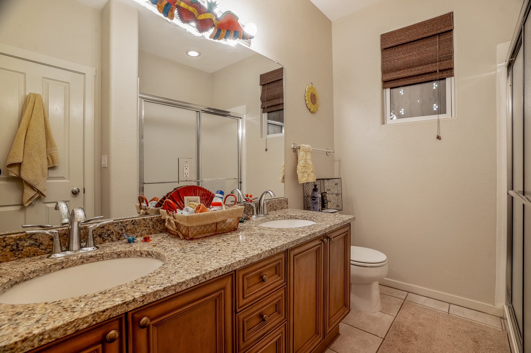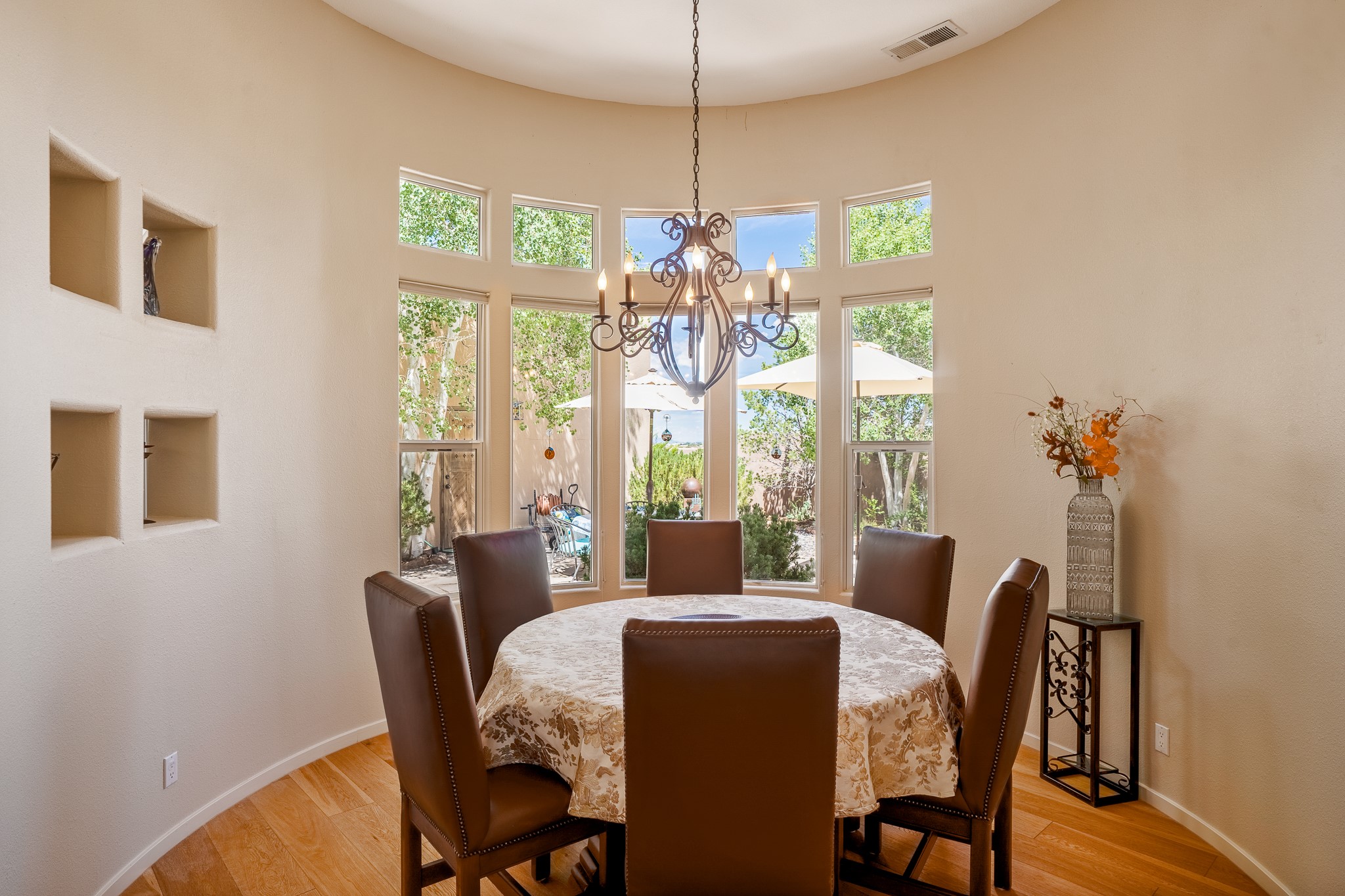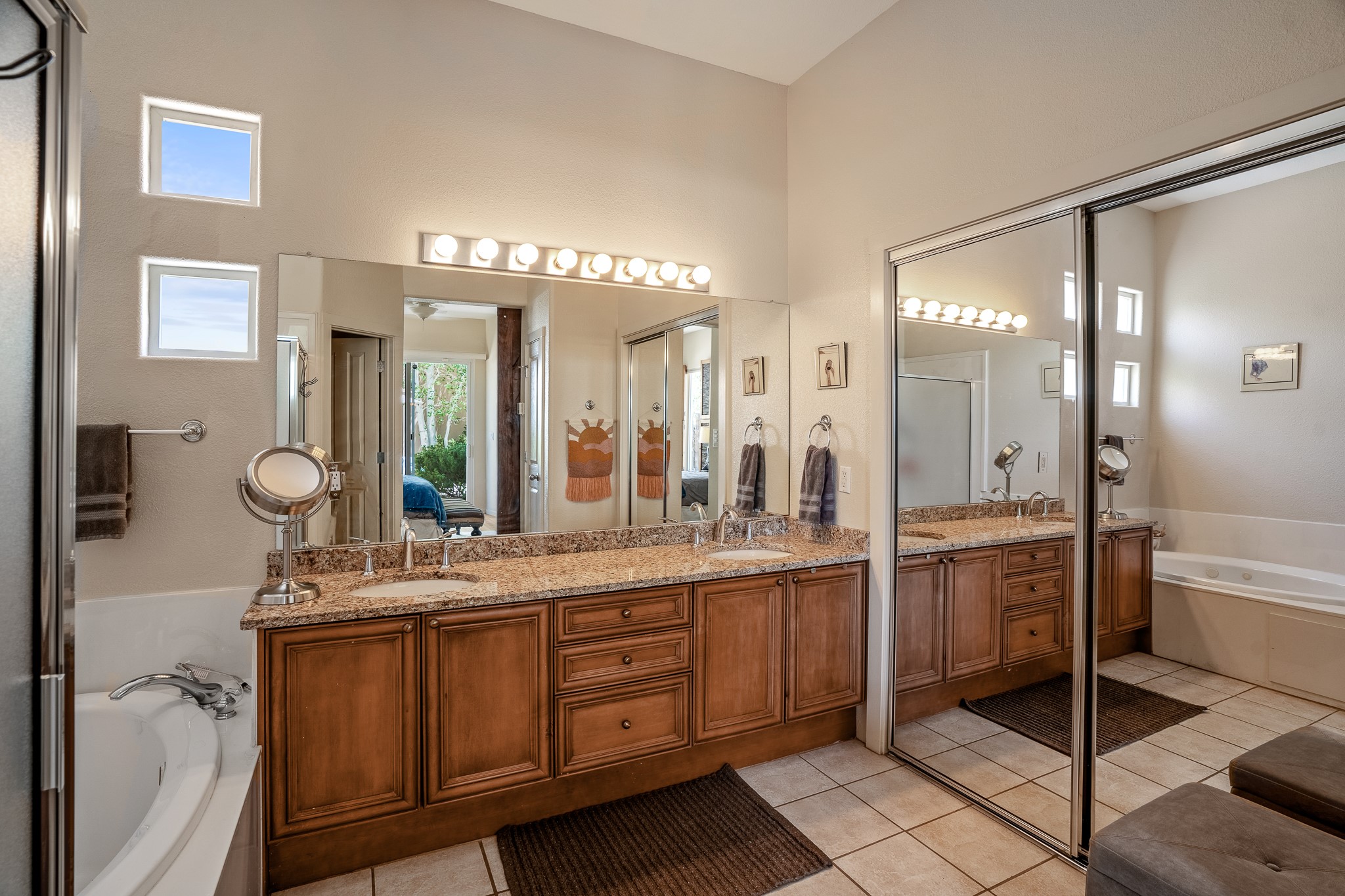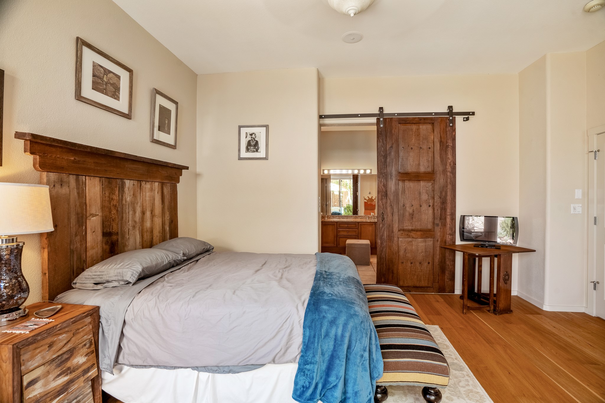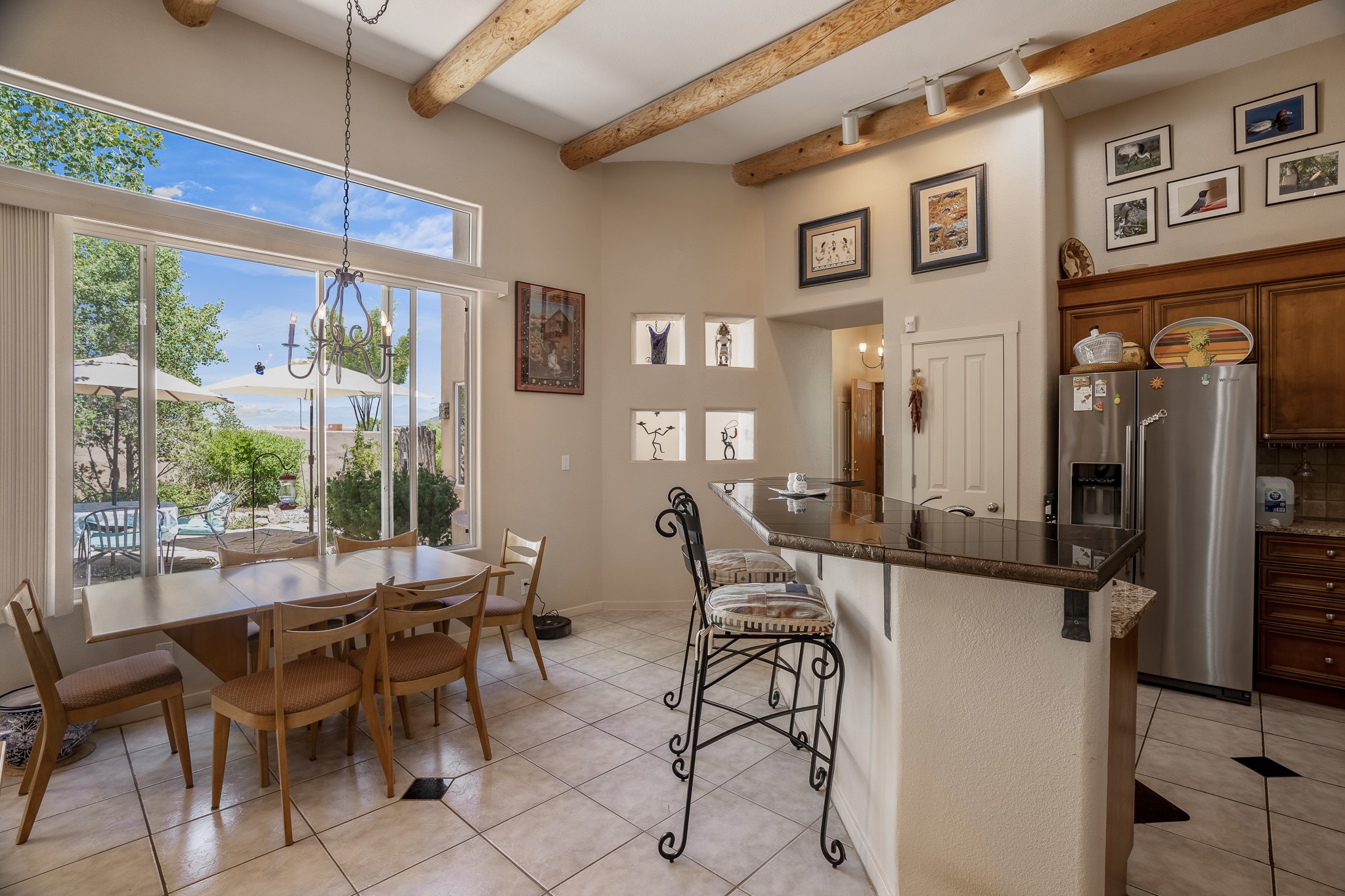 Sited in the highly sought after Rancho Viejo, this home is a gem in a great neighborhood. 3 bedrooms with 2 full bathrooms and an office area. Radiant heat with 2 Master Cool evaporative coolers. Laminate wood floors and tile. Light and bright with big windows. Willow wood shutters, new custom gates, and a 1800s Mexican barn door in the Primary Bedroom. The Primary bedroom has a large bathroom with separate bath tub and shower. Great views of the Jemez and Sangre de Cristo Mountain ranges. Dreamy sunsets from the Primary Bedroom. The enclosed backyard is landscaped with a private hot tub. This house is at the end of the of the street and is set in a very private part of the neighborhood. There is easy access to all of Santa Fe, I-25, 599 to get to Los Alamos, or to State Rd 14. Great schools are nearby with healthcare close too. Shopping, restaurants, and anything else you may want or need is minutes away. This is a great home priced to sell in a very hot market. Don't wait to schedule to see this one.