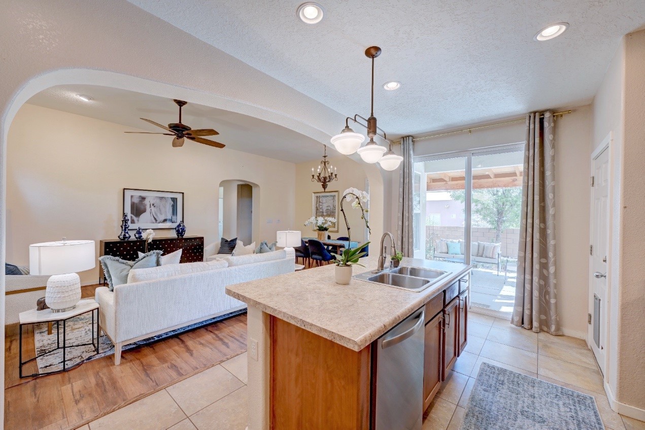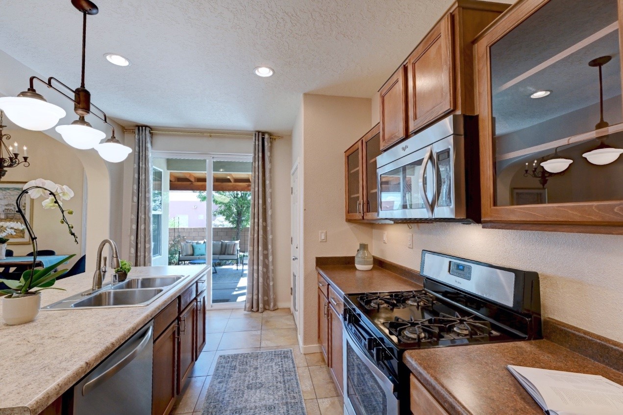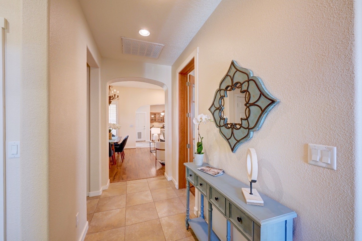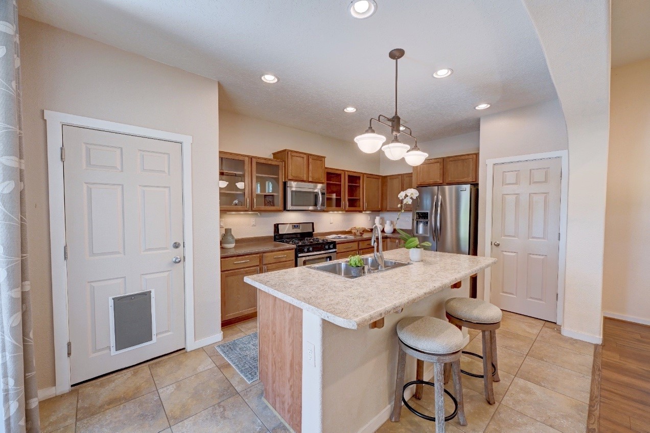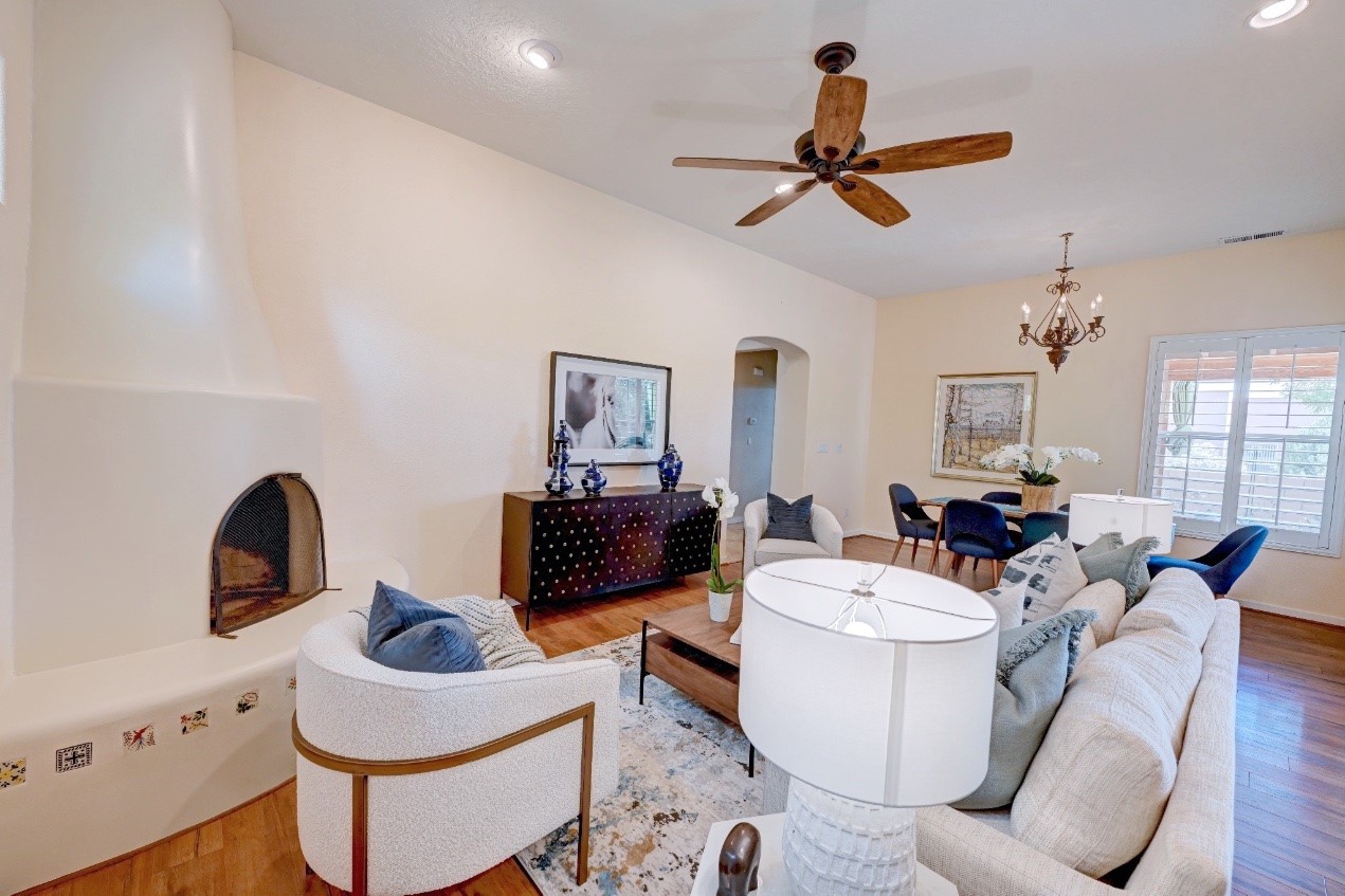 Beautifully upgraded single level home in the highly sought after Rancho Viejo. This stunning 3 bedroom, 2 bath home has an open and spacious floor plan with great natural light. Plantation shutters adorn the dining room's corner windows and a wood burning kiva fireplace is the living room's key feature. The open concept kitchen includes stainless steel appliances, custom cabinets and tile floors. There is forced air heat and refrigerated air conditioning. The spacious Primary Suite has a large walk-in closet and large bathroom with custom double sinks. This home is move-in ready. The outside features a generous portal for dining and fully landscaped and walled private yard. The house sits adjacent to a path creating additional privacy and space from neighbors. The community of Rancho Viejo was thoughtfully planned to preserve open spaces while providing a sense of community. Rancho Viejo is known for its miles of greenbelts and over 12 miles of paved trails for walking, biking and jogging. Come see this warm and inviting home situated in the lovely surroundings of Rancho Viejo. Please see the virtual tour in the listing!