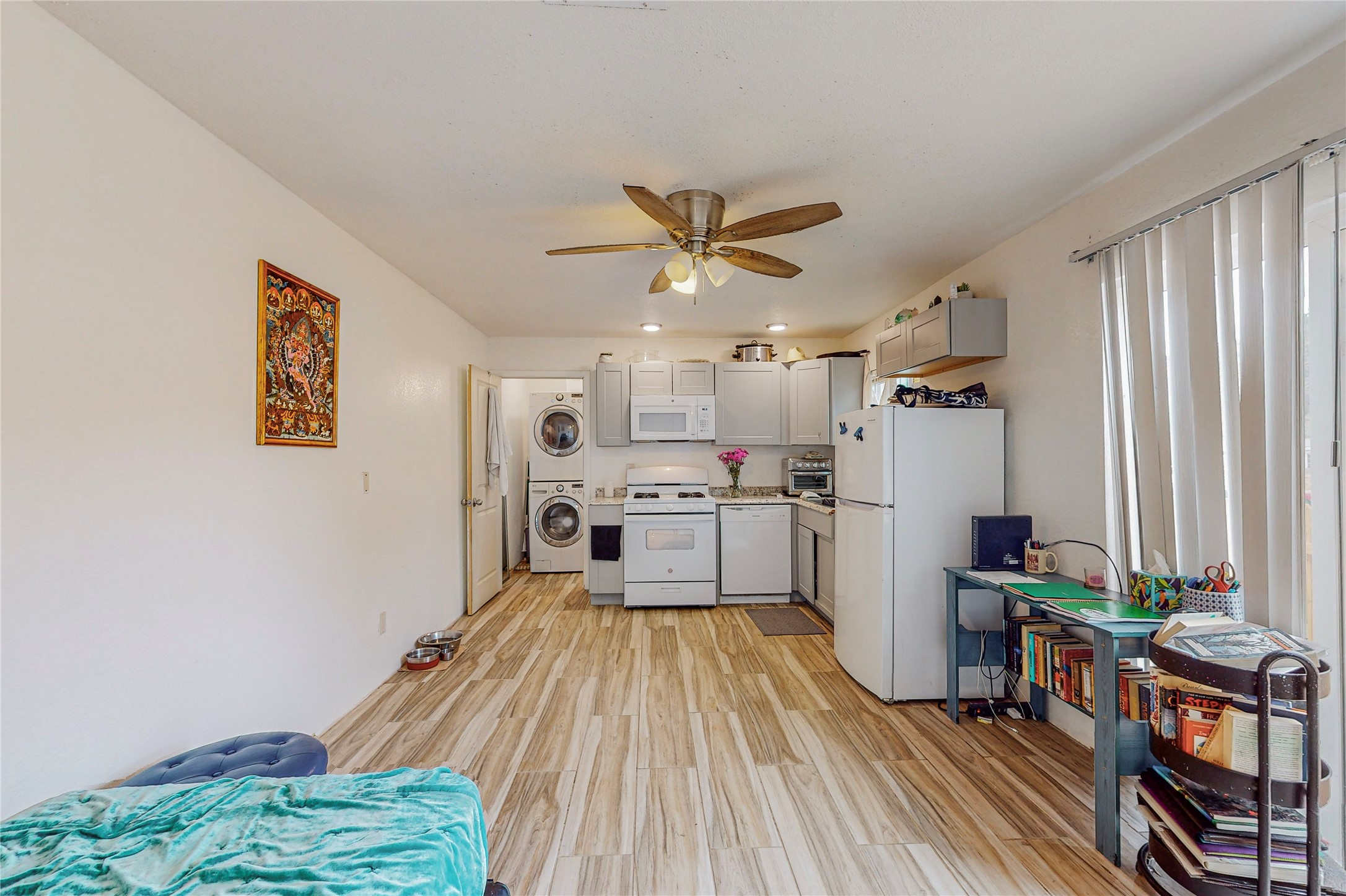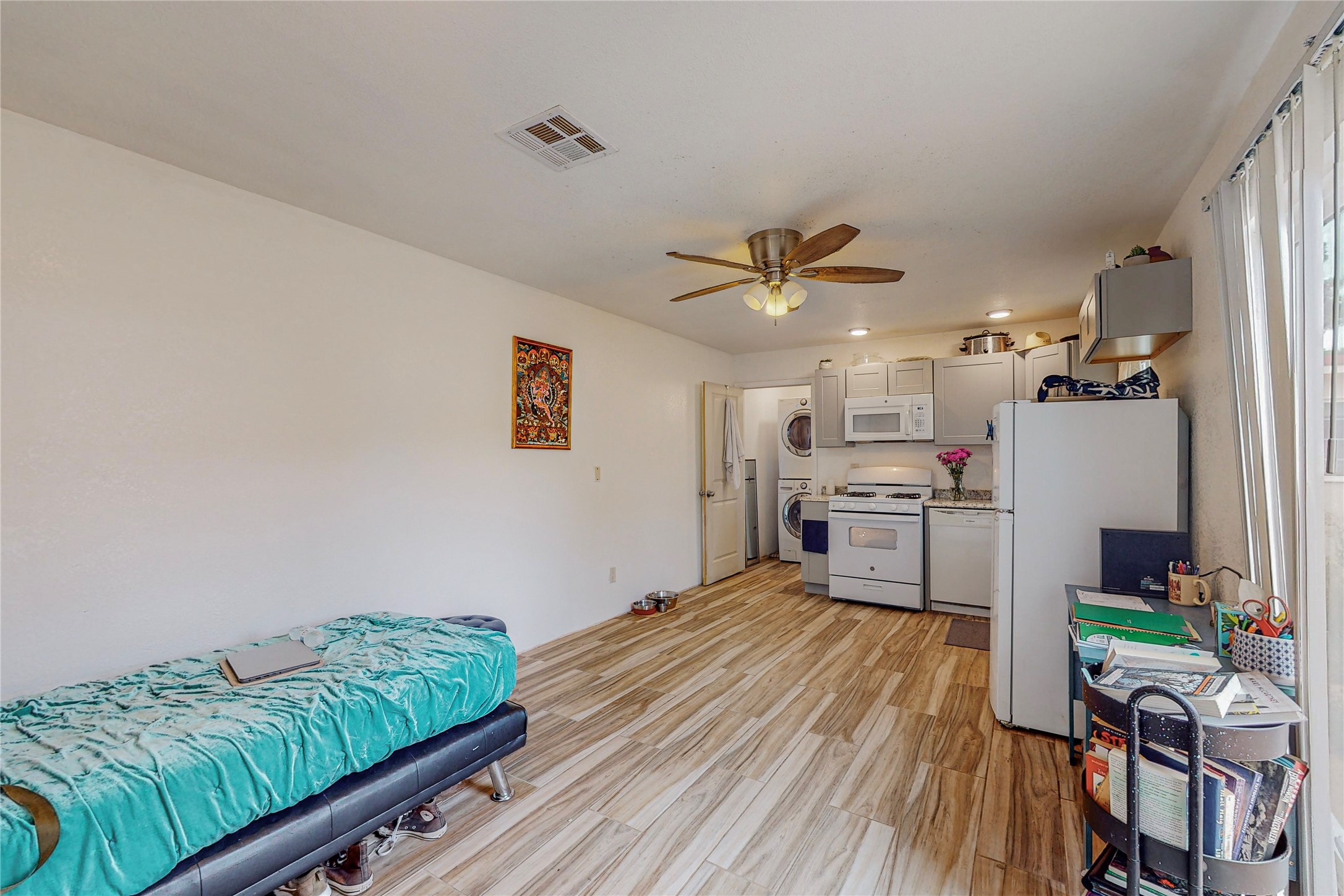 Updated 3 bed/2 bath main house with separate studio. The studio has a kitchenette, bathroom and laundry. The main house has an open floor plan with separation between the primary bedroom and guest bedrooms. There is a one car garage and a generous sized lot. HOA fees are reasonable and cover water, sewer, taxes and community maintenance. The studio has a rental history of $800/month and the main house was rented for $2200/month. This would be a great investment opportunity or live in one and rent the other. Schedule your private showing today.