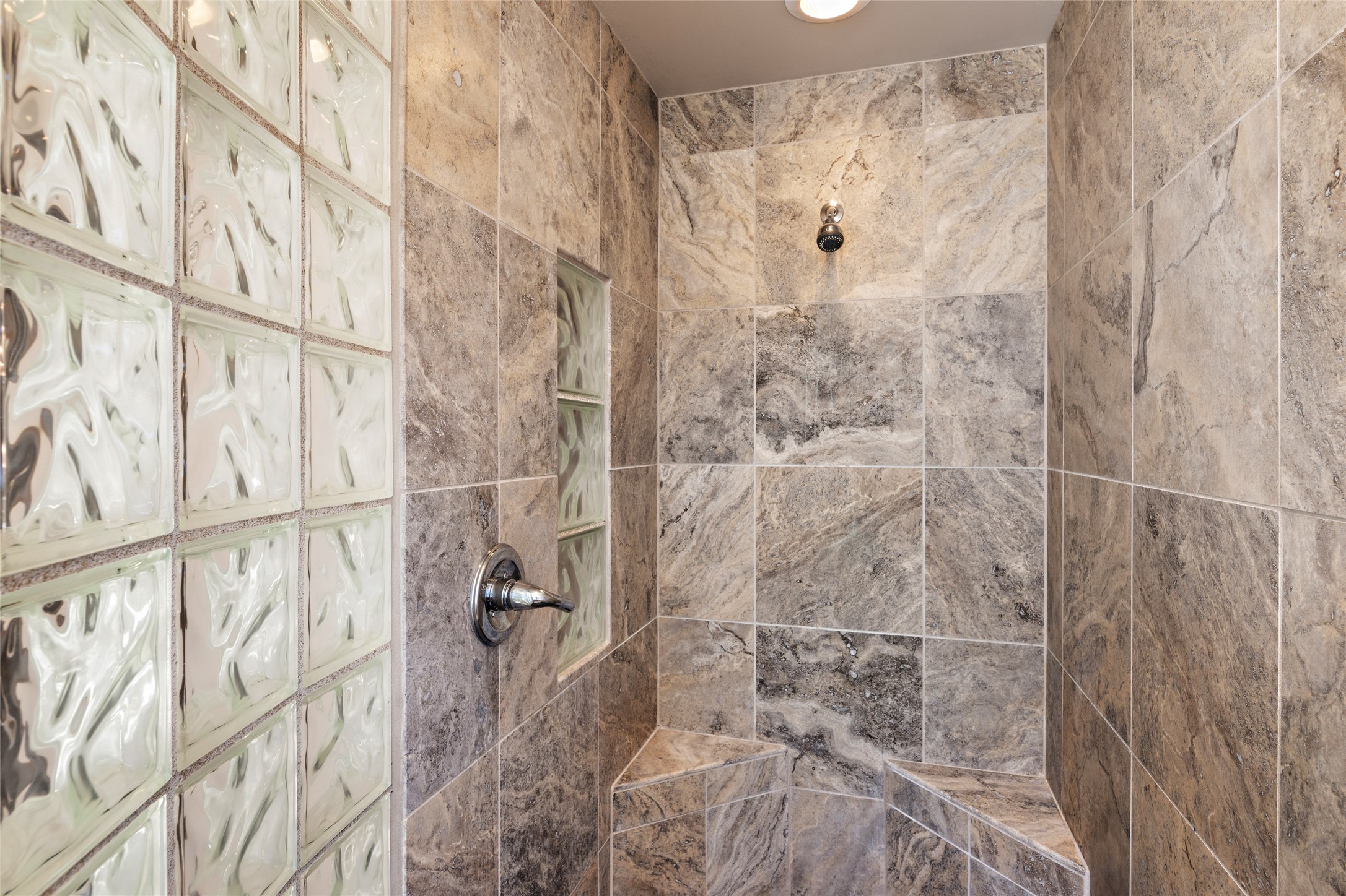 ENTERTAINER'S PARADISE! Not to mention the spectacular postcard-worthy sunset views of the Sandia and Ortiz, mountains from the back patio, and Sangres from the front patio. Sited on a large greenbelt at the end of a cul-de-sac. Four mini-splits provide real air conditioning. New stucco, interior paint and brick floors refinished in September 2023. Kitchen updated in 2022 with new appliances - a 6-burner Wolf gas range, Bosch dishwasher and LG refrigerator and more counter seating and storage. Two primary suites on opposite ends of the house, both with large walk-in closets, provide numerous options, from an in-law suite, to a large artist's studio. The larger of the suites has a sitting room with fantastic mountain views, a smaller room that is plumbed to be a kitchenette, and a separate back entrance. Huge closest with an entire wall of built-in shelves and drawers in first primary bedroom with beautiful spa-like bath with jetted tub, and double sinks. Banco with storage under picture window. Primary bedroom two has a generous 2-person jetted tub, double sinks and beautiful shower. Both primary suites have a fireplace, and there are two more in living areas, for a total of four. Fifth bedroom is set up as a beautiful office with built-ins. The new brick back patio has a sunken seating area with a built-in gas grill, a fire table and a long covered portal which is a great place to entertain or relax. The two added front flagstone patios provide additional space for seating and gorgeous views of snow-covered mountains in the winter - both patios have solar lighting. There is also a secure coyote-fenced backyard space that provides a safe area for dogs to play. Generous laundry room with sink and pantry. Oversized, extra deep 2-car garage with storage. A few steps up from the garage, otherwise single-level. Radiant is PEX. Domestic is copper. Water softener 2019. Each room has a ceiling fan. Custom screen doors, insulated blinds.