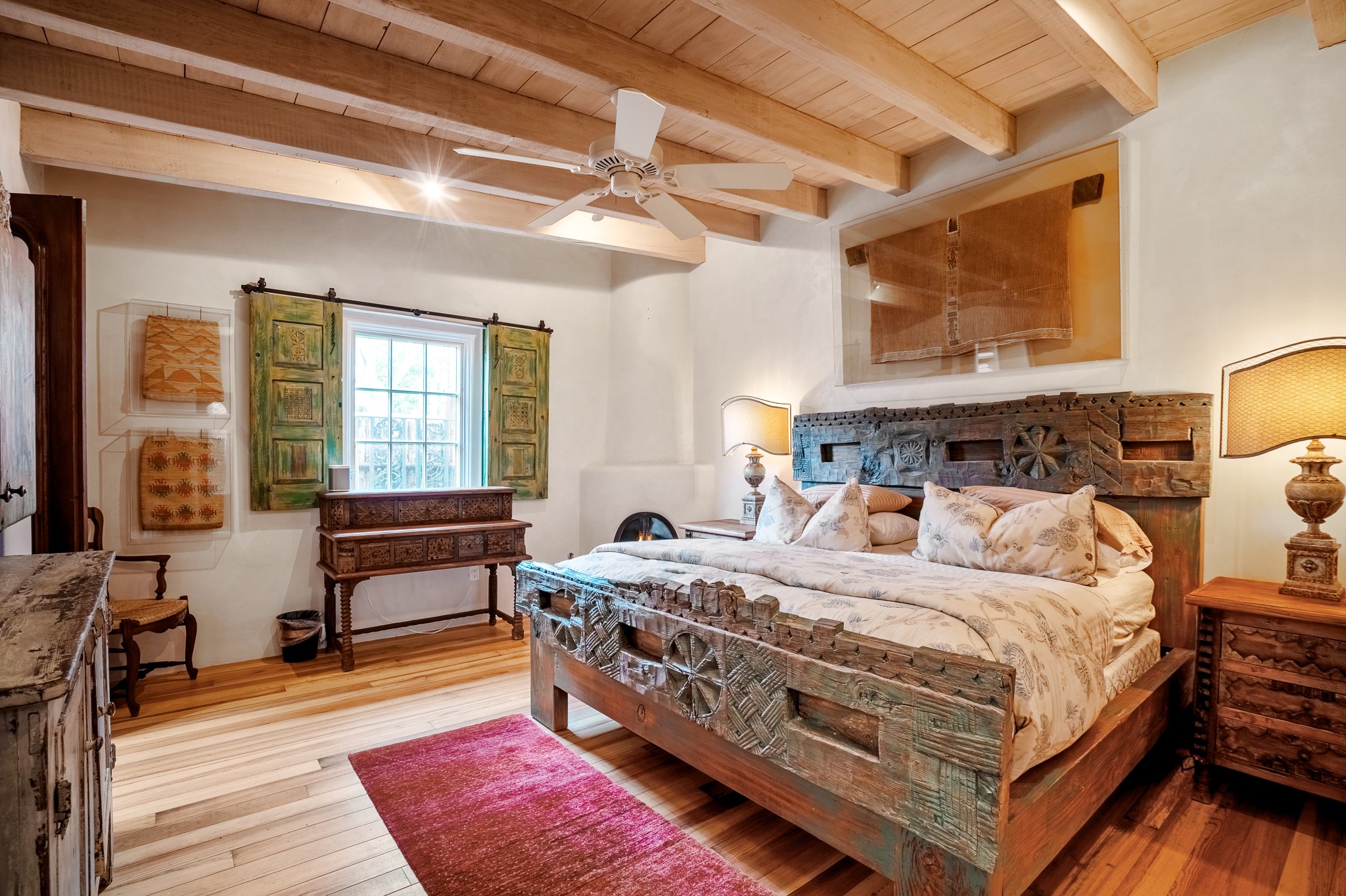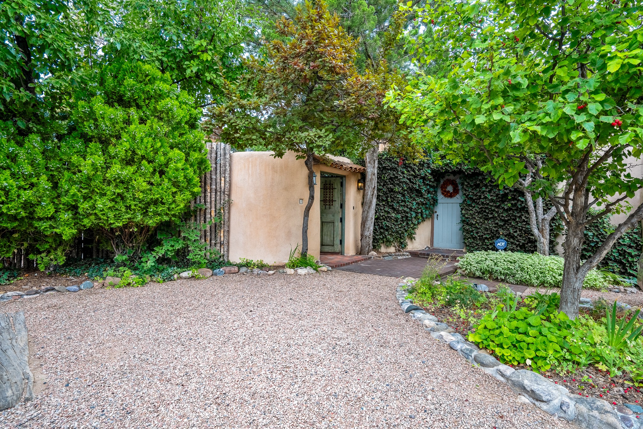 Welcome to Atwill Compound, an exquisite residence nestled in the heart of the Historic Eastside. Tucked away behind adobe walls, this compound offers tranquility and a prime location near art galleries and the vibrant ambiance of Canyon Road. Discover a stunning Spanish colonial gem, thoughtfully designed with traditional Southwest elements. The interior boasts thick white plastered adobe walls, complemented by deep-set divided light windows that provide delightful garden views. Immerse yourself in the beauty of polished brick floors in the living, dining room and kitchen, which ensures a stylish yet functional space for contemporary chefs. Step into the captivating primary bedroom and bathroom, featuring inviting wood floors and large walk-in closets. Outside, an enchanting private patio adorned with large potted plants invites you to savor the Santa Fe outdoors a little longer. Atwell Compound is an oasis of elegance and serenity, perfectly situated to embrace the best of Eastside living.