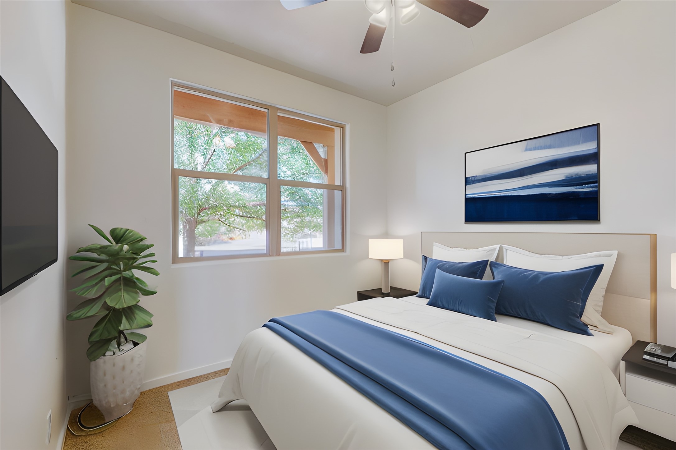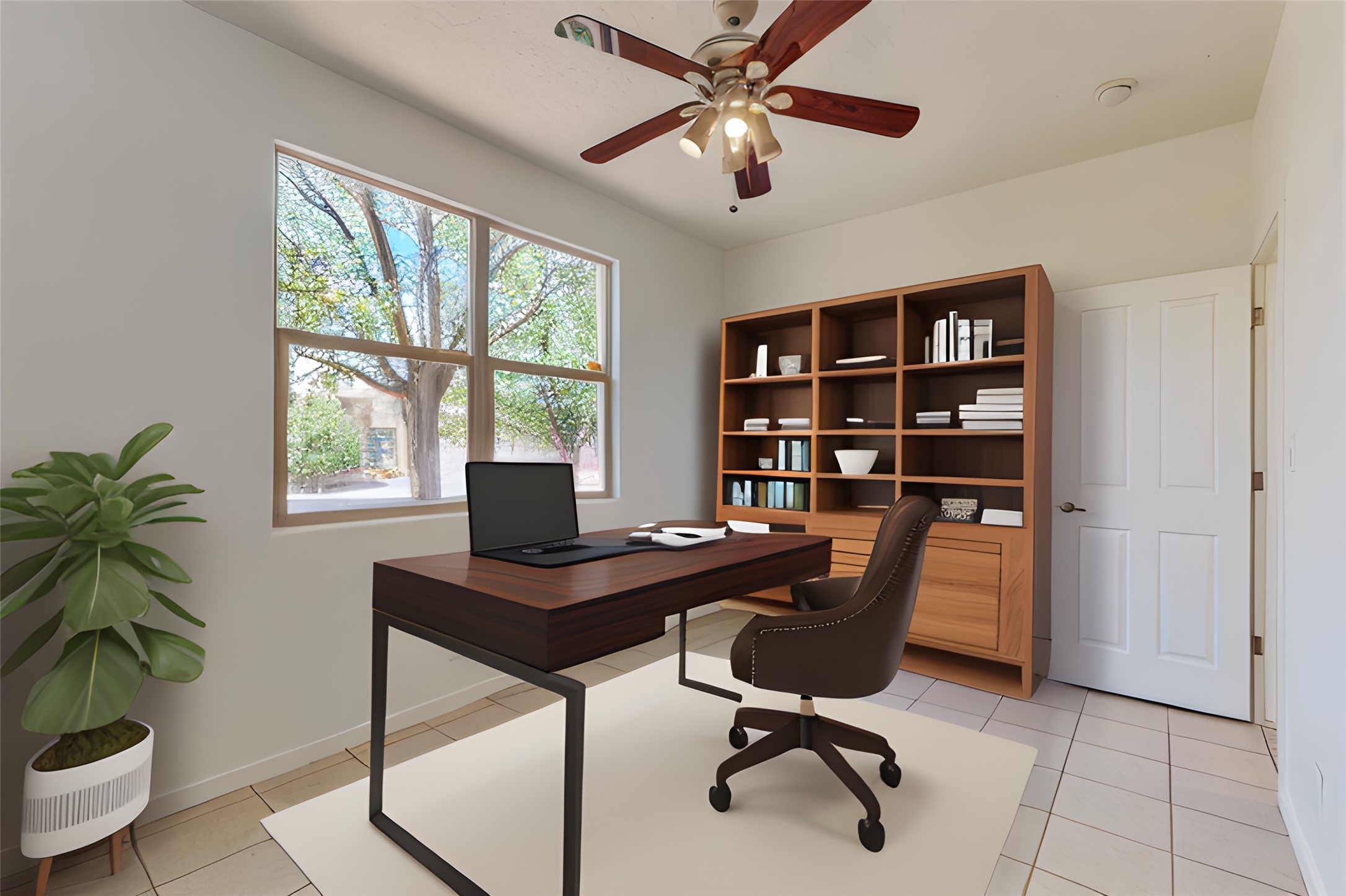 Step into unparalleled value in the heart of Windmill Ridge. This fine home with Rancho Viejo charm, nestles on a premium view lot at the end of a quiet cul-de-sac. As you arrive the sweeping vistas of Jemez, Sangre de Cristo and Sandia Mountains will welcome you. Every corner of this adobe radiates with natural light, blending with its functional open design. This well maintained improved home features: 1825 square feet, 3 bedrooms, 2 full baths, great room with a kiva fireplace, adjoining open kitchen with eating bar, pantry and breakfast nook, den/dining room, 2 car garage, radiant heated floors, dual evaporative cooling, instant hot water, established front and back landscaping, flagstone patio and much more. MORE IMPROVEMENTS: New TPO Roof Warranty to 2033, new custom painted interior including front and garage doors, new custom carpeting, new surfaced sidewalk and driveway. Beyond this home's privacy and tranquility, life thrives beginning with out your door to paved trails. Moments away are the education hubs of the Santa Fe Community College and the Institute of American Indian Arts. Rancho Viejo is more than a neighborhood; it's an experience. Paved roads, enchanting parks, underground utilities and an ambience free of street lights make for starlit nights. Your forever vistas and nearly 15 miles of walking trails ensure nature is your companion. This is your opportunity to experience the soul of Santa Fe living in a community with something for everyone with easy access to museums, galleries, shopping, restaurants and more. This home is a great beginning for your next Santa Fe chapter whether your first or forever home. Call to learn more and see. BONUS: 10 years roof warranty and one year Home Warranty from Home Warranty of America at no cost to Buyer. Call for your showing appointment today.