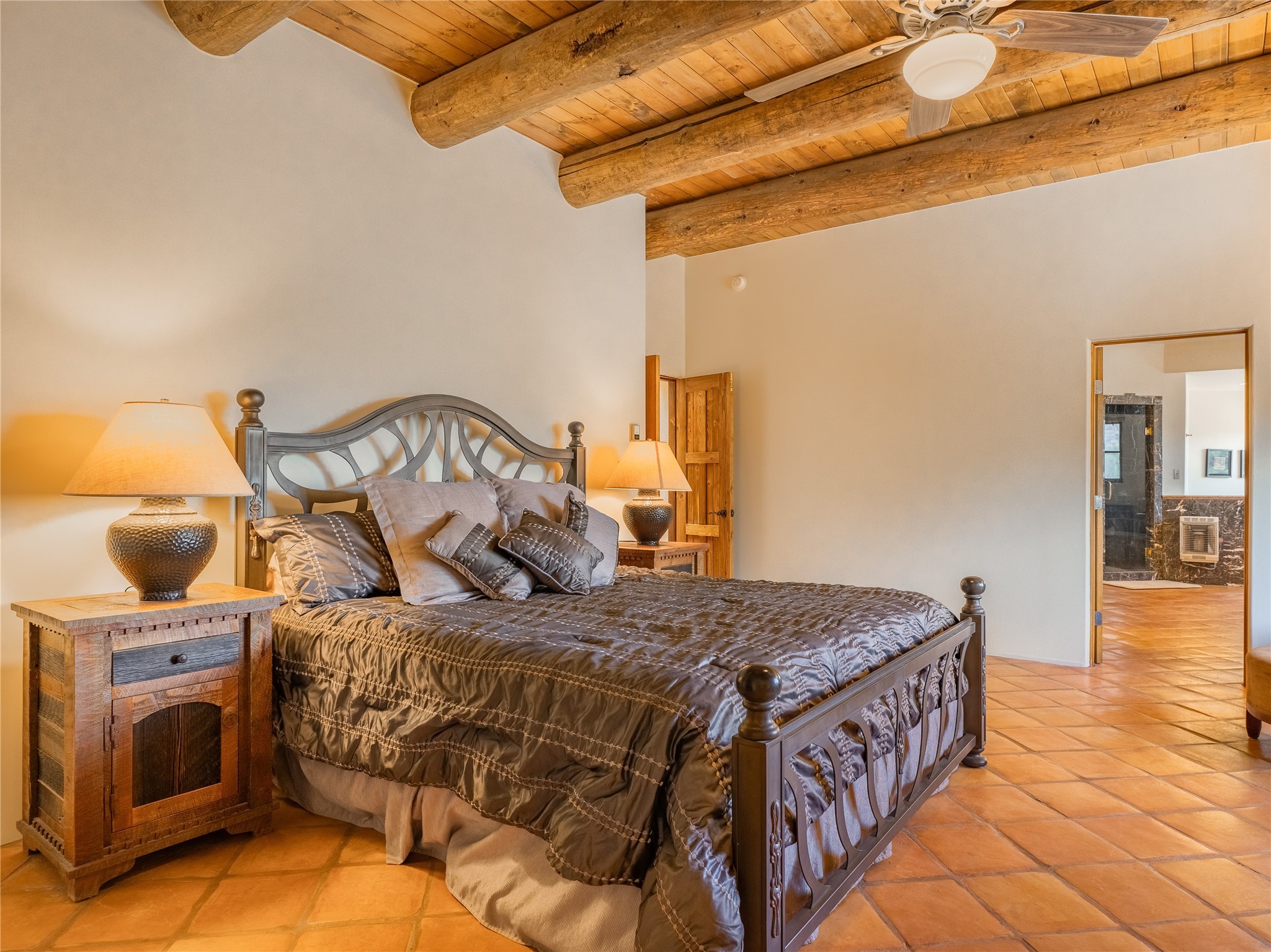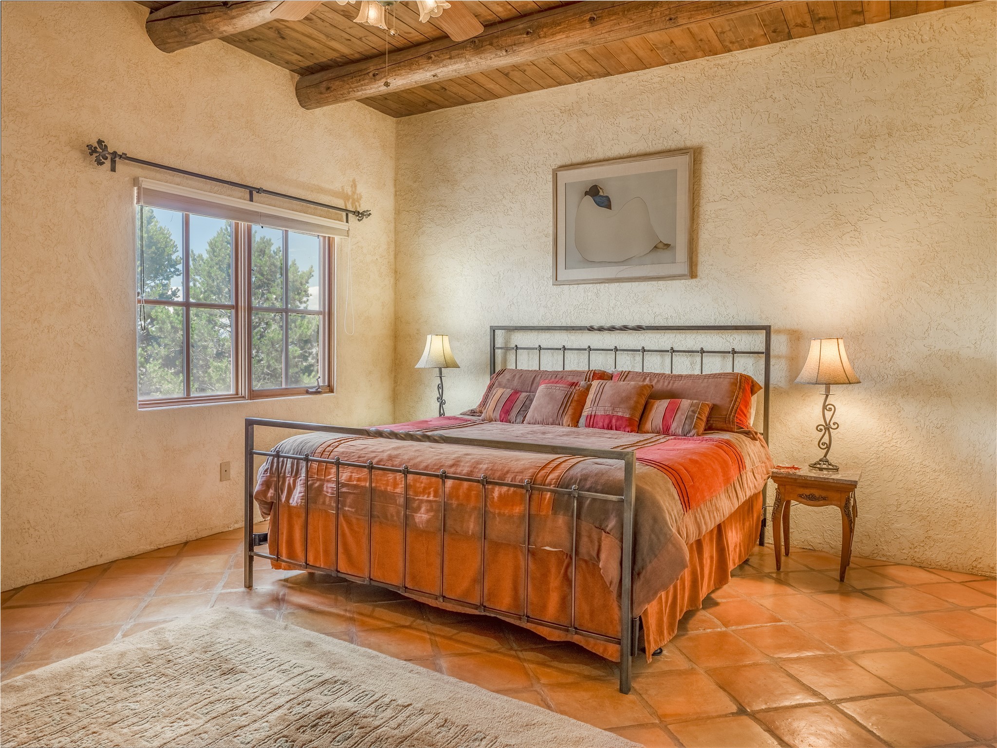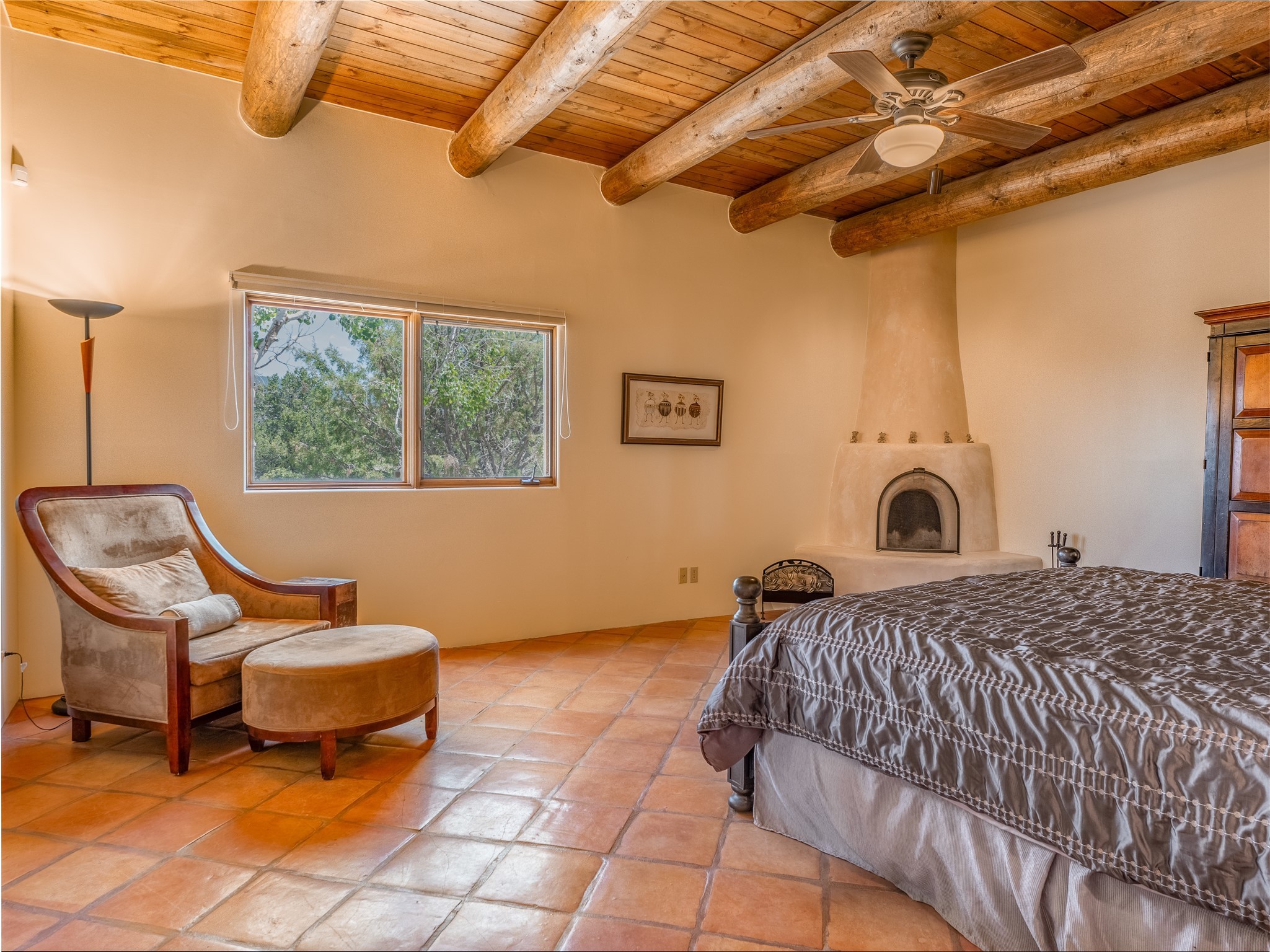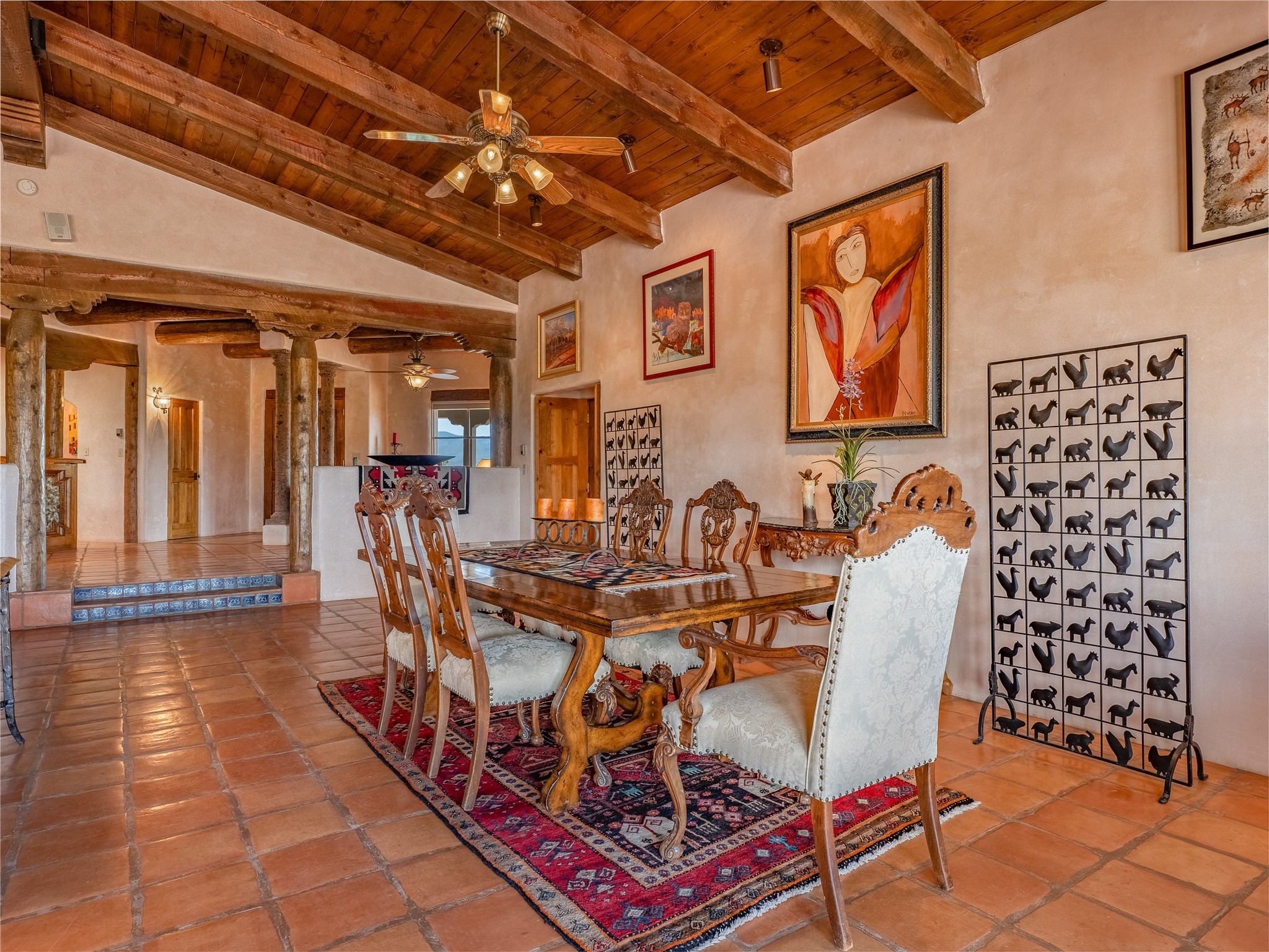 Come see this stunning Taos property before it's gone! Set on 3 acres in the Weimer neighborhood, the beautiful adobe-style home comes with excellent views of the Sangre de Cristo mountains. Inside, enjoy iconic Southwestern features such as saltillo tile floors, plaster walls, and large vigas throughout the entire home. Marvel at the unobstructed views of the mountains from the spacious living area with a vaulted ceiling, wood-burning fireplace, and access to the covered patio. The large kitchen offers beautiful wood cabinetry and tilework, a large pantry, and ample space for creating gourmet meals on the granite countertops. The primary bedroom has a kiva-style fireplace and the ensuite bathroom features a walk-in shower and large tub with luxury tiling and a massive walk-in closet. Two guest bedrooms with ensuite bathrooms offer plenty of room for the entire family. Additional features include a fourth bedroom that is currently setup as a billiards room and a laundry room with full size washer and dryer. An attached garage has room for two vehicles, and a separate outbuilding can store two more vehicles or be finished out as a studio or workshop. Enjoy the comforts of southwestern luxury with 1101 Hennings Street!