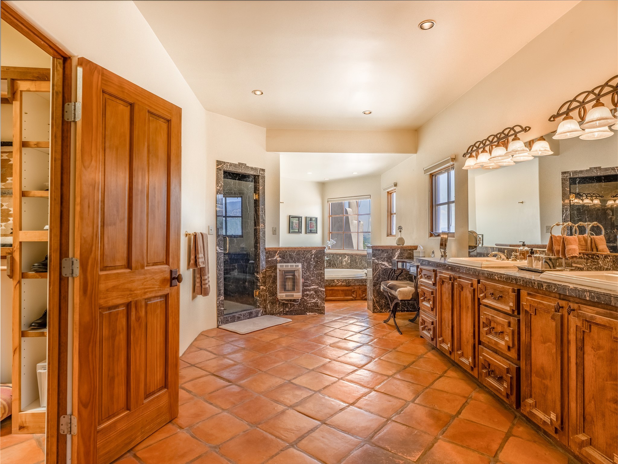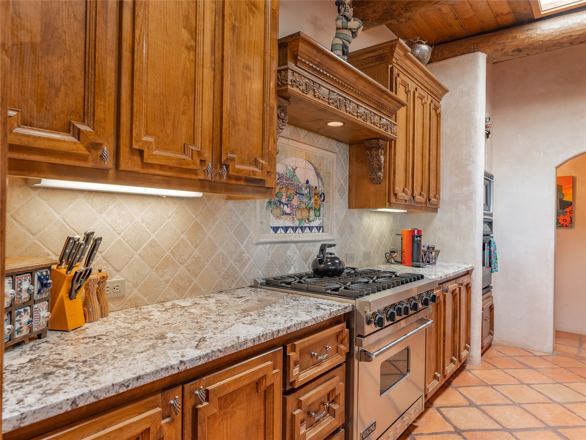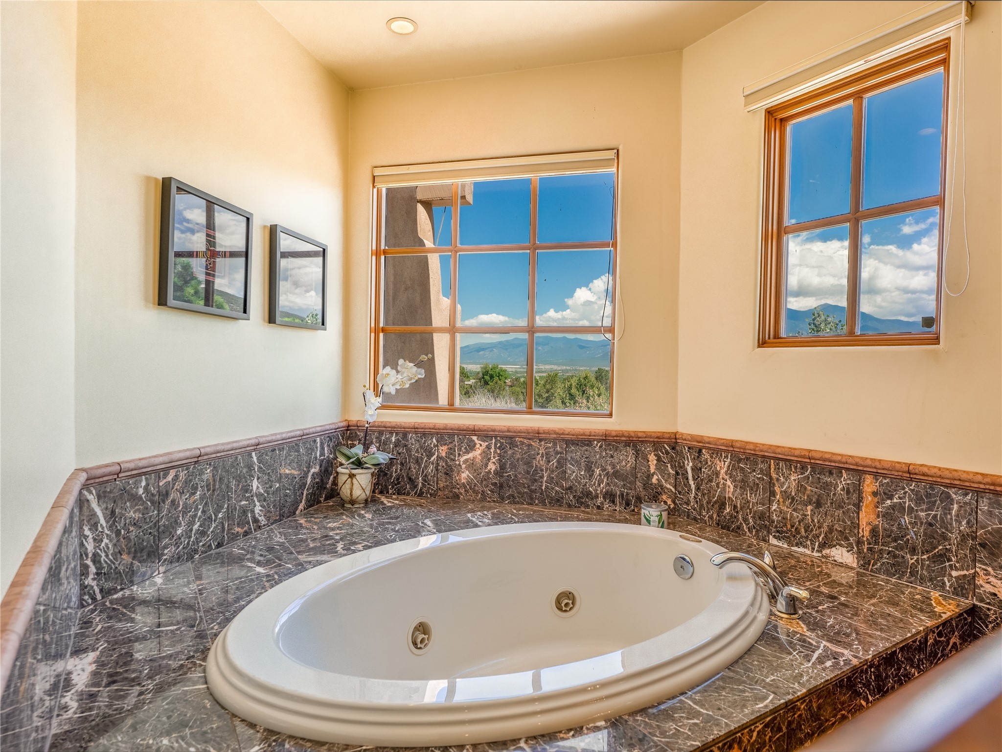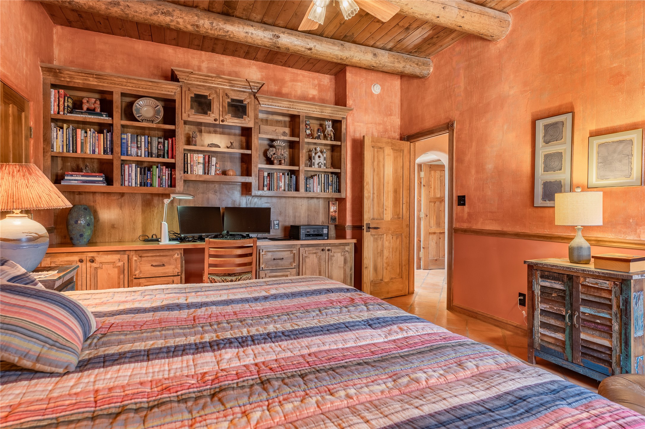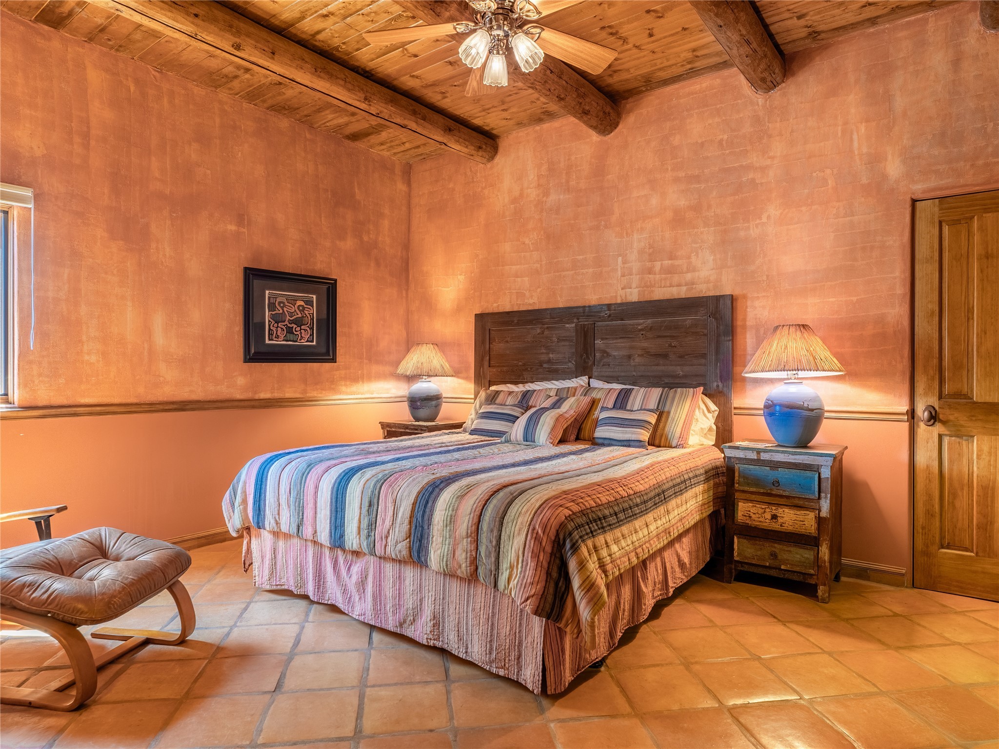 Come see this stunning Taos property before it's gone! Set on 3 acres in the Weimer neighborhood, the beautiful adobe-style home comes with excellent views of the Sangre de Cristo mountains. Inside, enjoy iconic Southwestern features such as saltillo tile floors, plaster walls, and large vigas throughout the entire home. Marvel at the unobstructed views of the mountains from the spacious living area with a vaulted ceiling, wood-burning fireplace, and access to the covered patio. The large kitchen offers beautiful wood cabinetry and tilework, a large pantry, and ample space for creating gourmet meals on the granite countertops. The primary bedroom has a kiva-style fireplace and the ensuite bathroom features a walk-in shower and large tub with luxury tiling and a massive walk-in closet. Two guest bedrooms with ensuite bathrooms offer plenty of room for the entire family. Additional features include a fourth bedroom that is currently setup as a billiards room and a laundry room with full size washer and dryer. An attached garage has room for two vehicles, and a separate outbuilding can store two more vehicles or be finished out as a studio or workshop. Enjoy the comforts of southwestern luxury with 1101 Hennings Street!