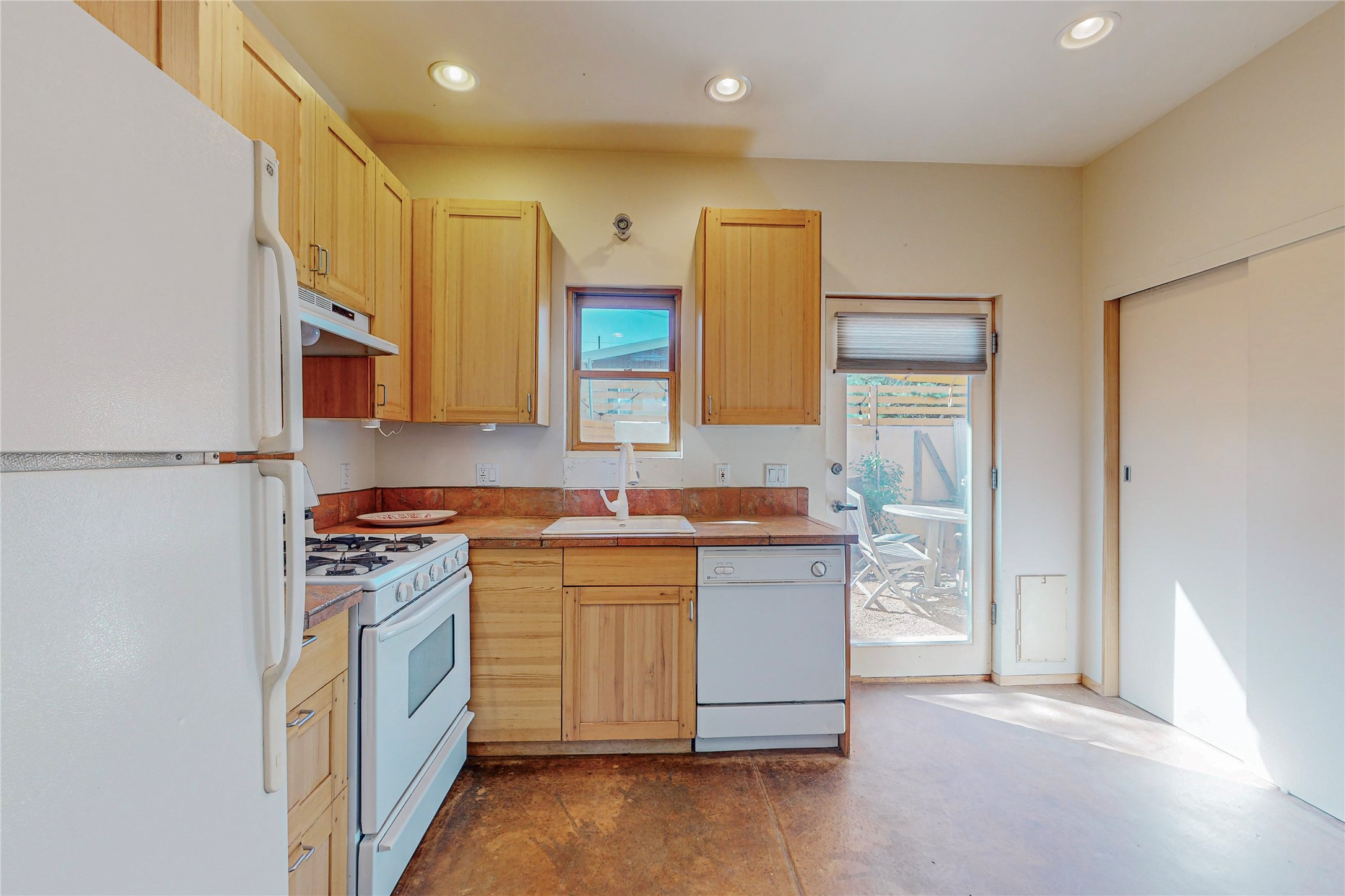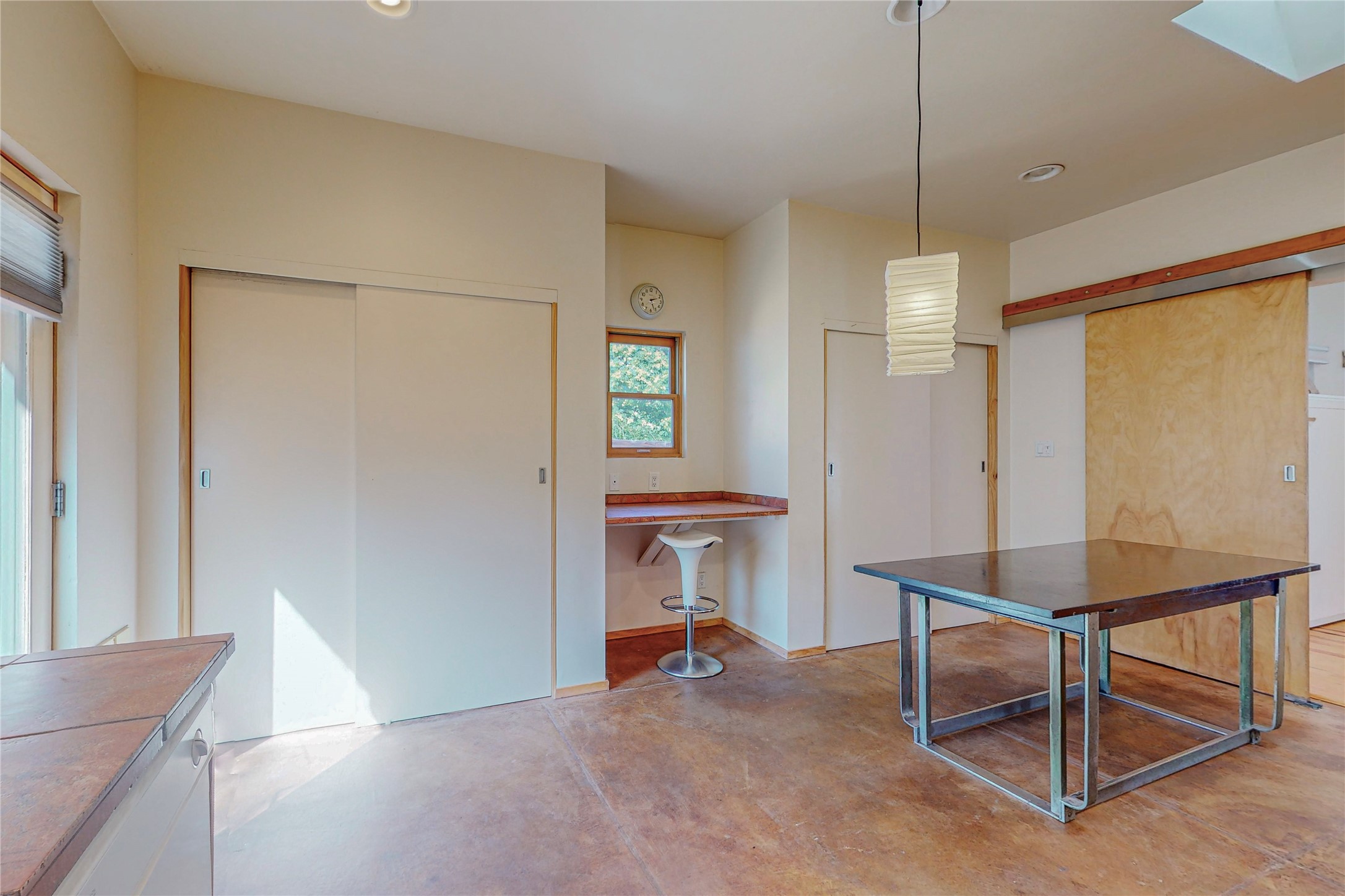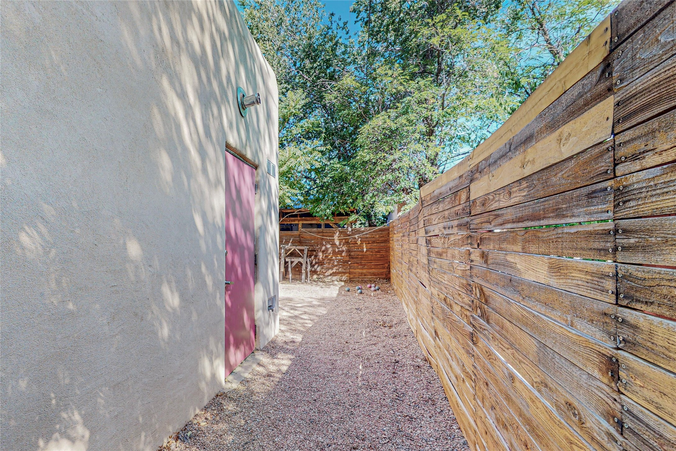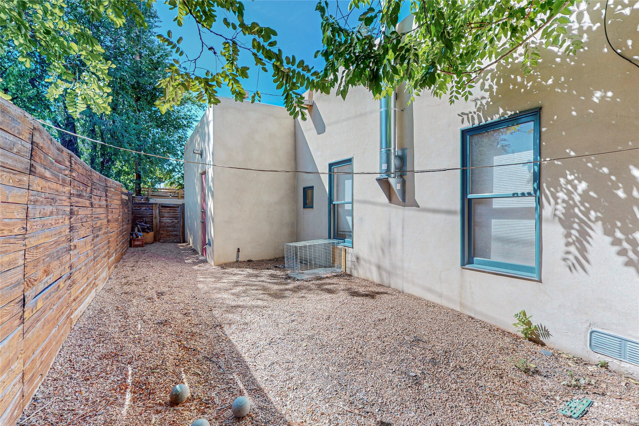 This private, freestanding condo enjoys modern finishes and is well set-back from the street, with off-street parking, for maximum privacy. Scandinavian design aesthetics by an award-winning designer conceived the contemporary floor plan, admitting tons of natural light through clerestory windows. Pine floors and double doors to the kitchen and bedroom allow a flowing open plan, or space separation if hosting a guest on the bonus Murphy bed. There are two separate, large terrace areas, inviting gardeners to cultivate and offering discrete seating areas for entertaining. Bedroom opens onto patio. A fantastic, serene location in Santa Fe's dynamic Midtown district, short distance to all amenities.