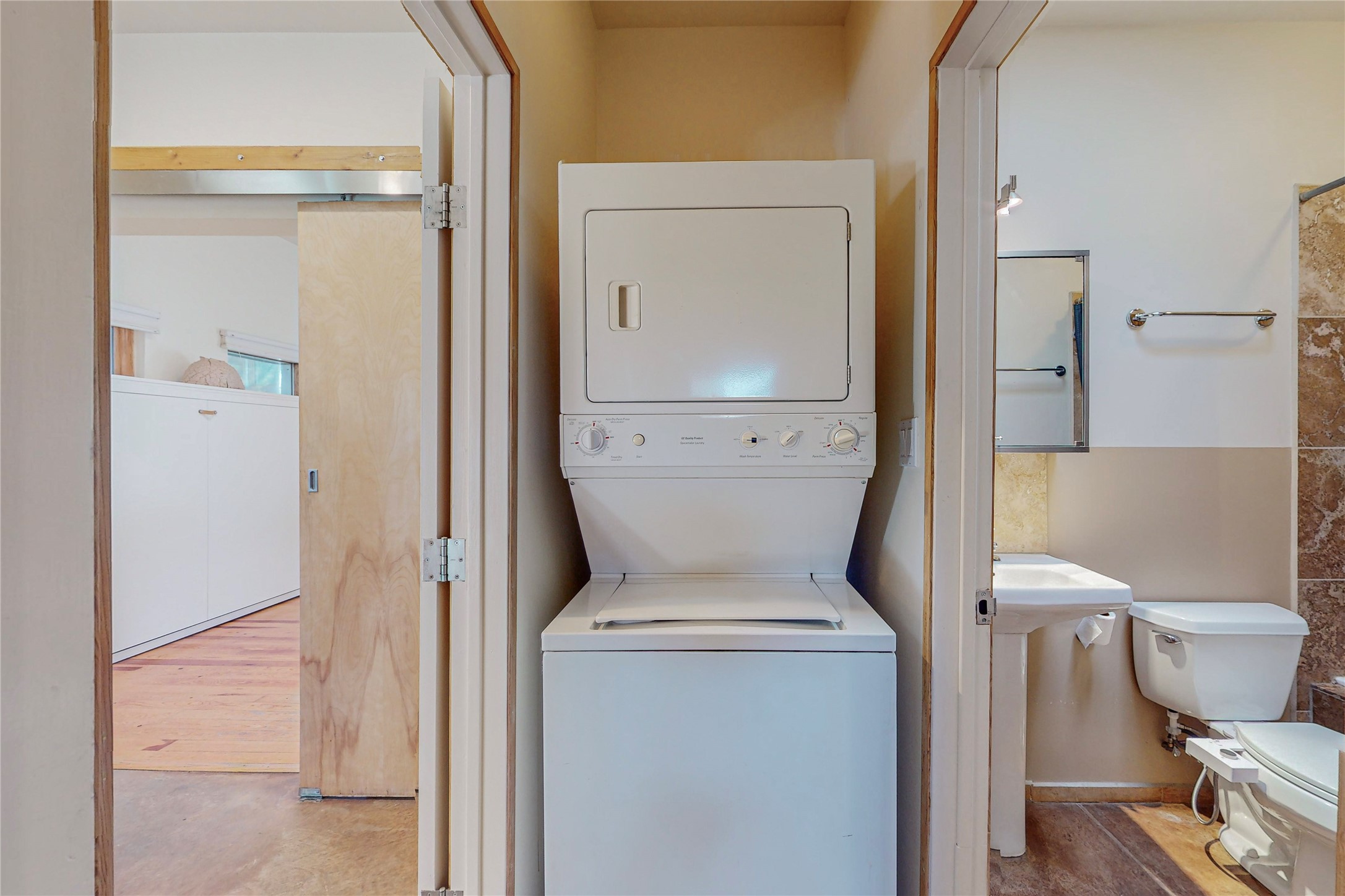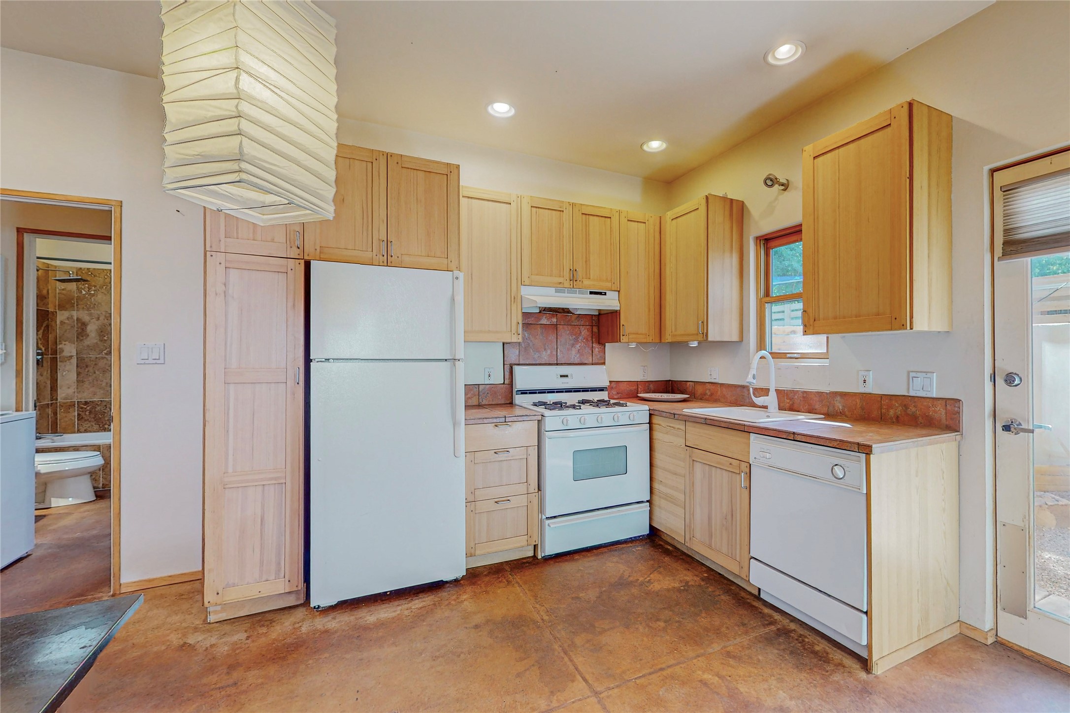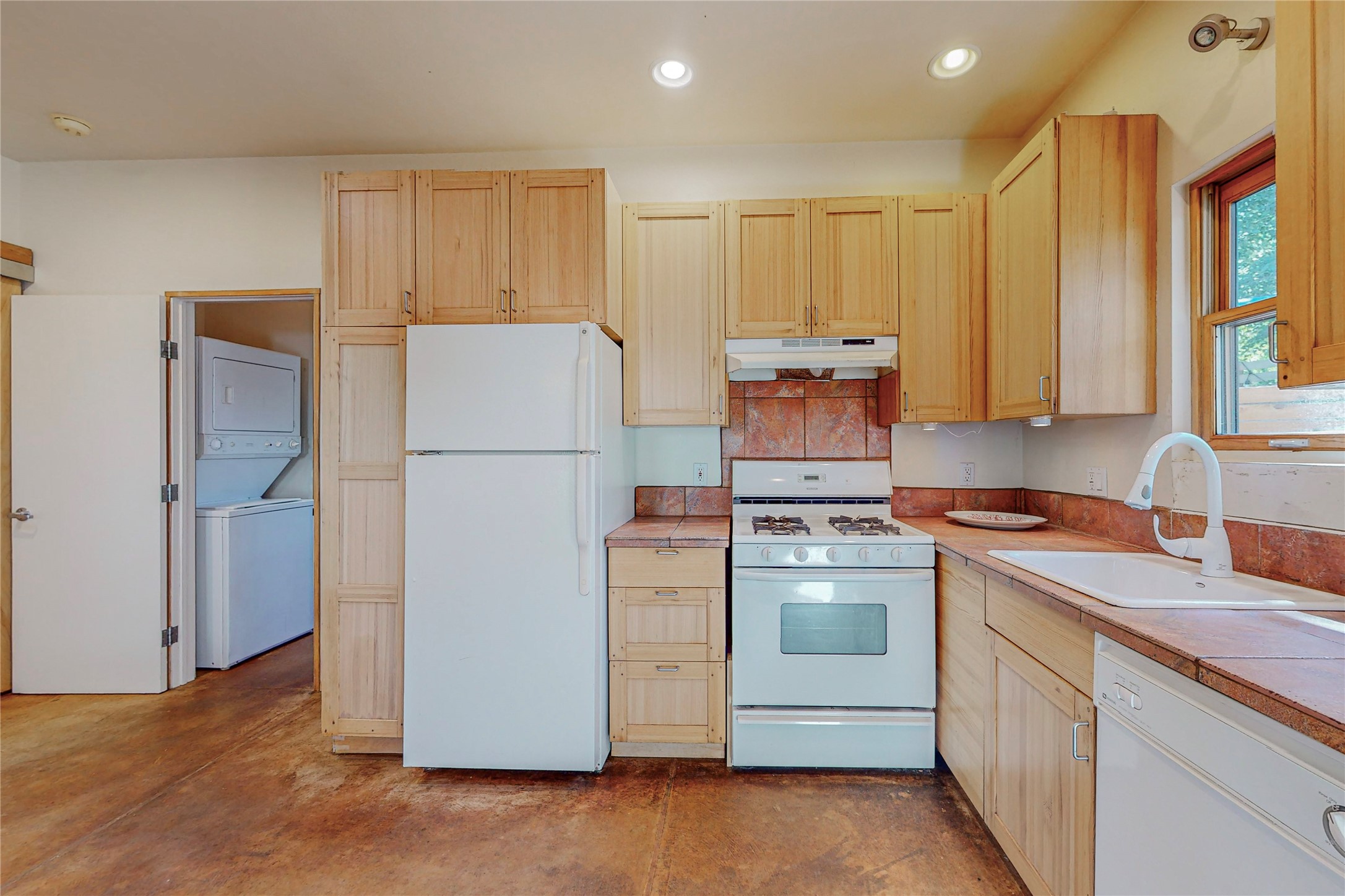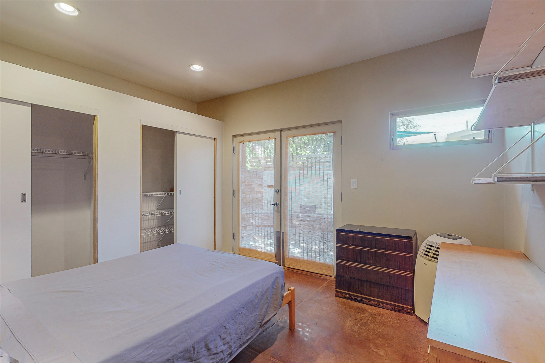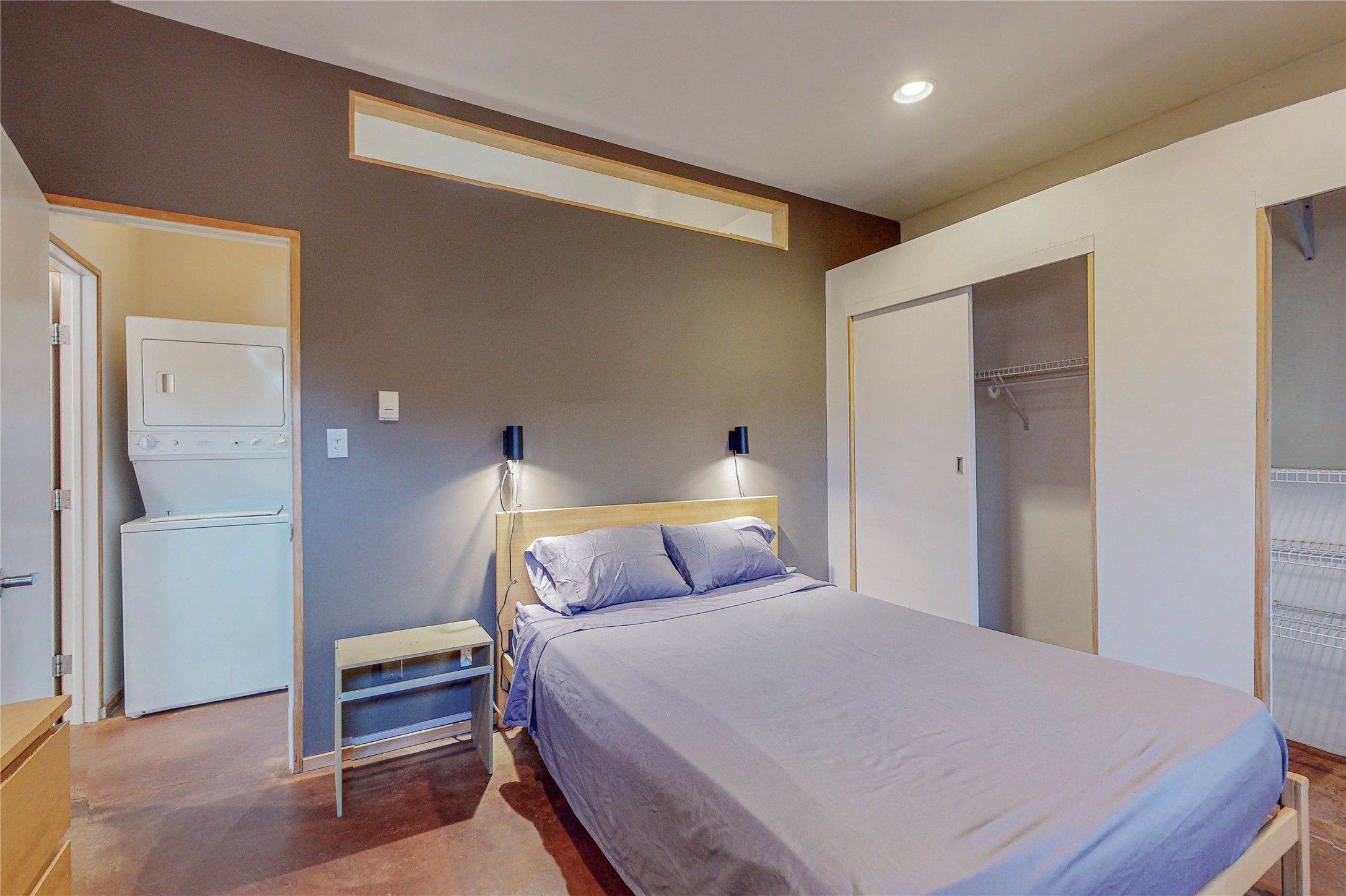 This private, freestanding condo enjoys modern finishes and is well set-back from the street, with off-street parking, for maximum privacy. Scandinavian design aesthetics by an award-winning designer conceived the contemporary floor plan, admitting tons of natural light through clerestory windows. Pine floors and double doors to the kitchen and bedroom allow a flowing open plan, or space separation if hosting a guest on the bonus Murphy bed. There are two separate, large terrace areas, inviting gardeners to cultivate and offering discrete seating areas for entertaining. Bedroom opens onto patio. A fantastic, serene location in Santa Fe's dynamic Midtown district, short distance to all amenities.