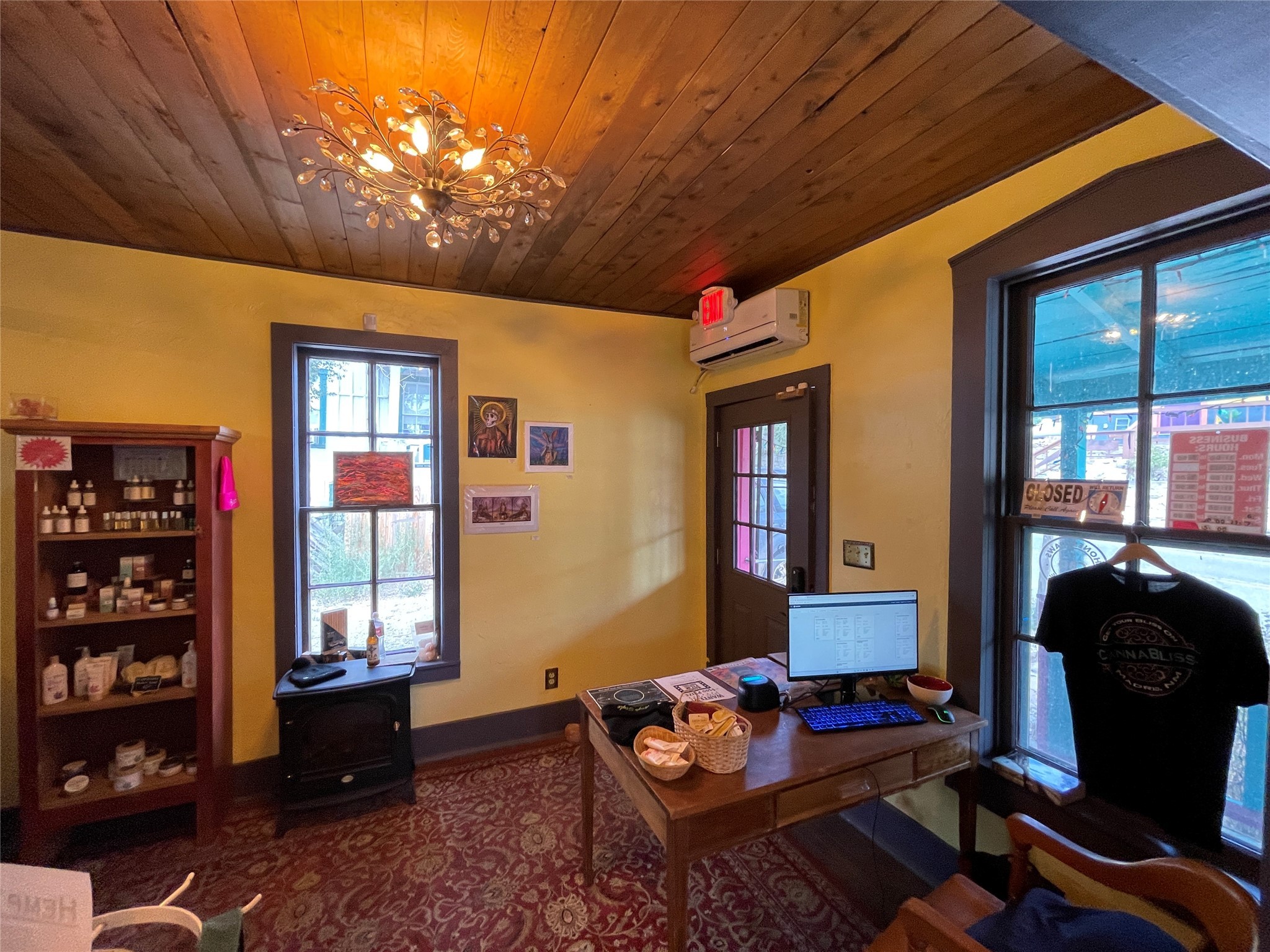 Highly visible, alluring, downtown Madrid shop. Located next door to the General Store.Currently used as a cannabis dispensary. In the past it was a Real Estate office, jewelry store and a residence.Small studio in the rear.