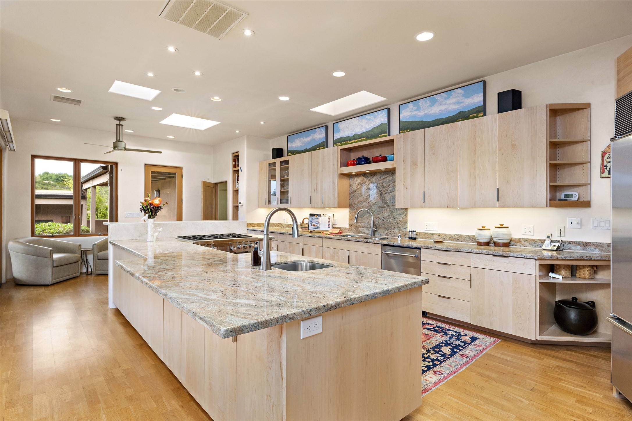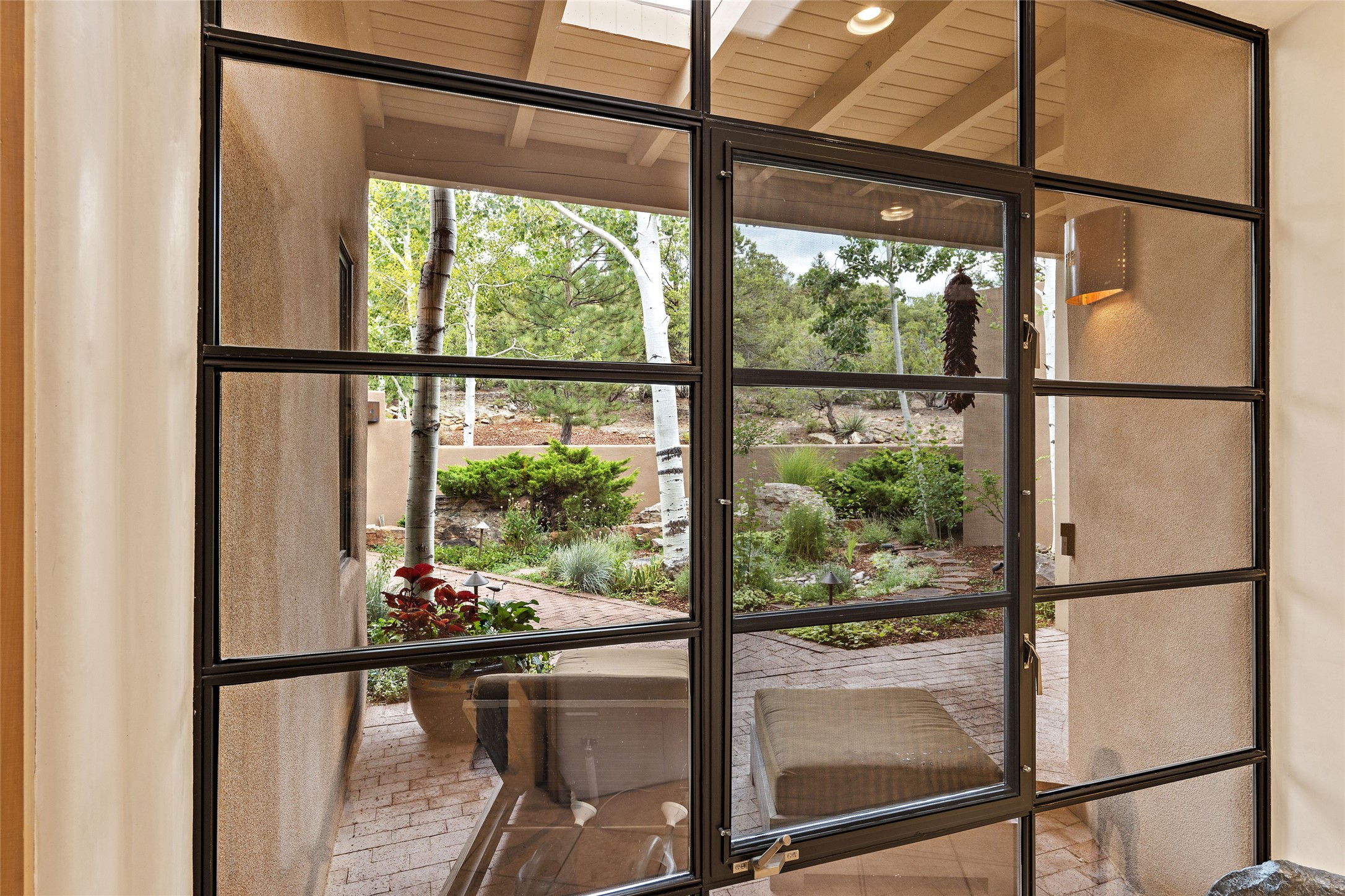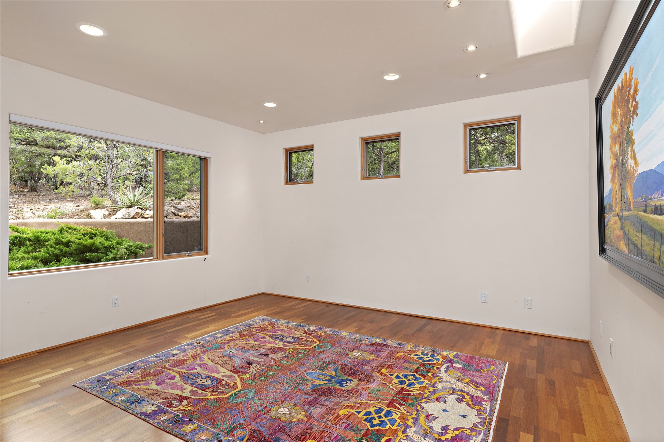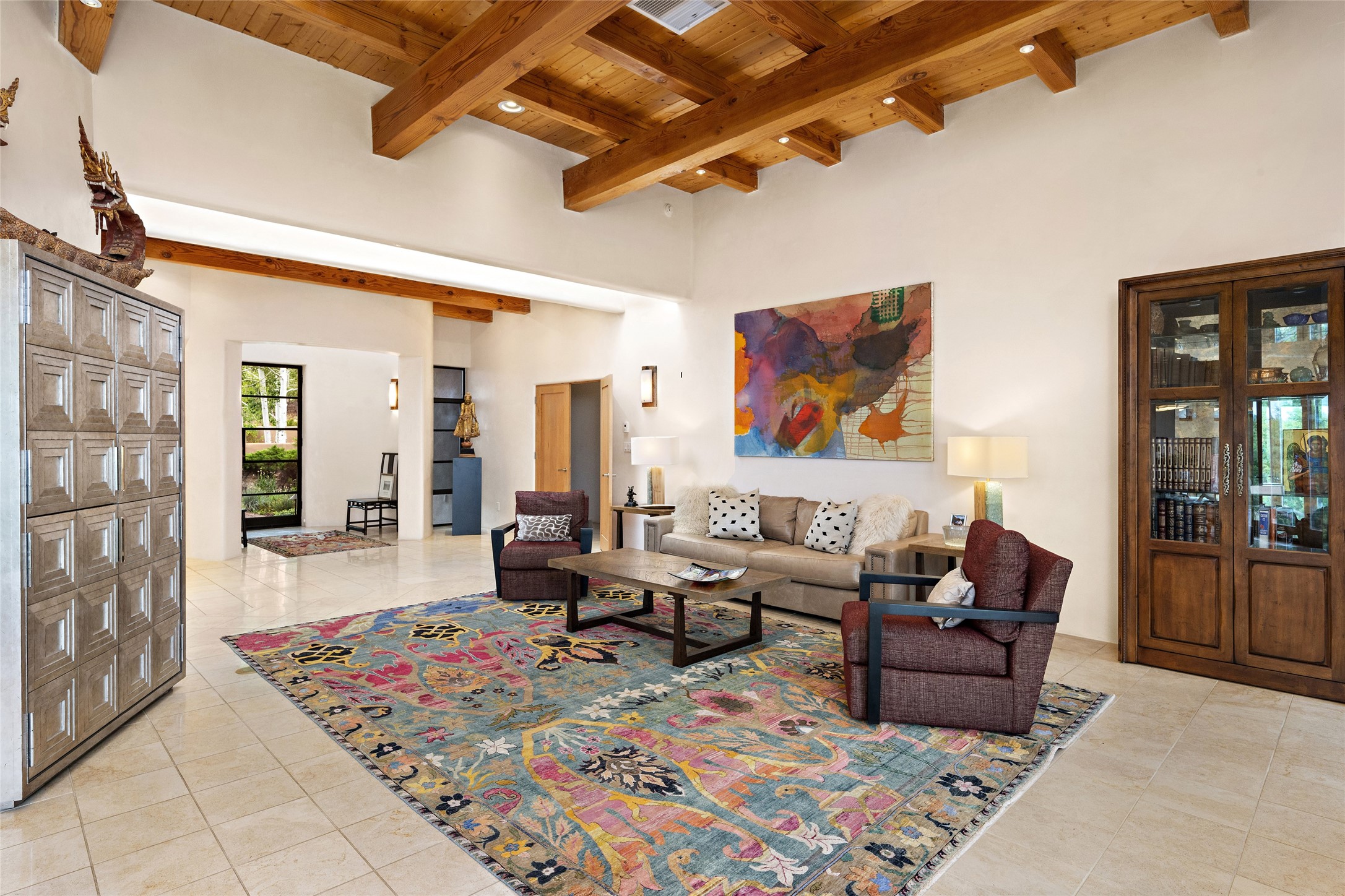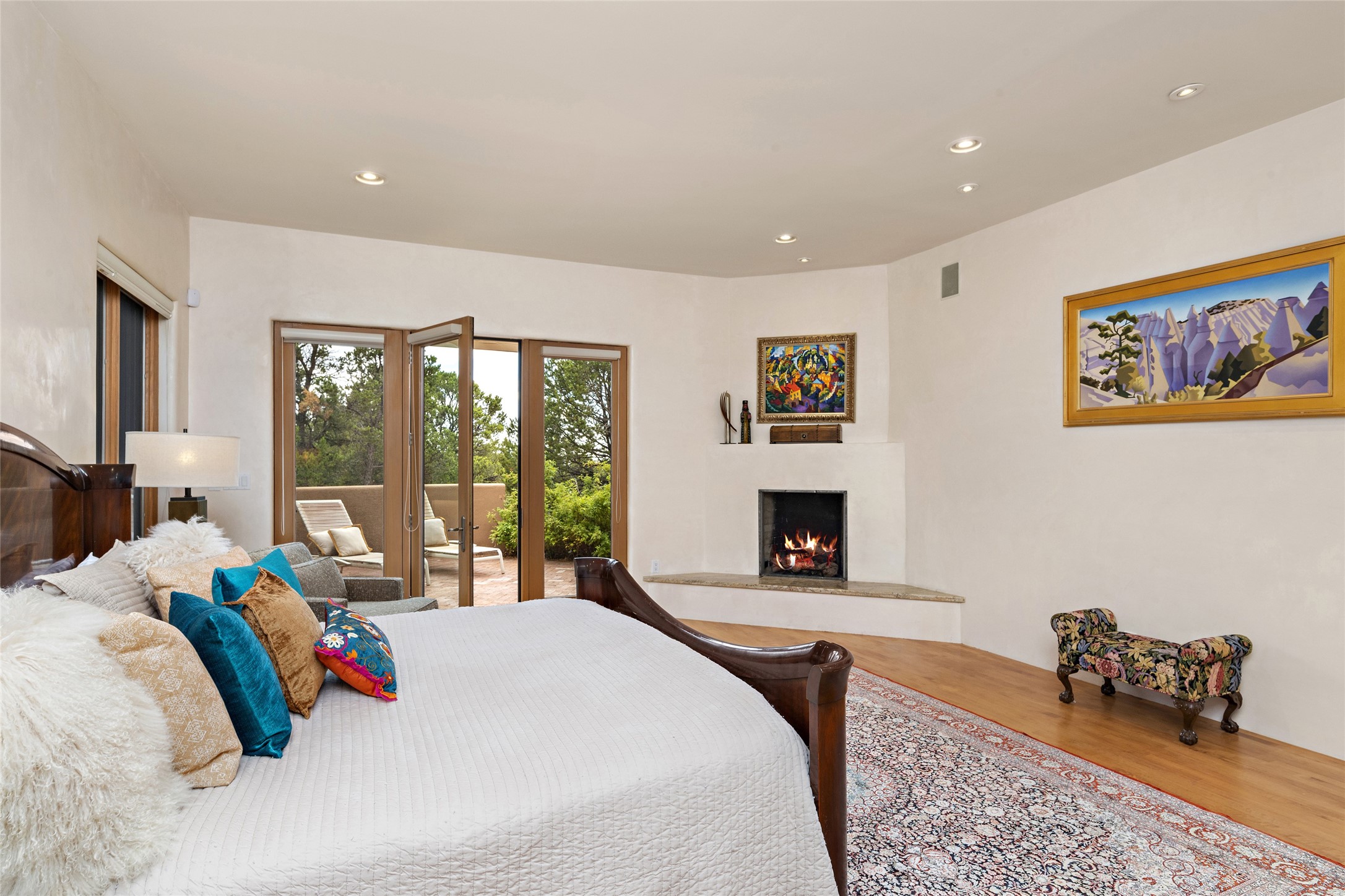 Views, Privacy & Elegance await you at this Single-Level Soft Contemporary home, with 5 Bedrooms, 4 Baths plus a spacious Guest House which has 2 of the Bedrooms & 1 Bath on 2-plus acres in a private, gated community in Sierra del Norte. The Living Room includes a wood-burning fireplace, tall ceilings and flows into the spacious Dining area with room for eight. The Gourmet Kitchen includes Wolf, SubZero & KitchenAid stainless appliances plus an abundance of counter space for meal preparation as well as dining & socializing with friends & family. The Master Bedroom Suite includes a wood-burning fireplace, enormous walk-in closet, access to a private outdoor area plus an equally spacious Bath with double sinks, oversized shower, jetted tub & compartmented water closet. Bedroom Two, adjacent to the Master, can be a Den, Office, TV or Work-Out Room. Bedroom Three has an en-suite bath. The Guest House has a Bed & Bath plus an Office area pre-plumbed for a Kitchenette. The Guest House also has a huge Basement for a wine cave, work-out area or overflow storage. The Back Portal, accessed from the Living, Dining & Kitchen areas, includes a wood-burning fireplace and transitions easily to the landscaped back yard area with a 3-season Greenhouse. This home is in a private, gated community in the foothills that offers sunset and night light views, easy walking access to the Dale Ball Trail System as well as in-town convenience without the noise & traffic.
