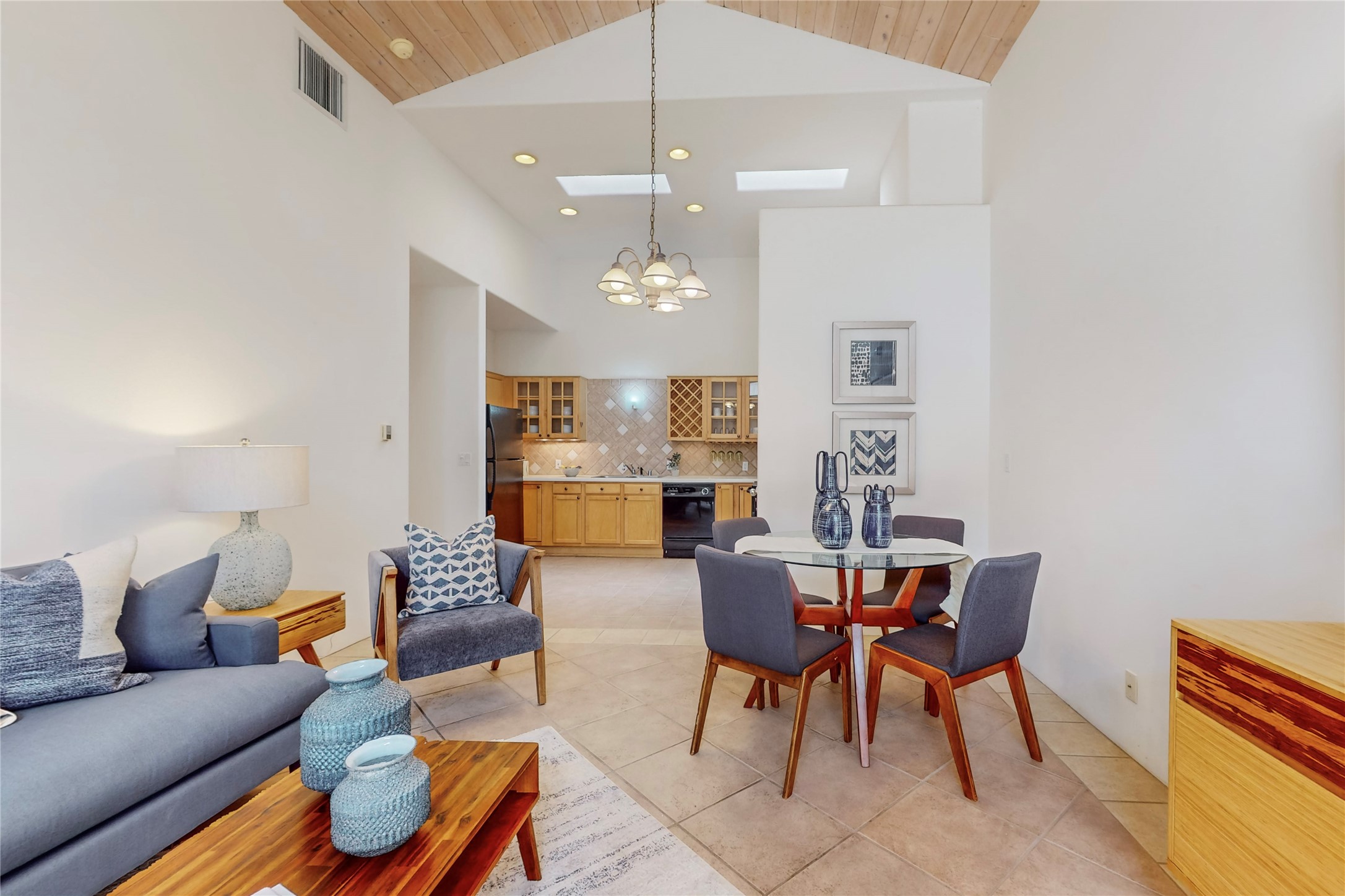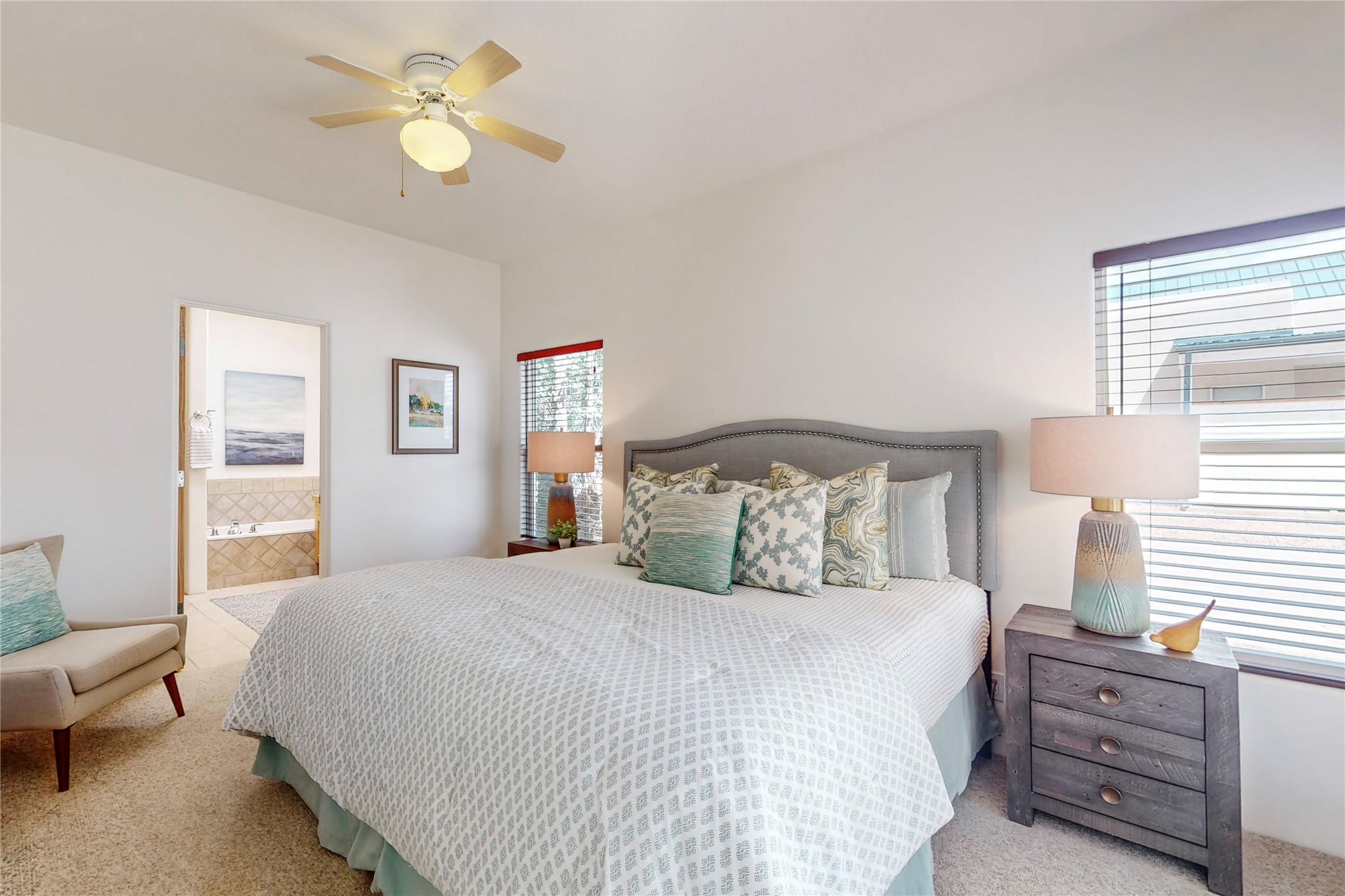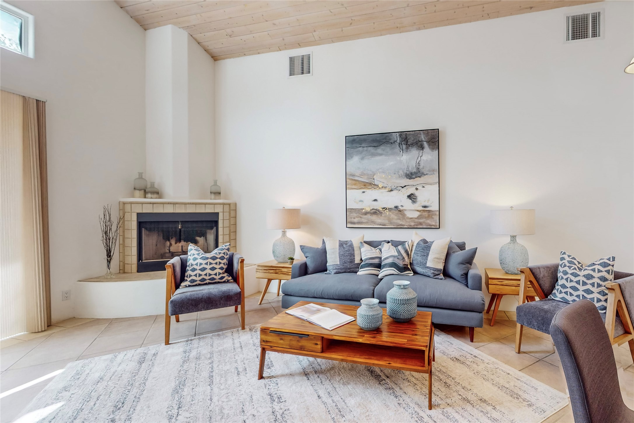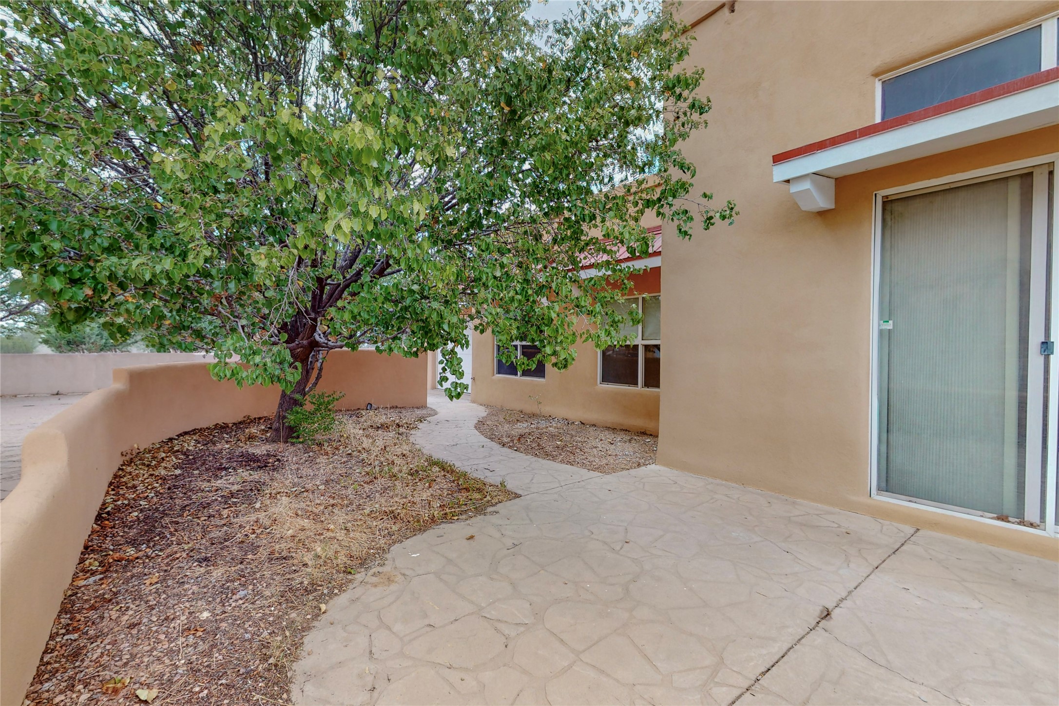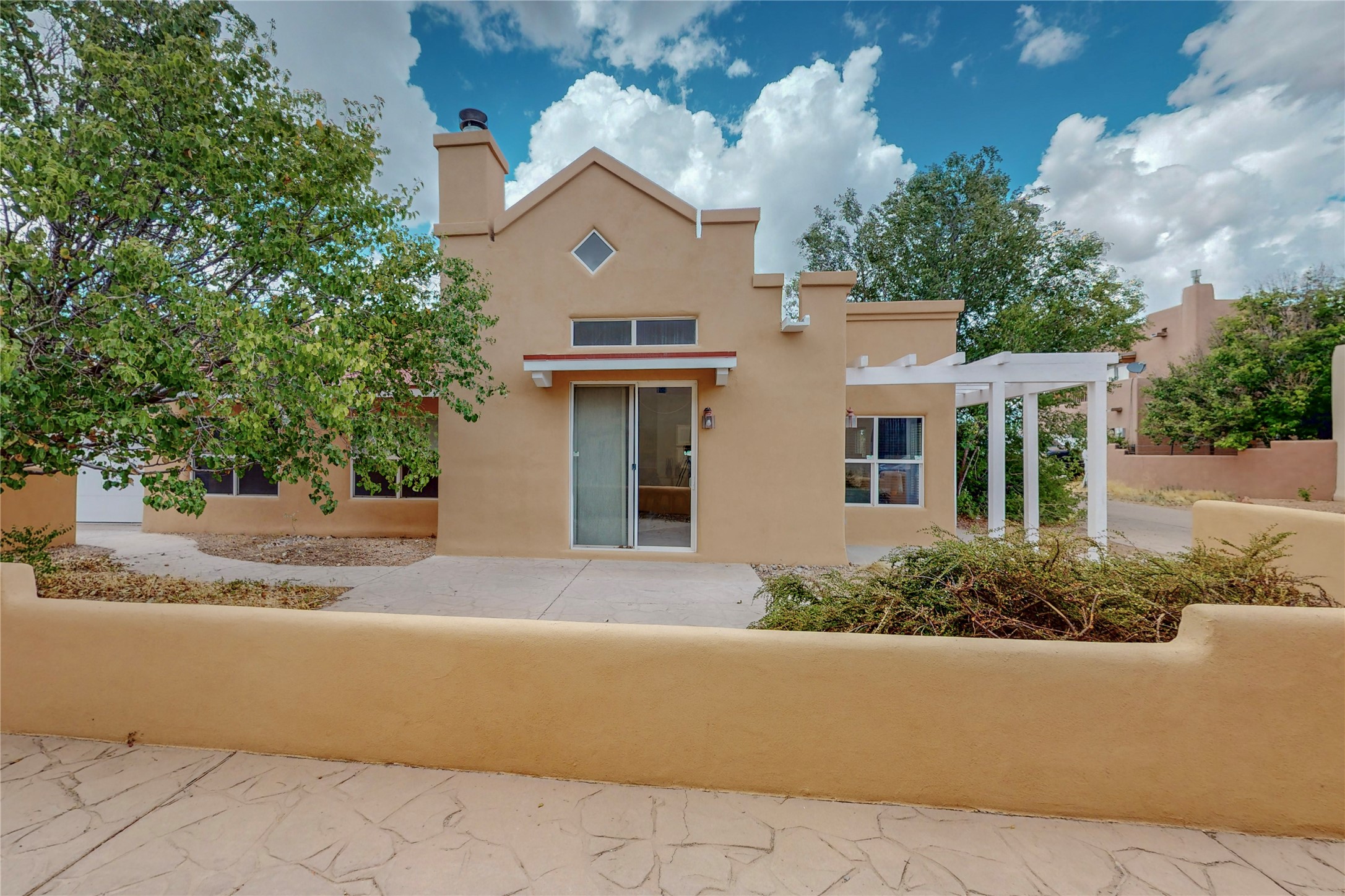 This was the model home for the subdivision when built with a number of upgrades. A vaulted ceiling covers the open living, dining, and kitchen area. Off the living area on one side is a main bedroom with jetted tub and separate shower. Off the other side of the living area are two bedrooms, a guest bathroom, and a laundry room. There is a small garden area with a tree. Just been stuccoed and the roof maintained.