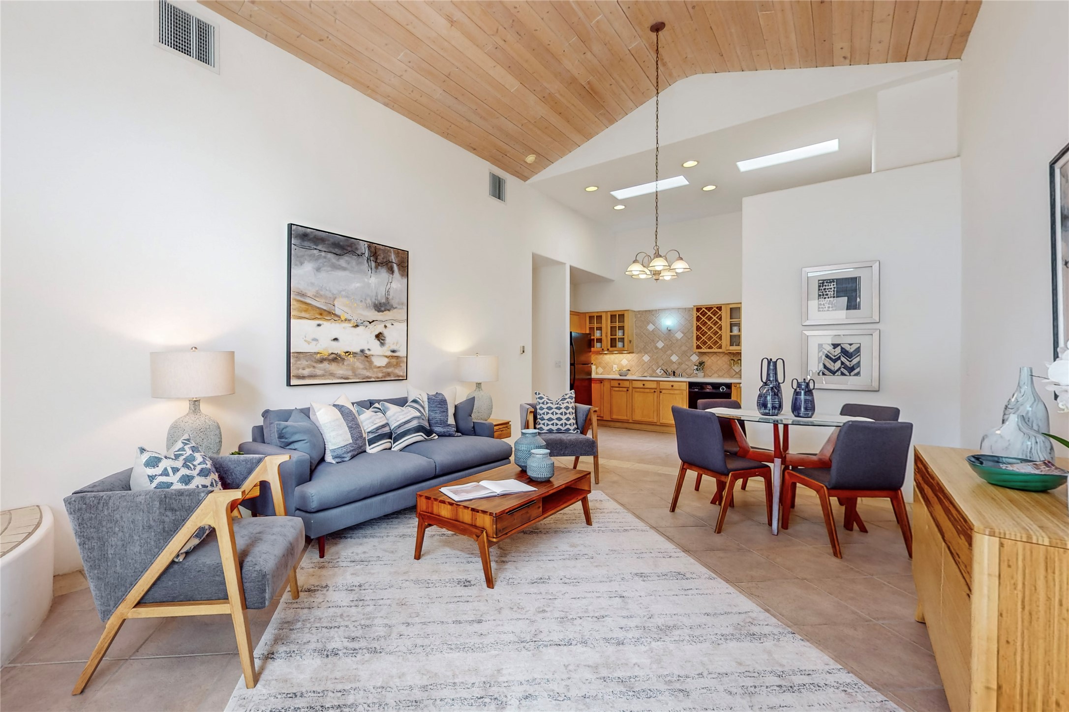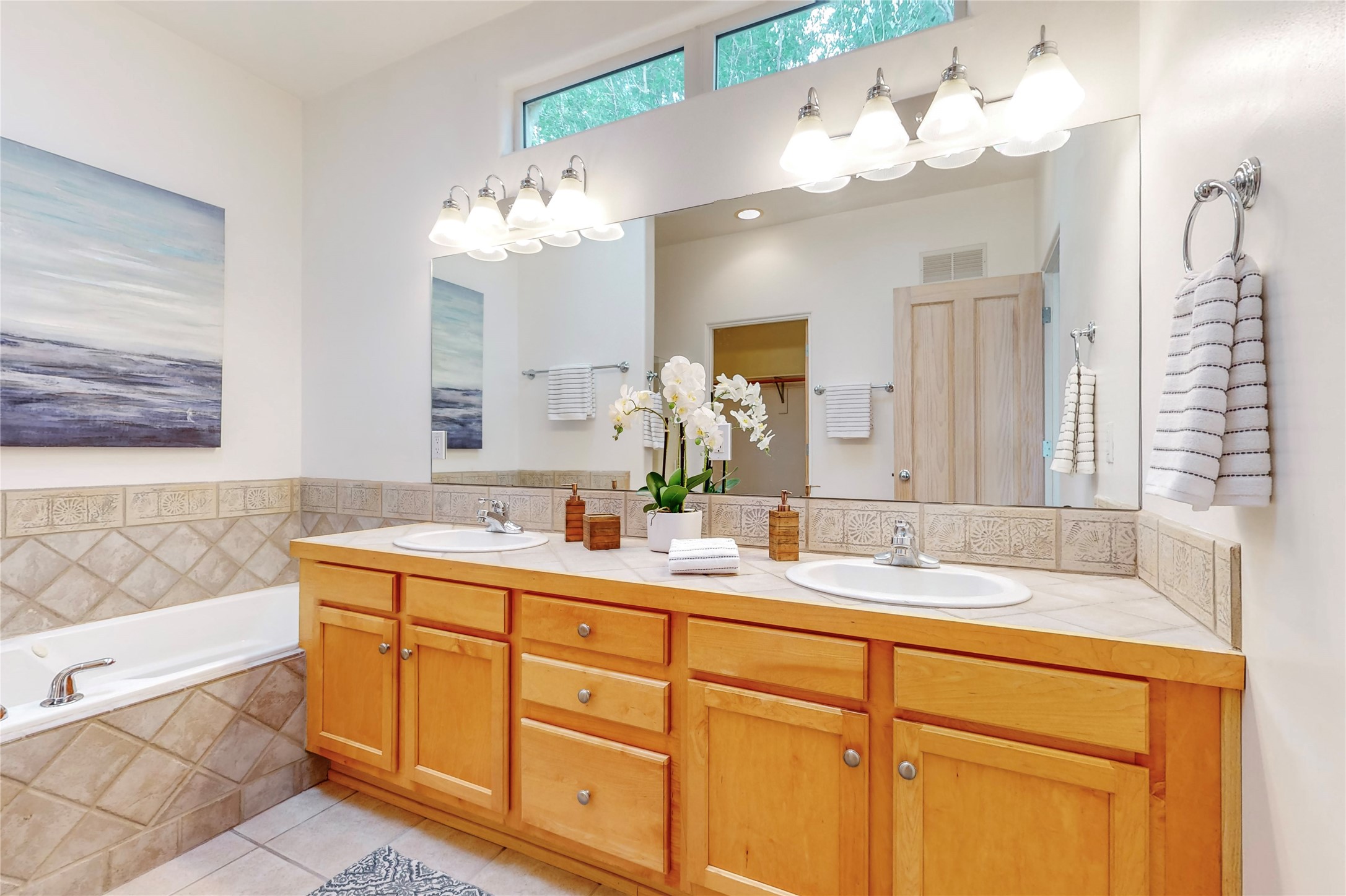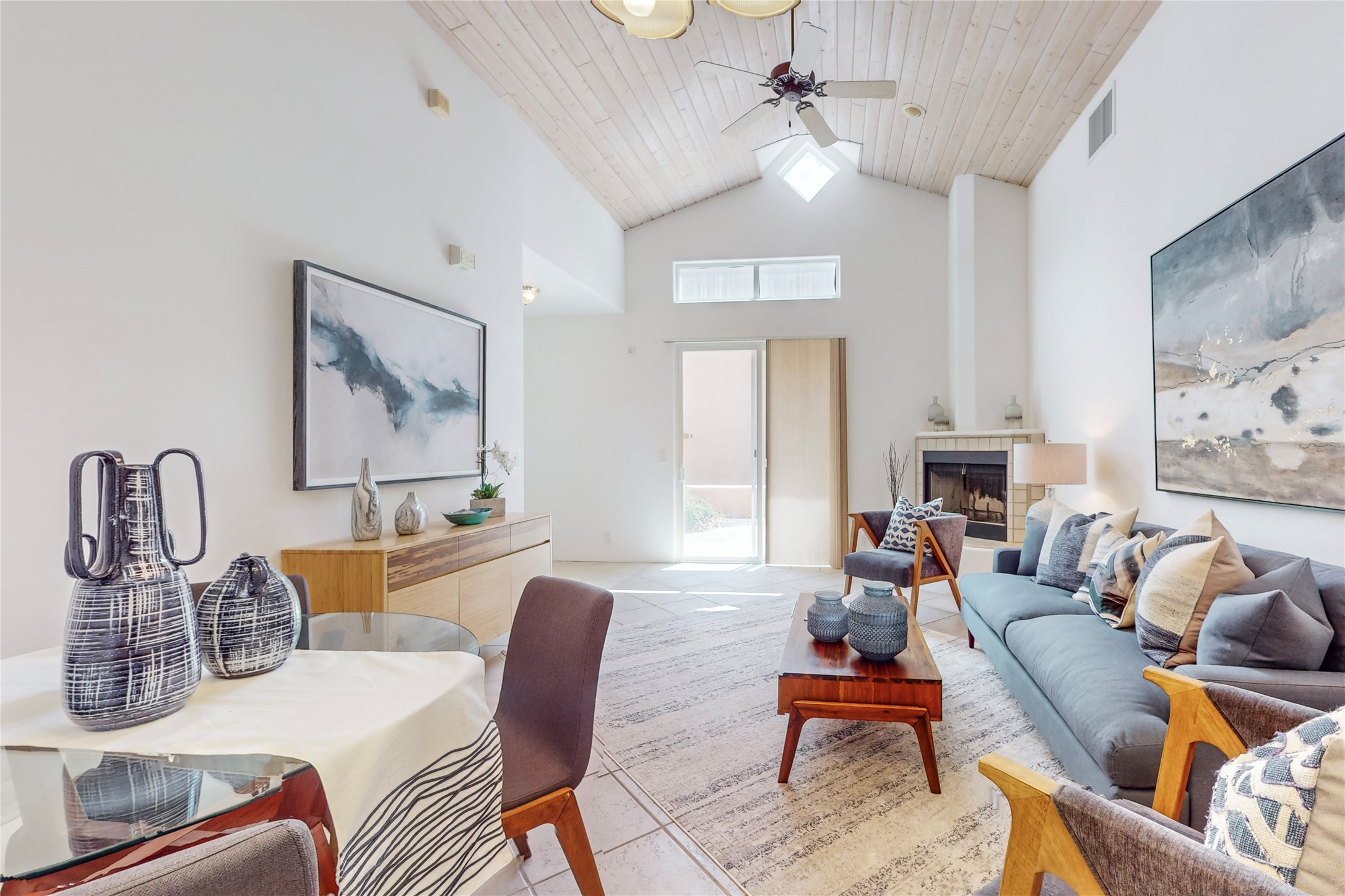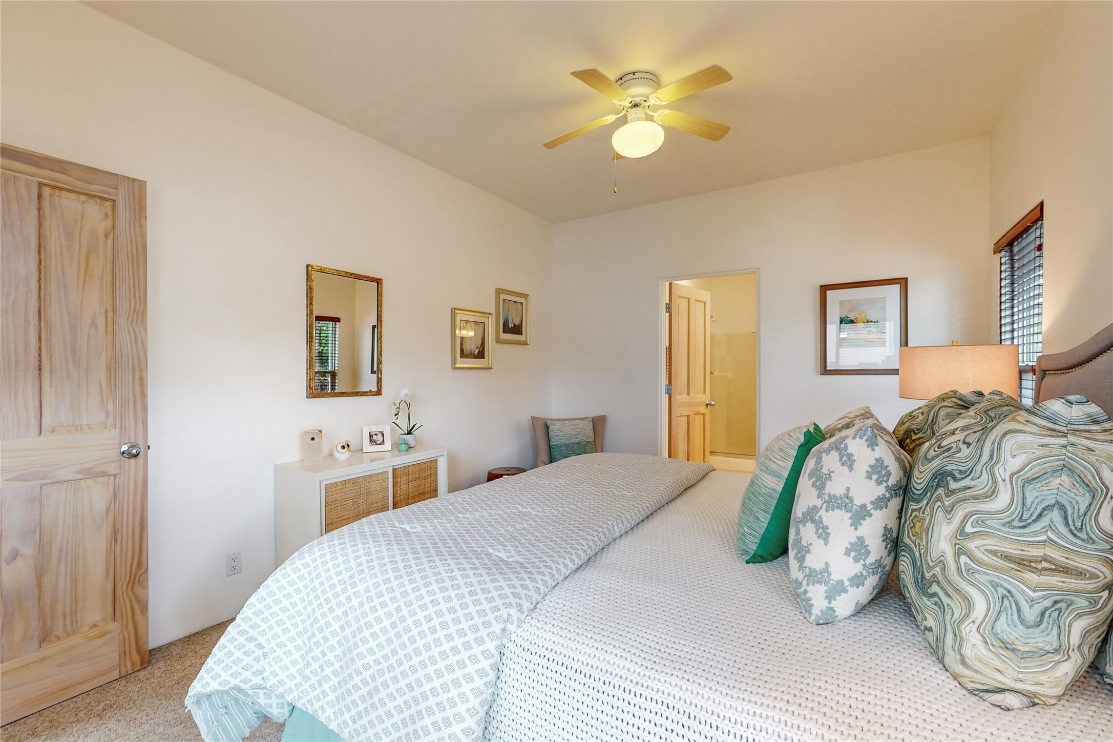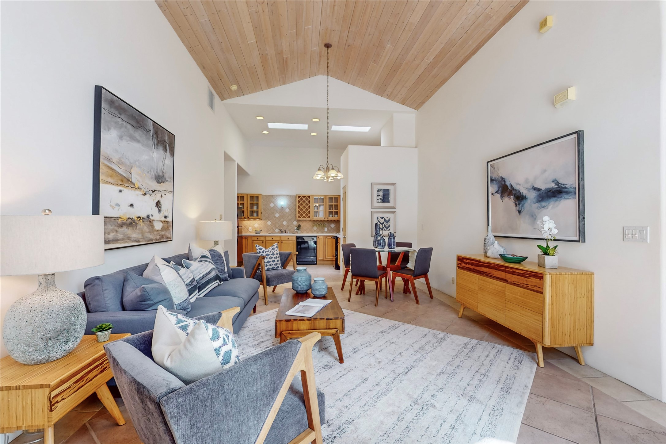 This was the model home for the subdivision when built with a number of upgrades. A vaulted ceiling covers the open living, dining, and kitchen area. Off the living area on one side is a main bedroom with jetted tub and separate shower. Off the other side of the living area are two bedrooms, a guest bathroom, and a laundry room. There is a small garden area with a tree. Just been stuccoed and the roof maintained.