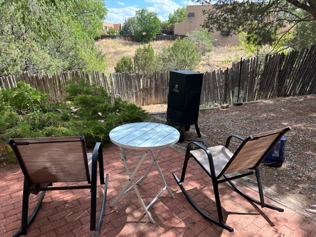 Under 400,000 in Santa Fe! Townhome with great outdoor living space that offers beautiful backyard privacy and second level deck to enjoy relaxation and enjoy night skies. Easy care brick flooring in main living area, wood burning fireplace. Great open floor plan. Appliances included so move right in. This property has a successful long term rental history too.