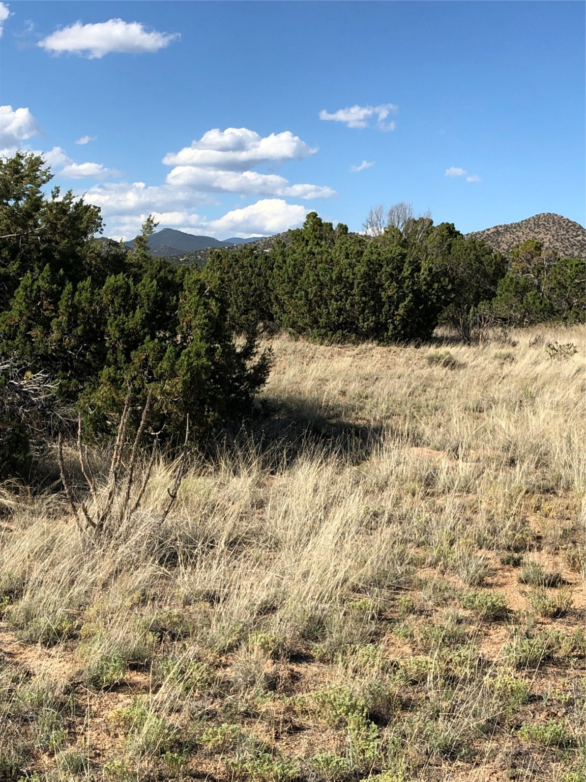 1.18 Acre building lot in Eldorado on cul de sac, with mountain views and easy-to-build terrain. The lot borders a greenbelt in back. Utilities close by (hookup required). Eldorado offers miles of walking trails, a clubhouse, pool, tennis courts, library & senior center, K-8 school and grocery store. Other amenities: restaurants, hardware store, wilderness land for hiking. Short 15 or 20 minute hop to Santa Fe.Property does not have Eldorado water. Note that a well may need to be drilled as Eldorado water hookup is costly to this lot.