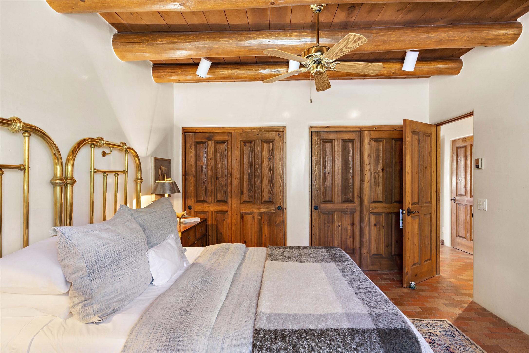 This beautiful 3 acre compound, set back off Bishops Lodge Rd, with views of the Sangre de Cristos features a 3 bedroom, 2.5 bathroom main house, a detached casita and a studio. Gorgeous gardens and gracious portals allow for multiple outdoor living areas. Privacy and serenity, just 3 miles from the plaza, this home is an entertainers dream.